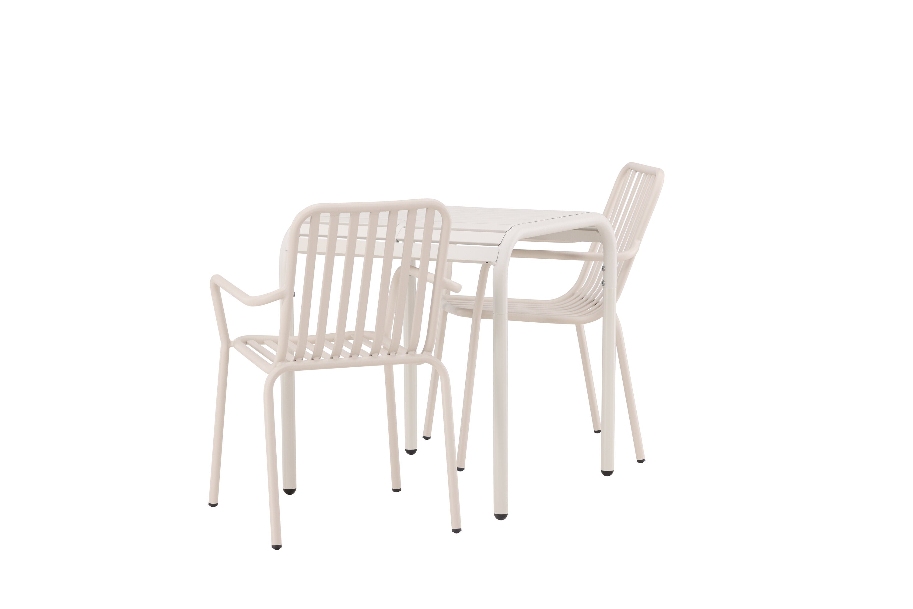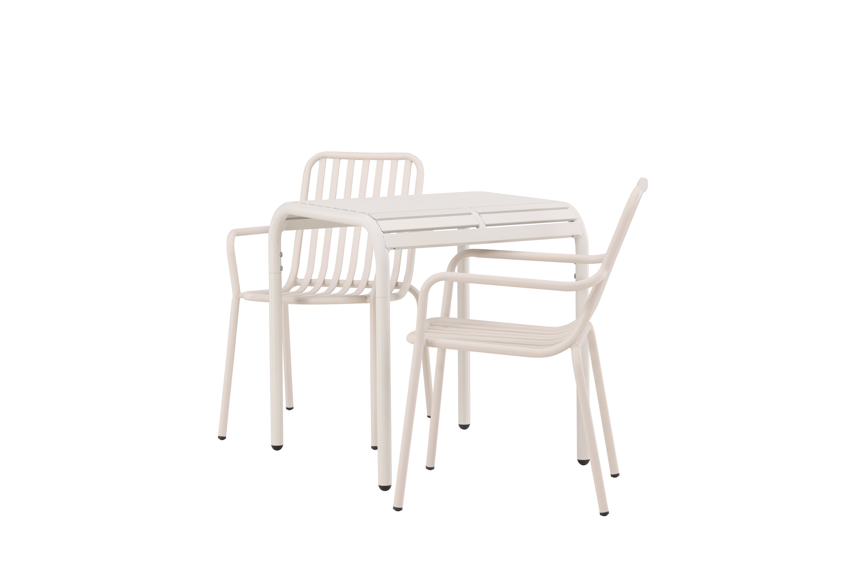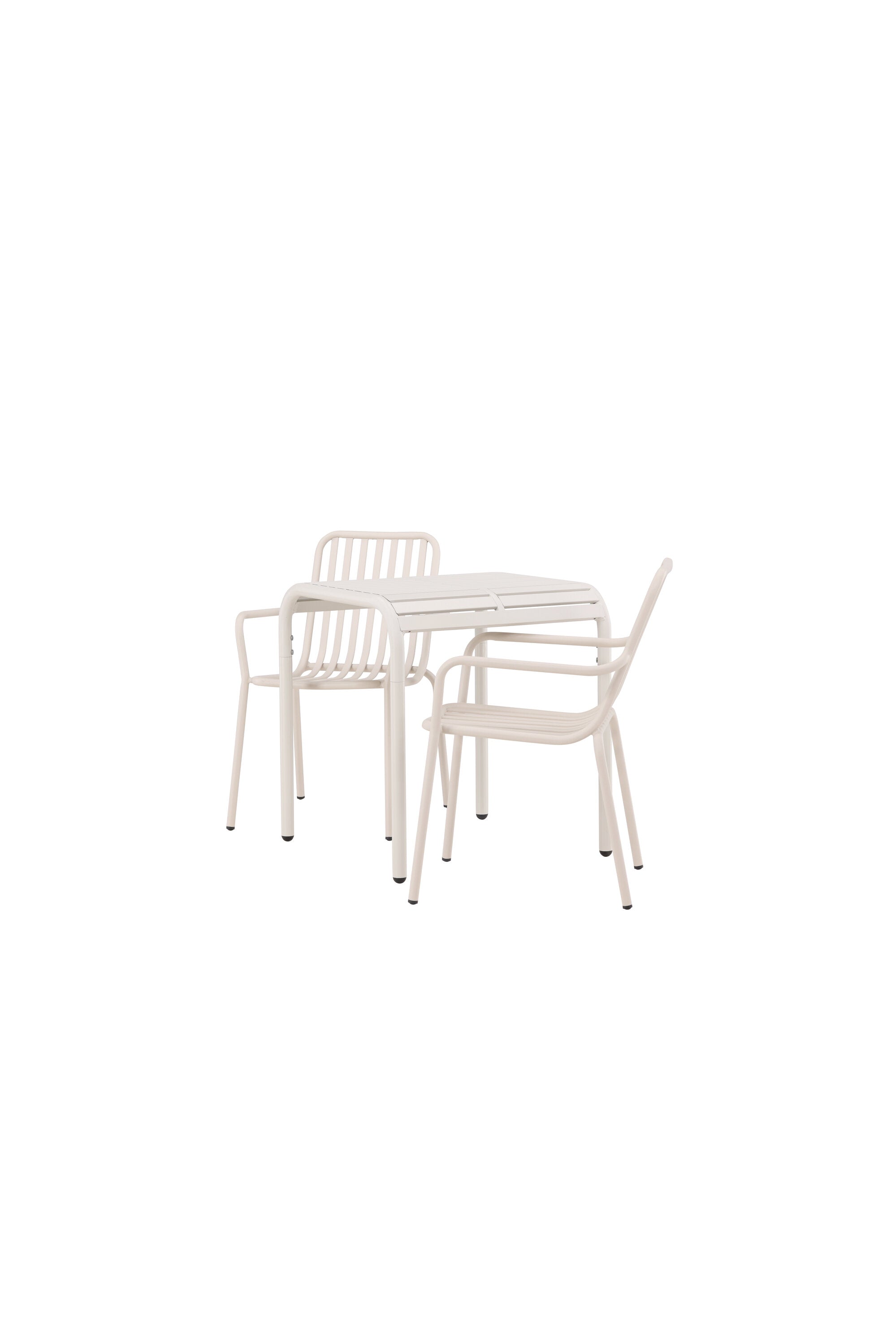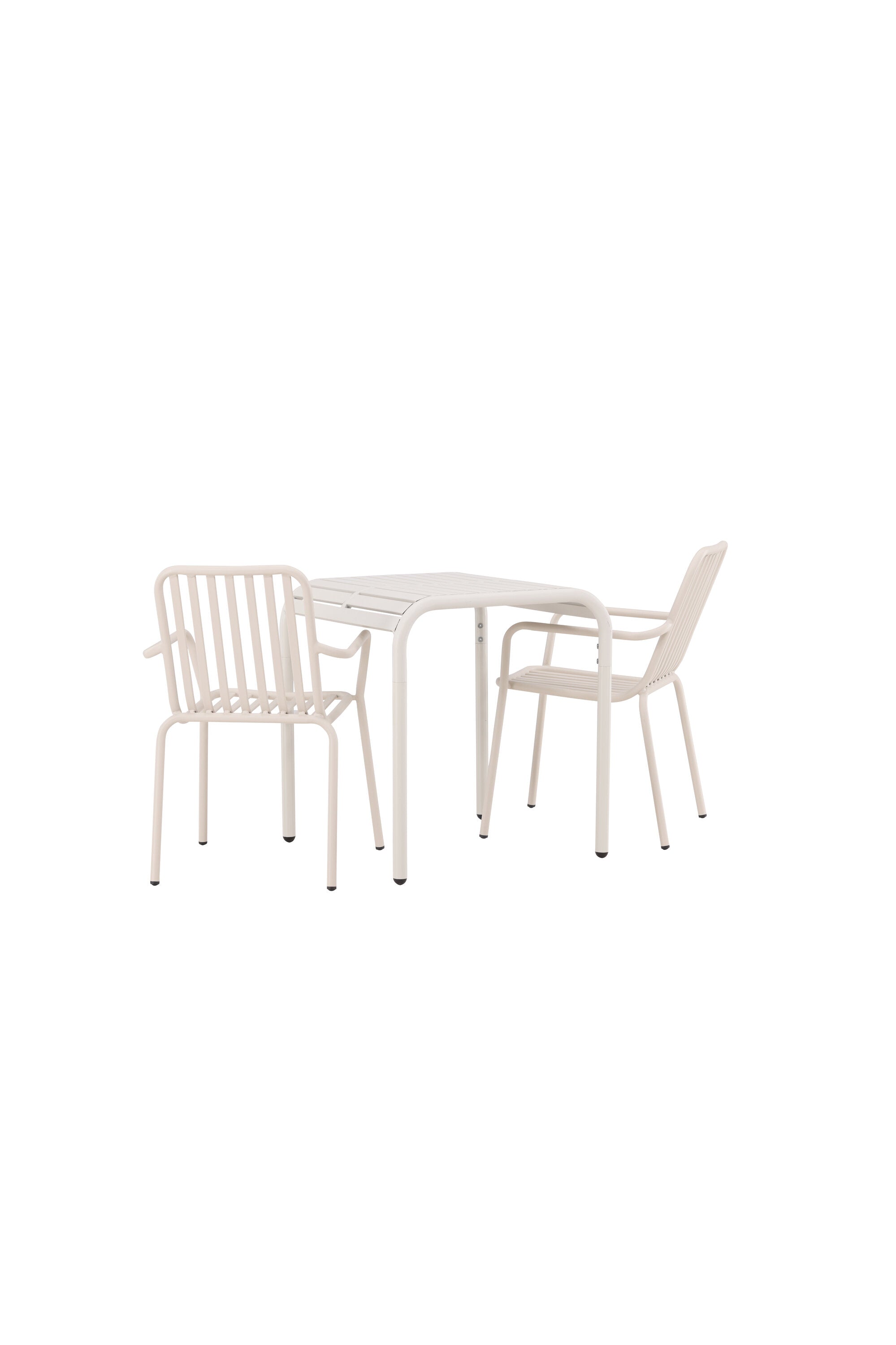 Stylová a příjemná kavárenská skupina, která vyzařuje šarm! Stůl ze série Borneo má nadčasový skandinávský design. Deska stolu je žebrovaná a podél okrajů se vlní u nohou. Vše dohromady vyrobeno z béžového hliníku, což vám poskytuje odolný stůl, který lze snadno přemisťovat. Zde ve stylové kombinaci se 2 jídelními židlemi ze série Beijing. Žebrovaný design v hliníku a lichotivá béžová barva působí, že židle působí moderně a nadčasově. Užijte si letošní letní oběd venku! Rozměry stolu: 70 x 70 cm.