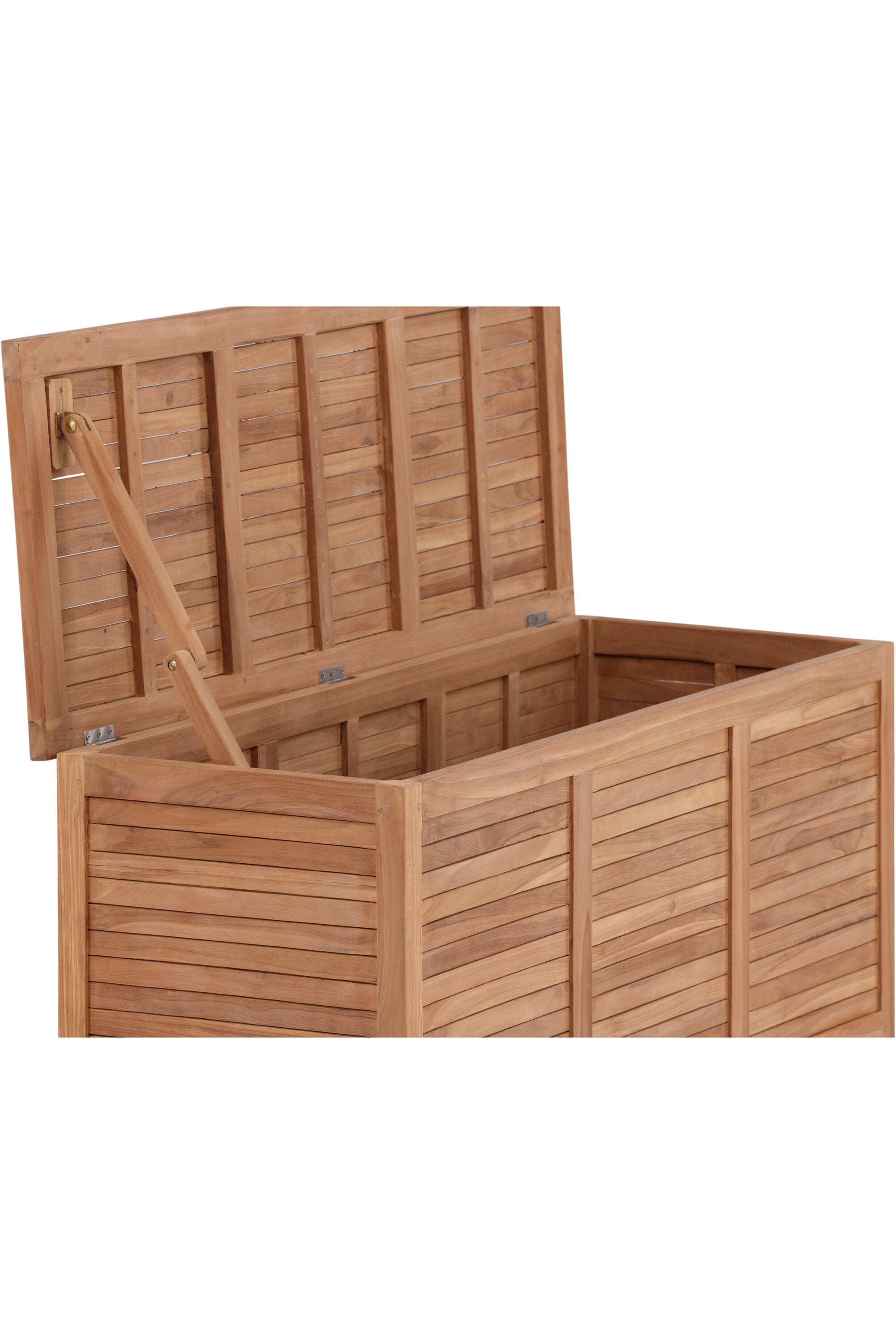 S Trento můžete snadno organizovat a chránit své polštáře, když je nepoužíváte. Velkorysá velikost poskytuje dostatek prostoru při zachování kvality polštářů v průběhu času. Přírodní barva vytváří harmonickou atmosféru a doplňuje přirozenou krásu teakového dřeva.