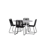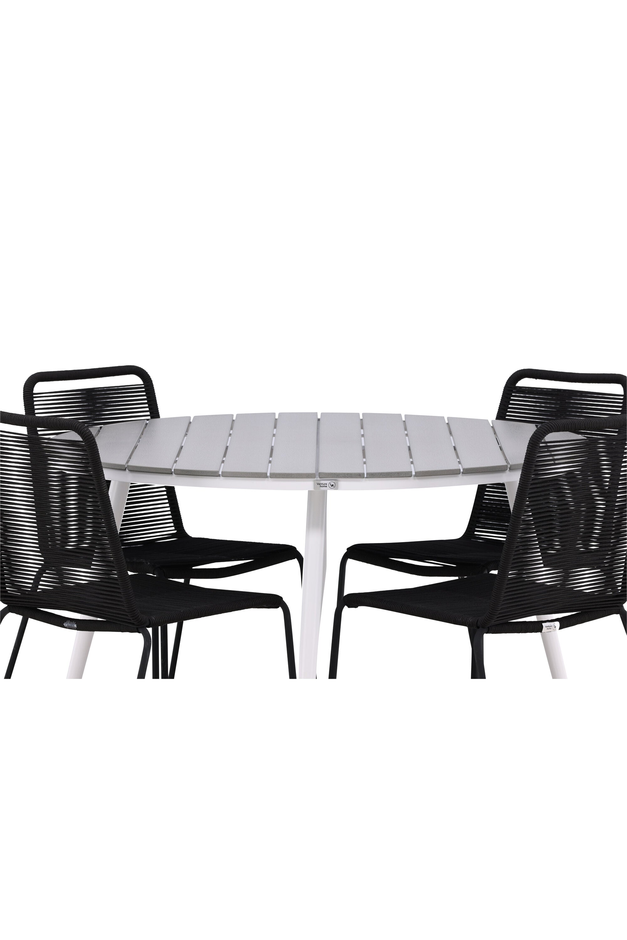 Break - Jídelní stůl kulatý - Bílá / Šedá - Alu / Aintwood - 120ø _1+ Lindos Stohovací židle - Černá Alu / Černé lano _4