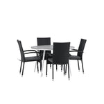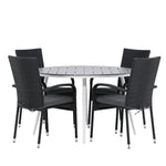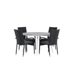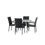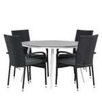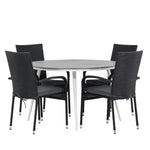 Break - Jídelní stůl kulatý - Bílá / Šedá - Alu / Aintwood - 120ø _1+ Židle Anna - Černá _4