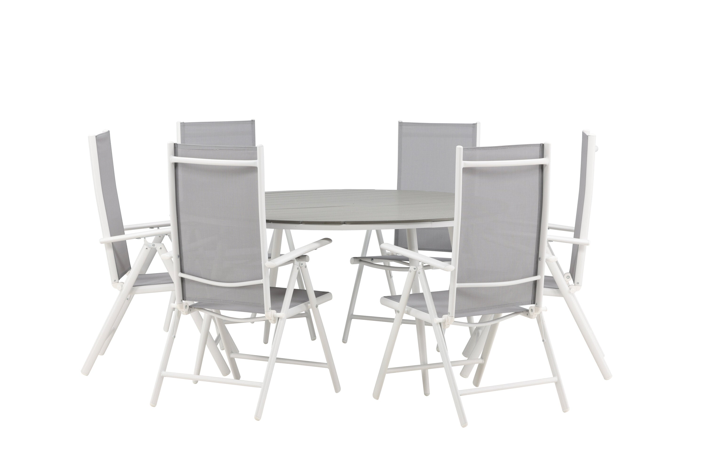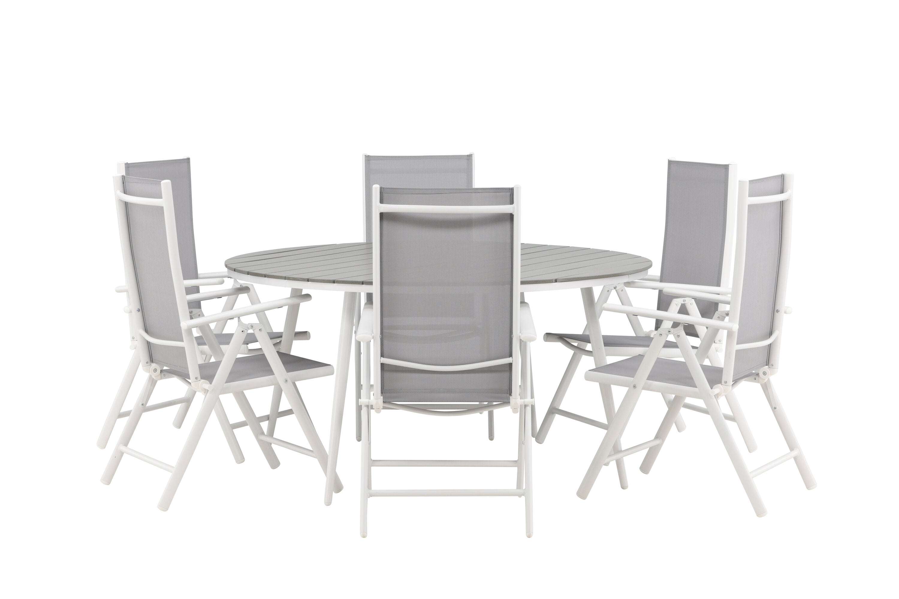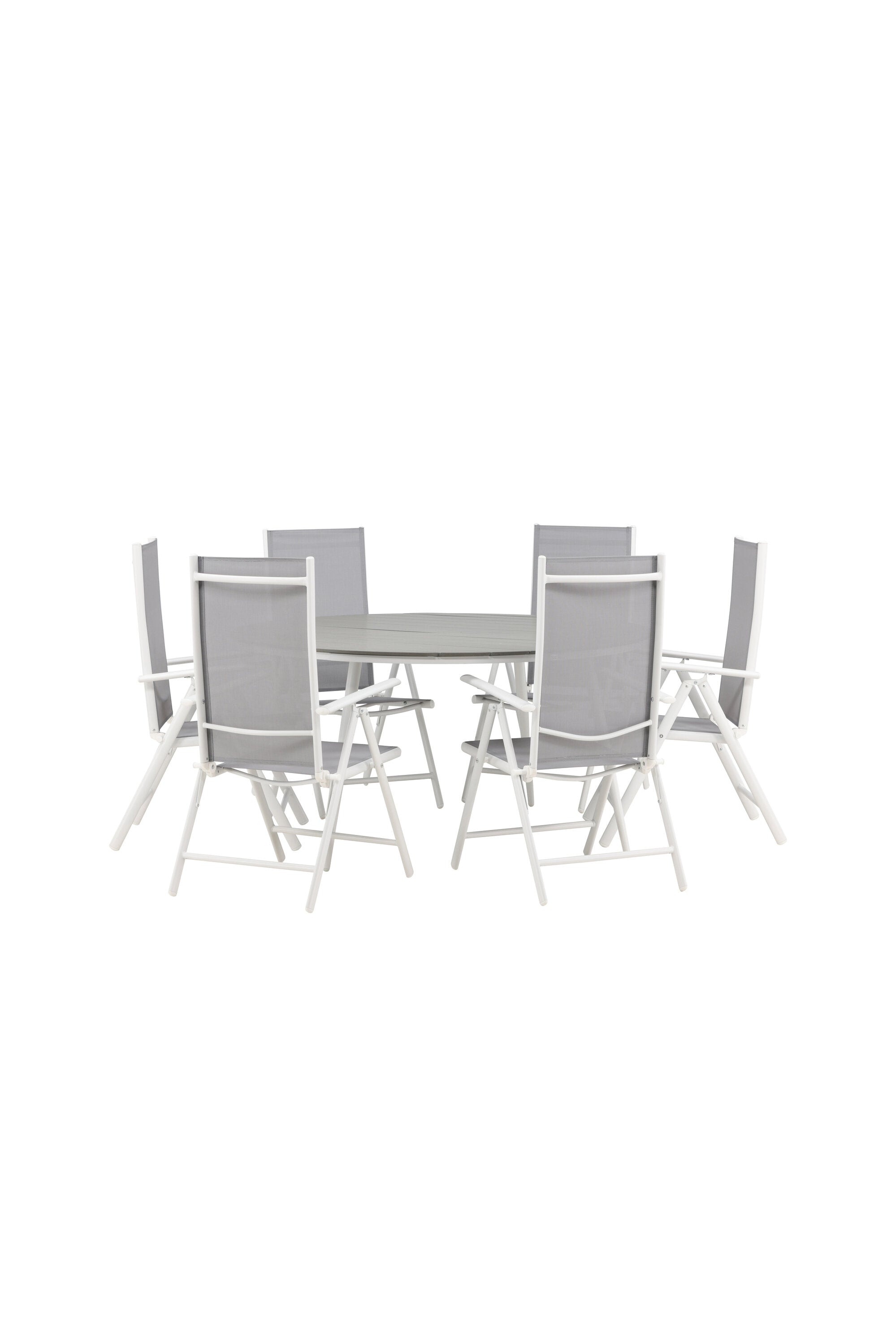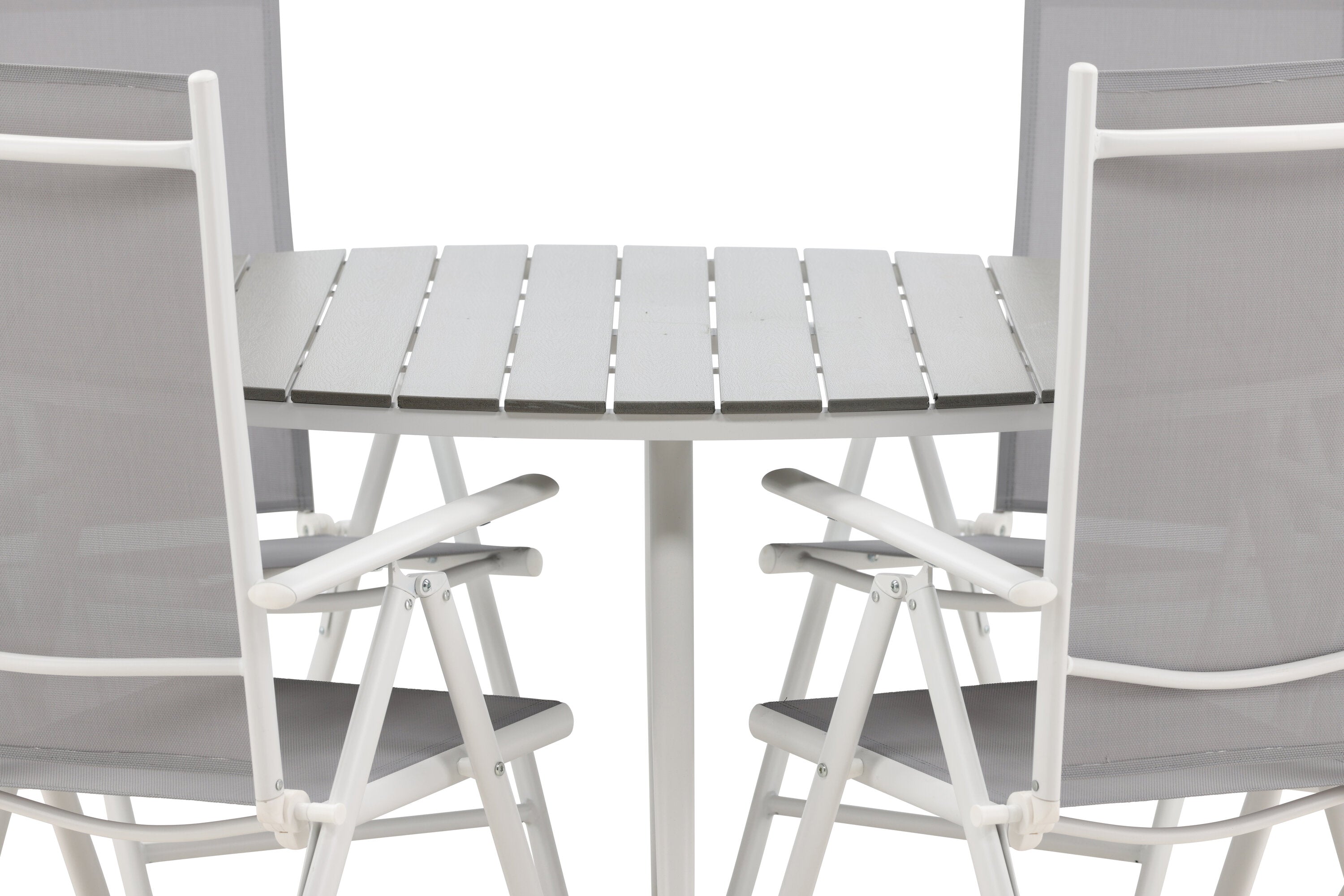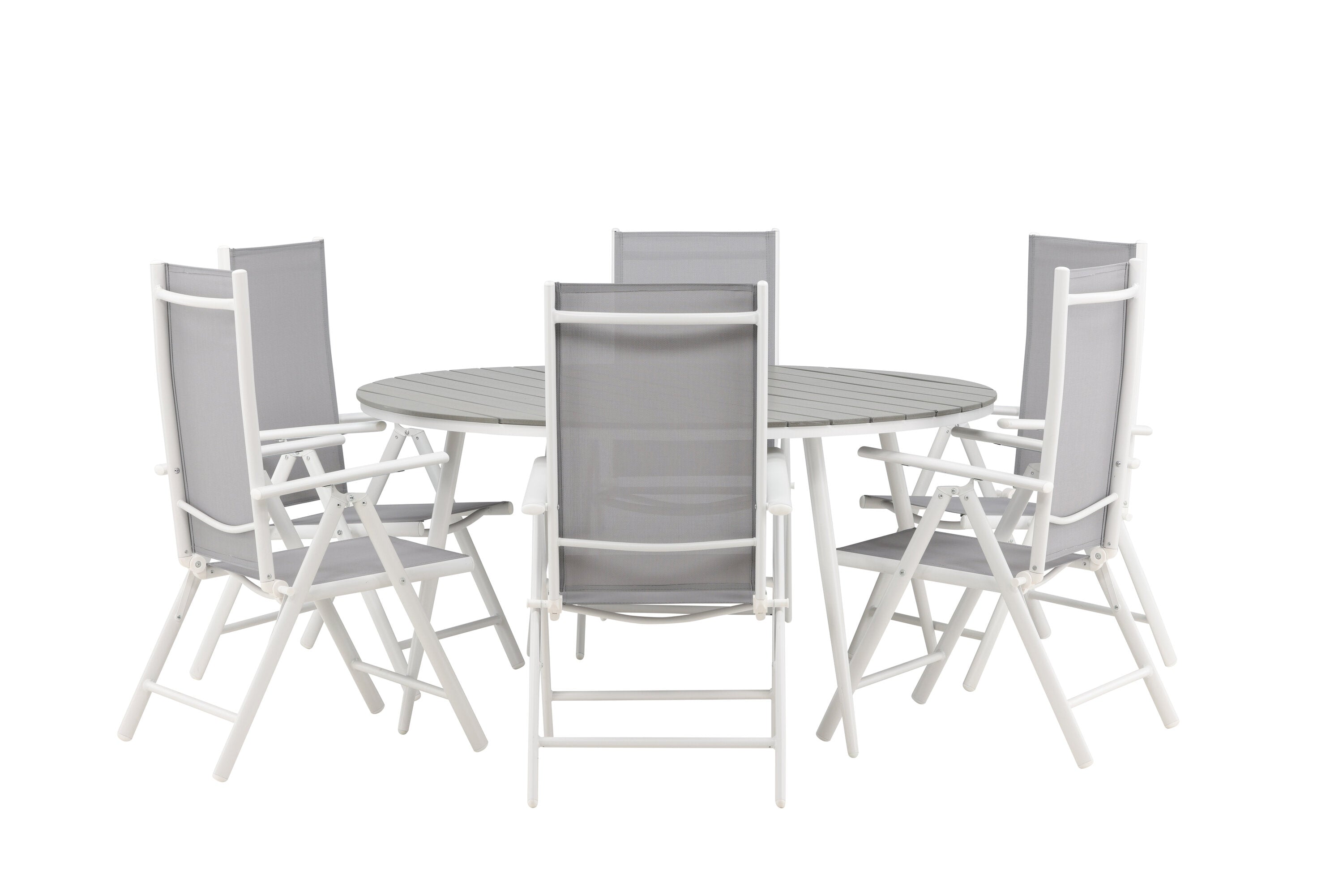 Break - Jídelní stůl kulatý- Bílá / Šedá - Alu / Aintwood - 150ø _1+ Break 5:pos Židle - Bílá/Šedá _6
