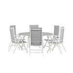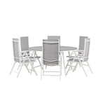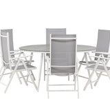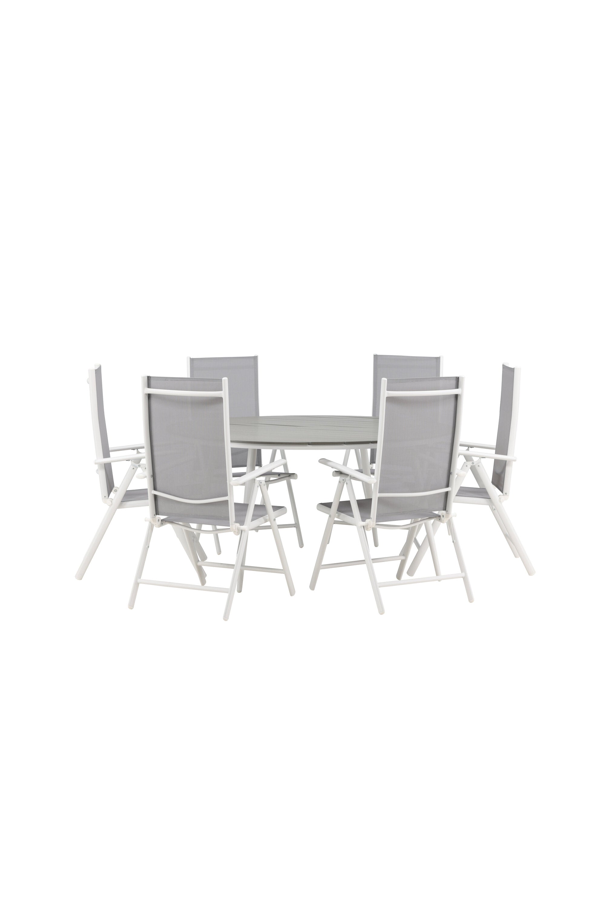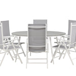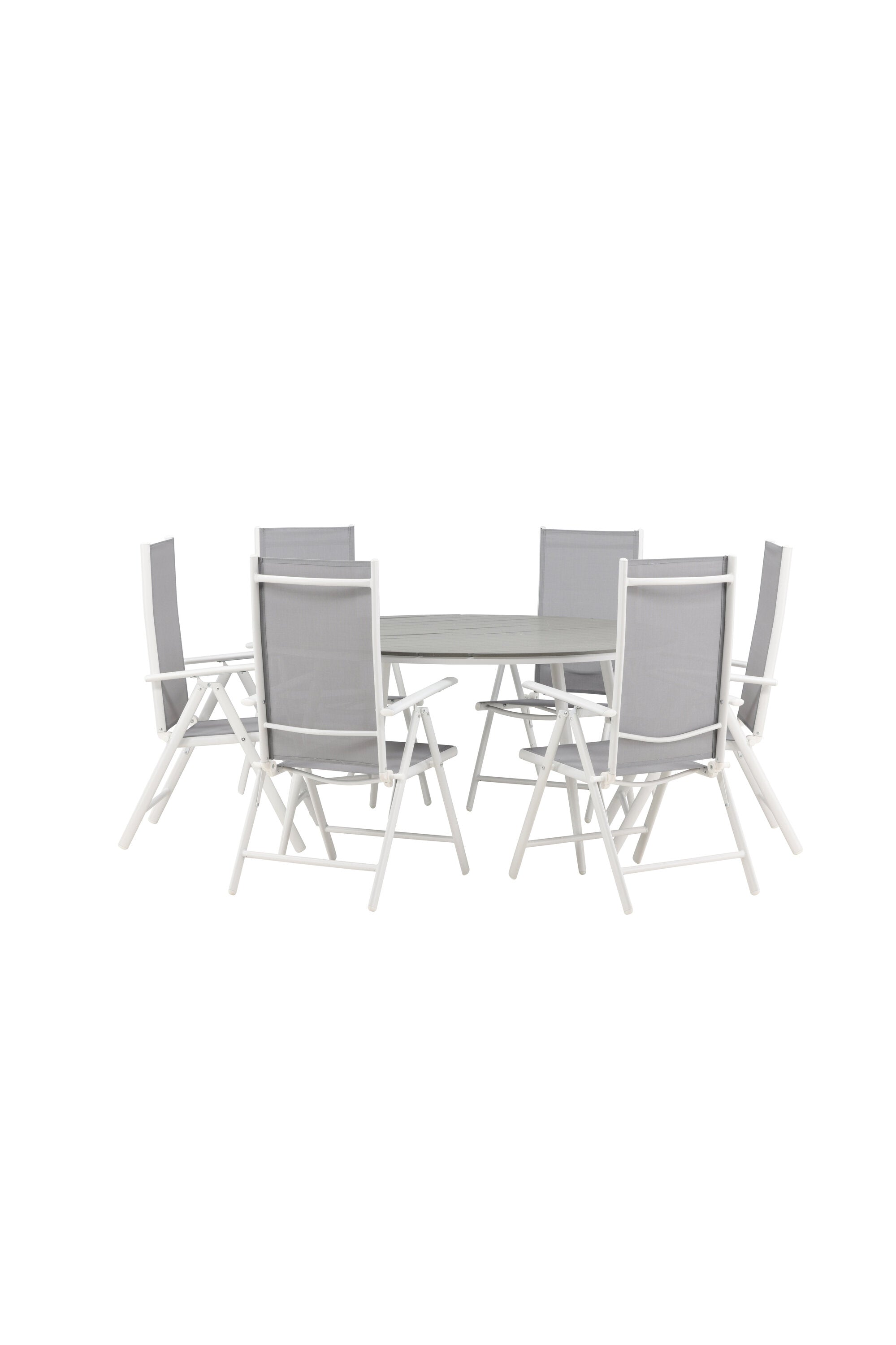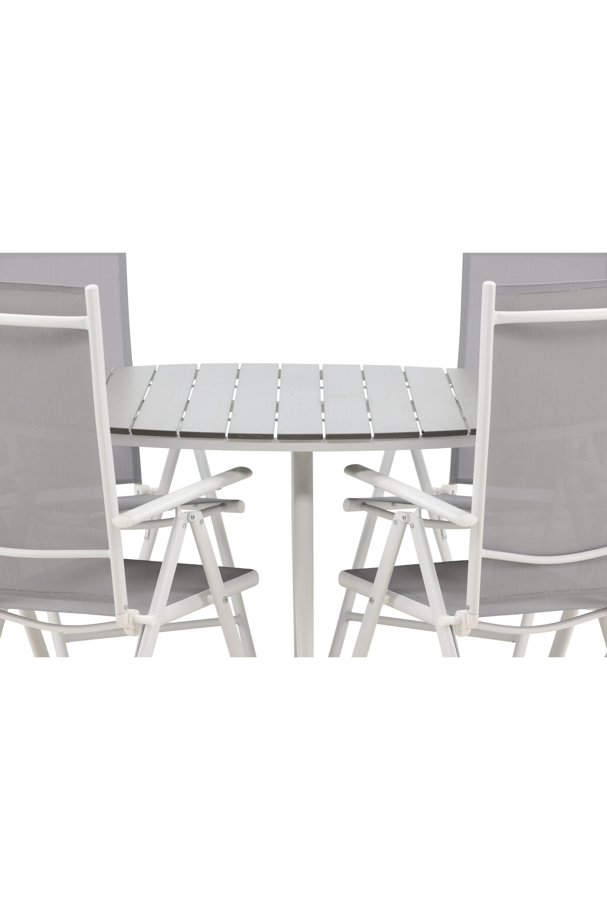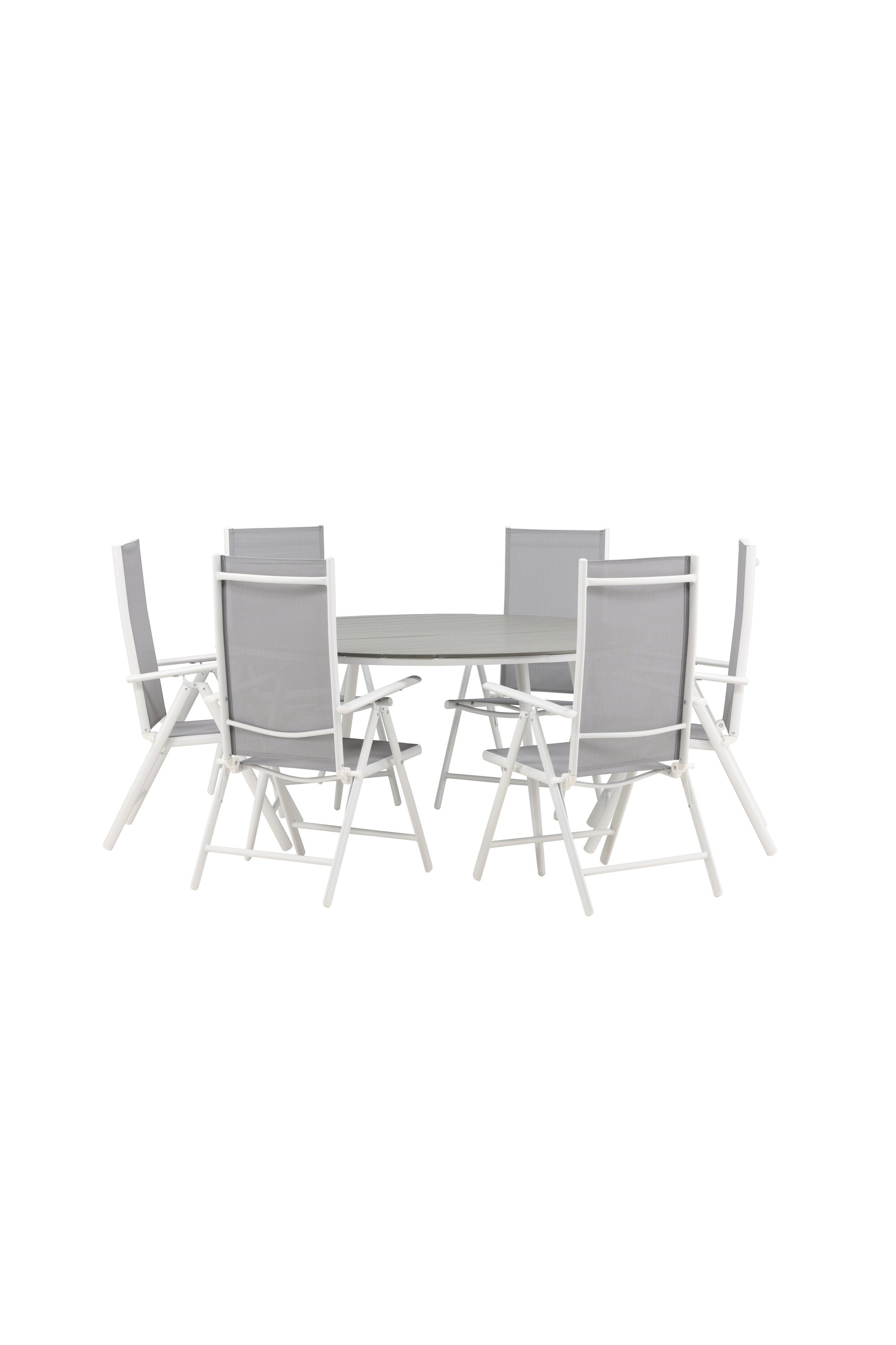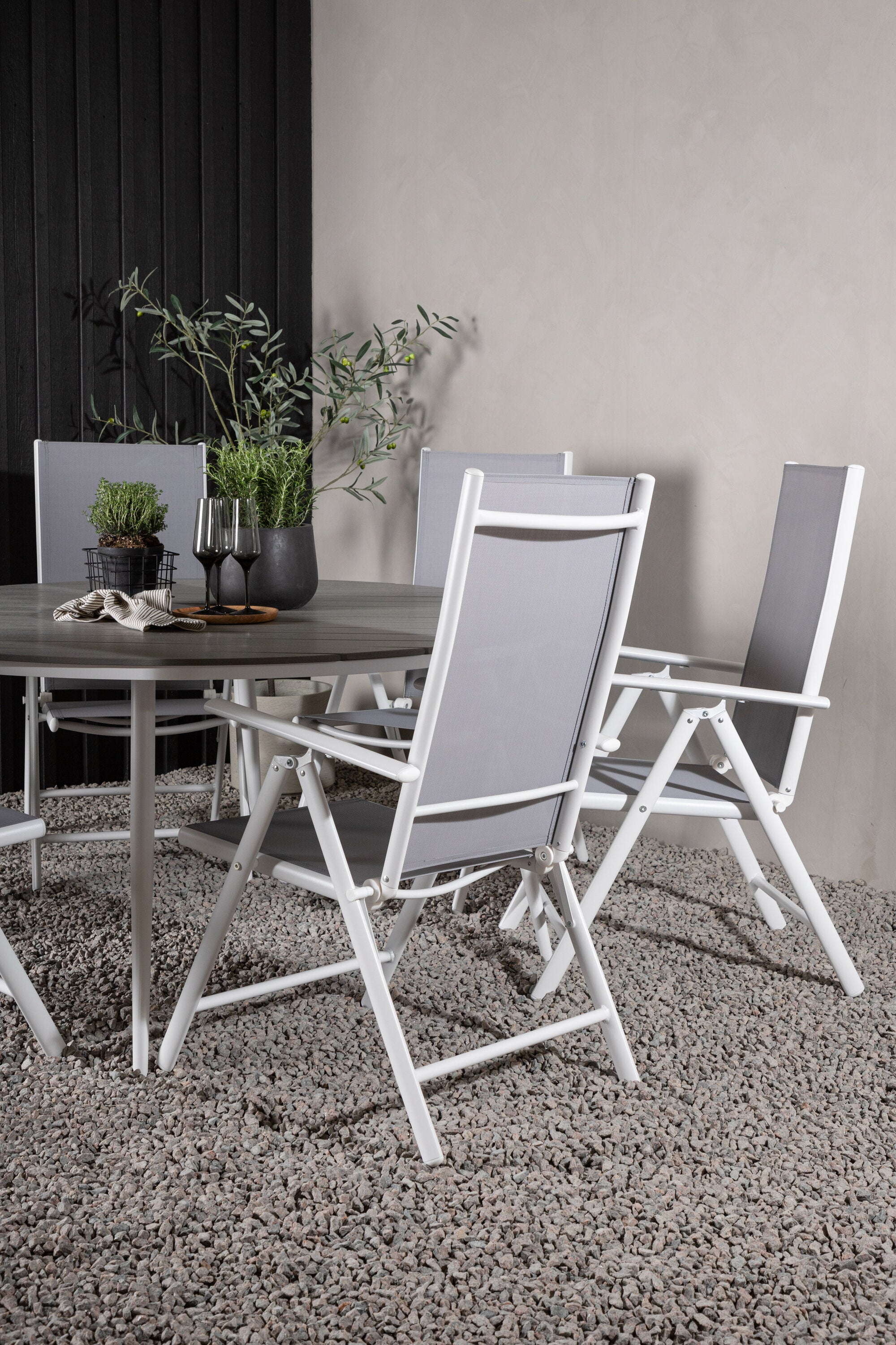 Break - Jídelní stůl kulatý- Bílá / Šedá - Alu / Aintwood - 150ø _1+ Break 5:pos Židle - Bílá/Šedá _6