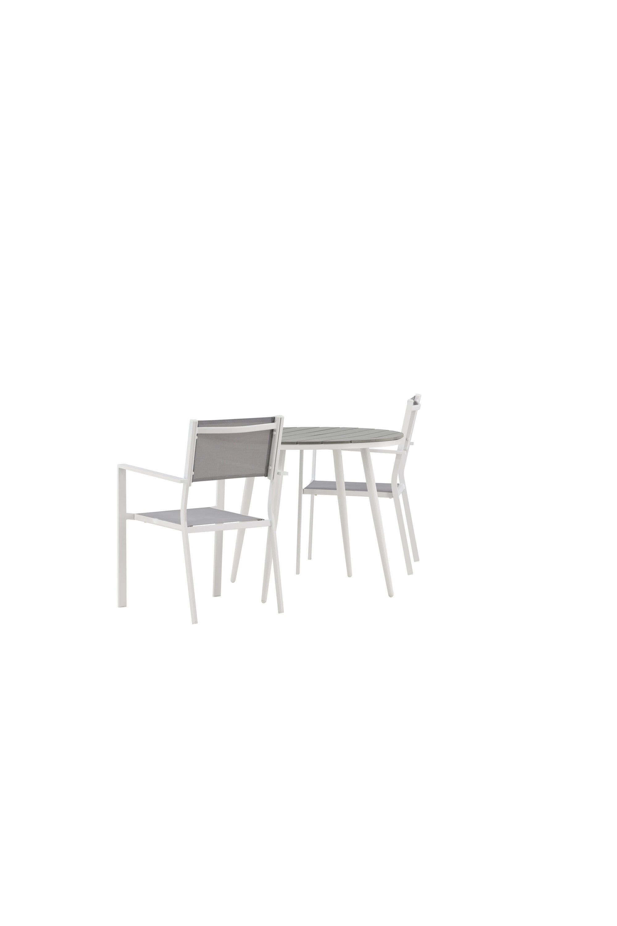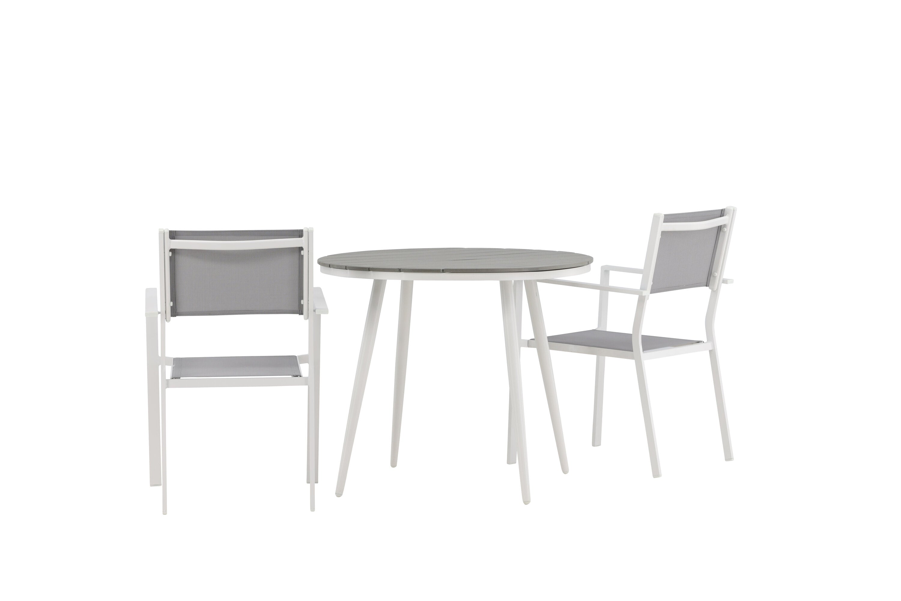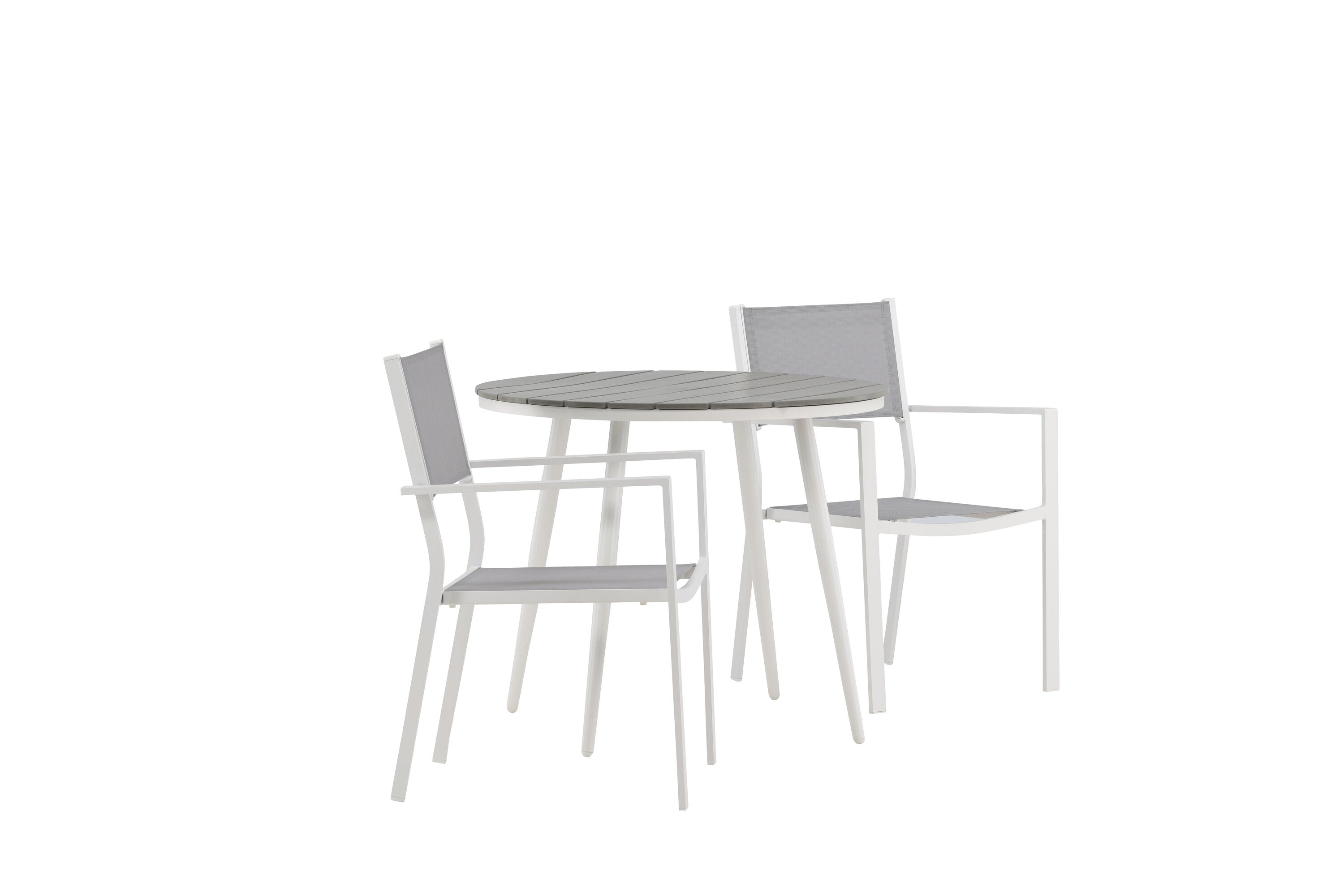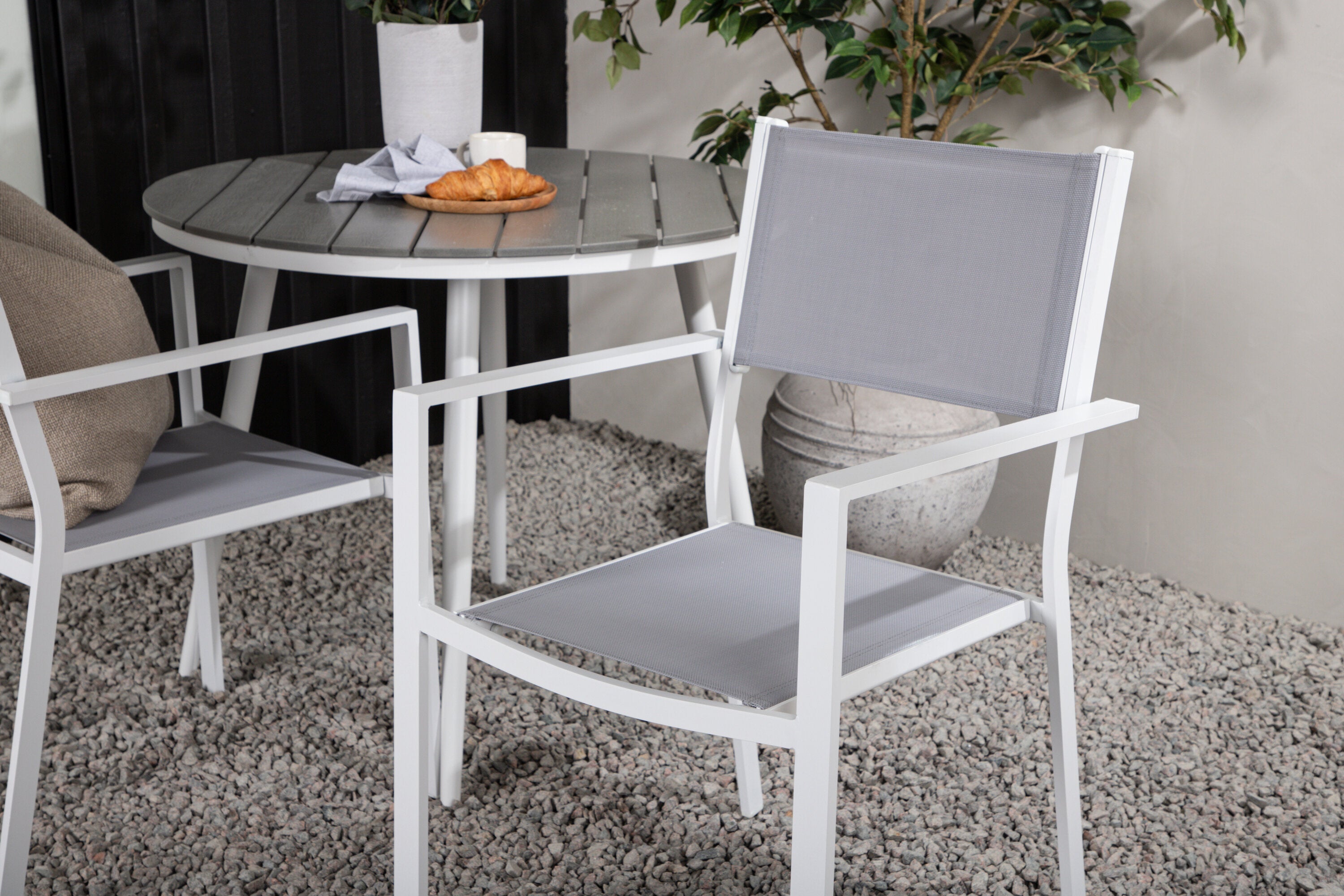 Break - Jídelní stůl kulatý - Bílá / Šedá - Alu / Aintwood - 90ø _1+ Stohovací židle Copacabana - Bílá/Šedá _2