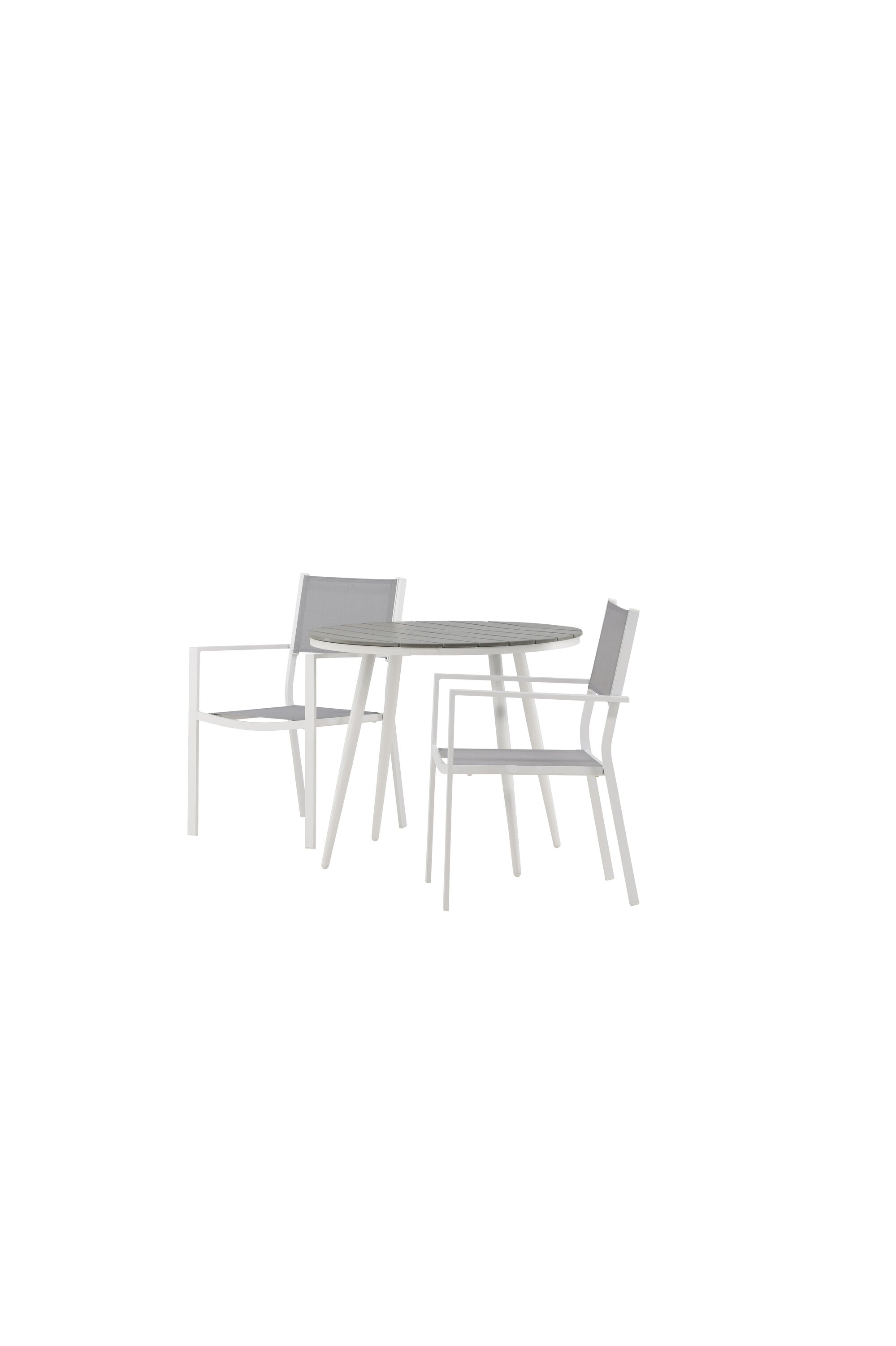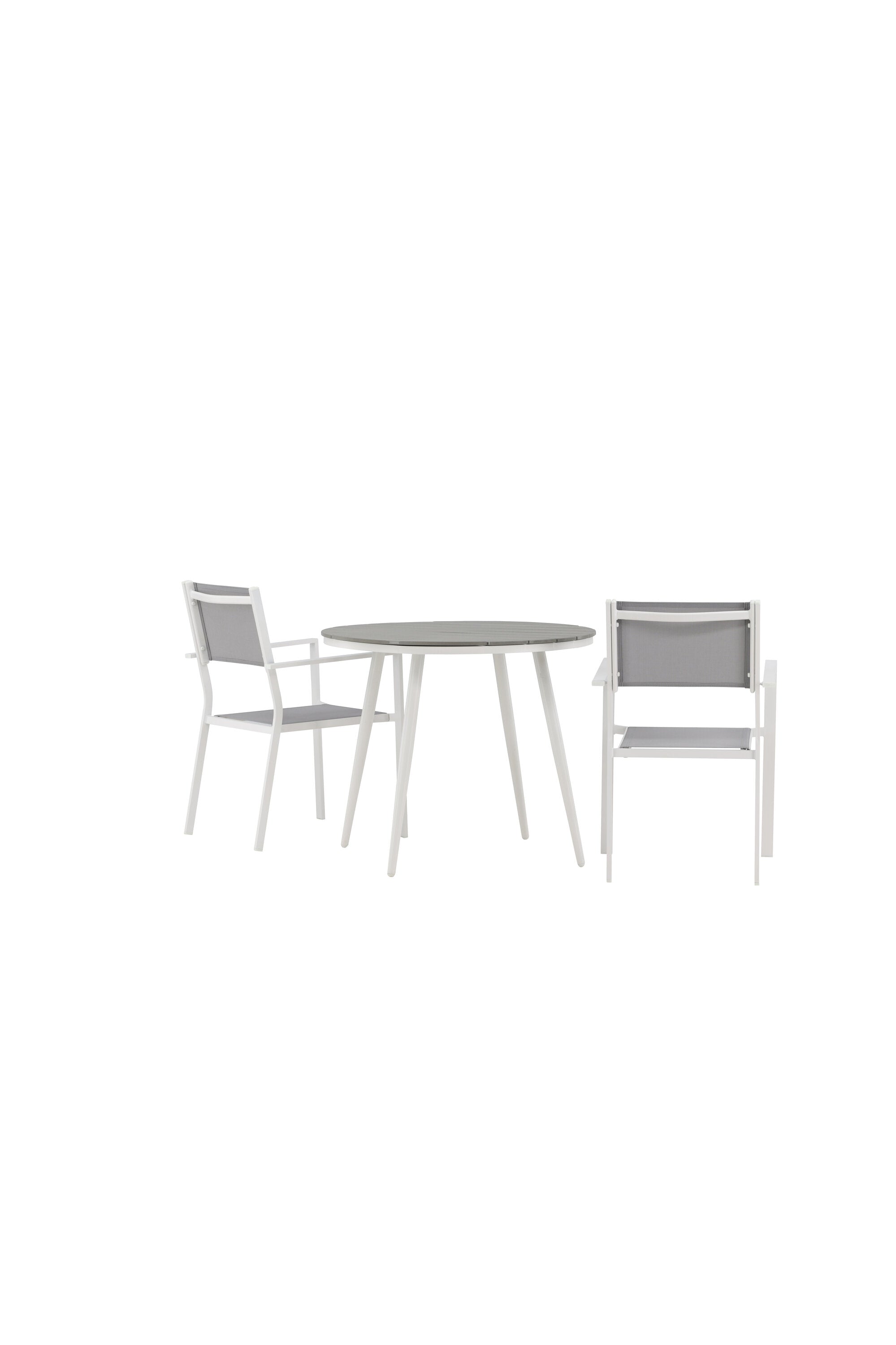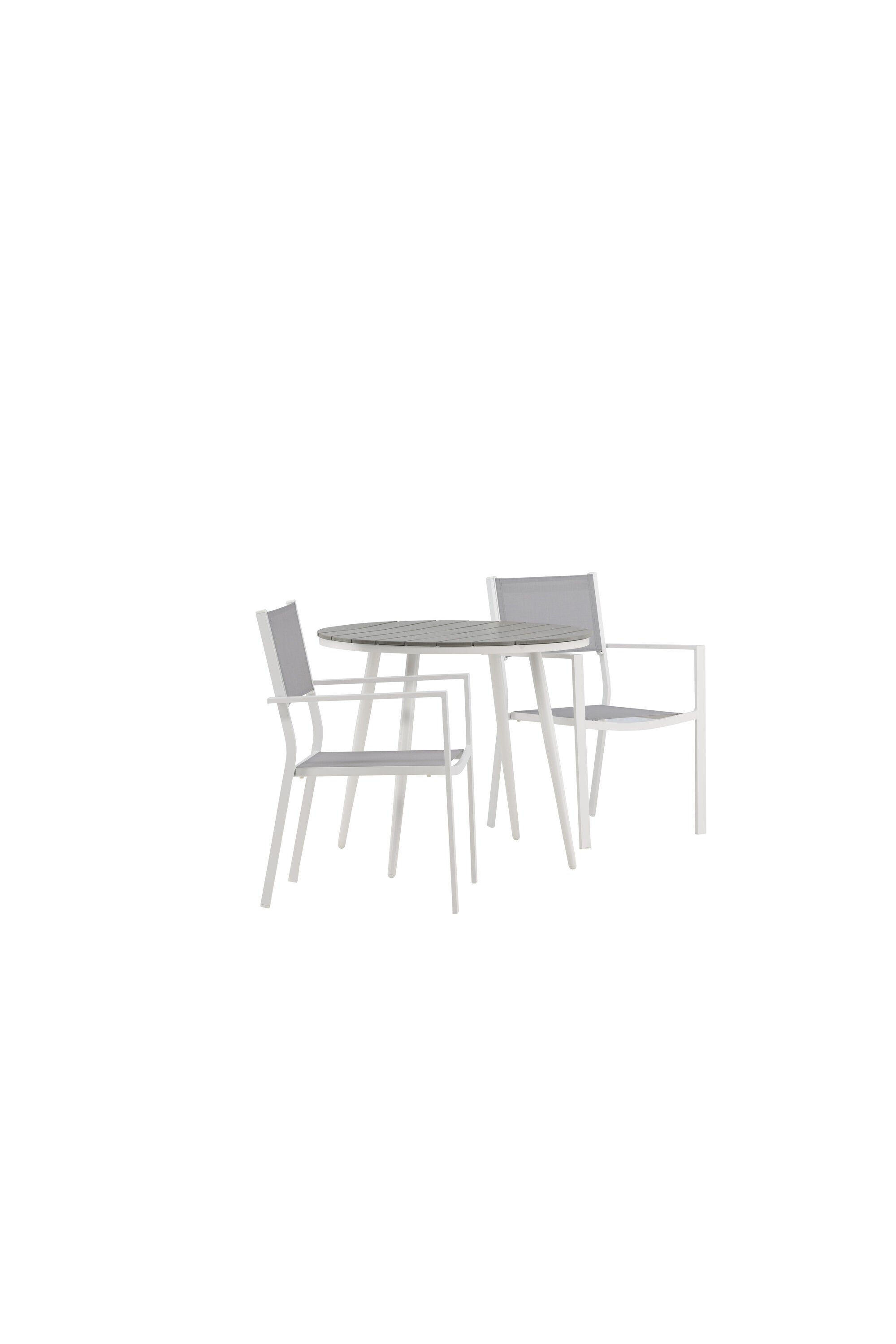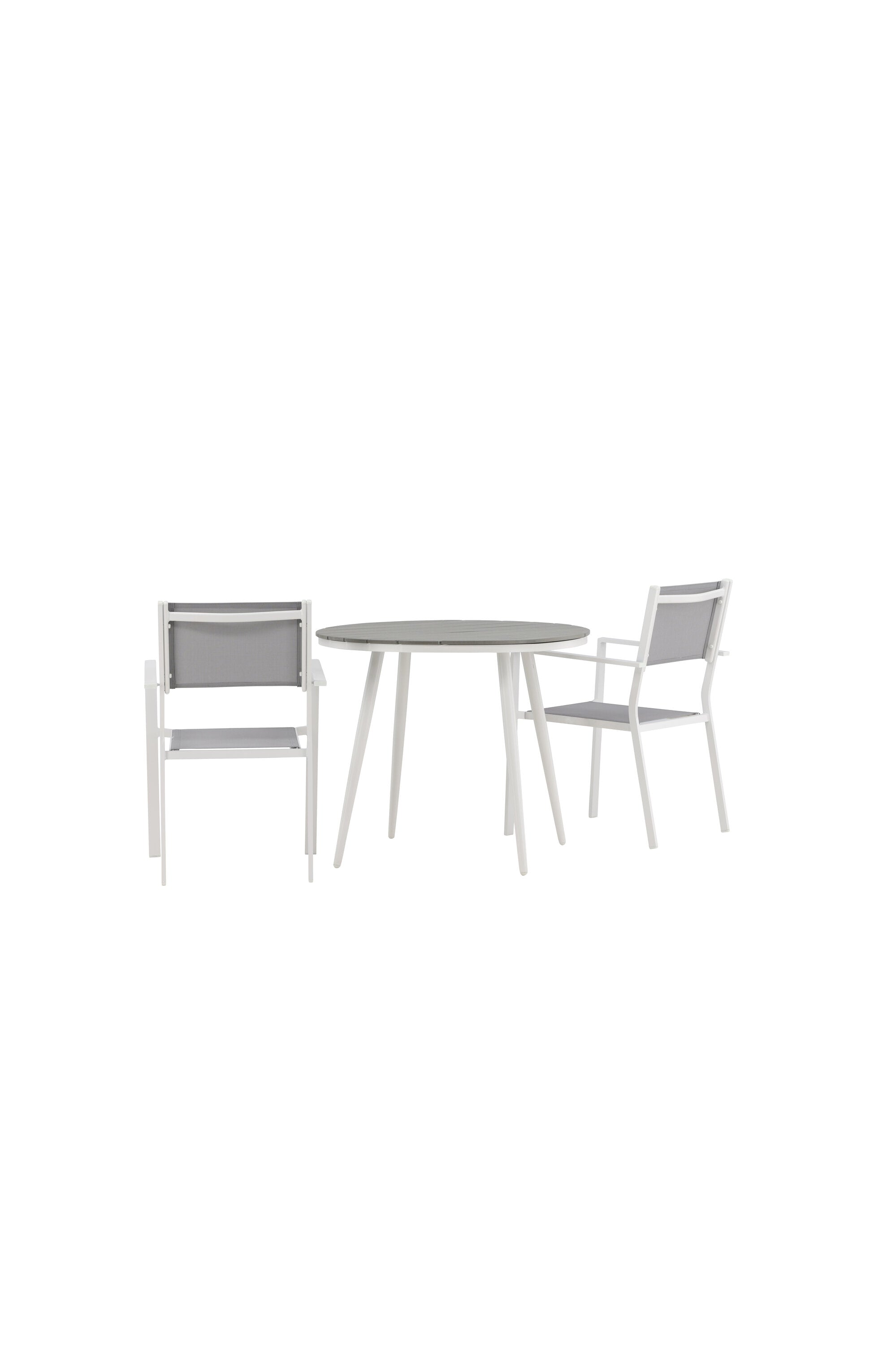 Break - Jídelní stůl kulatý - Bílá / Šedá - Alu / Aintwood - 90ø _1+ Stohovací židle Copacabana - Bílá/Šedá _2