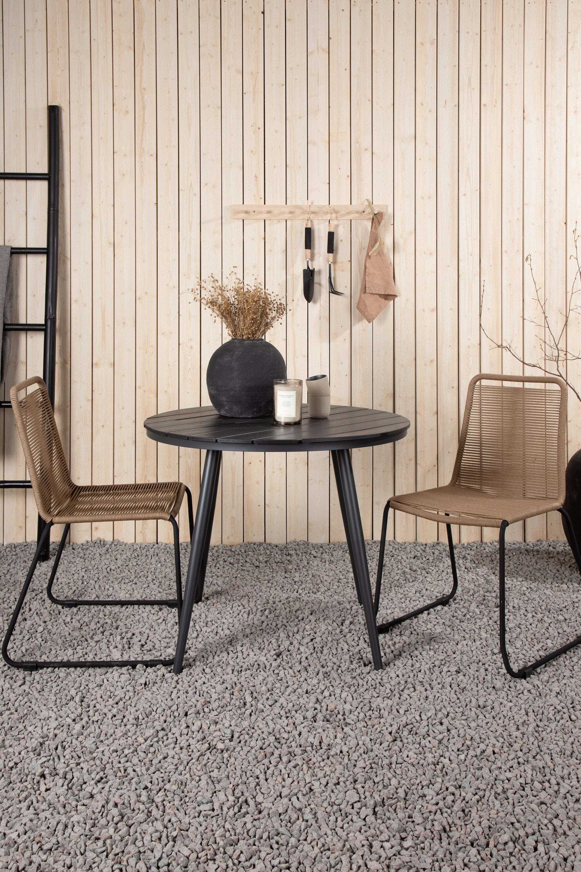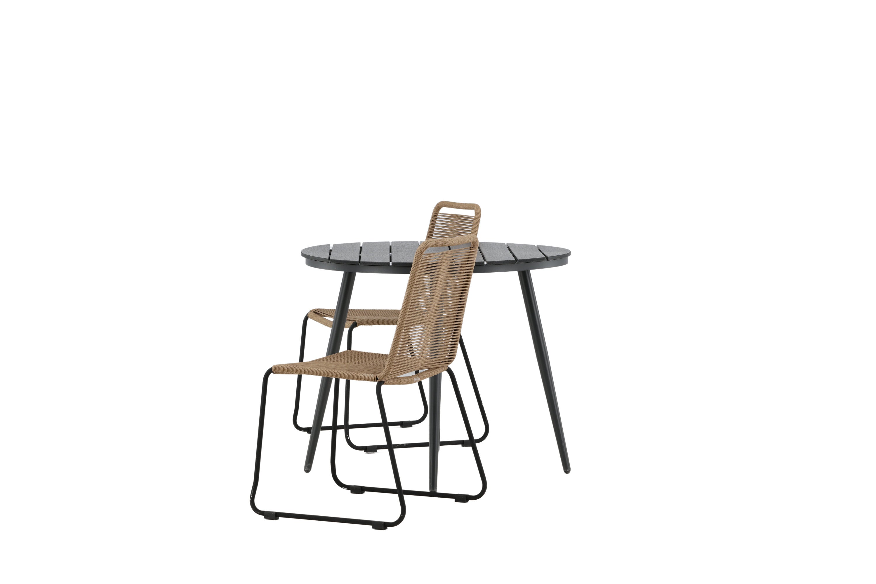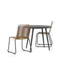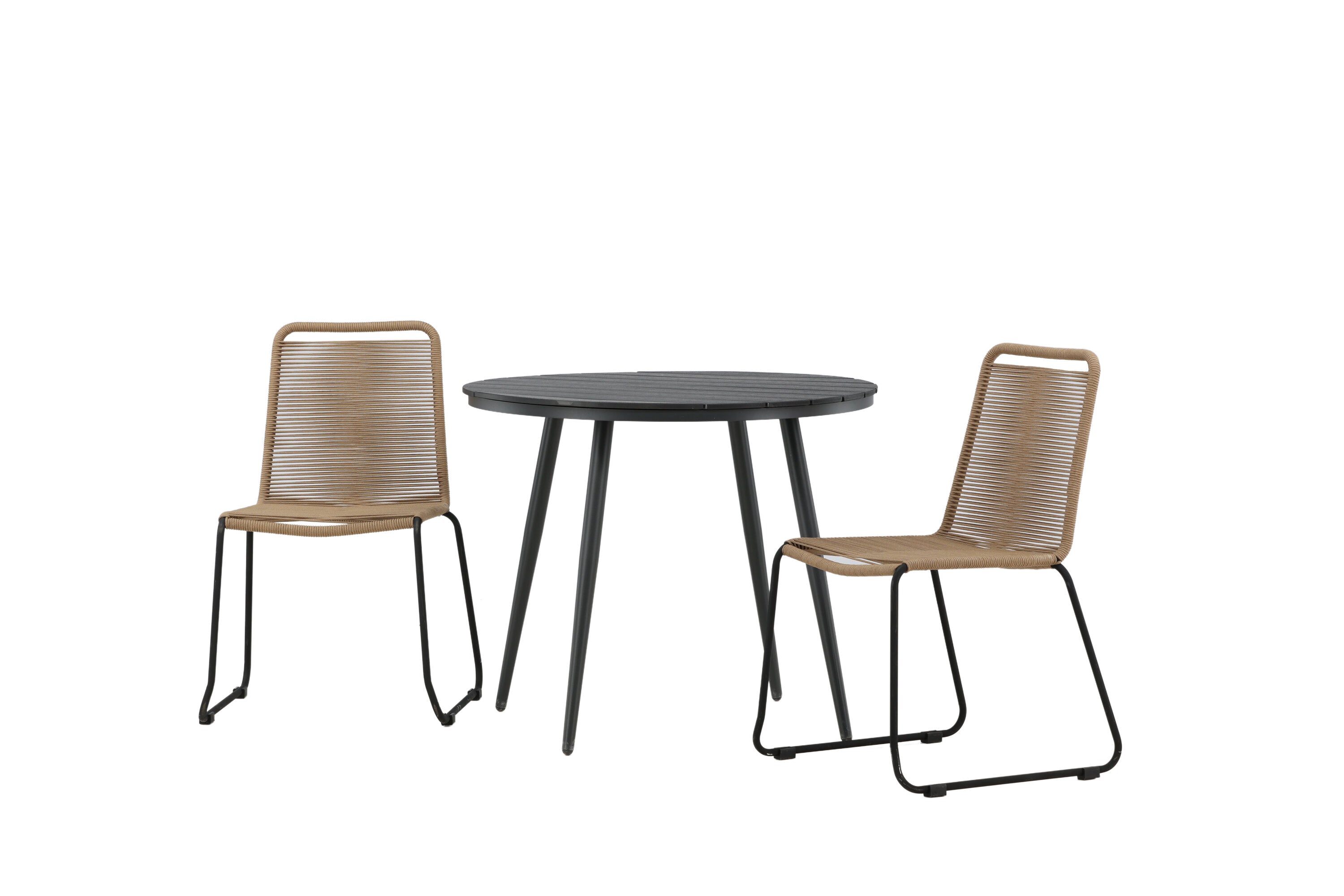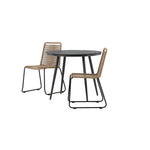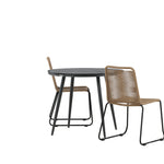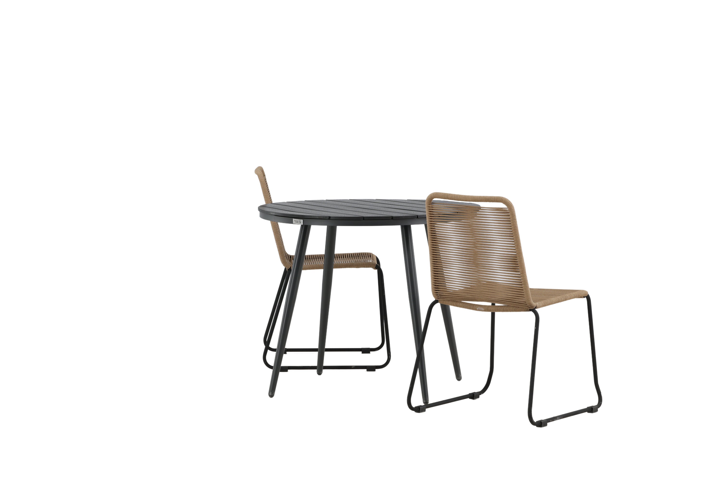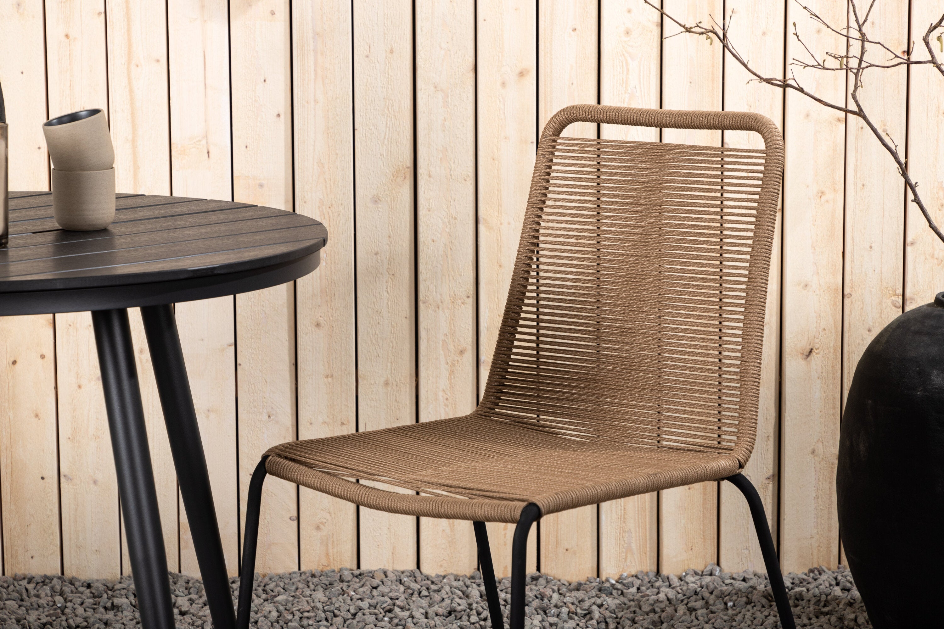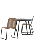 Dokonalé místo pro kávu toto léto! Stůl Break má klasický design s kulatou stolní deskou v Aintwood a černým hliníkovým podvozkem. Rozměry: 90ø cm. Zde v moderní kombinaci se 2 jídelními židlemi v barvě latte ze série Lindos. Židle jsou stohovatelné, mají stylové úzké nohy z černého hliníku a sedák z odolného béžového provazu. Zemitá barva působí na nábytek hřejivě a vytváří na vaší terase okouzlující místo!