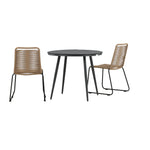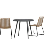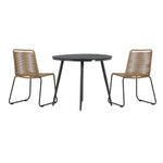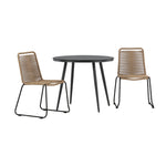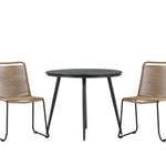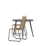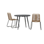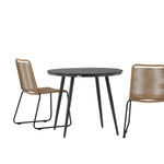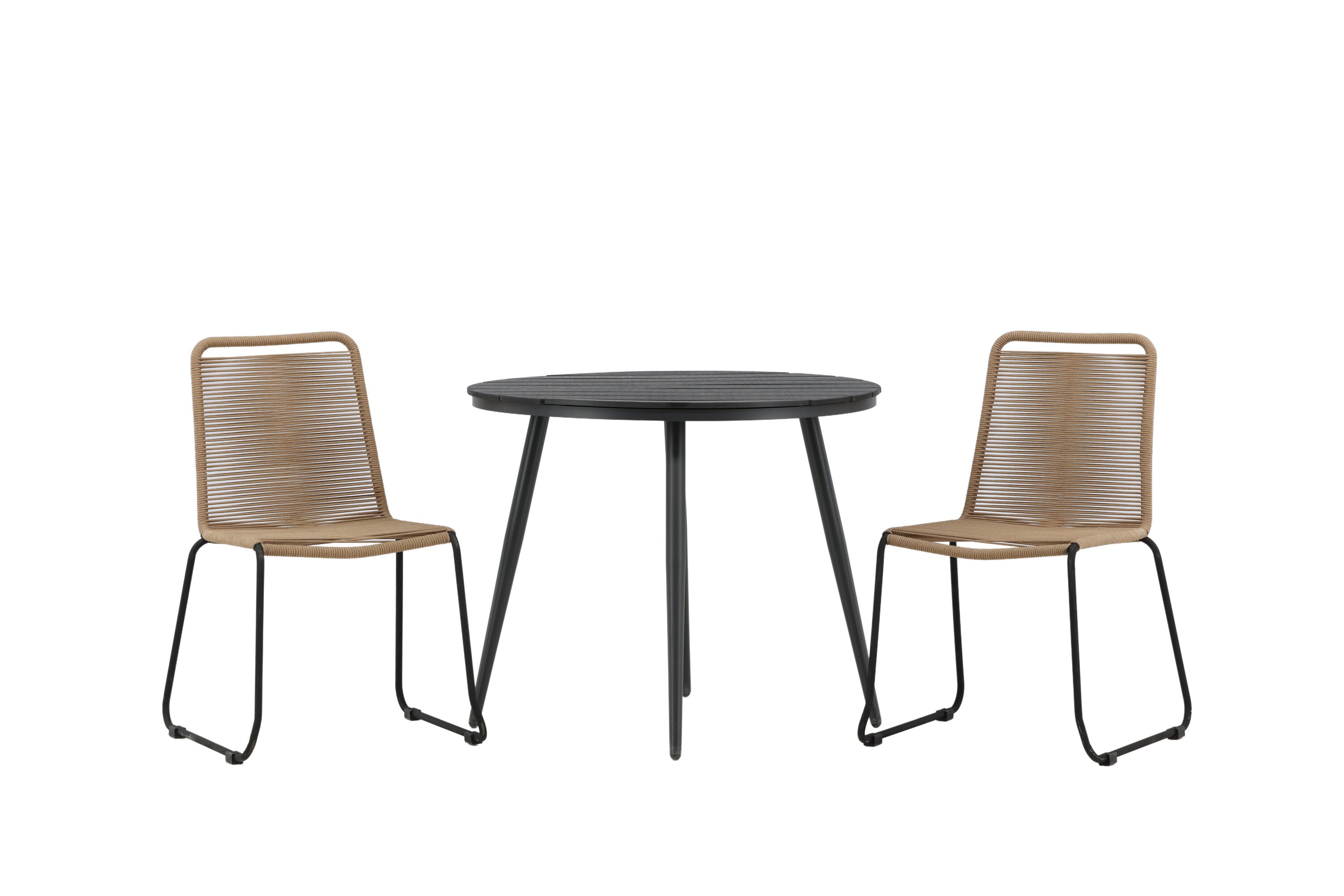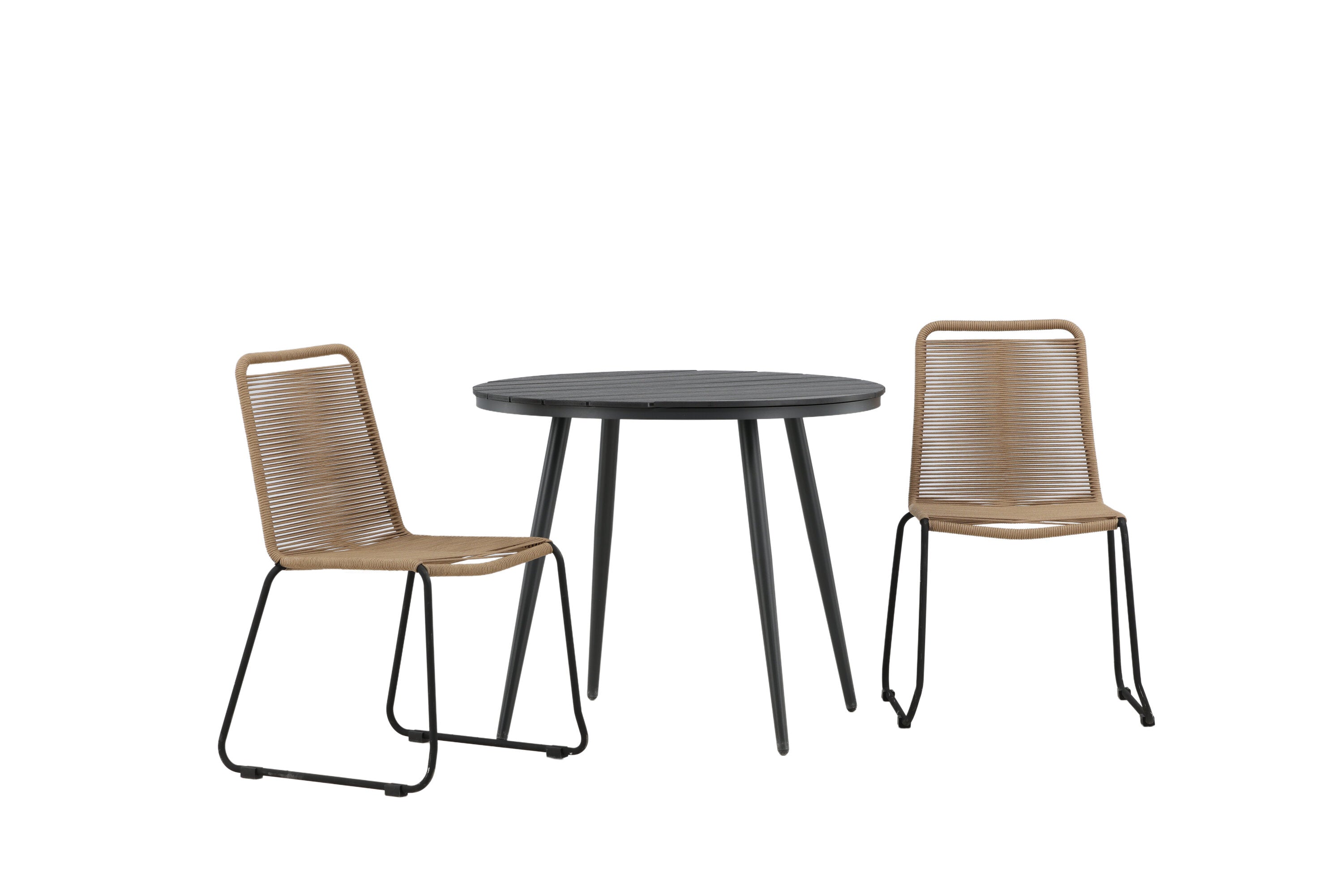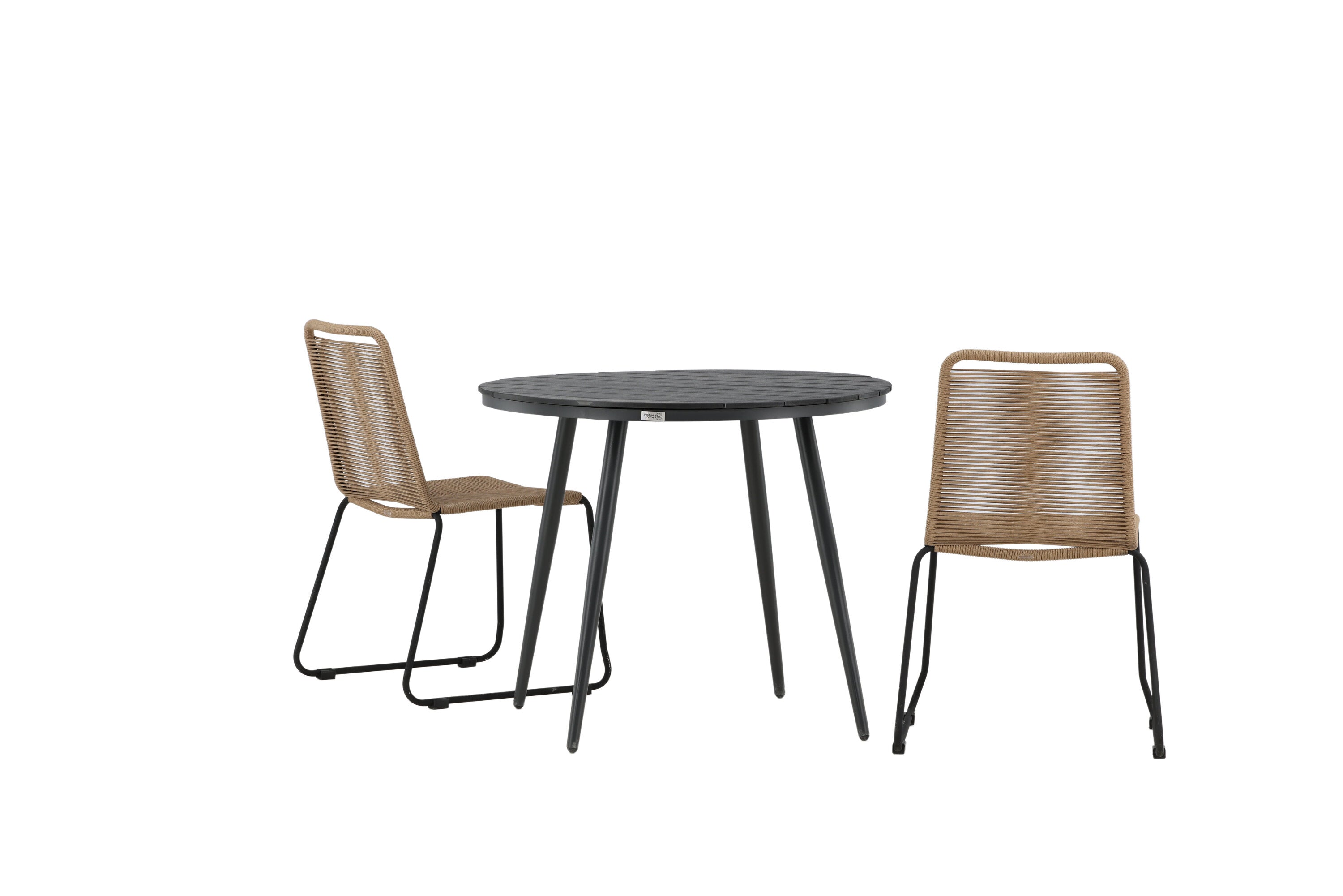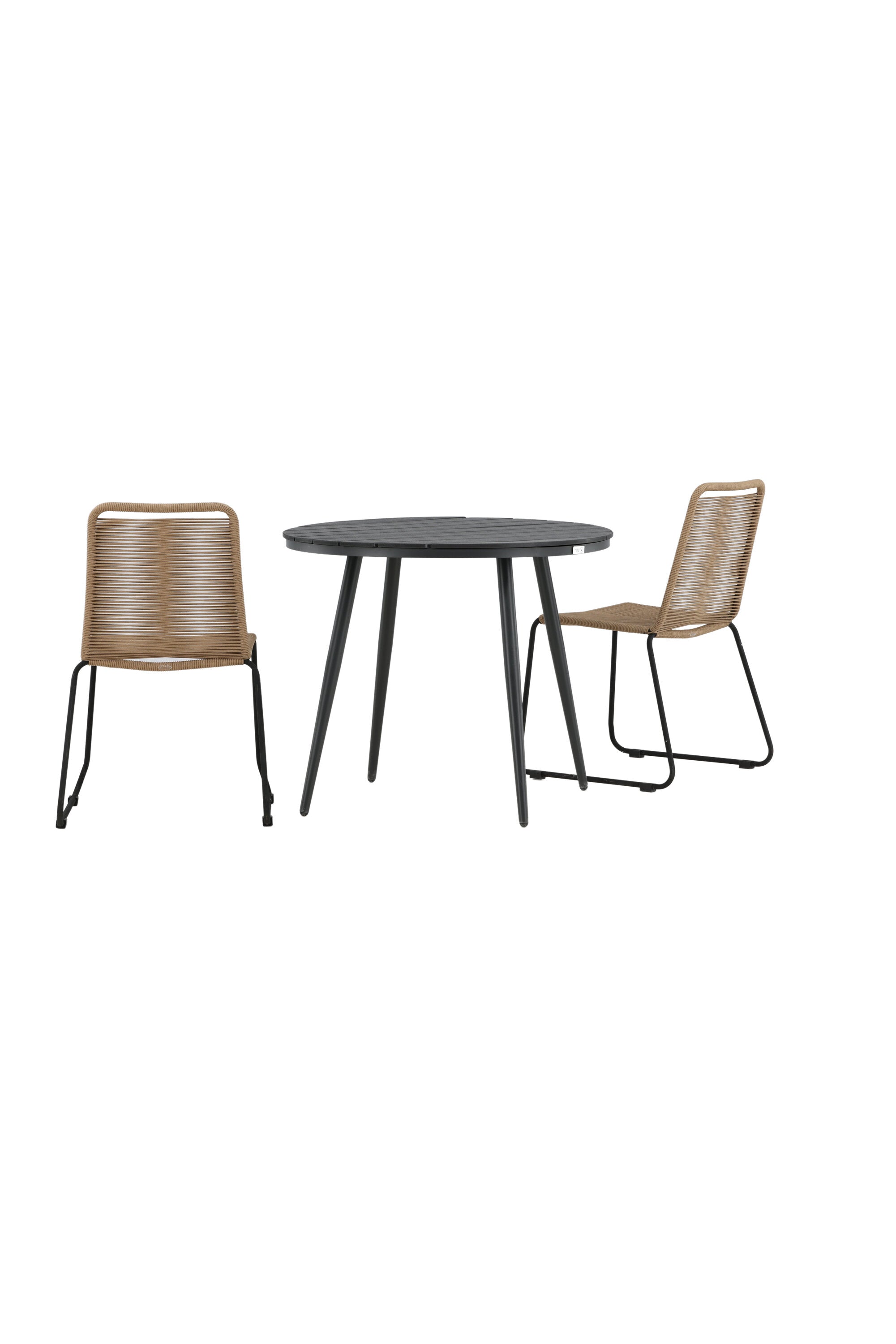 Dokonalé místo pro kávu toto léto! Stůl Break má klasický design s kulatou stolní deskou v Aintwood a černým hliníkovým podvozkem. Rozměry: 90ø cm. Zde v moderní kombinaci se 2 jídelními židlemi v barvě latte ze série Lindos. Židle jsou stohovatelné, mají stylové úzké nohy z černého hliníku a sedák z odolného béžového provazu. Zemitá barva působí na nábytek hřejivě a vytváří na vaší terase okouzlující místo!