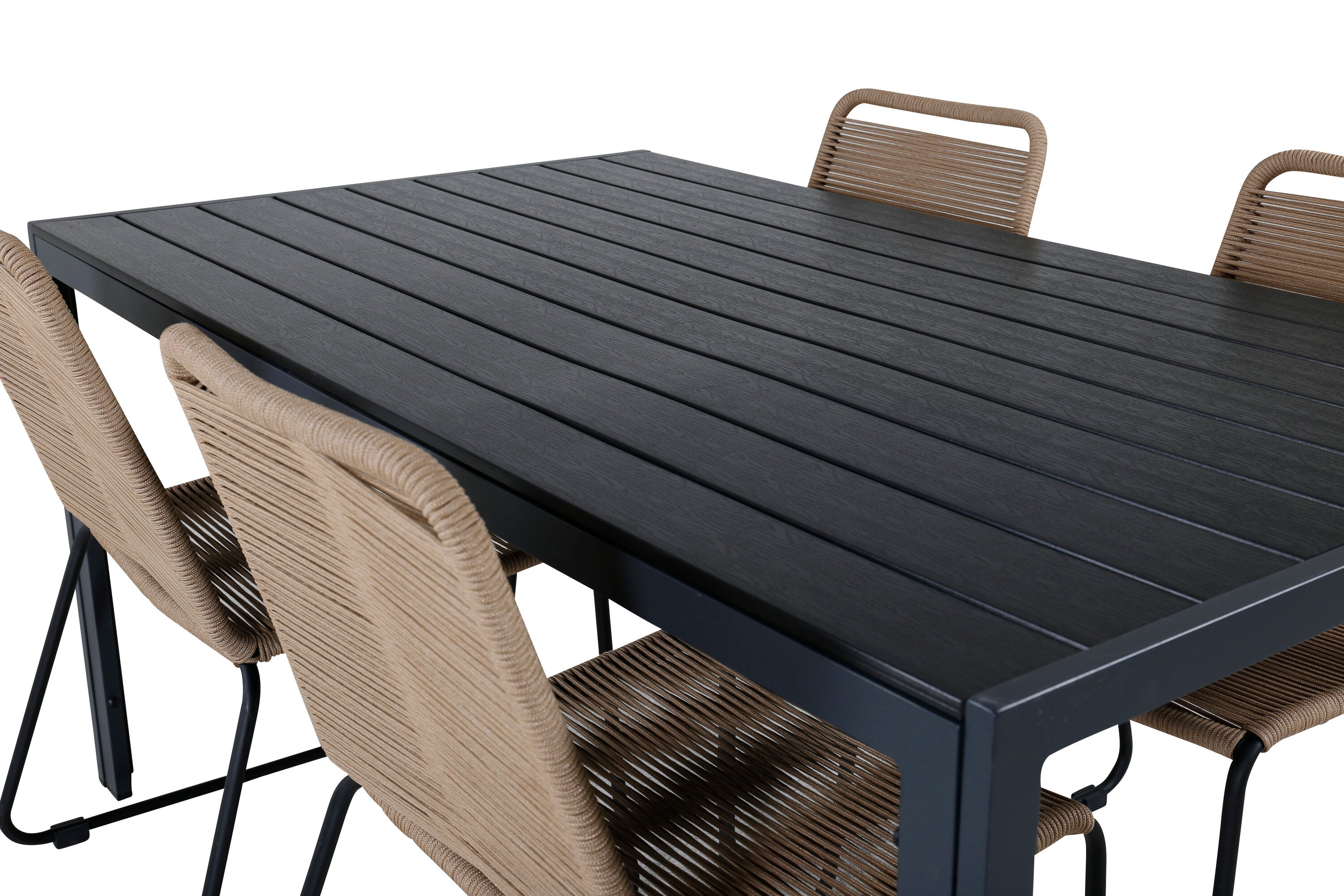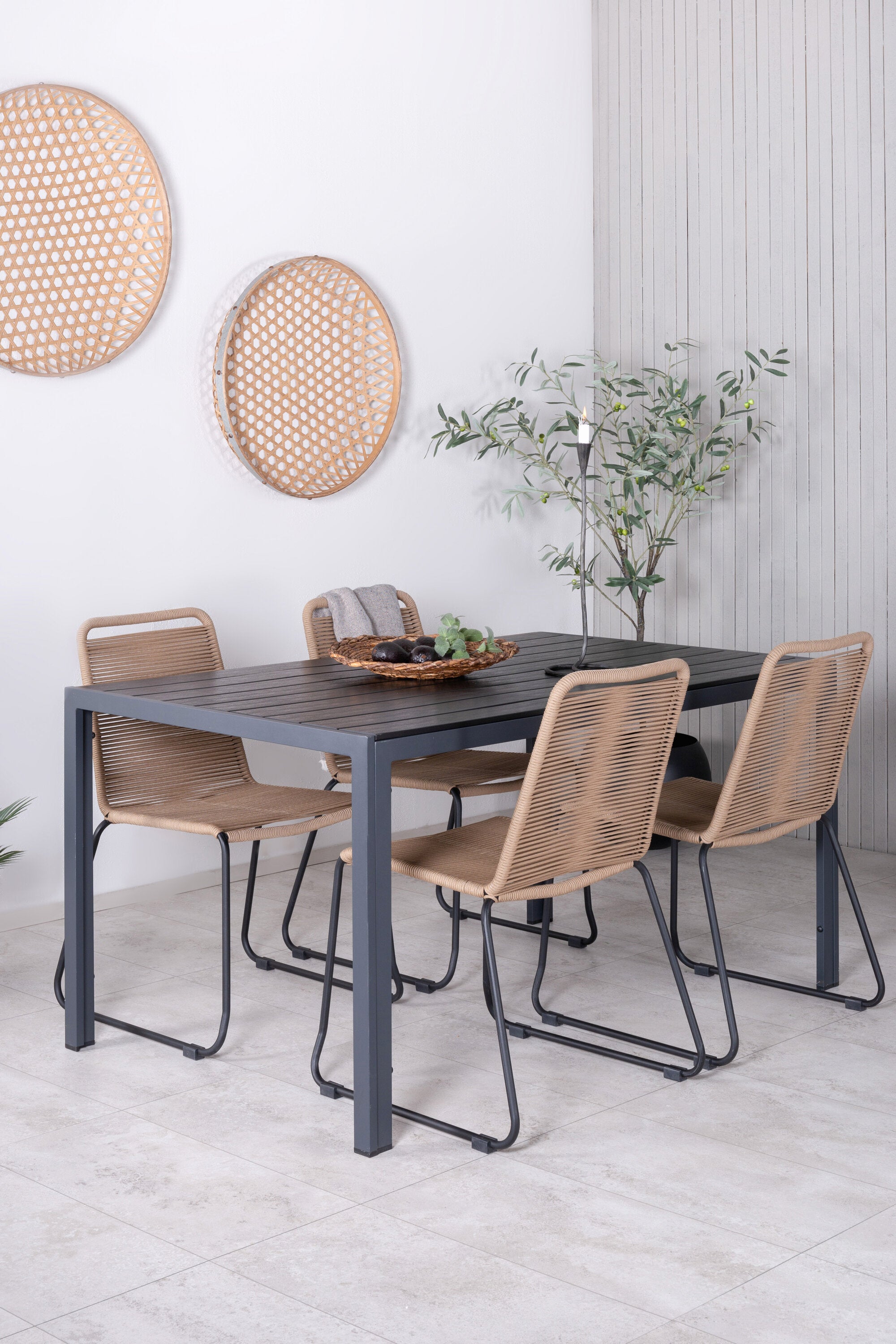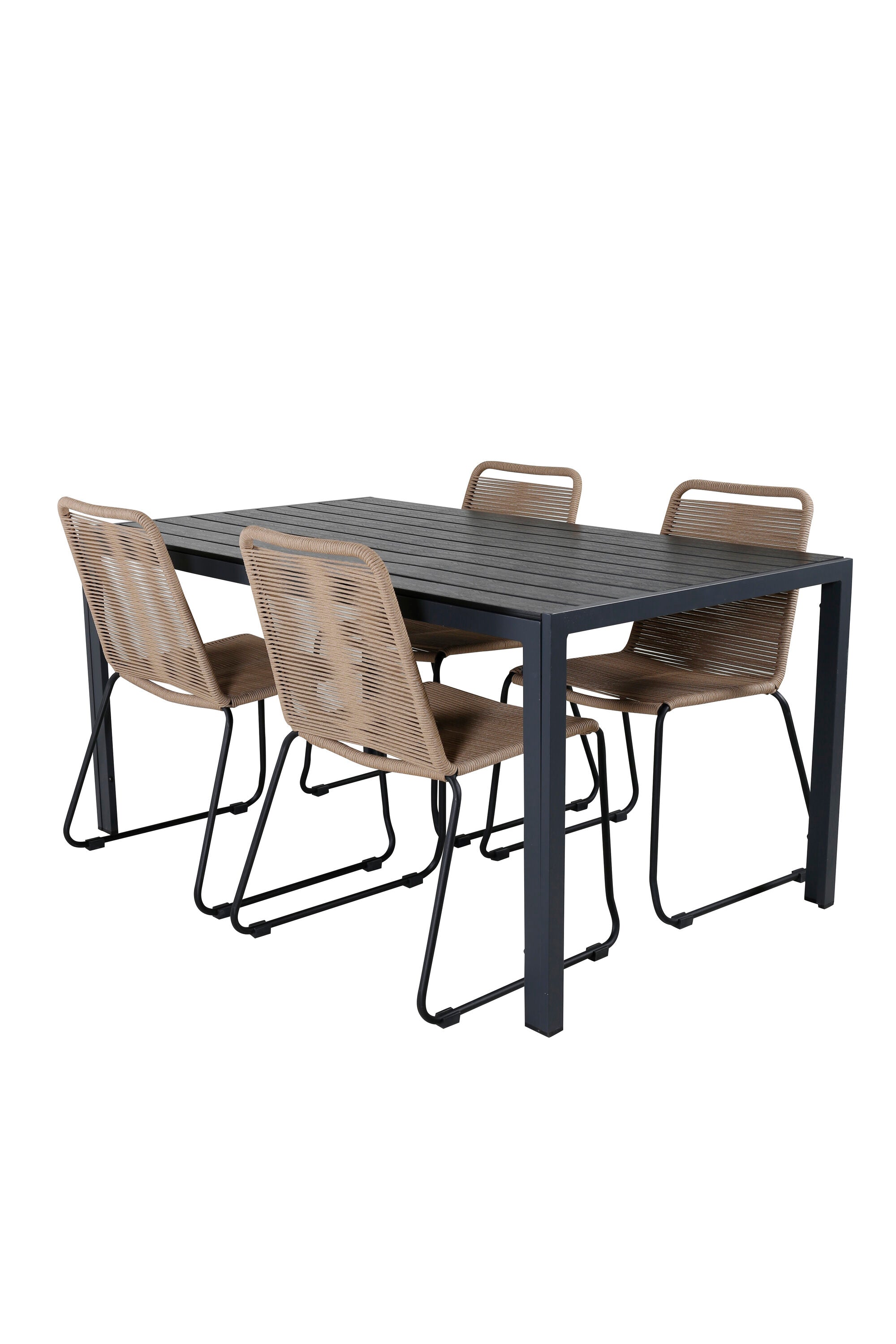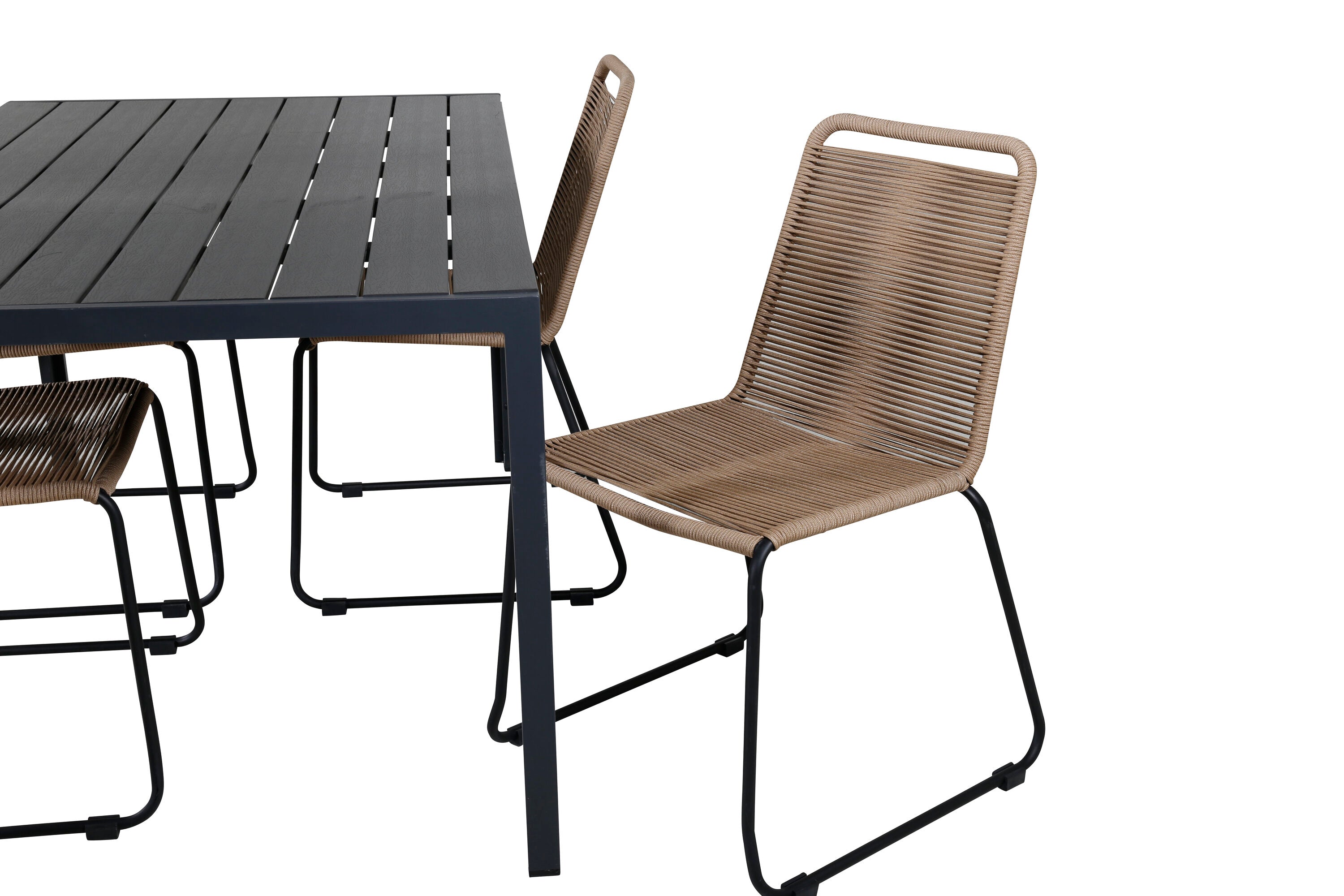 Break Table 150*90 - Black/Black+Lindos Stohovací židle - Black Alu / Latte Rope_4