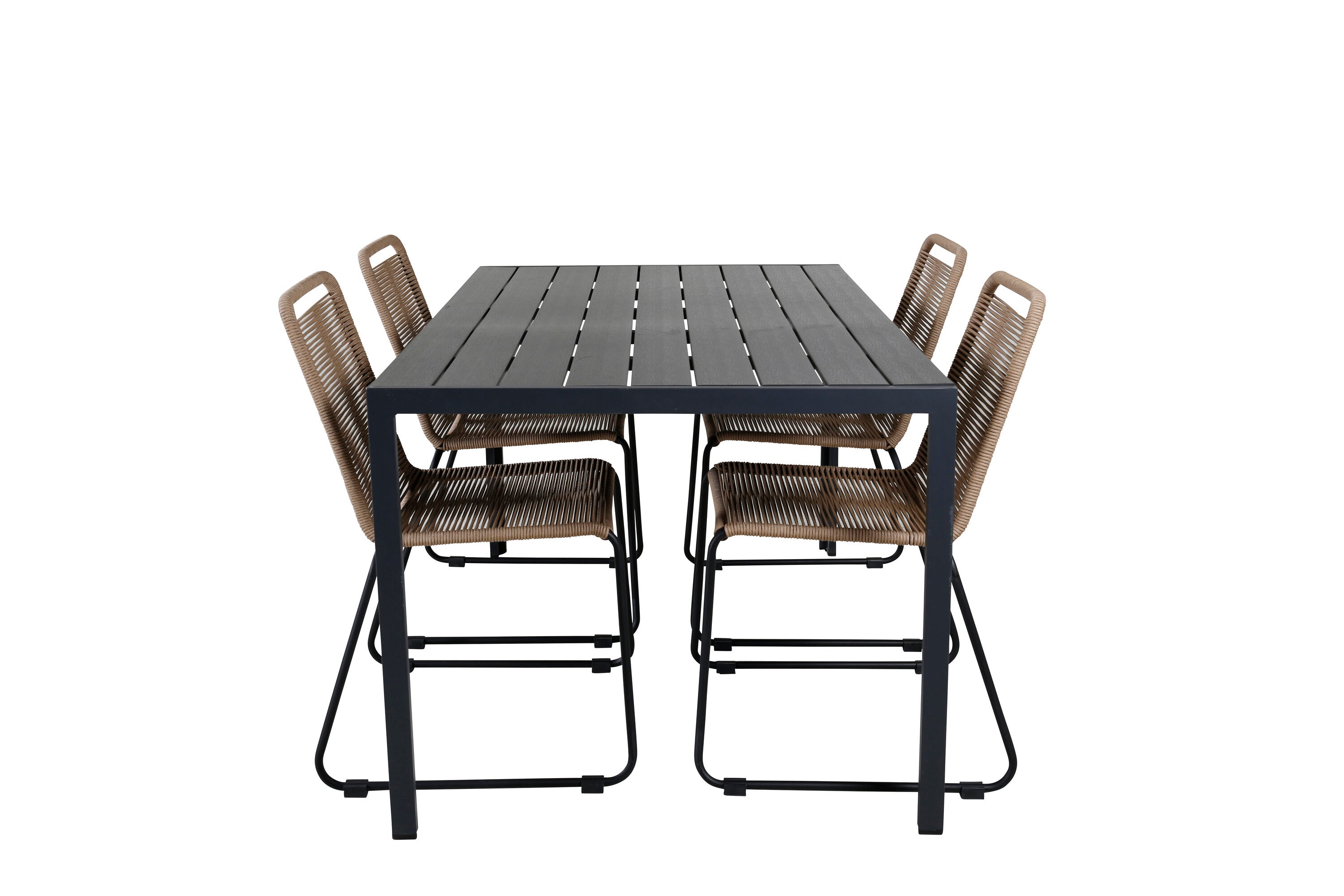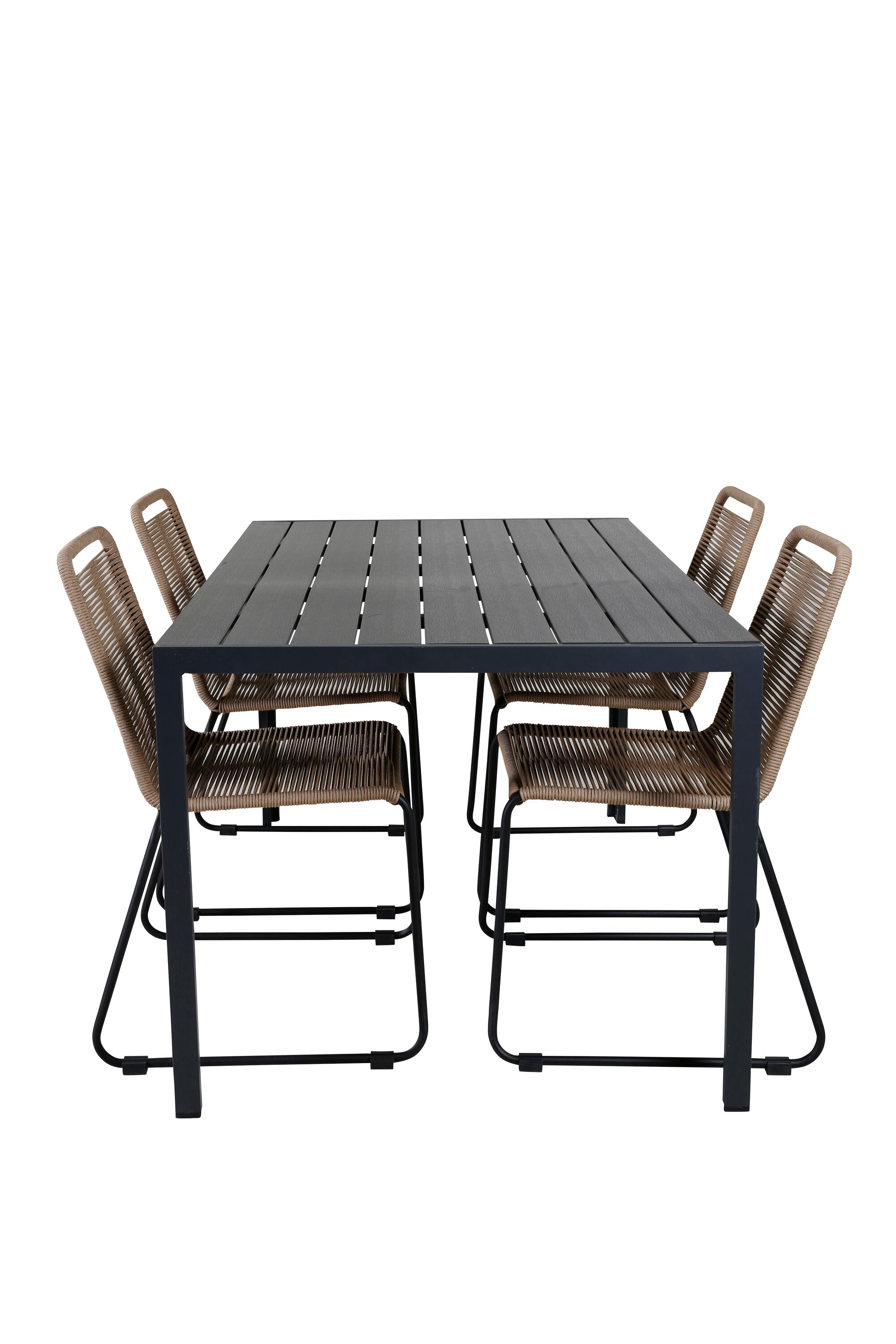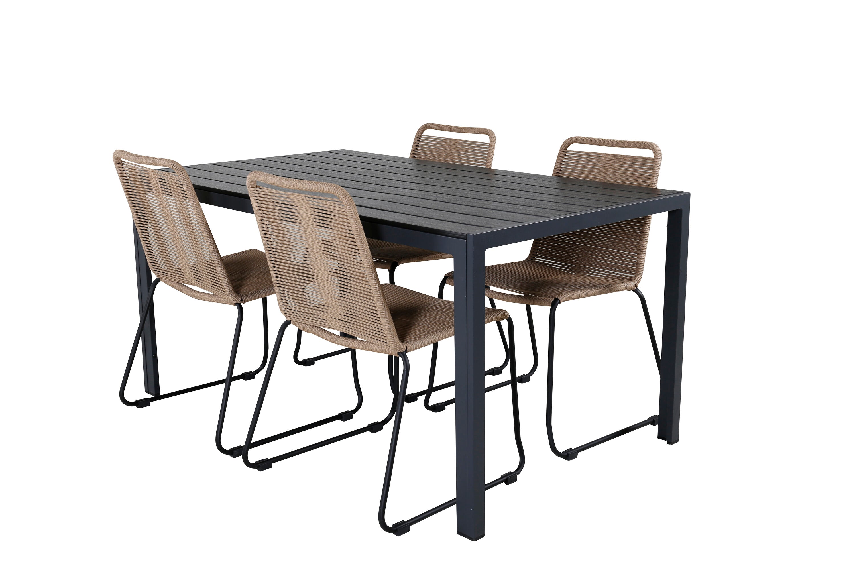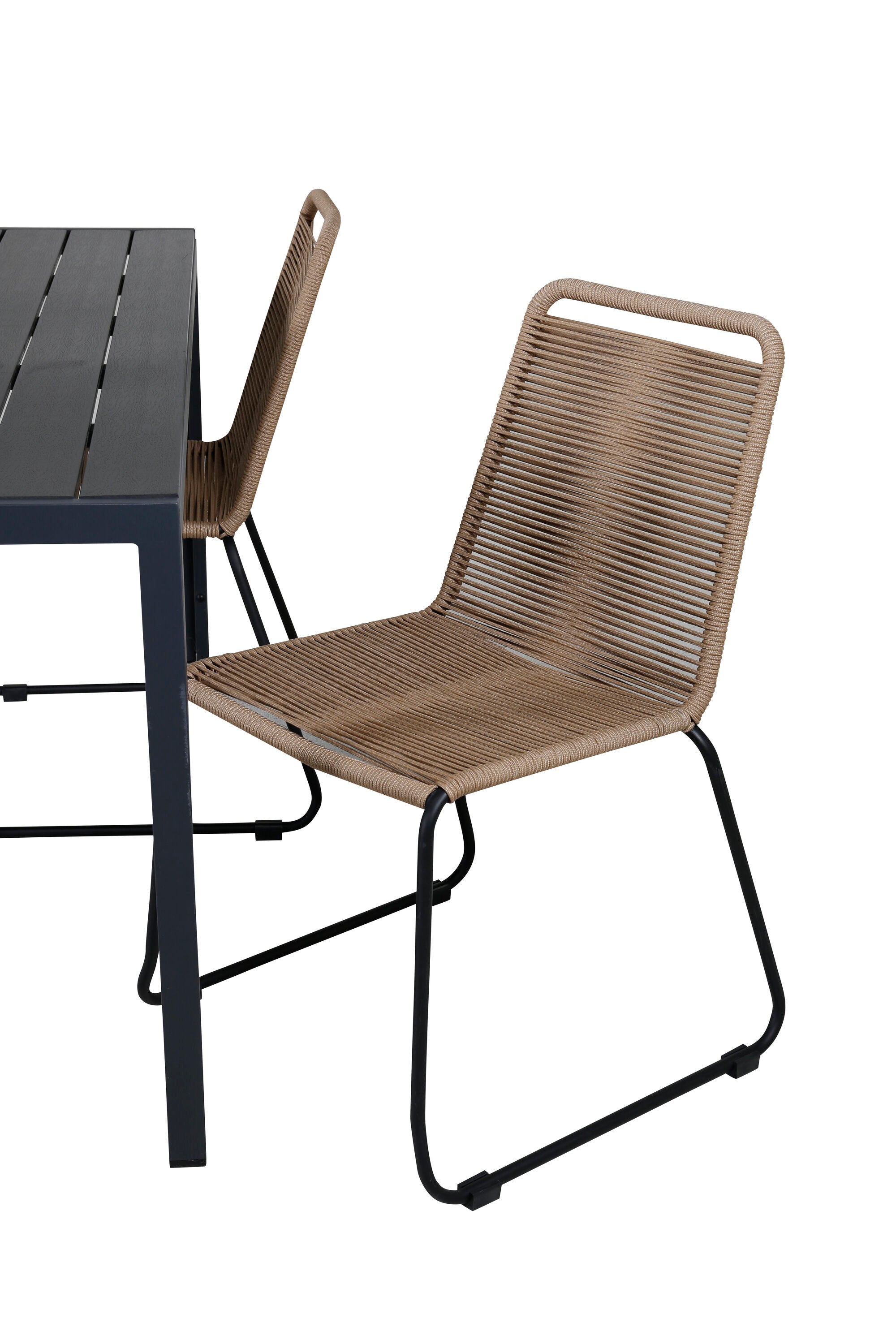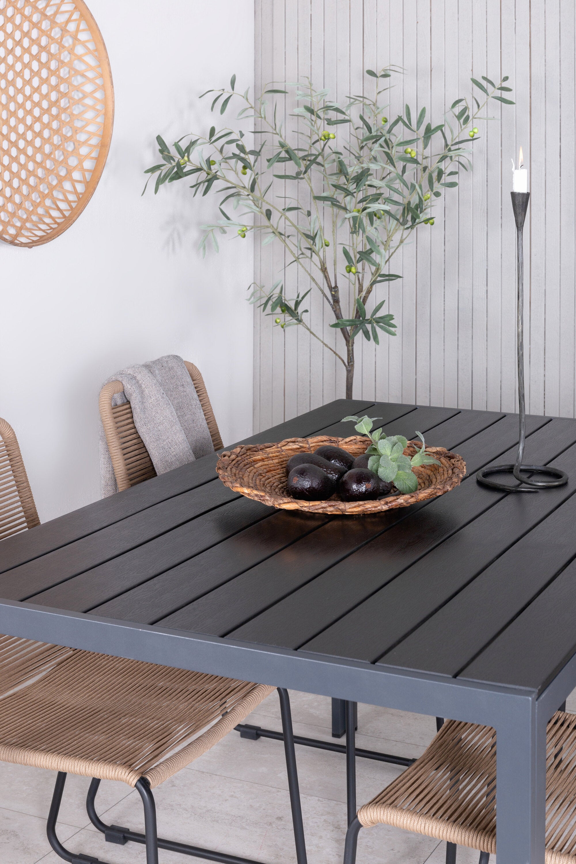 Break Table 150*90 - Black/Black+Lindos Stohovací židle - Black Alu / Latte Rope_4