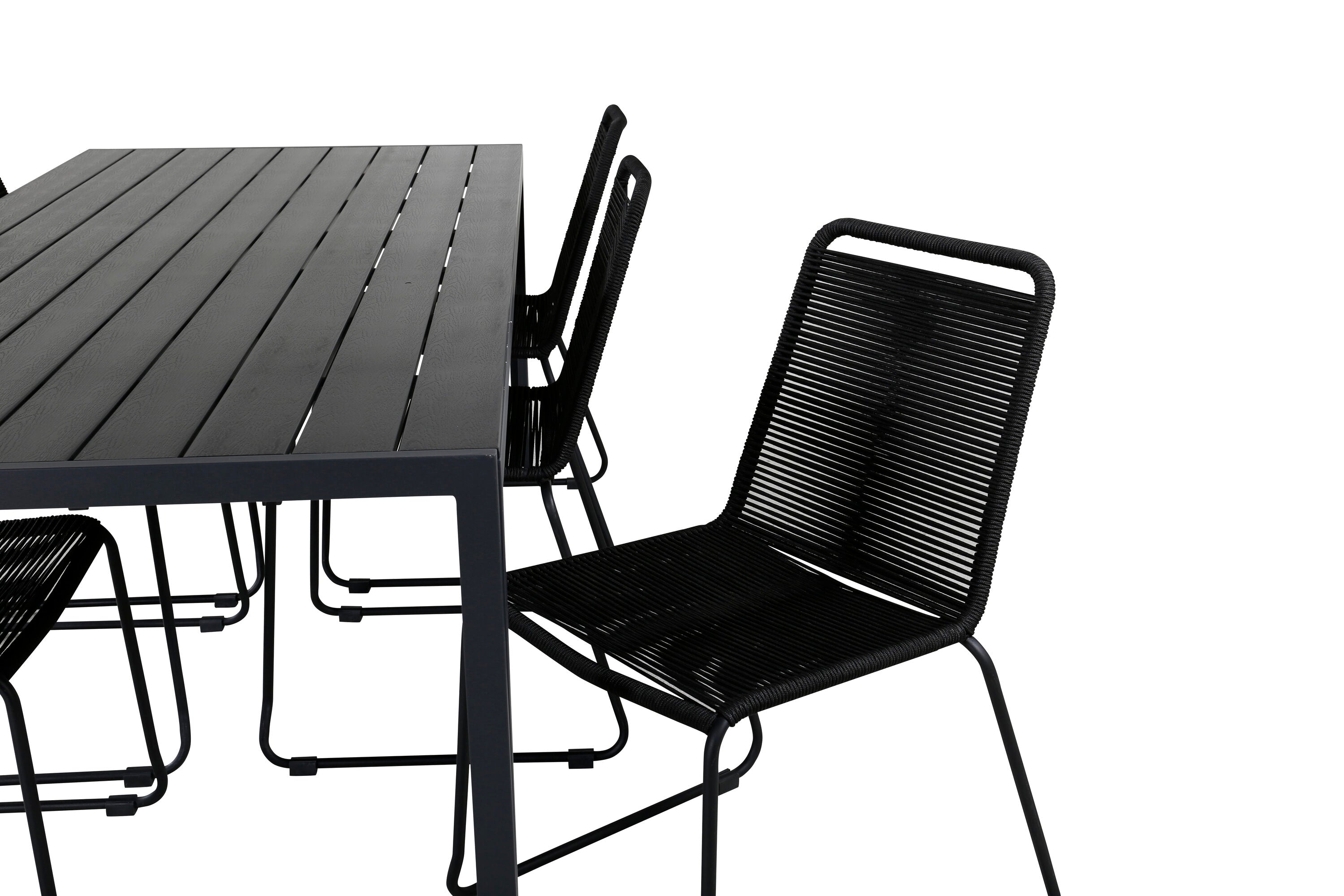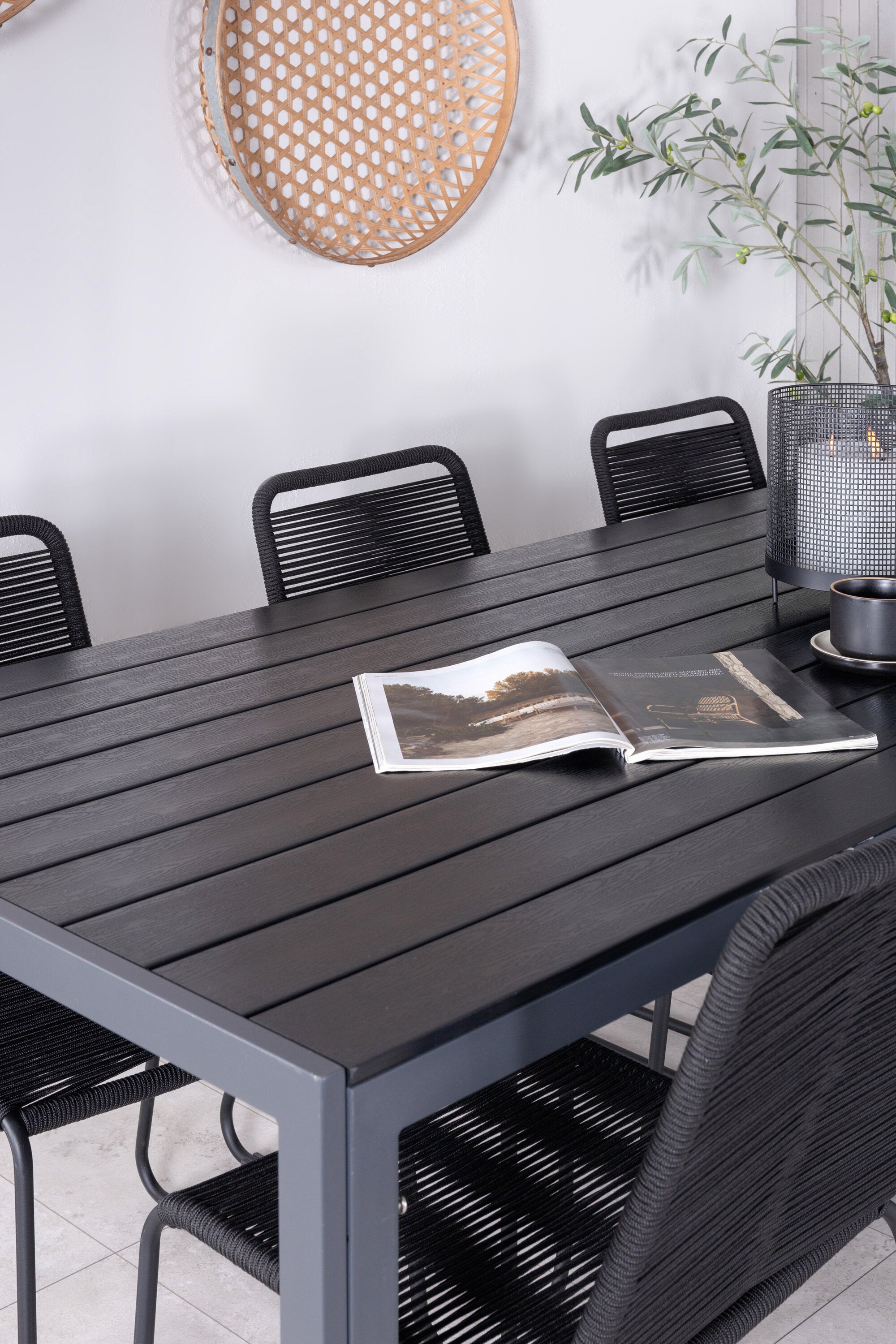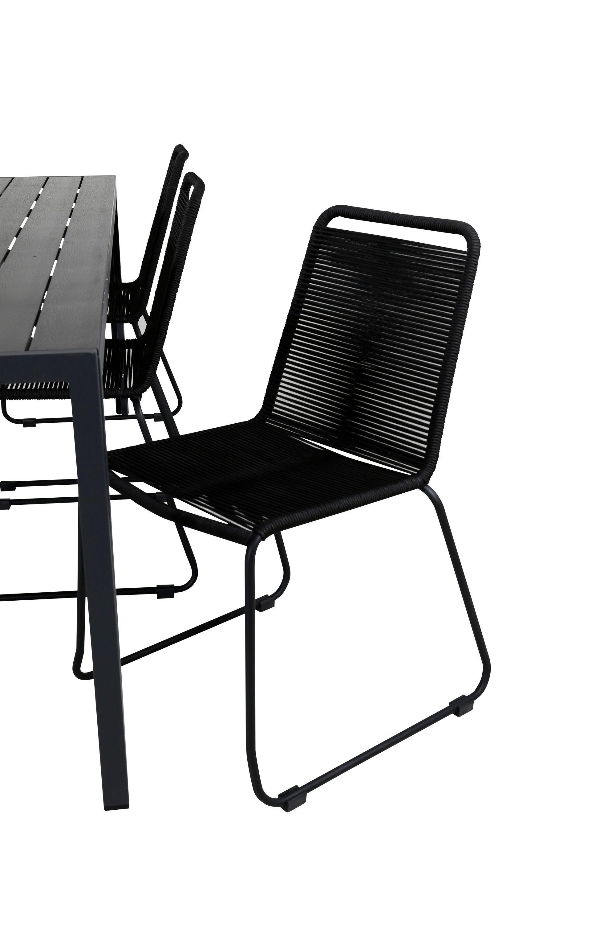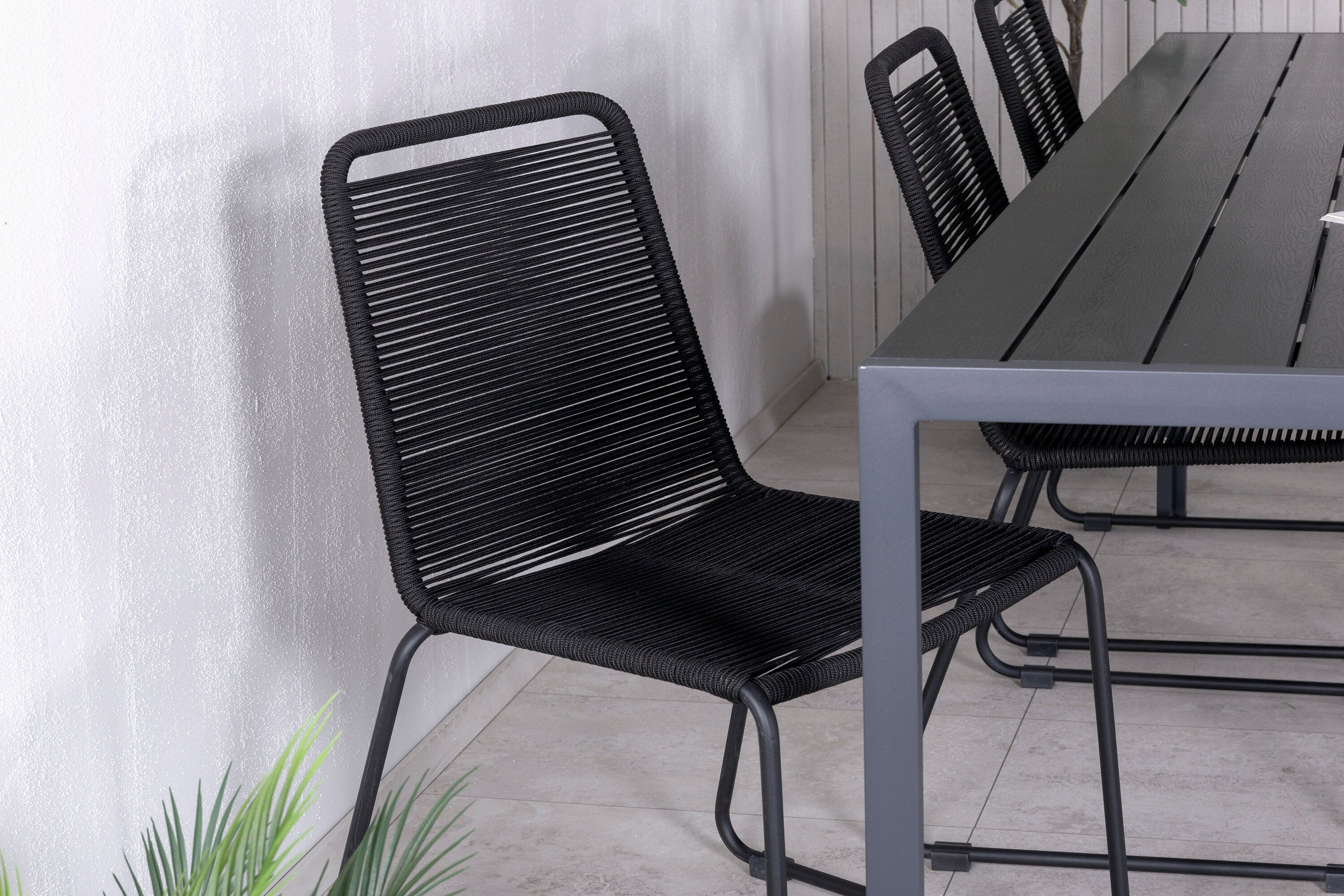 Break Table 205*90 - Black/Black+Lindos Stohovací židle - Black Alu / Black Rope_6