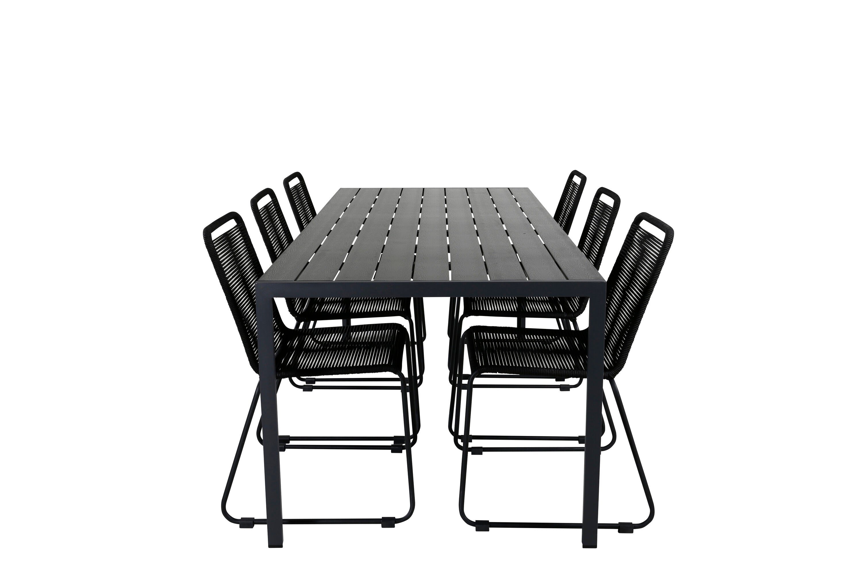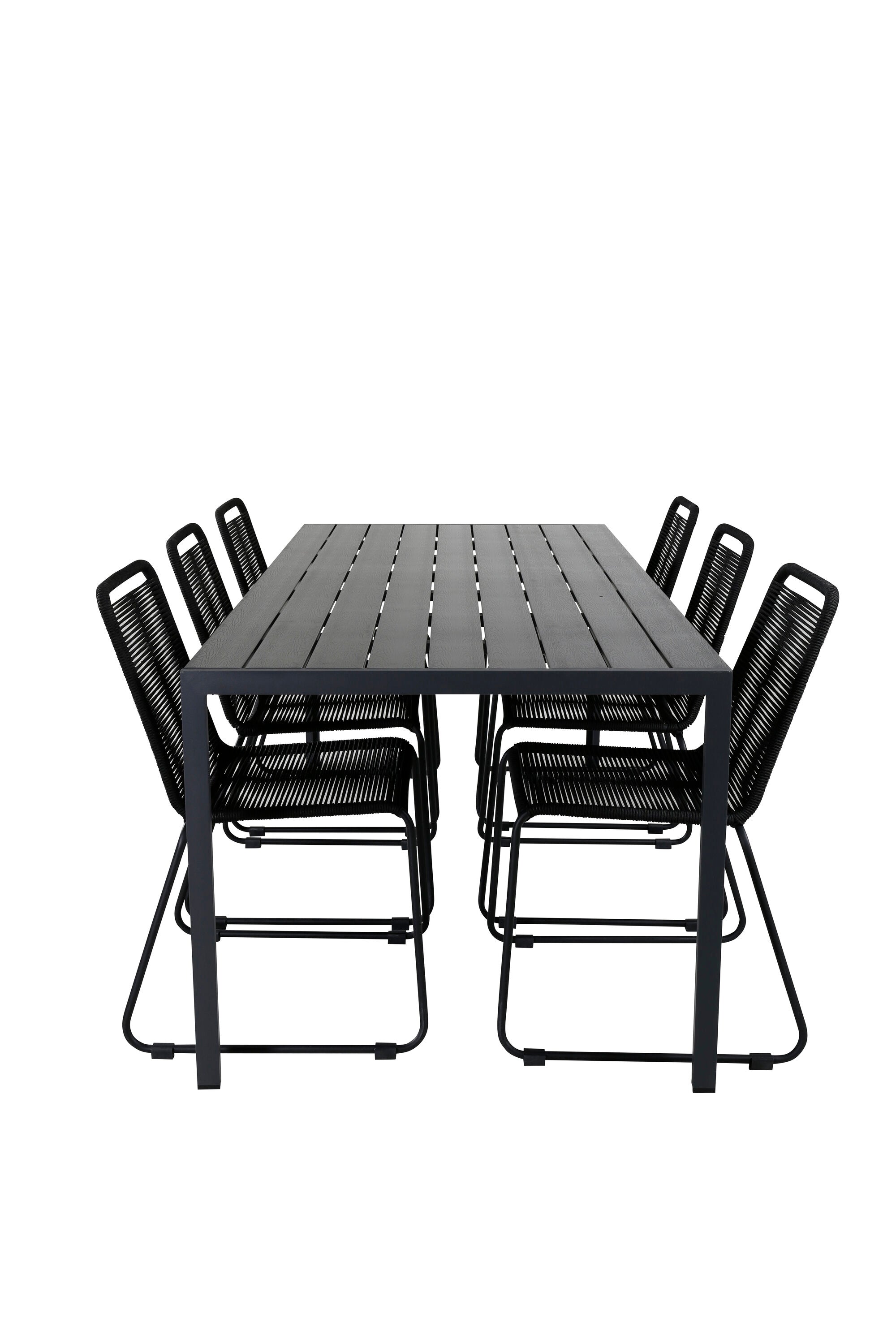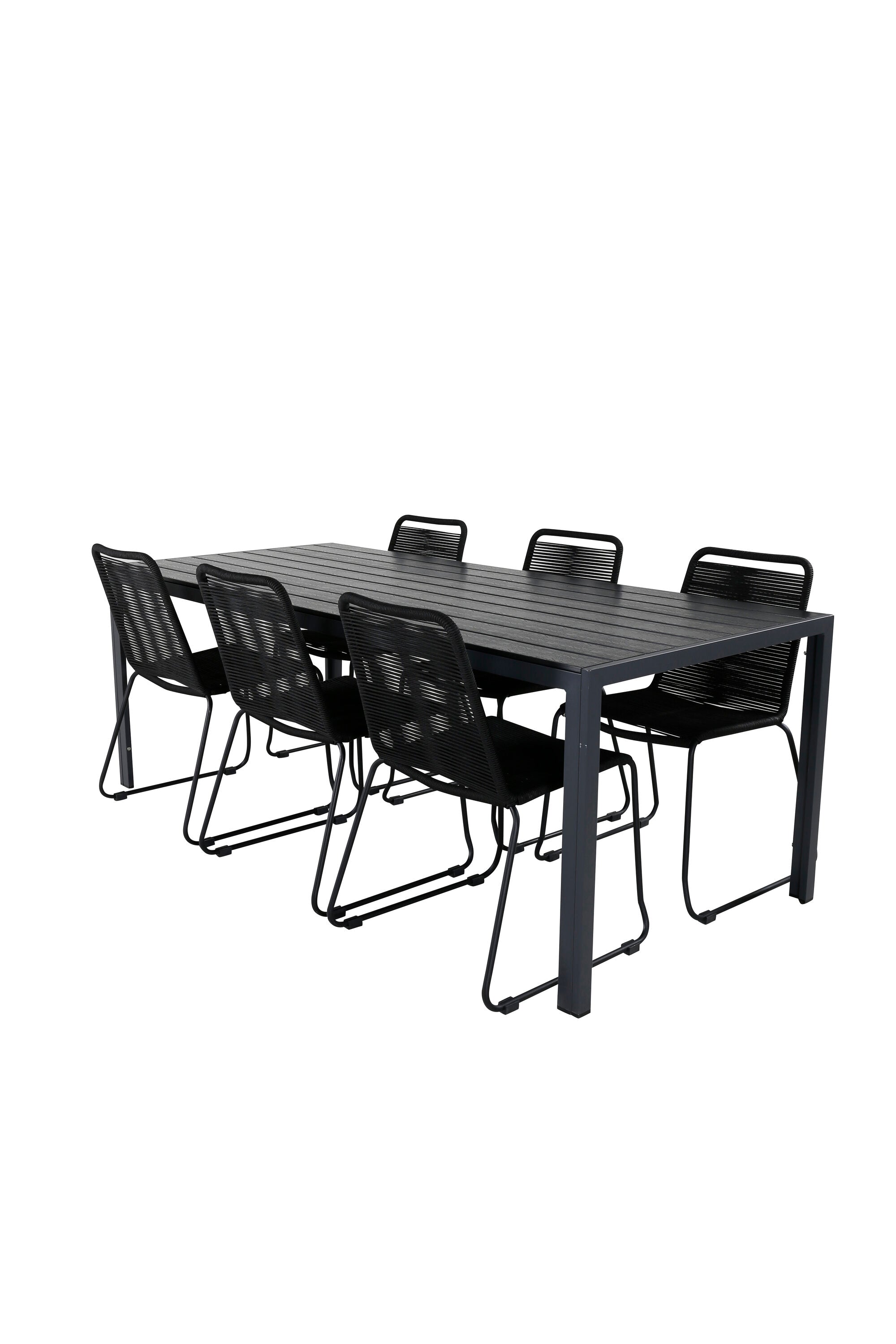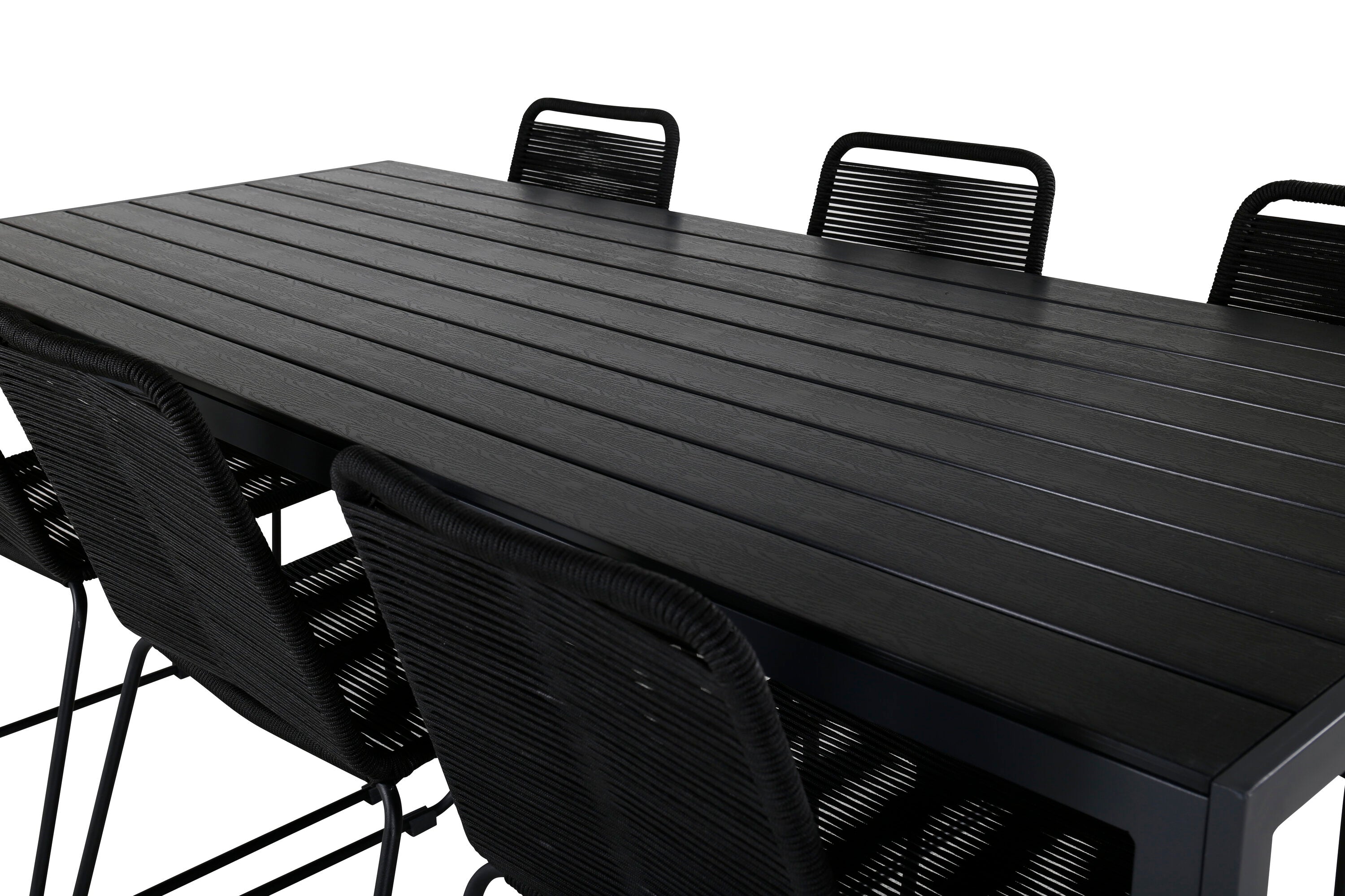 Break Table 205*90 - Black/Black+Lindos Stohovací židle - Black Alu / Black Rope_6