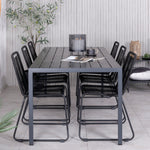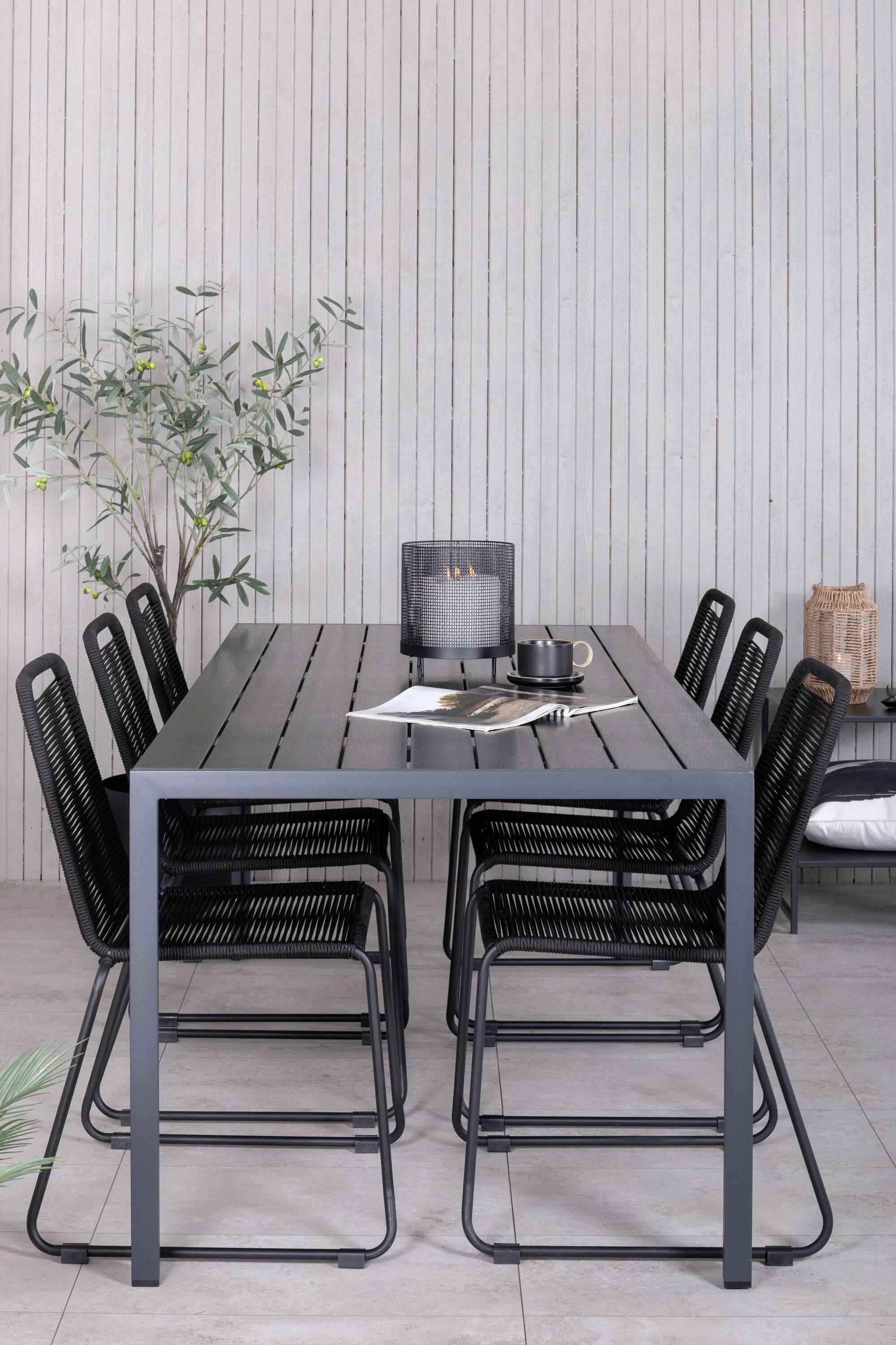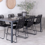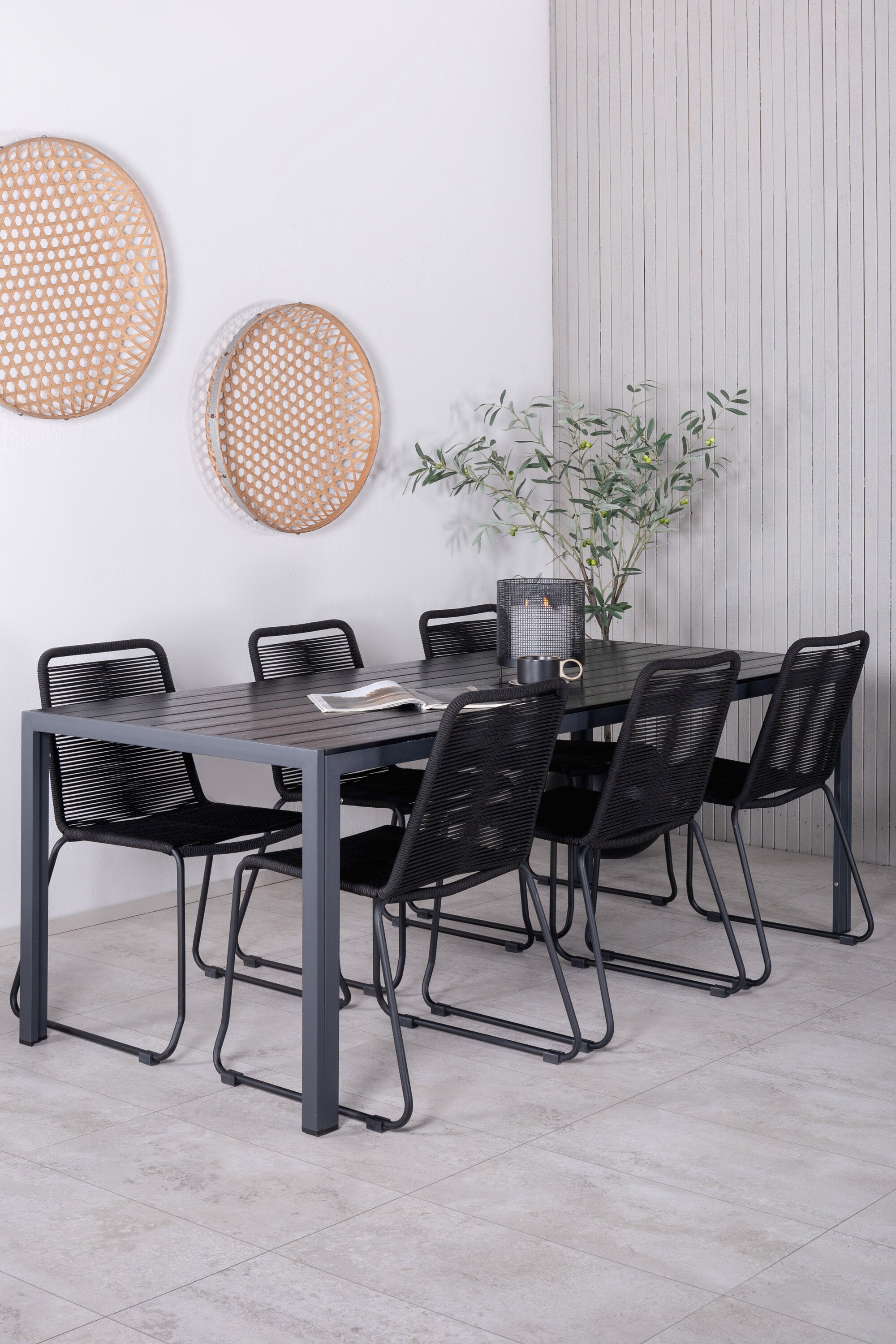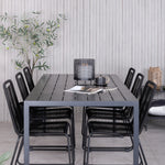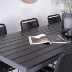 Klasická skupina jídel s příjemným pocitem, která se hodí na většinu teras! Rozložení jídelního stolu spolu s černými jídelními židlemi ze série Lindos jsou jako dělané pro ty, kteří chtějí vytvořit trendy a nadčasovou atmosféru. Připravte se na letní nádherný noční život!