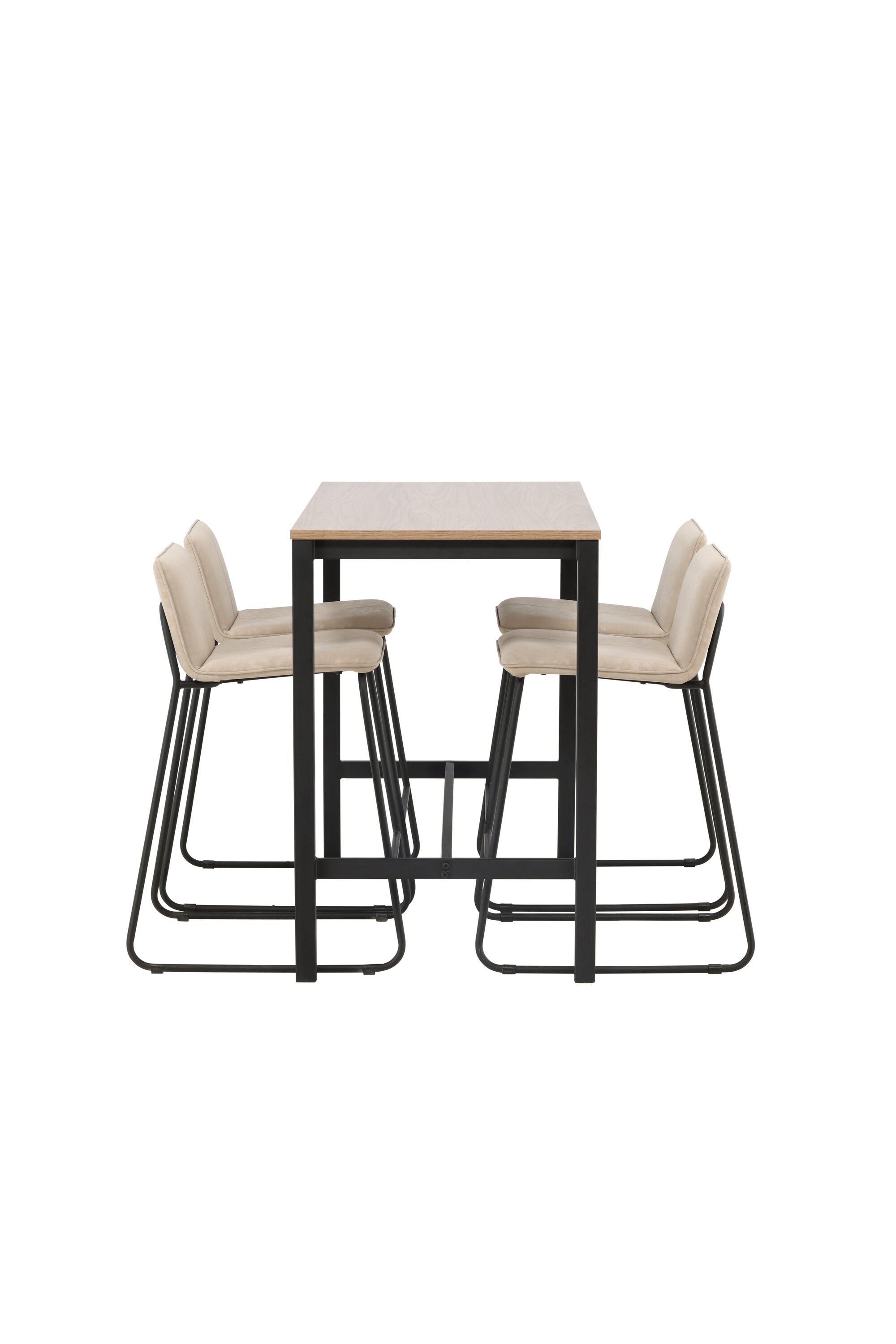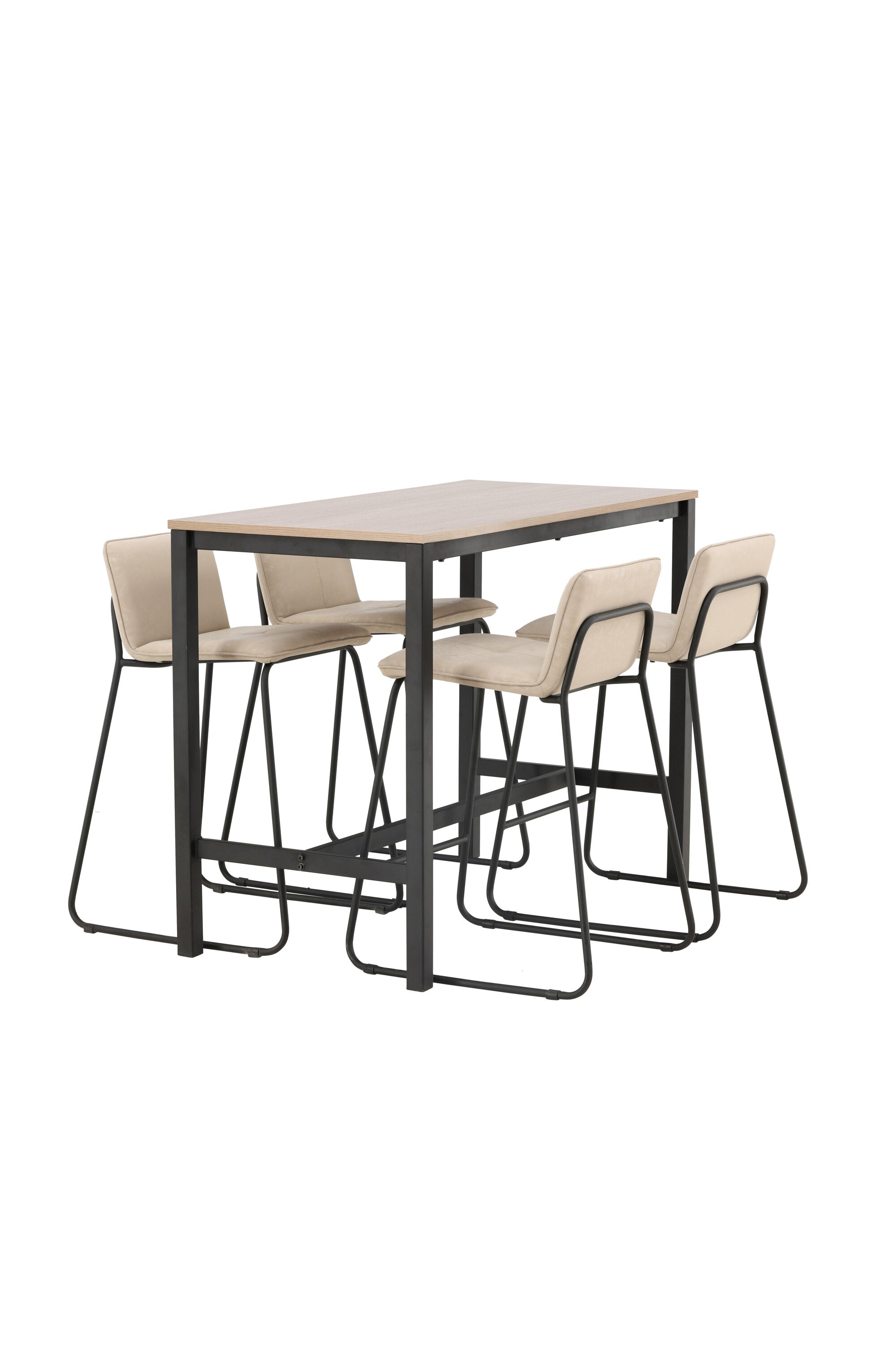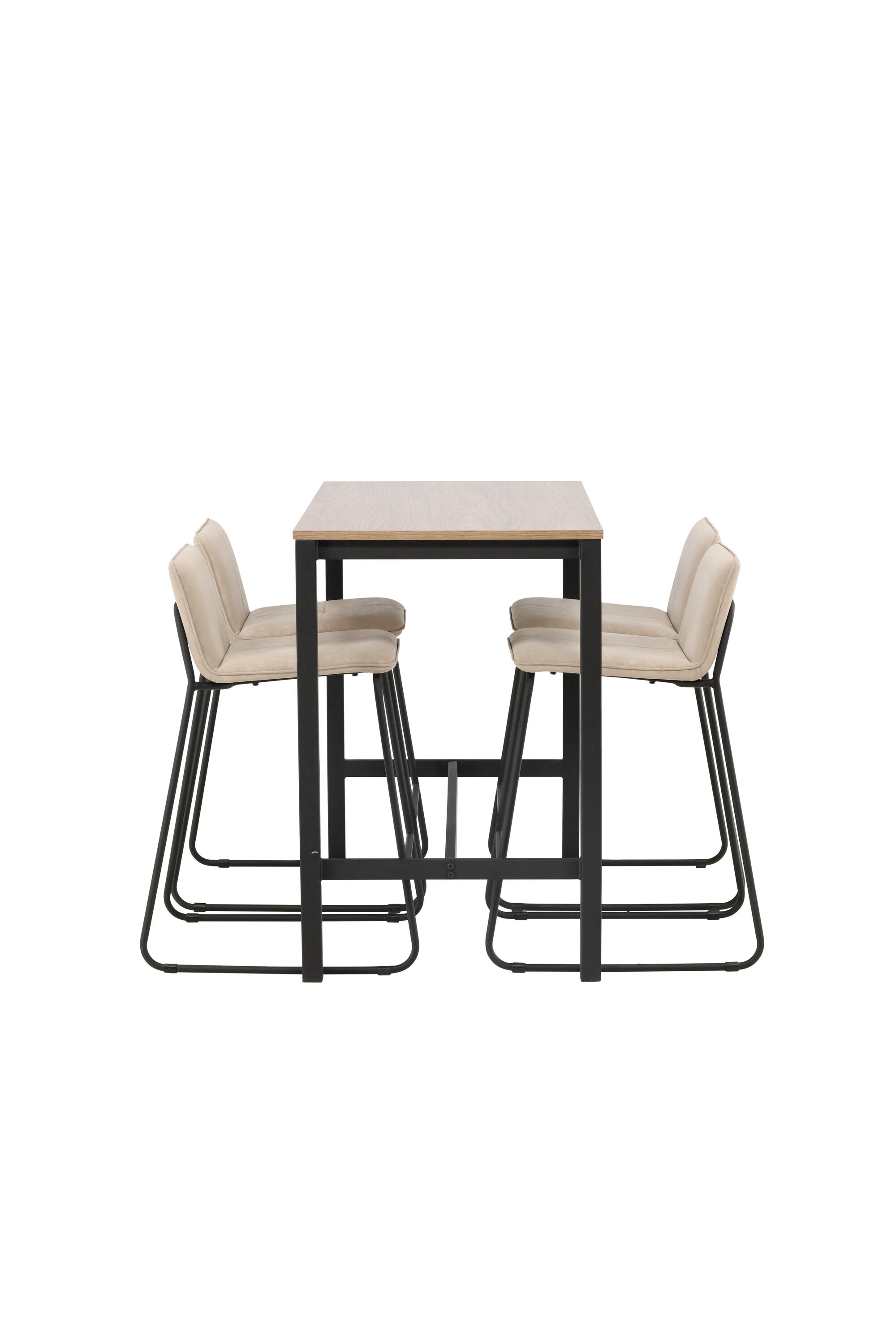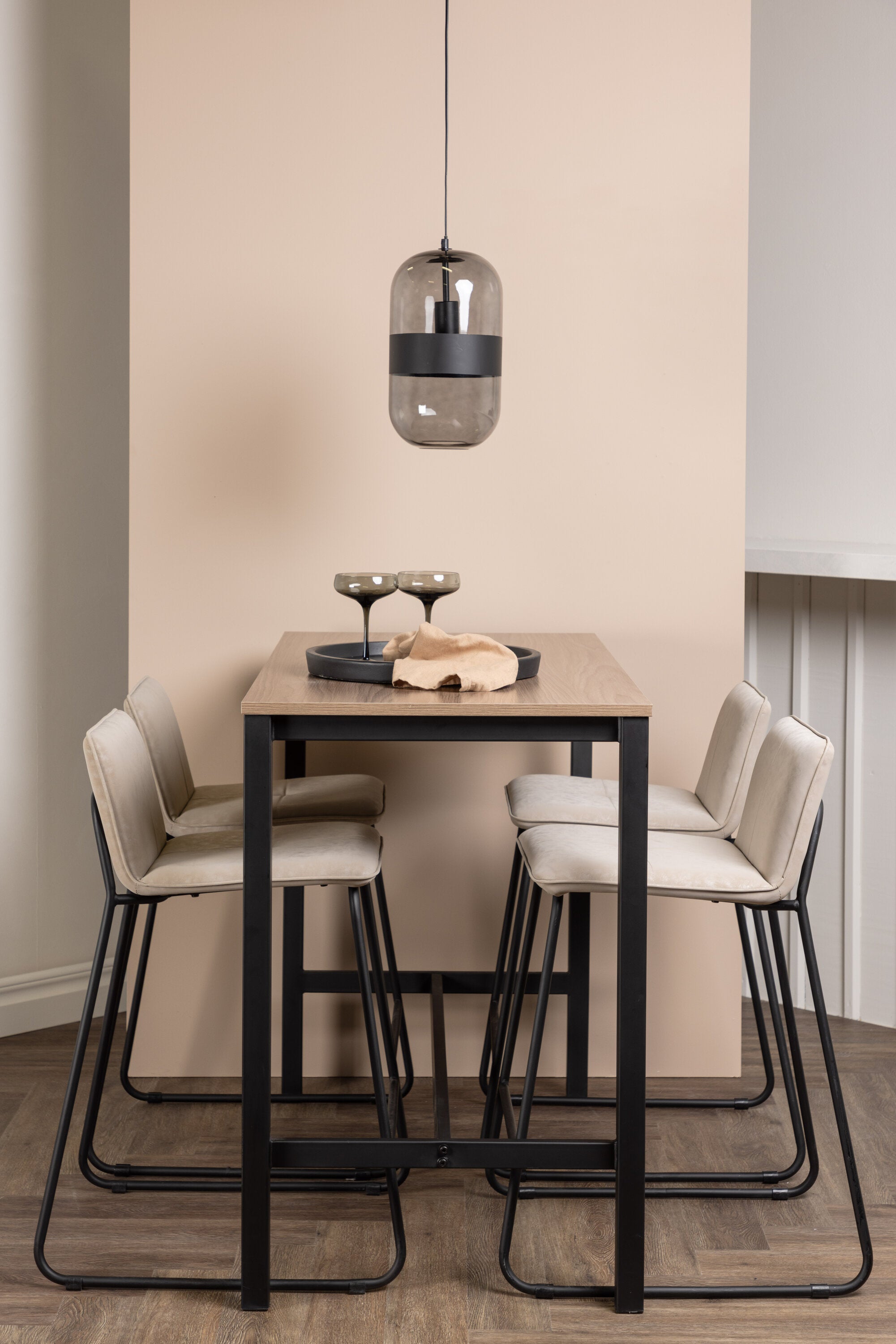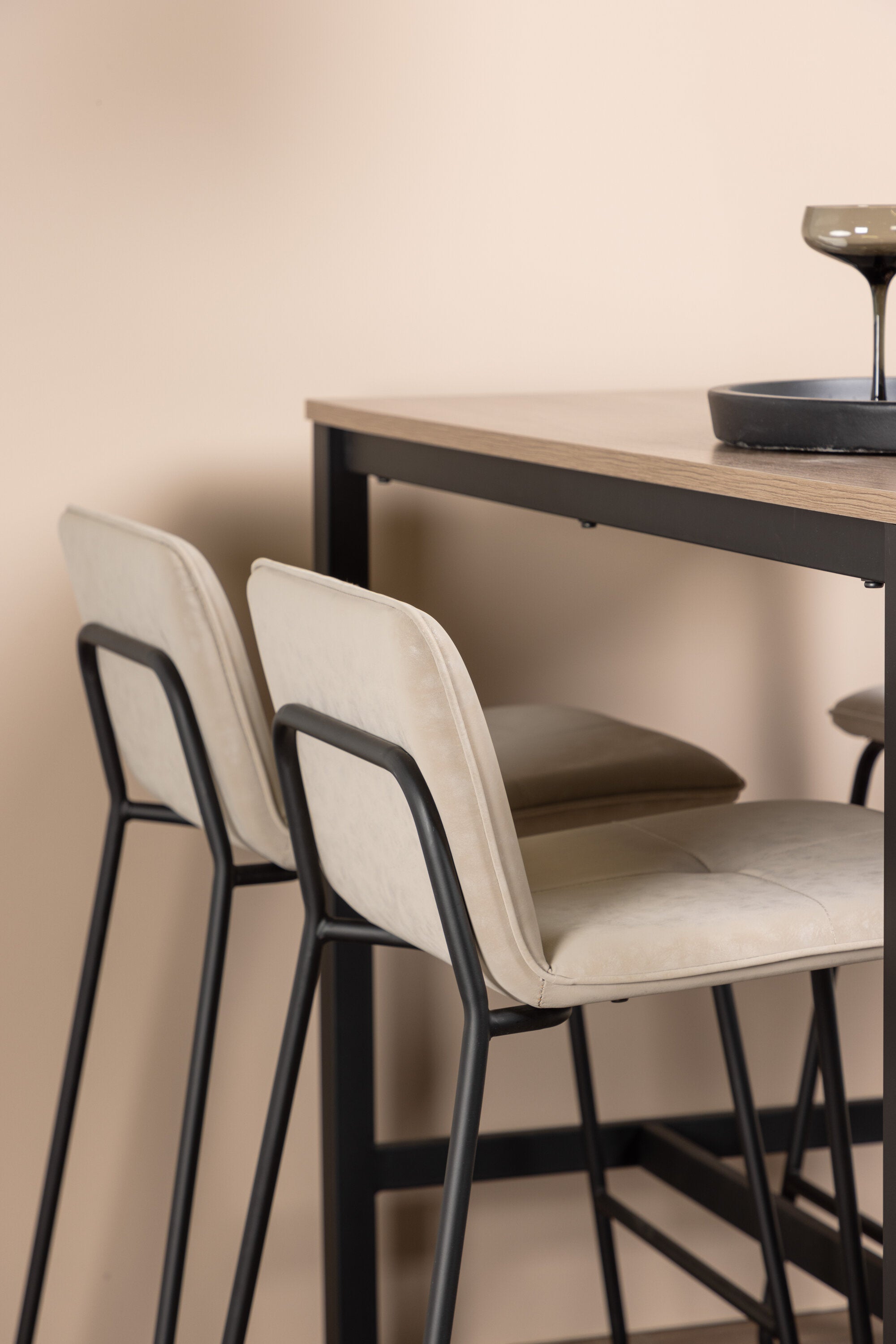 Barové židle Bisbee v kombinaci s barovým stolem Camden dodají kuchyni trendy! Tato barová skupina má 4 místa a zemité barvy působí v místnosti útulným a hřejivým dojmem. Barový stůl má rovné severské tvary a klasický design, který obstojí ve zkoušce času. Stůl má desku z MDF v barvě ořechu a rovné nohy stolu z černé oceli s rámem pro podnožku. Barová židle má minimalistický sedák z čalouněné béžové látky z mikrovlákna a integrovanou podnožku z černé oceli a je tak stylová, jako je pohodlná na sezení. Umístěte do kuchyně nebo tam, kde je potřeba další sezení a prodlužte příjemné společné chvíle!