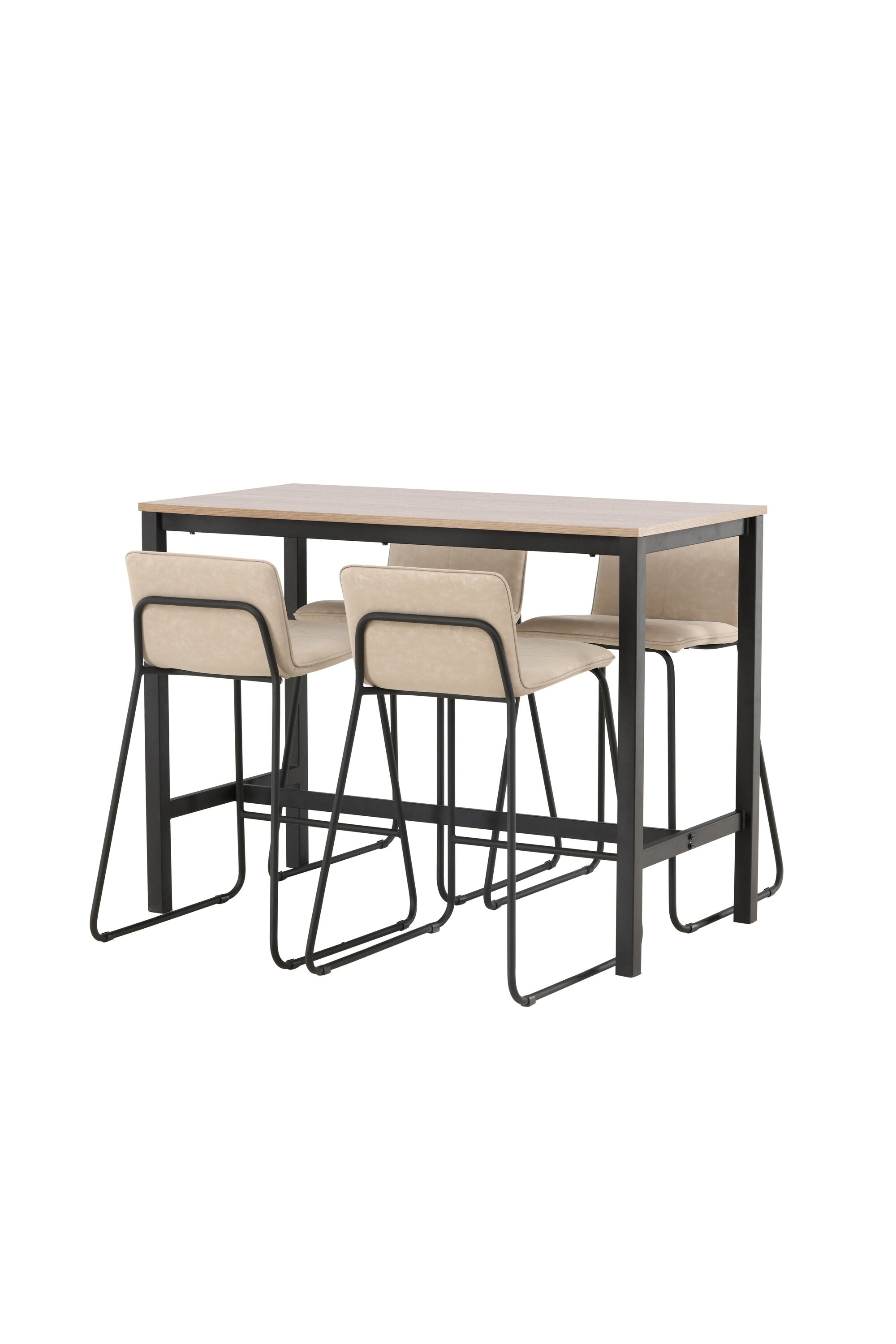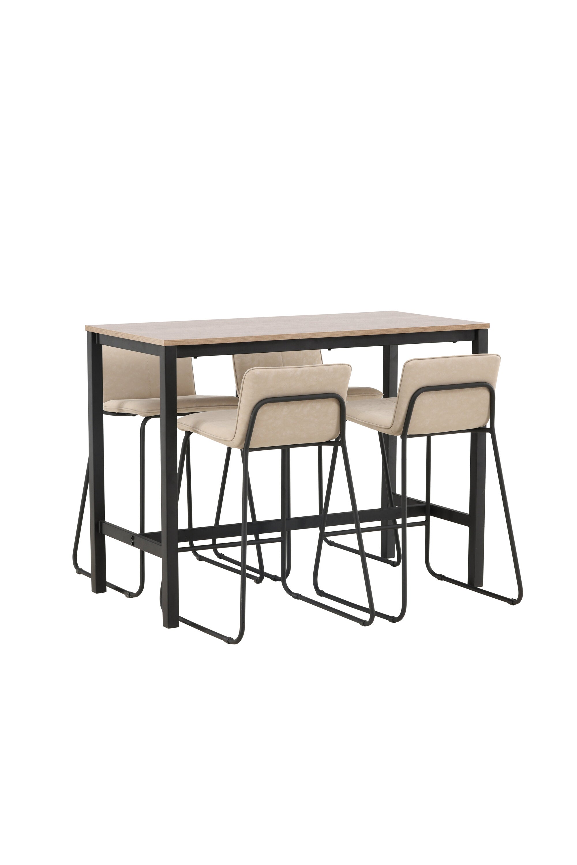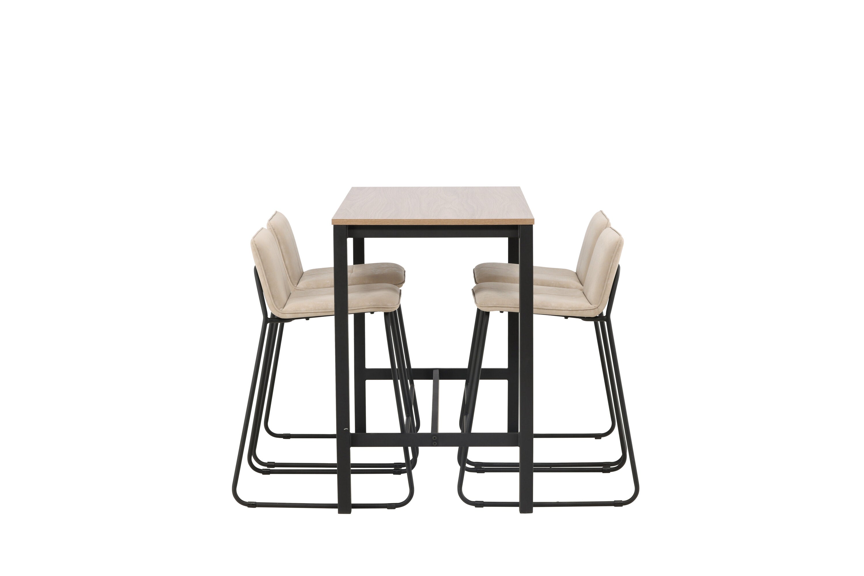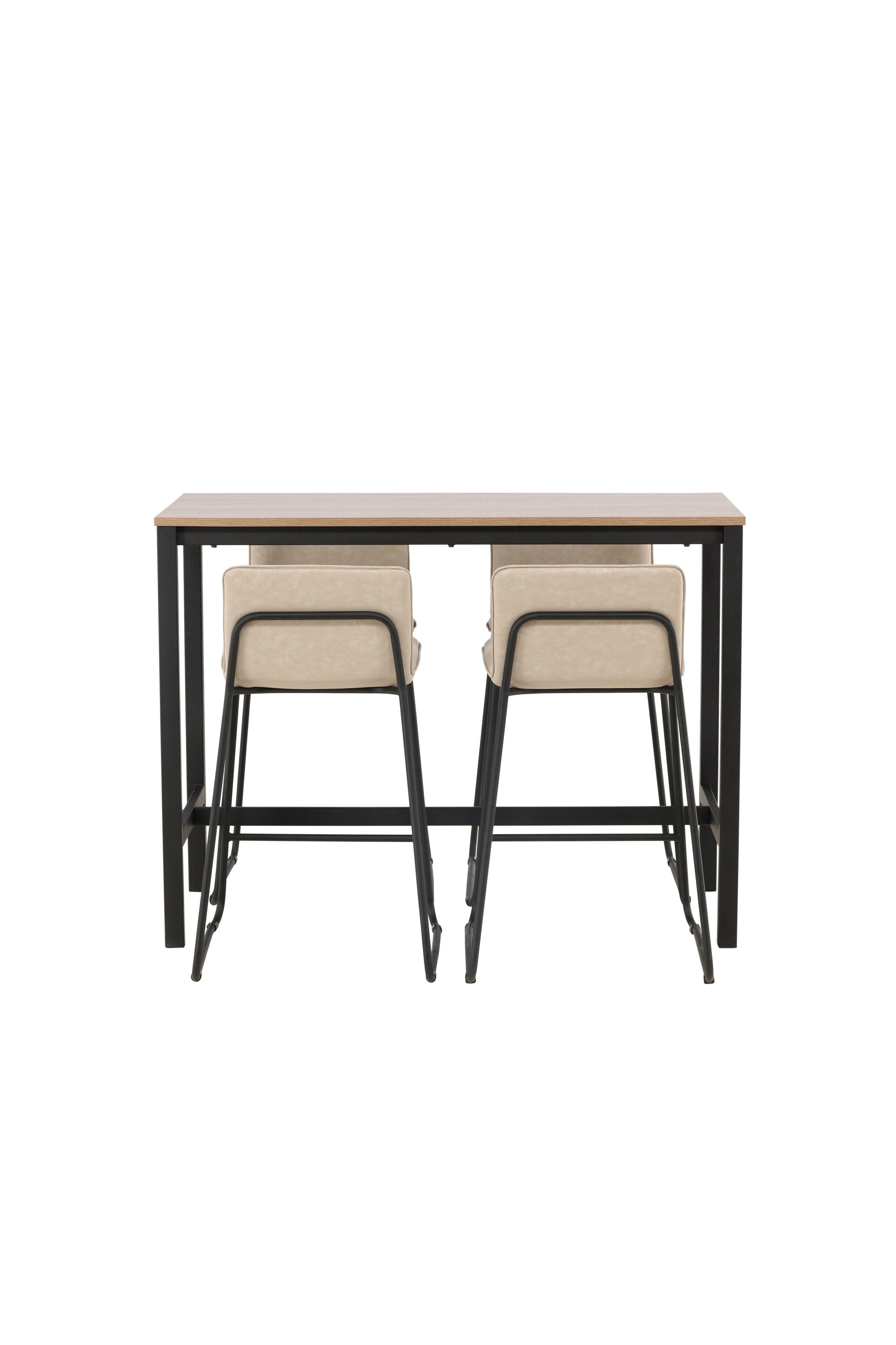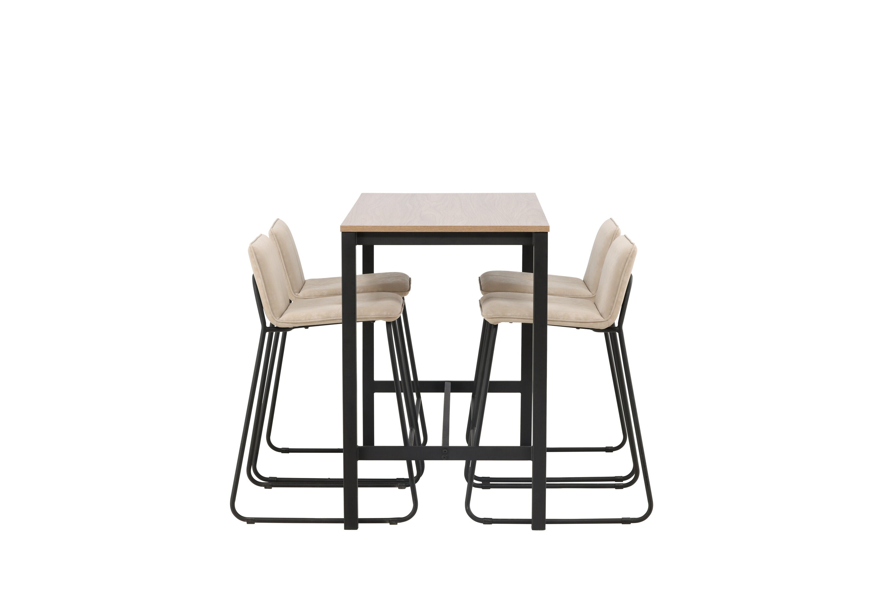 Barové židle Bisbee v kombinaci s barovým stolem Camden dodají kuchyni trendy! Tato barová skupina má 4 místa a zemité barvy působí v místnosti útulným a hřejivým dojmem. Barový stůl má rovné severské tvary a klasický design, který obstojí ve zkoušce času. Stůl má desku z MDF v barvě ořechu a rovné nohy stolu z černé oceli s rámem pro podnožku. Barová židle má minimalistický sedák z čalouněné béžové látky z mikrovlákna a integrovanou podnožku z černé oceli a je tak stylová, jako je pohodlná na sezení. Umístěte do kuchyně nebo tam, kde je potřeba další sezení a prodlužte příjemné společné chvíle!