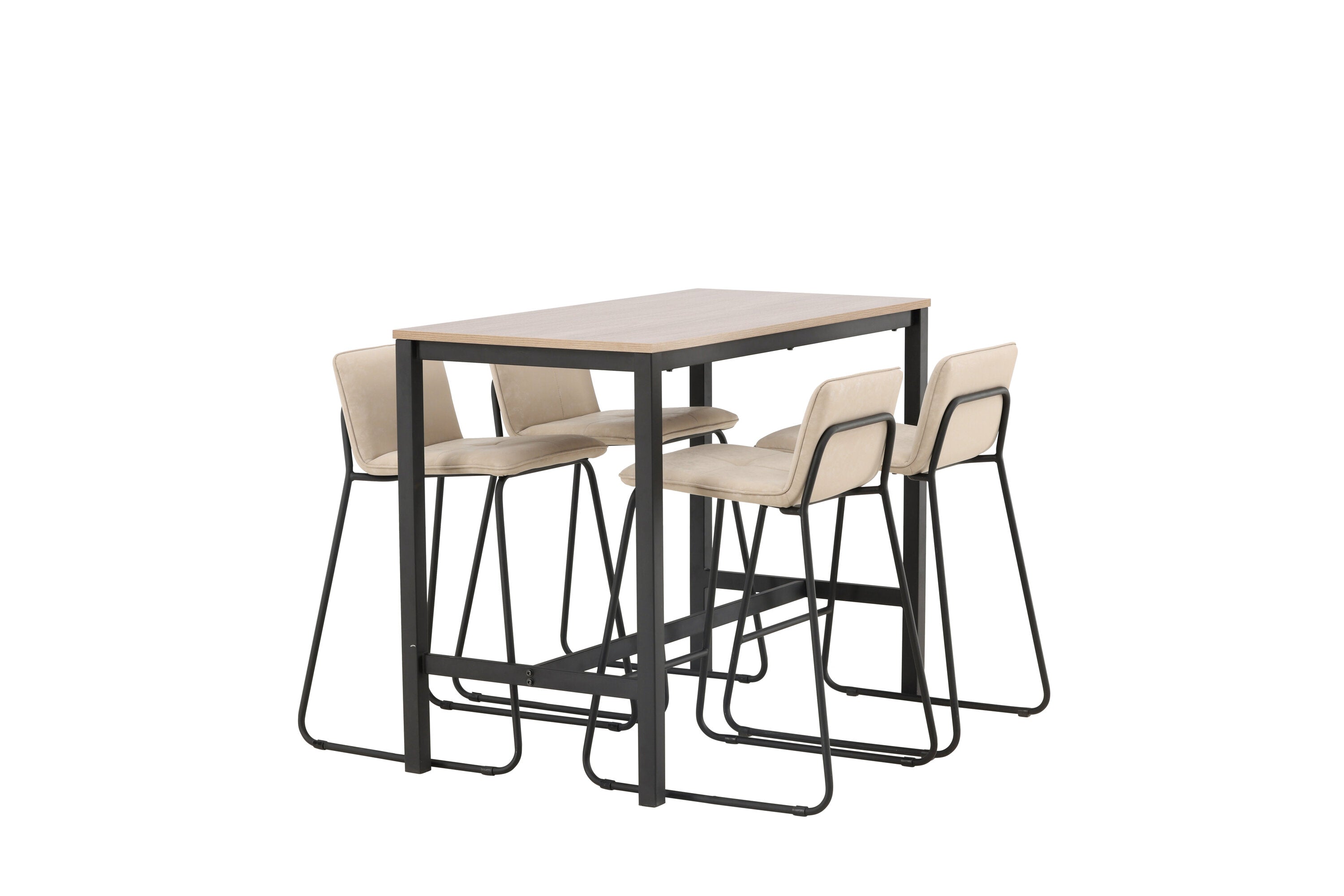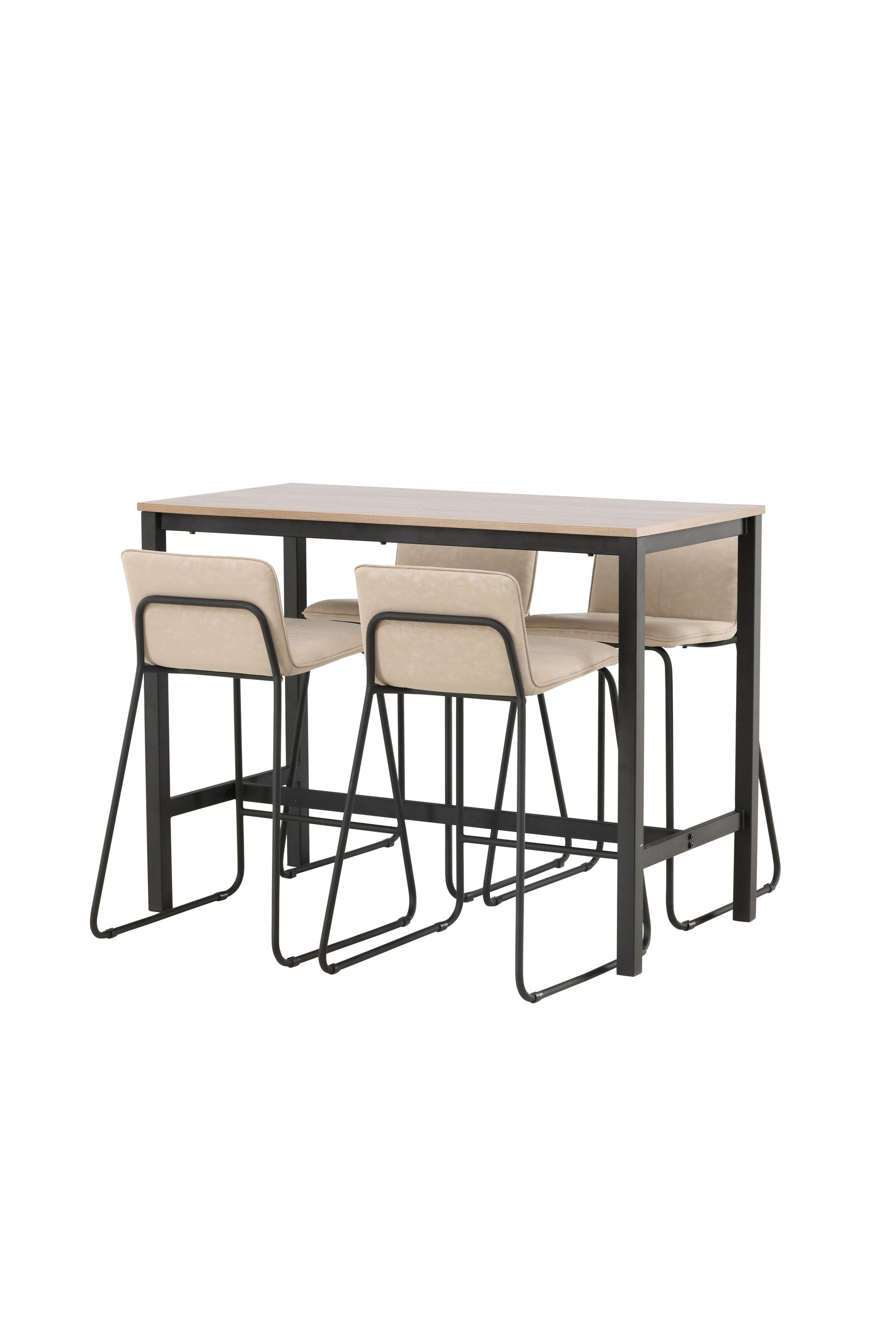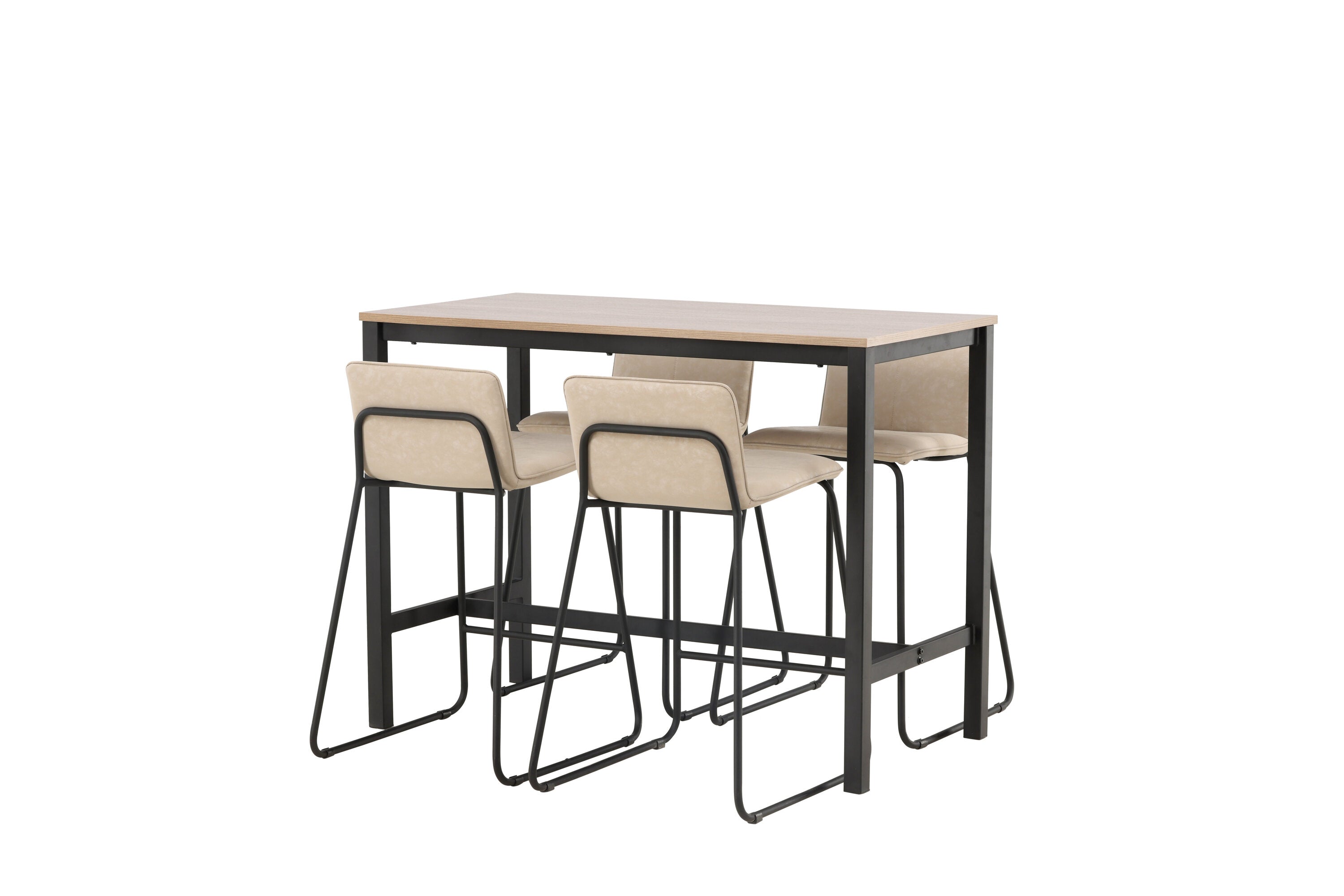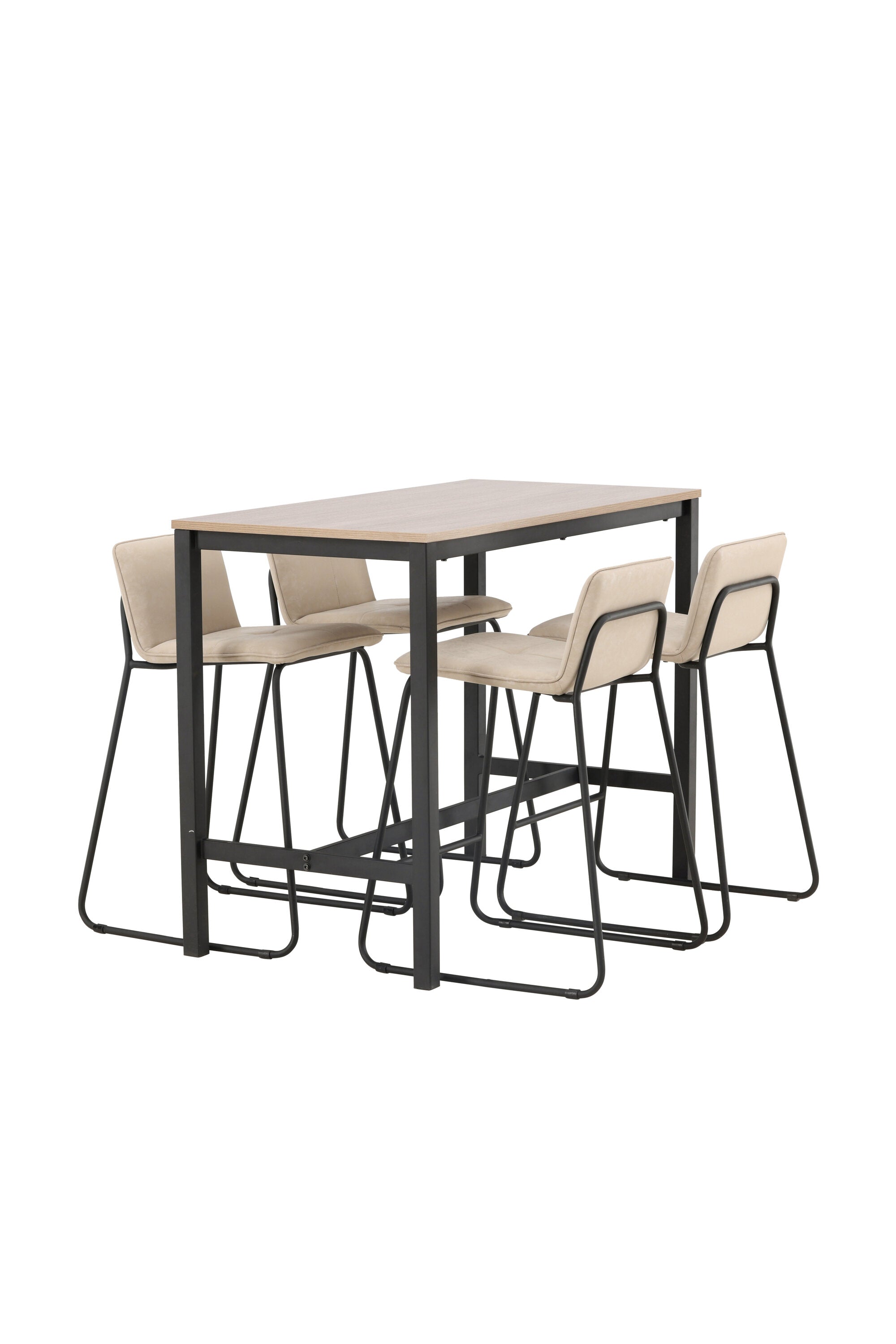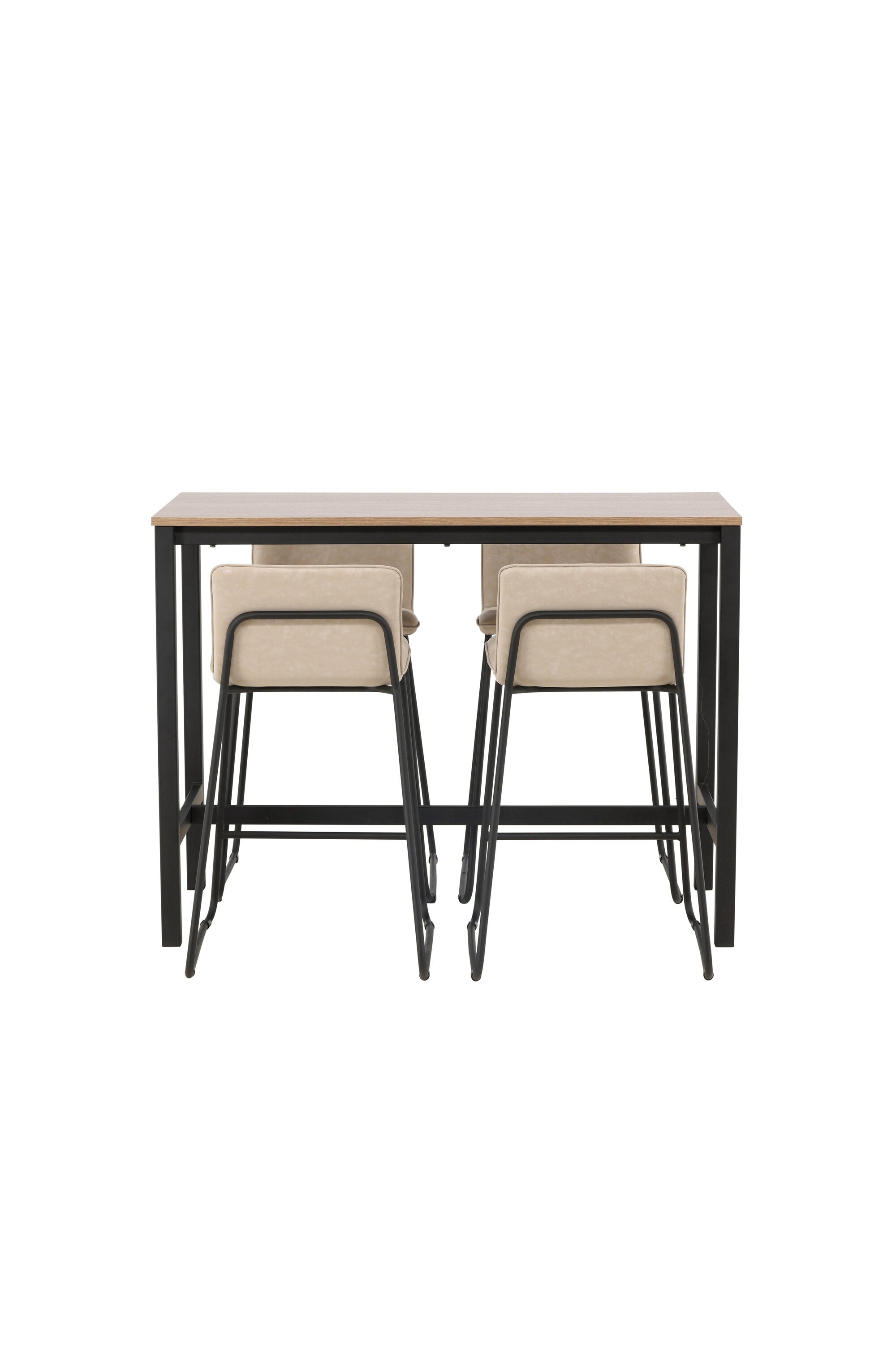 Barové židle Bisbee v kombinaci s barovým stolem Camden dodají kuchyni trendy! Tato barová skupina má 4 místa a zemité barvy působí v místnosti útulným a hřejivým dojmem. Barový stůl má rovné severské tvary a klasický design, který obstojí ve zkoušce času. Stůl má desku z MDF v barvě ořechu a rovné nohy stolu z černé oceli s rámem pro podnožku. Barová židle má minimalistický sedák z čalouněné béžové látky z mikrovlákna a integrovanou podnožku z černé oceli a je tak stylová, jako je pohodlná na sezení. Umístěte do kuchyně nebo tam, kde je potřeba další sezení a prodlužte příjemné společné chvíle!