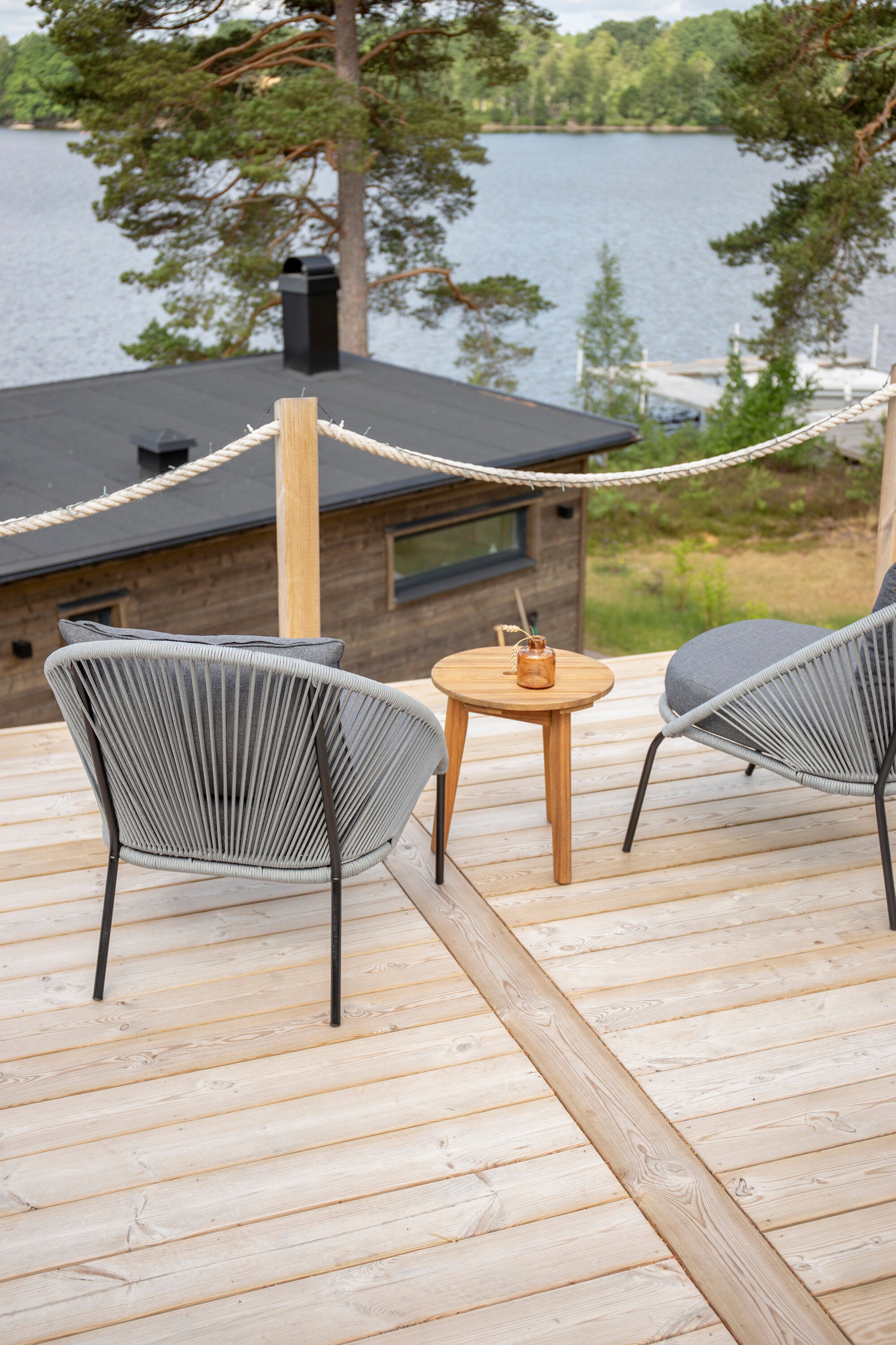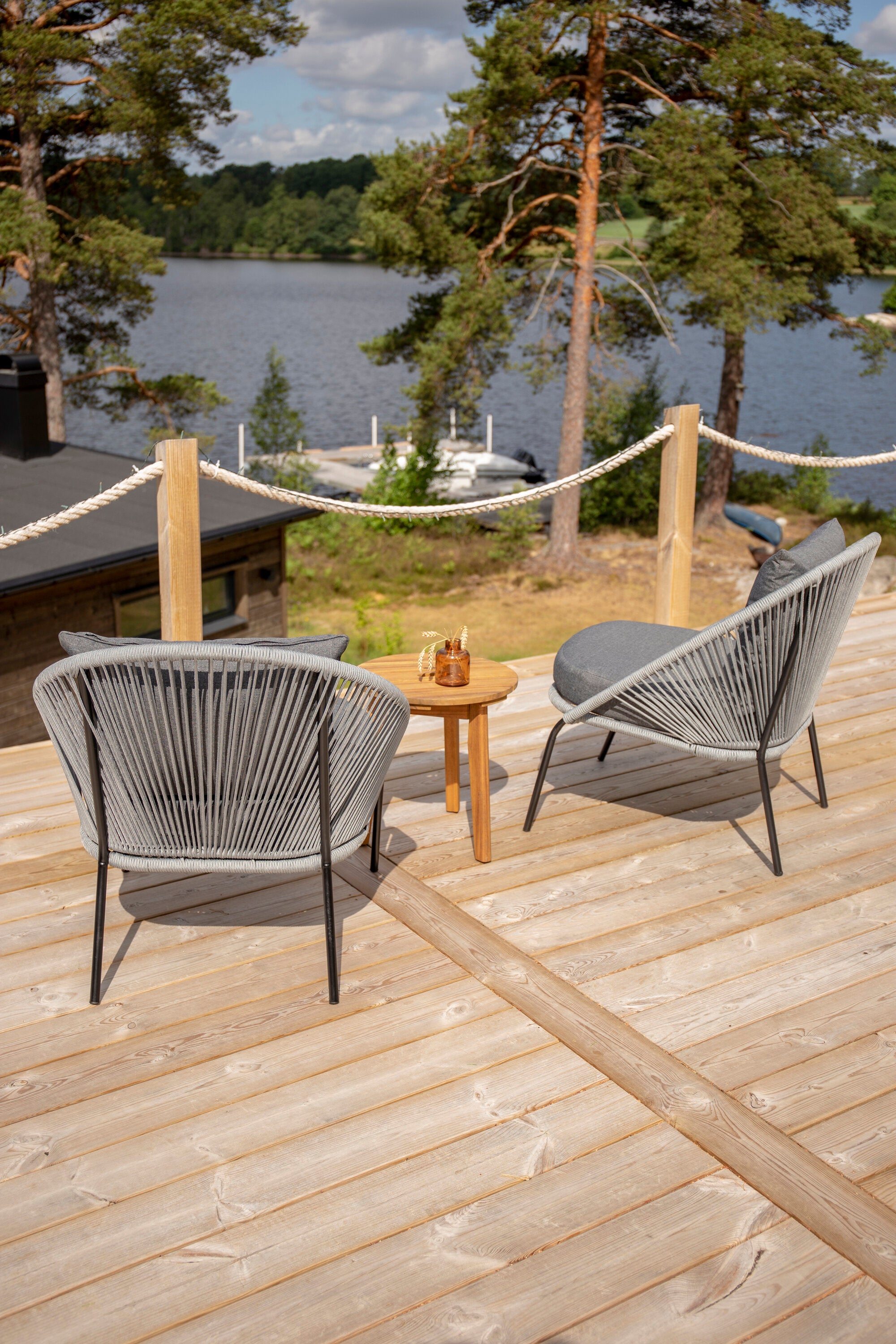 Chania Knappbord - Akacia - ø40+Lindos Lounge stol - Svart / grå_2