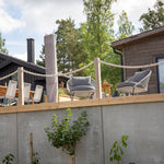 Moderní a útulné! Odkládací stolek Chania spolu s relaxačními křesly Lindo vám poskytne skupinu, která touží po teplém letním večeru. Židle jsou dobře zvýšeny sedákem z šedého tkaného lana - zde můžete dlouho sedět a užívat si nádherné letní chvíle!