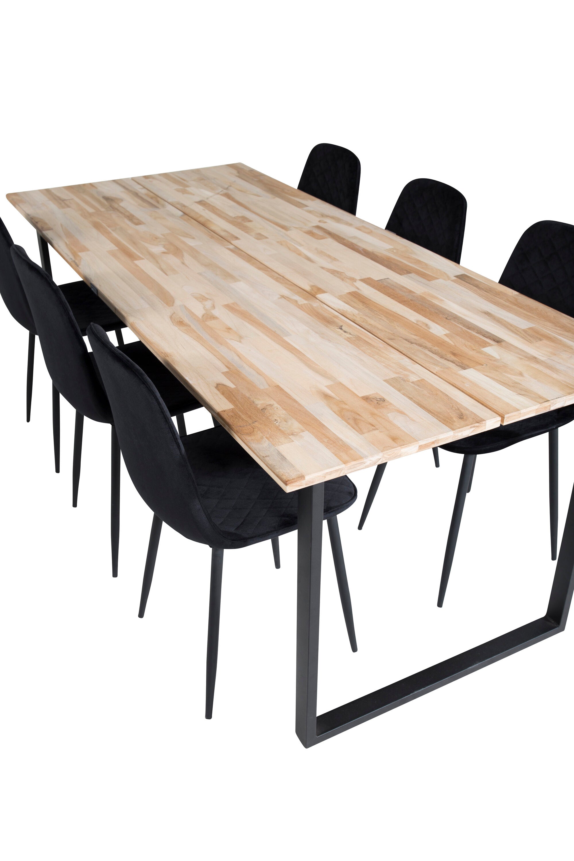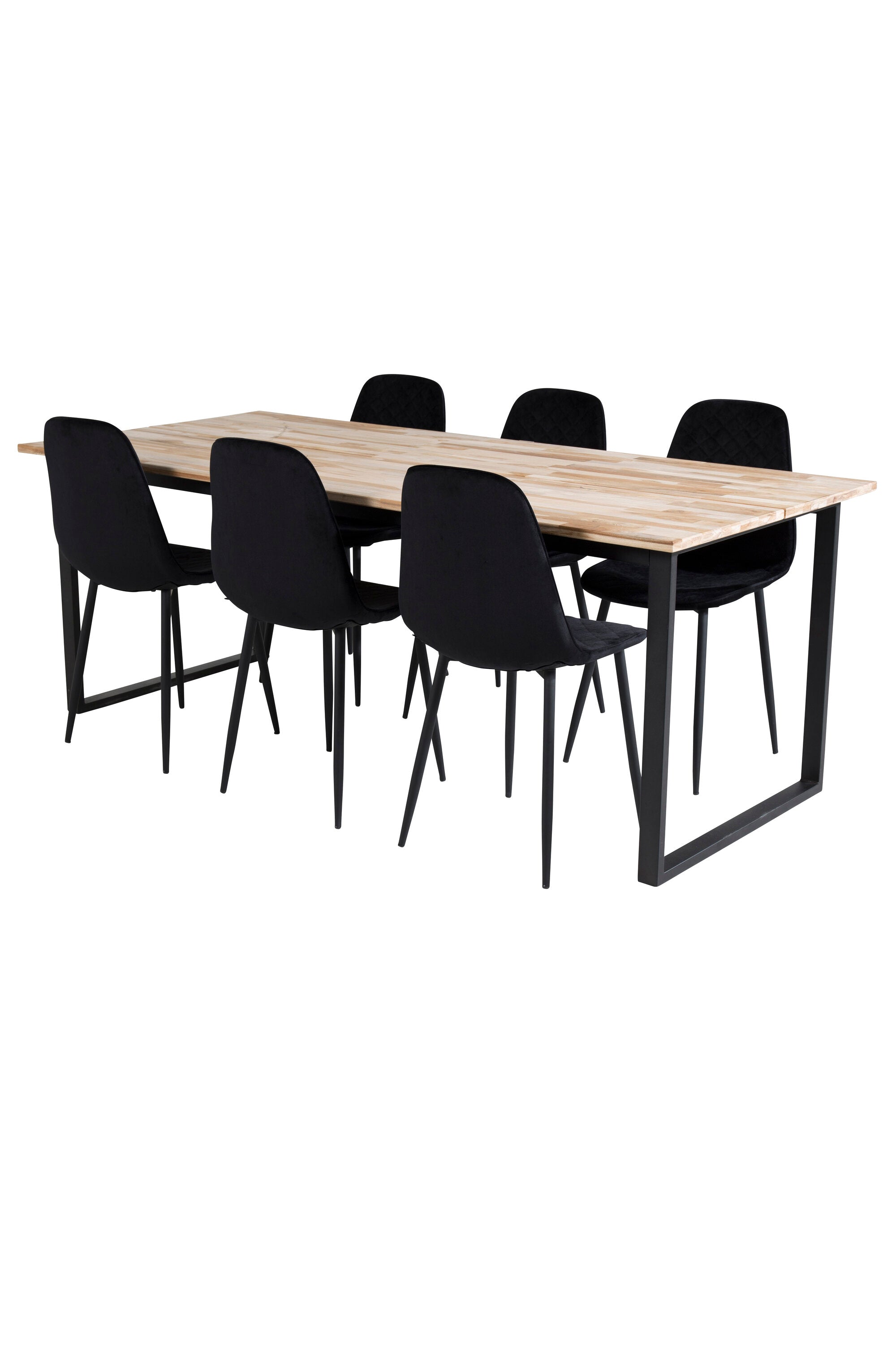 Cirebon Jídelní stůl 200*90cm - Nature / Black+Polar Diamond Jídelní židle - Černé nohy - Black Velvet_6