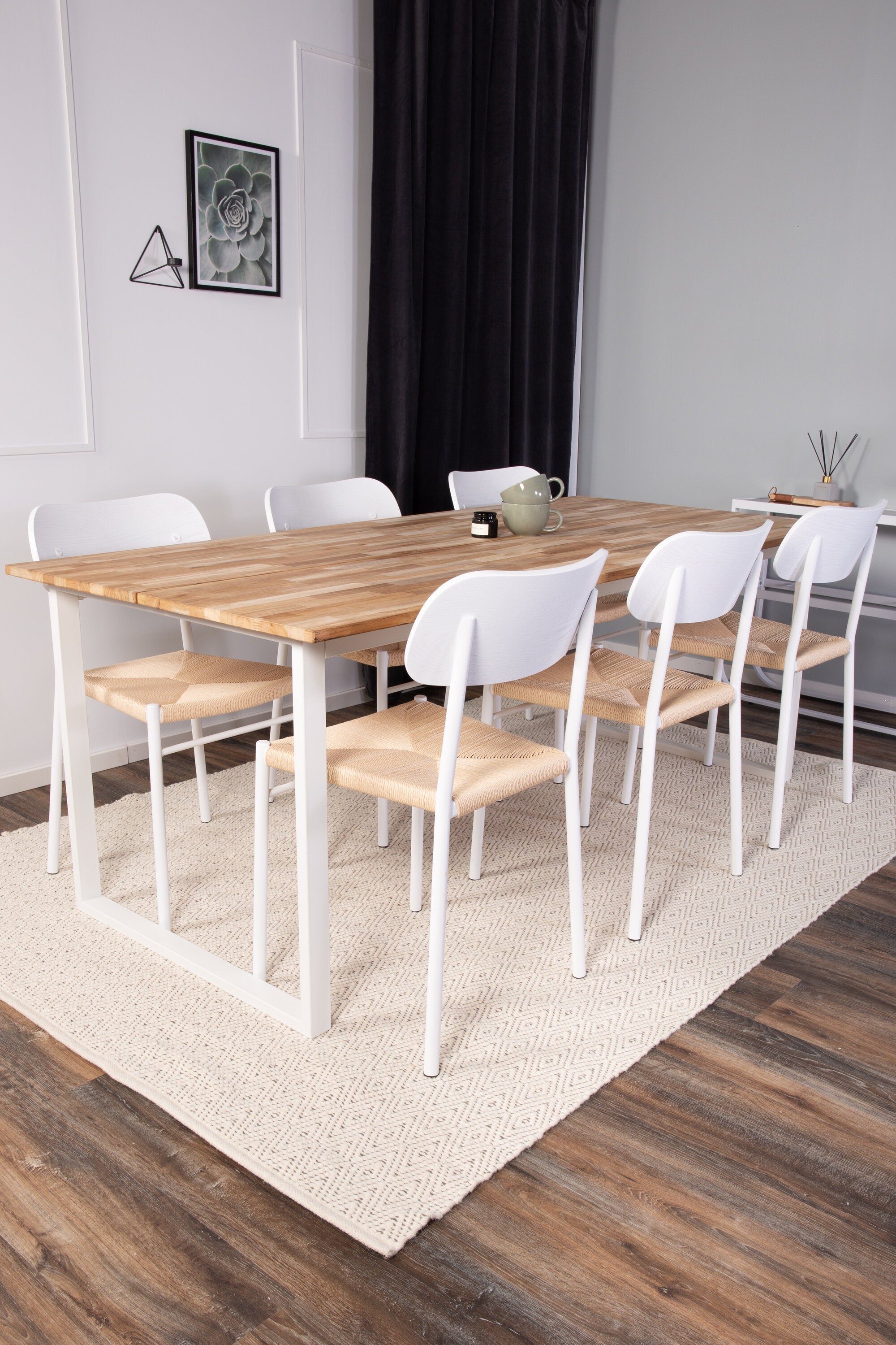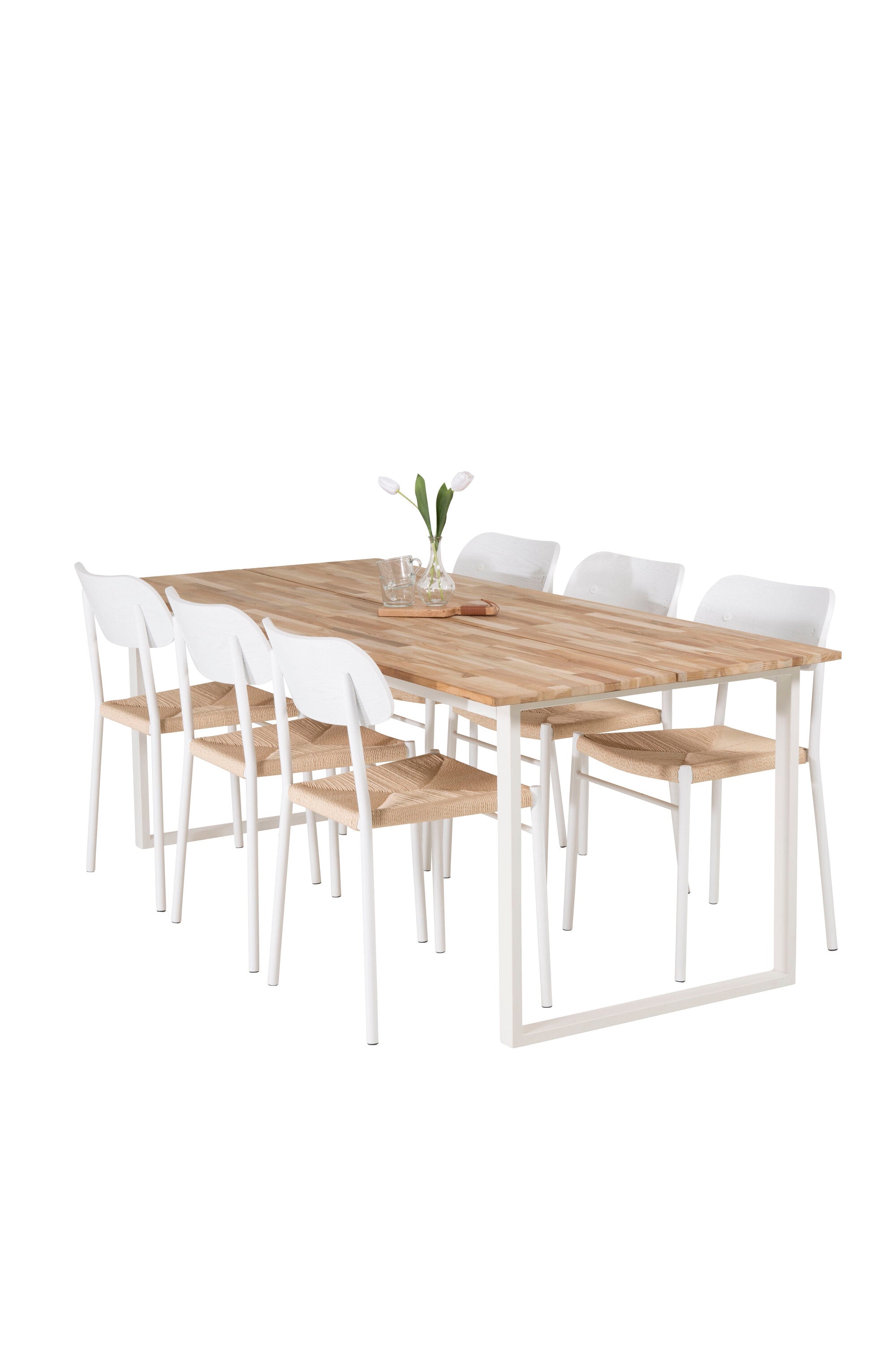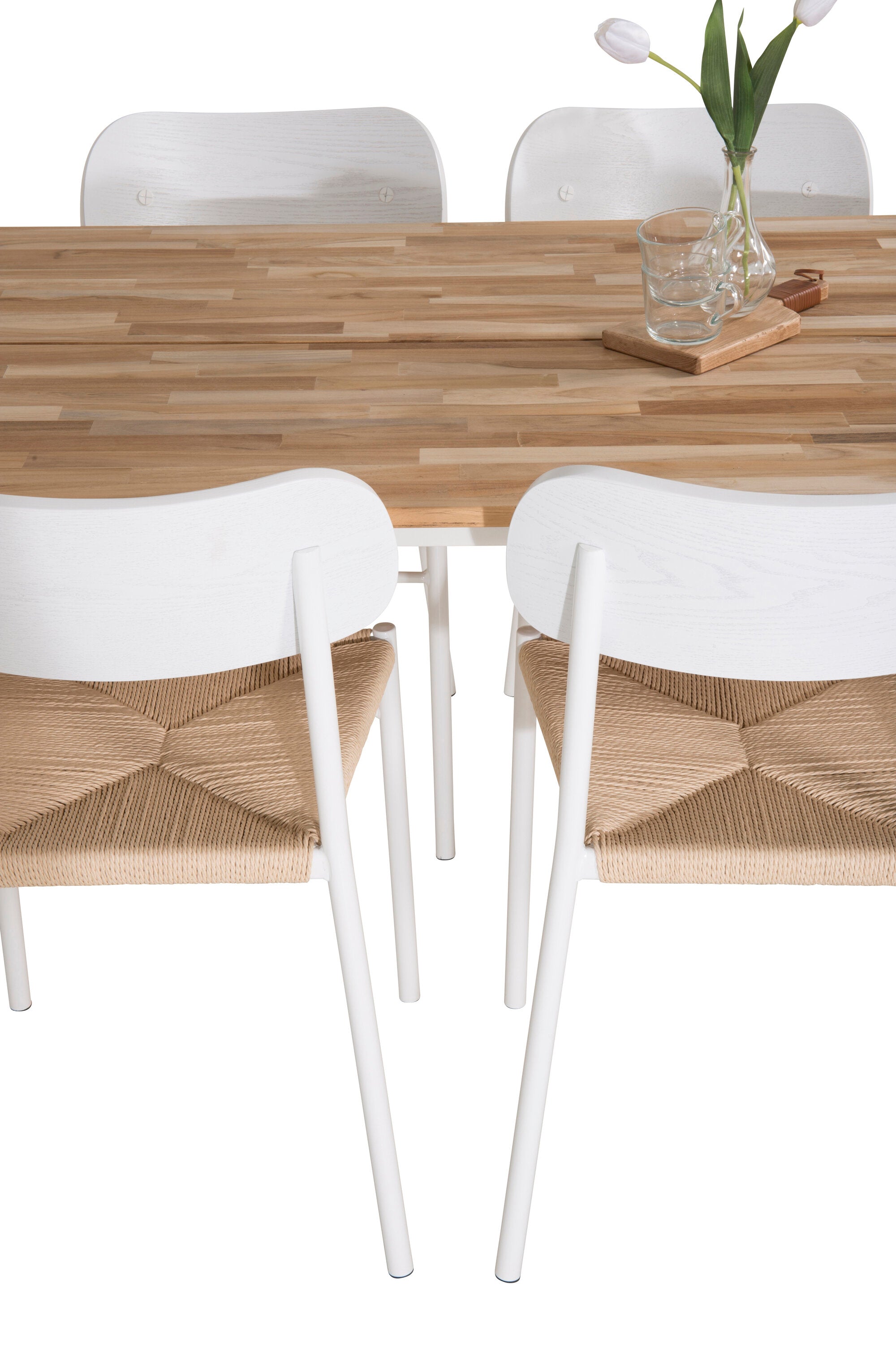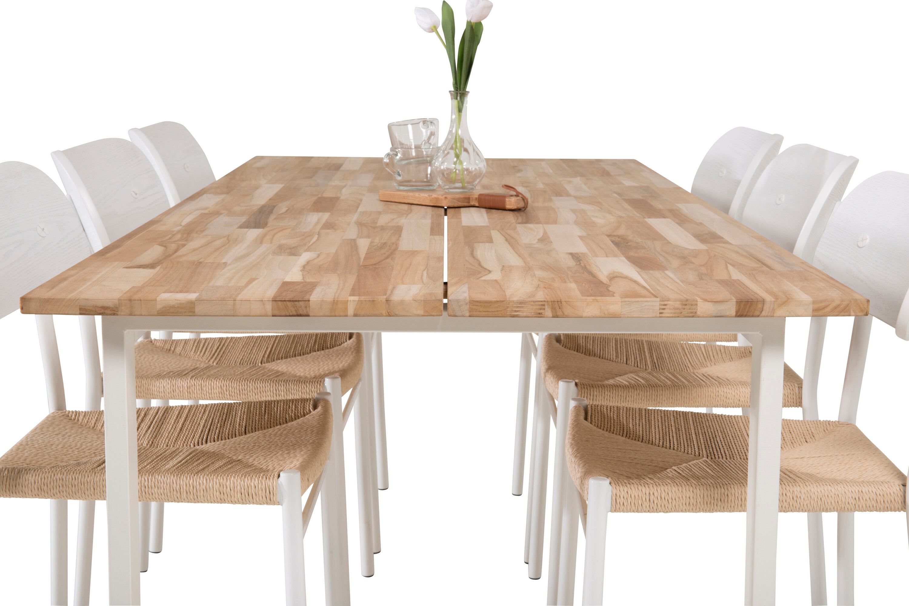 Cirebon Jídelní stůl 200*90cm - Teak / Bílá +Jídelní židle Polly - Bílá / Přírodní _6