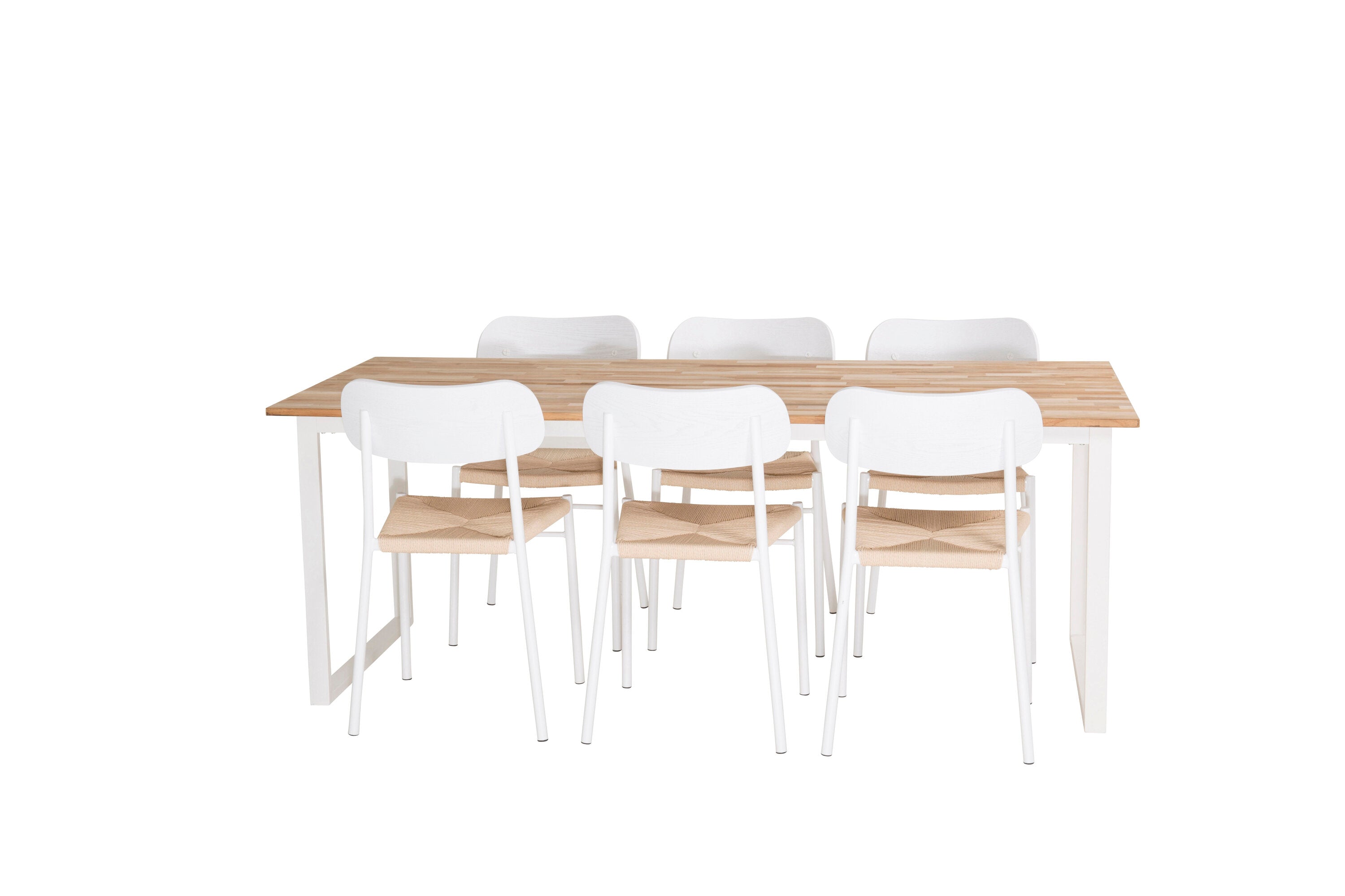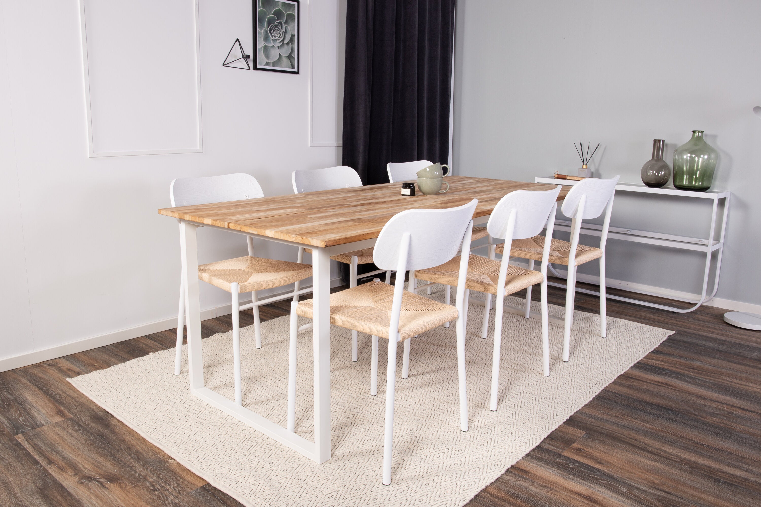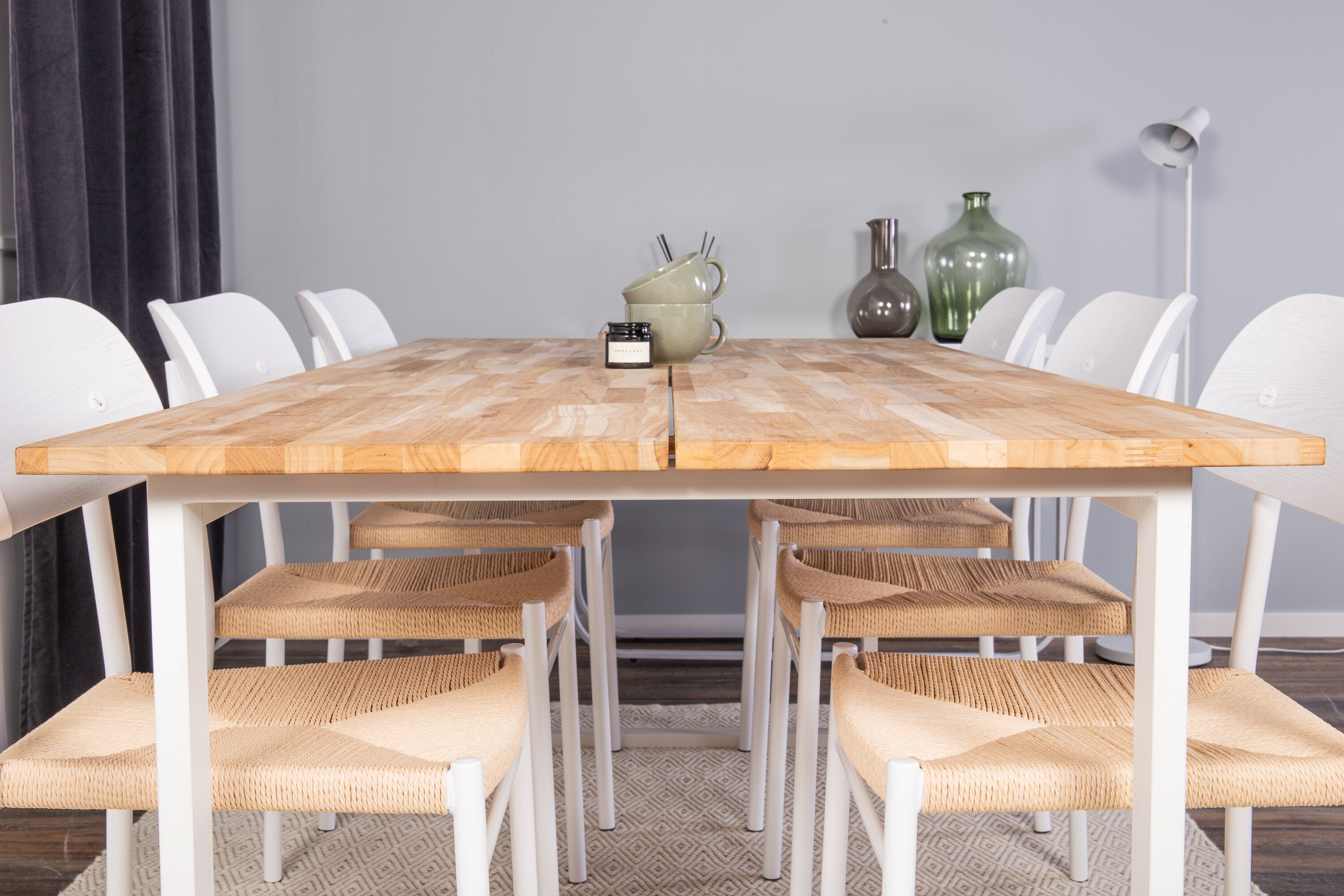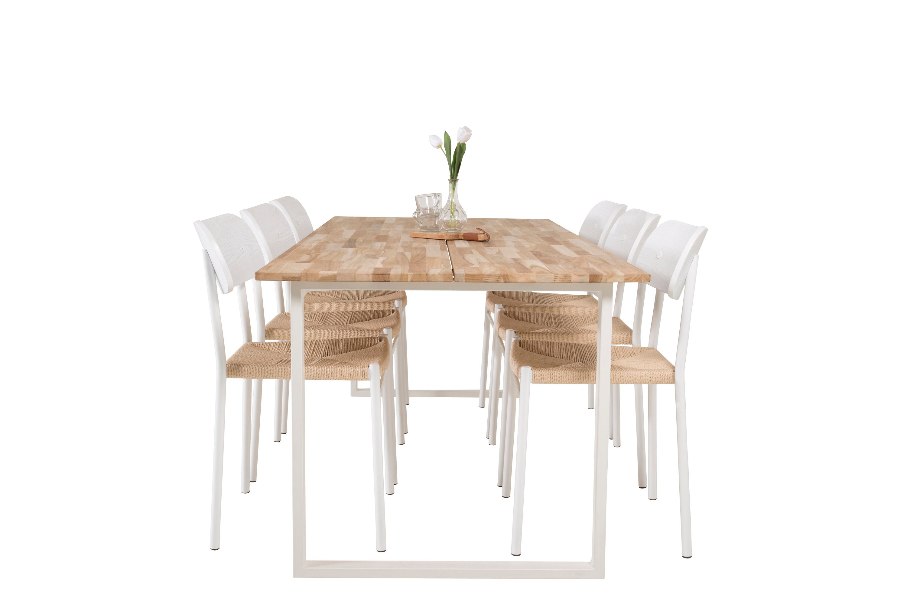 Cirebon Jídelní stůl 200*90cm - Teak / Bílá +Jídelní židle Polly - Bílá / Přírodní _6