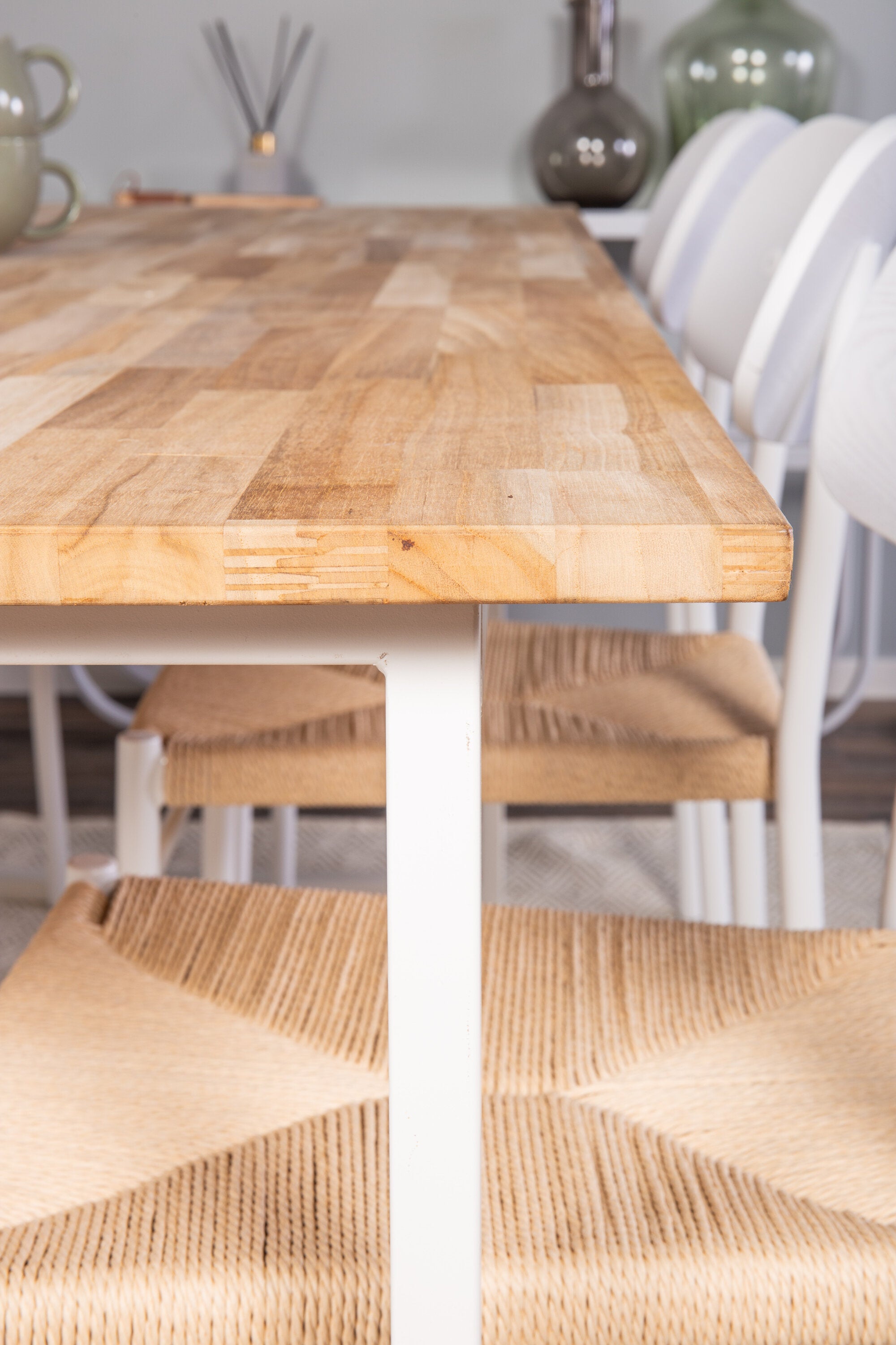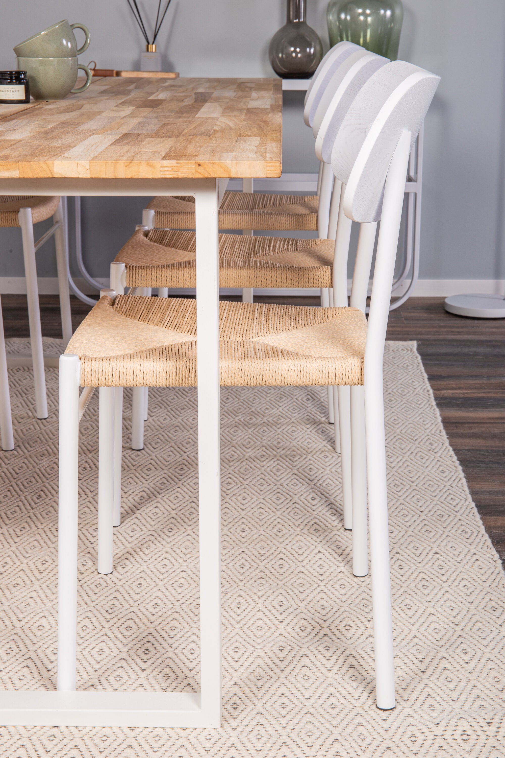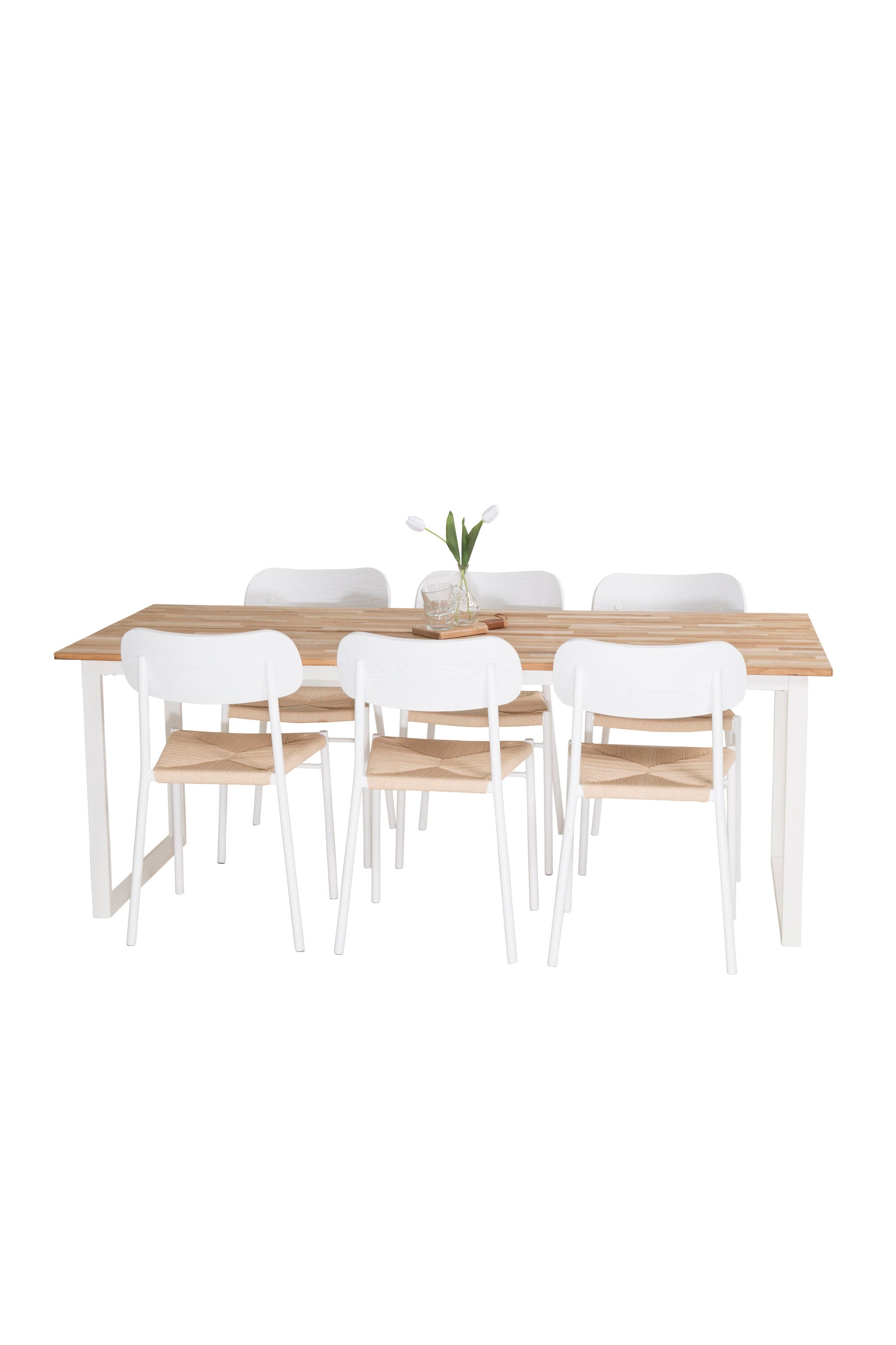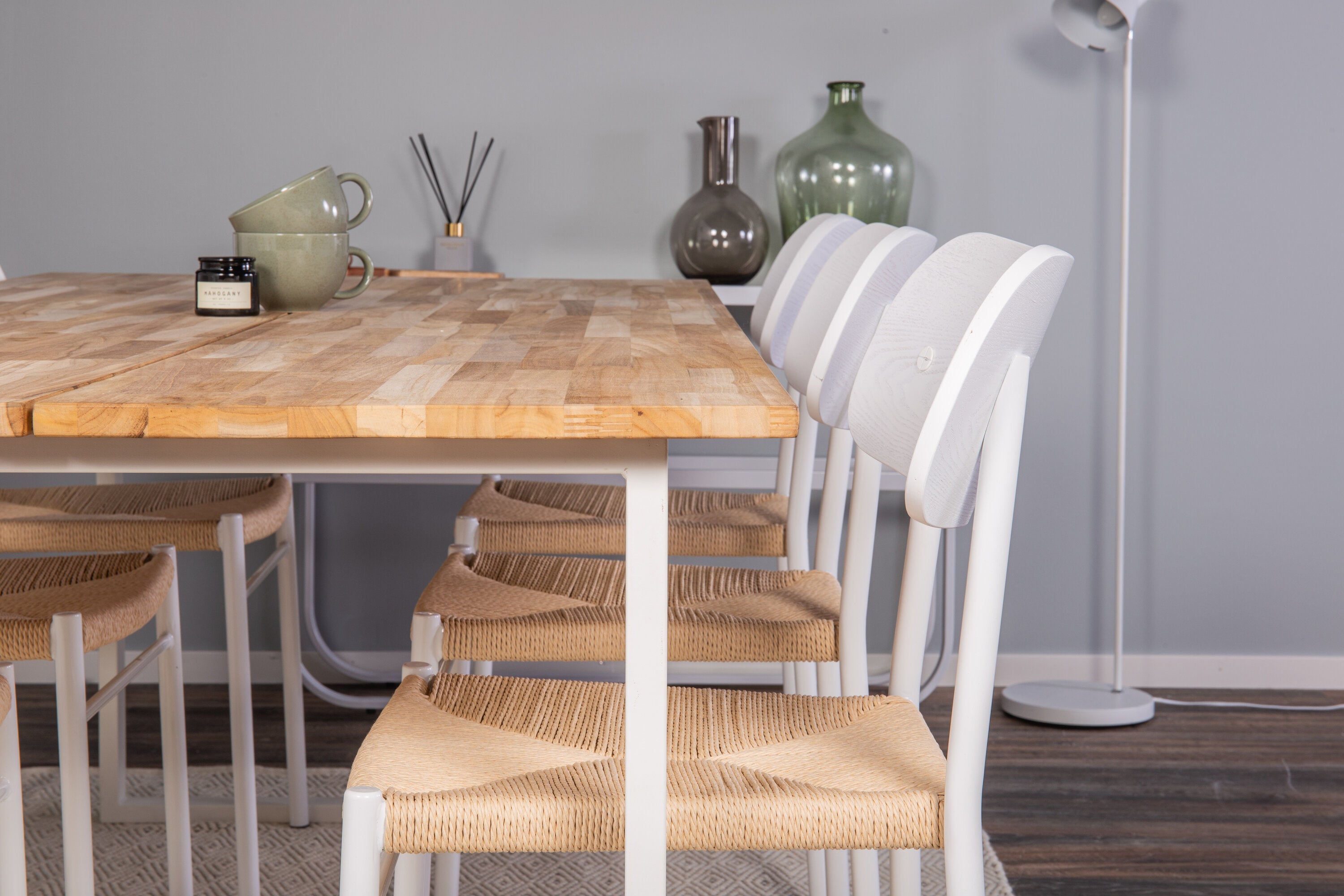 Cirebon Jídelní stůl 200*90cm - Teak / Bílá +Jídelní židle Polly - Bílá / Přírodní _6