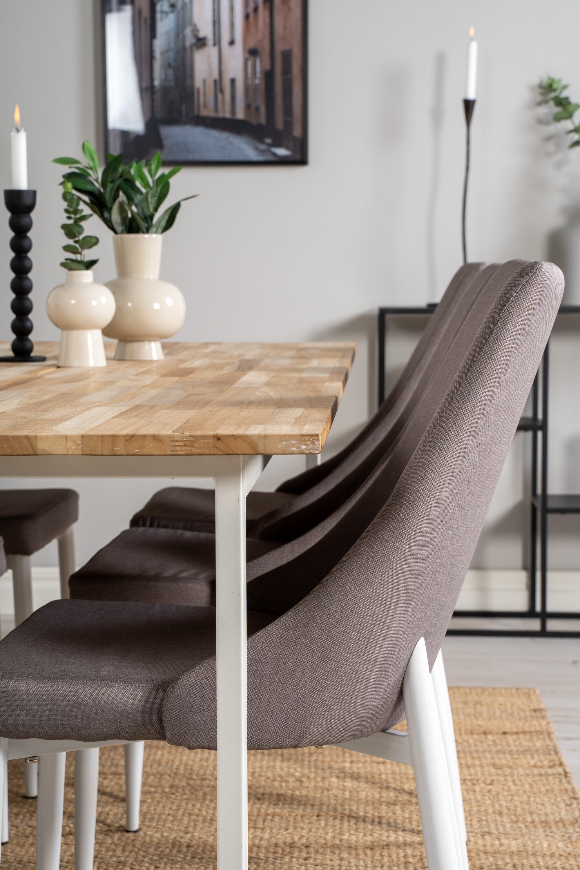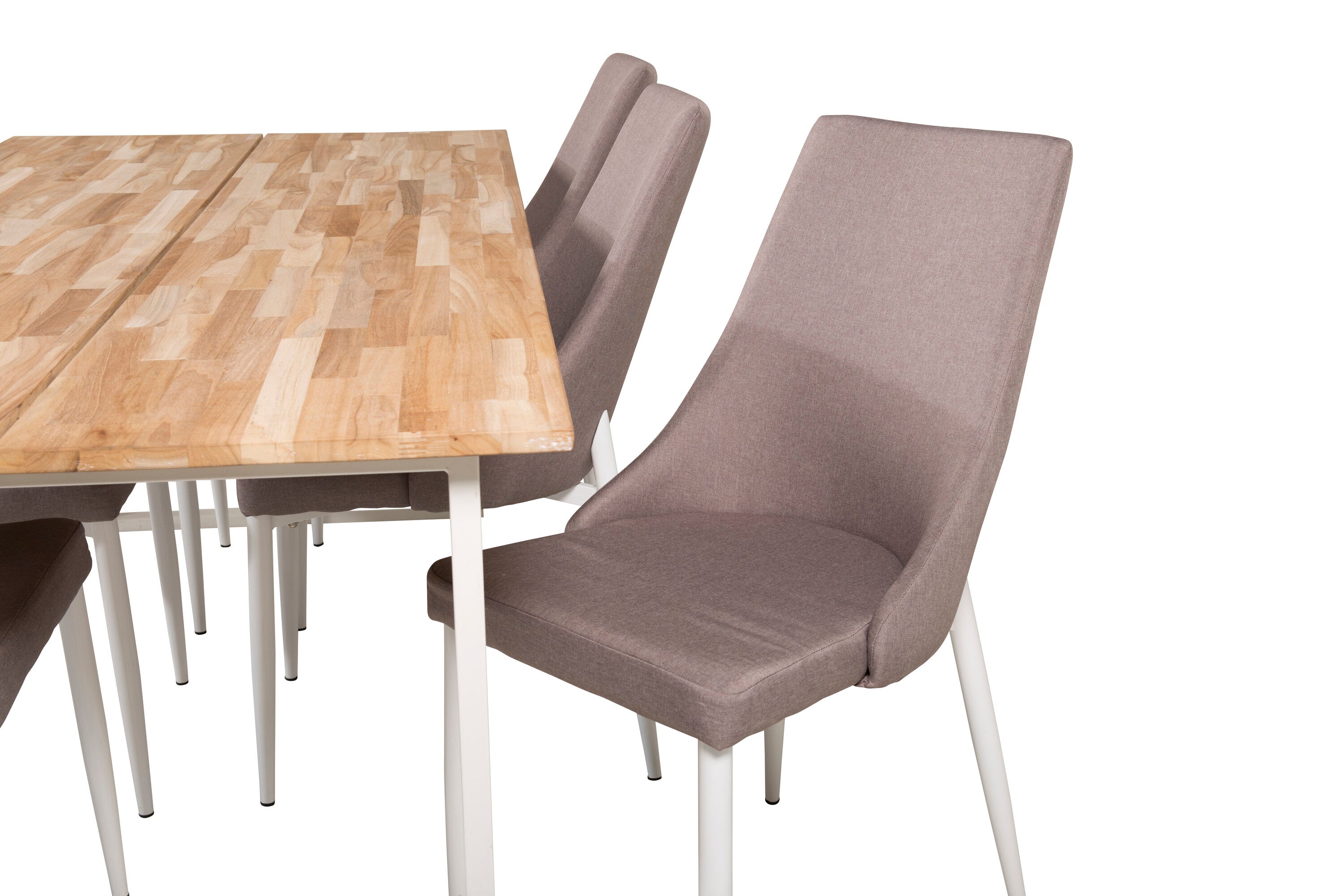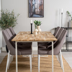 Klasická skupina potravin, která se hodí do většiny domácností! Jídelní stůl Cirebon spolu se židlemi ze série Leone je jako dělaný pro ty, kteří chtějí doma vytvořit útulný a moderní pocit.