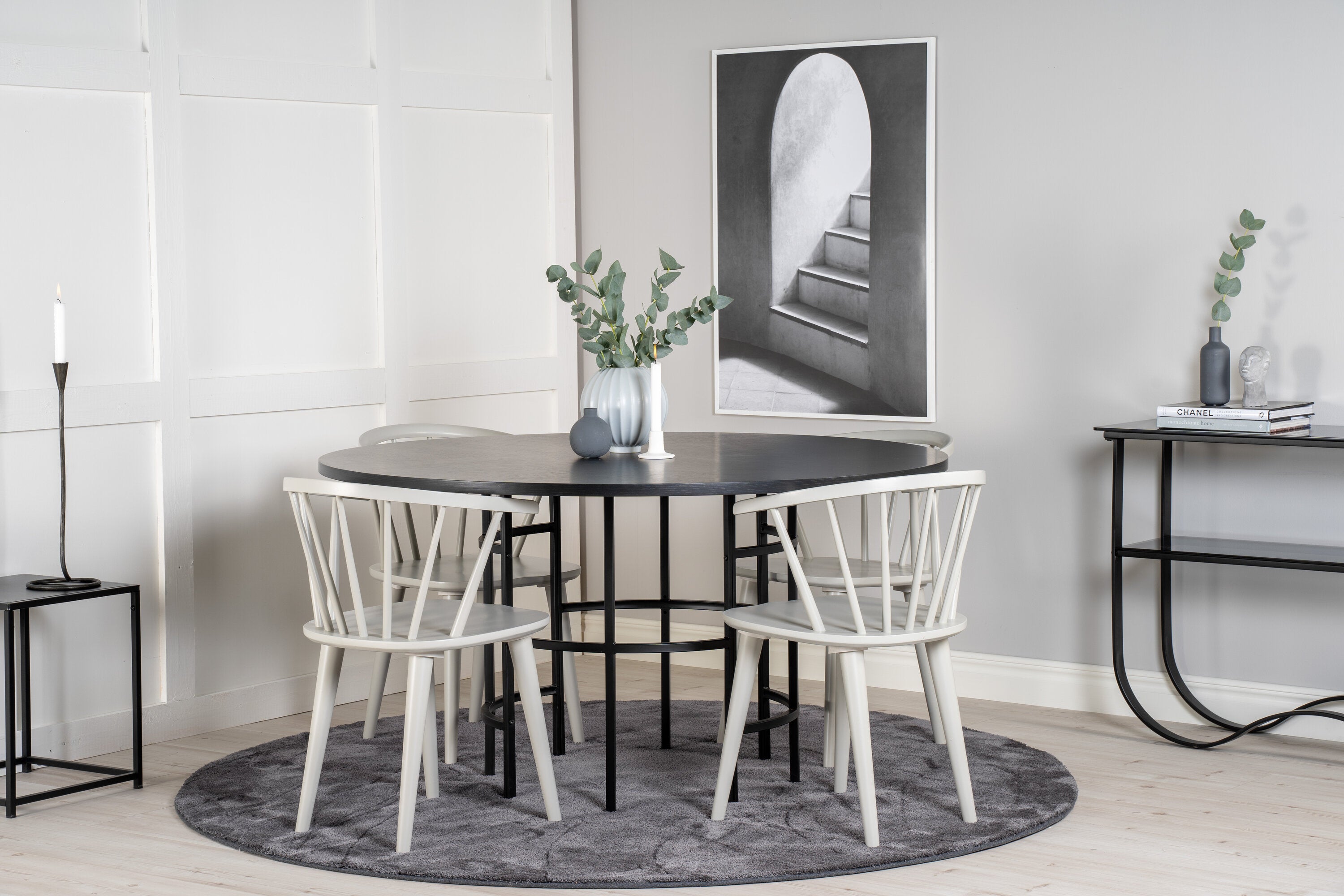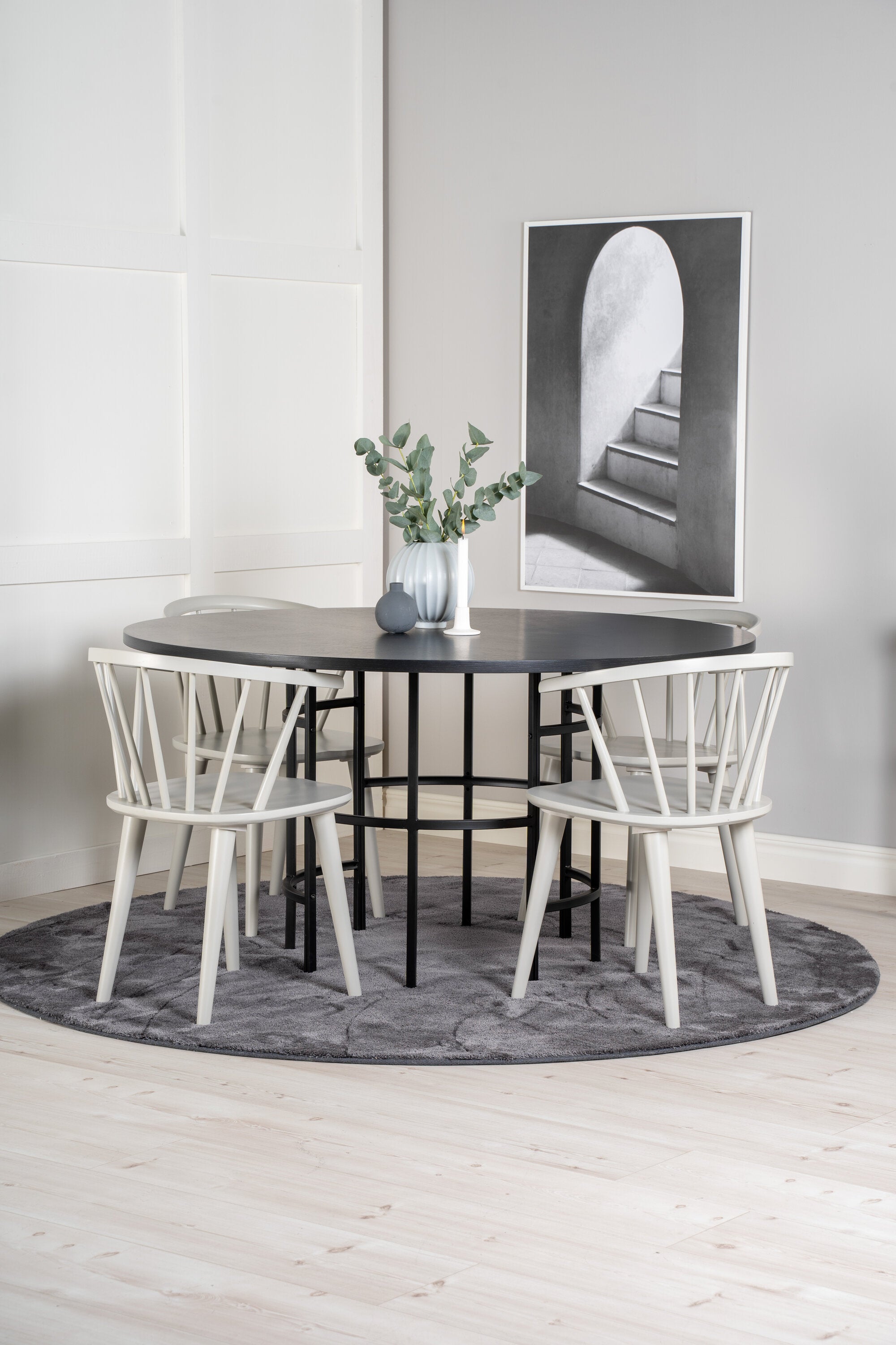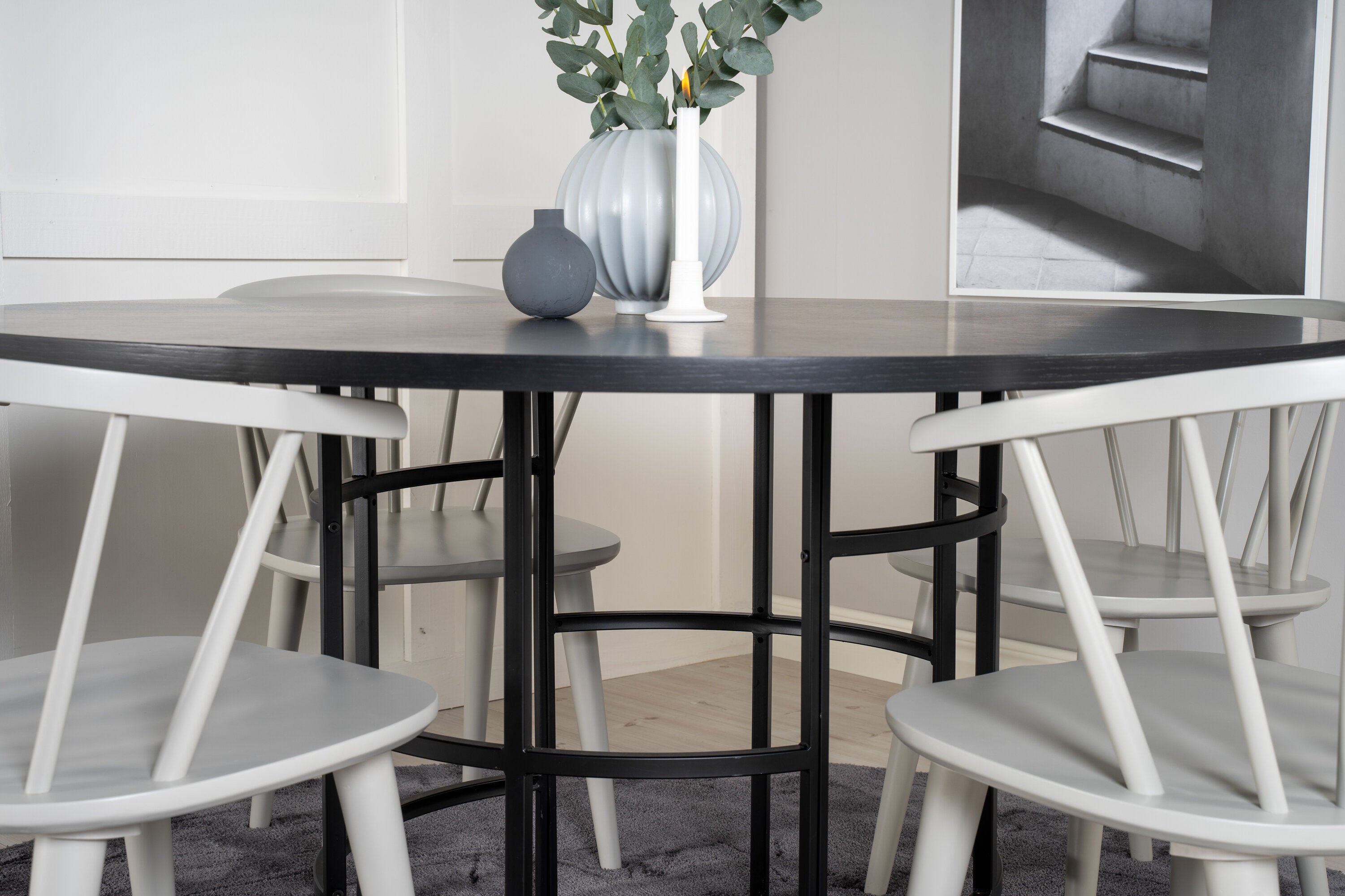Copenhagen - Jídelní stůl kulatý - Černá / Černá + Bobby Windsor Jídelní židle - Grey_4