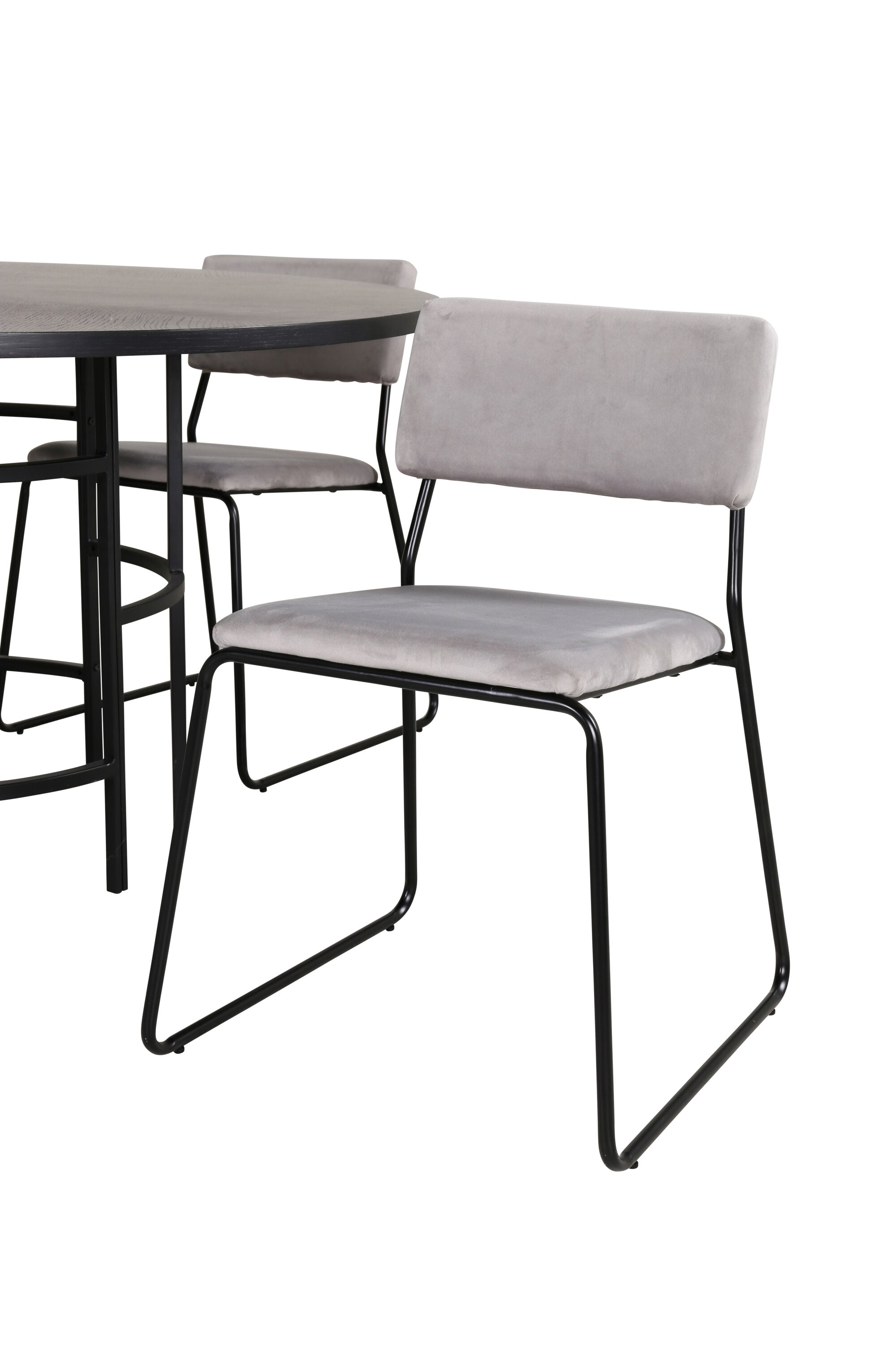 Copenhagen - Jídelní stůl kulatý - Černá / Černá+Kenth Židle - Černá / Světle šedá Velvet_4