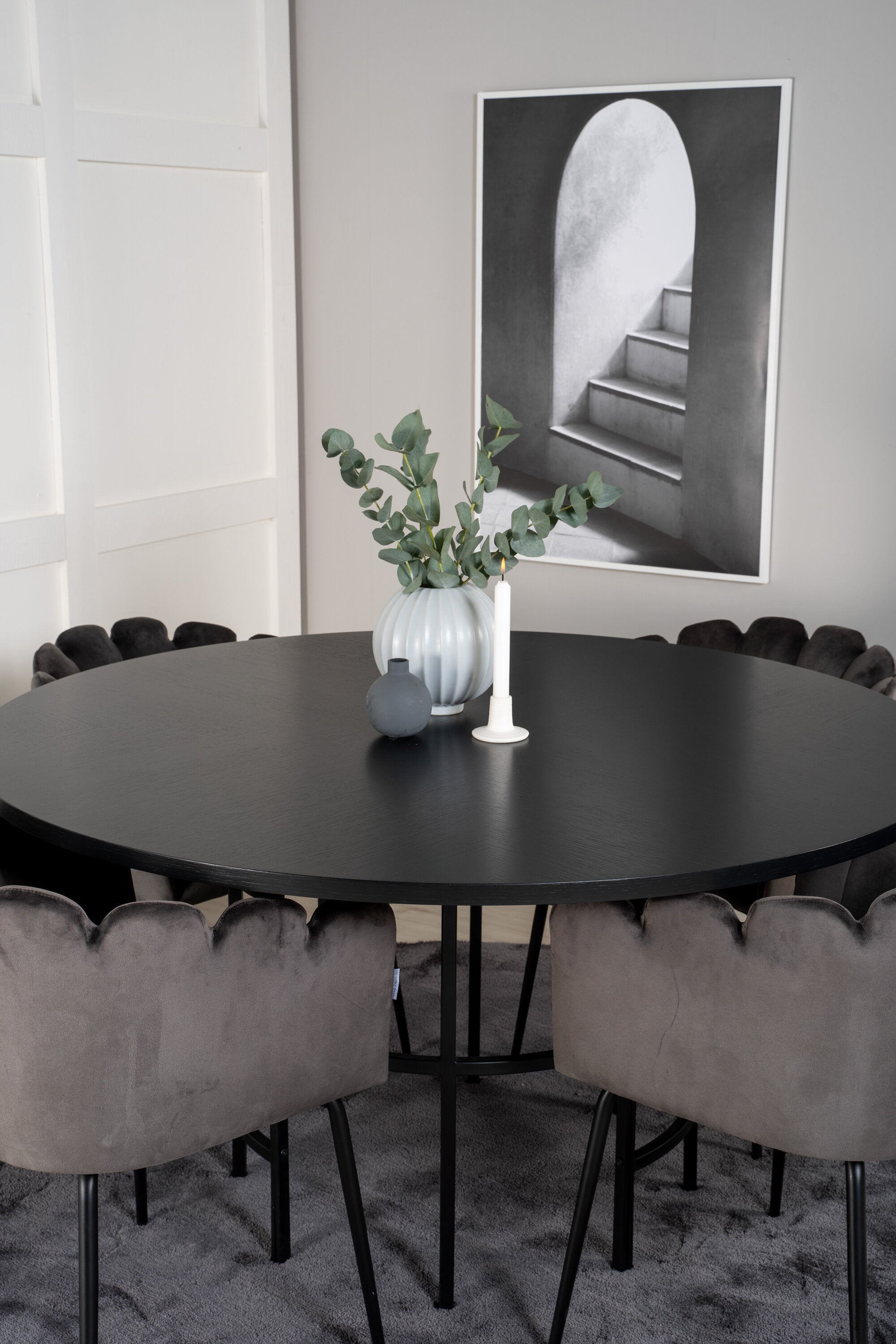 Copenhagen - Jídelní stůl kulatý - Černá / Černá+Limhamn - Židle - Šedá Velvet_4