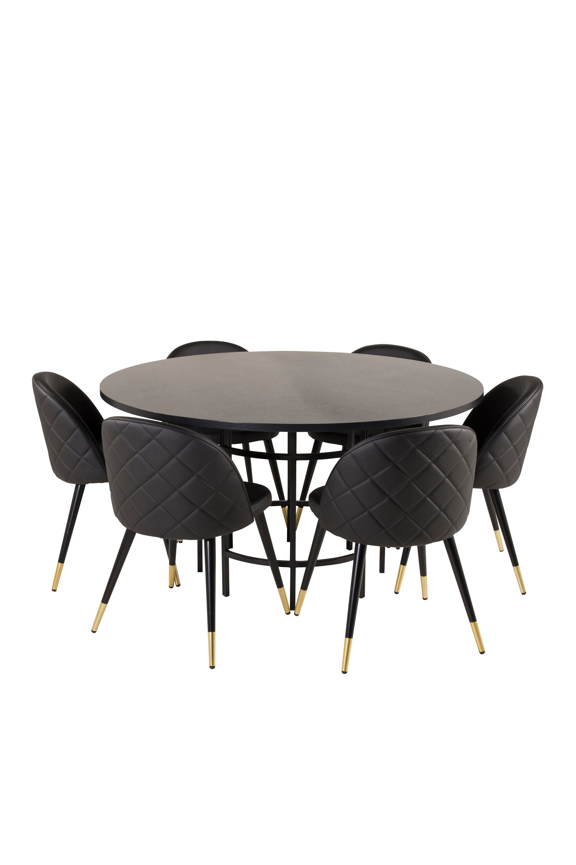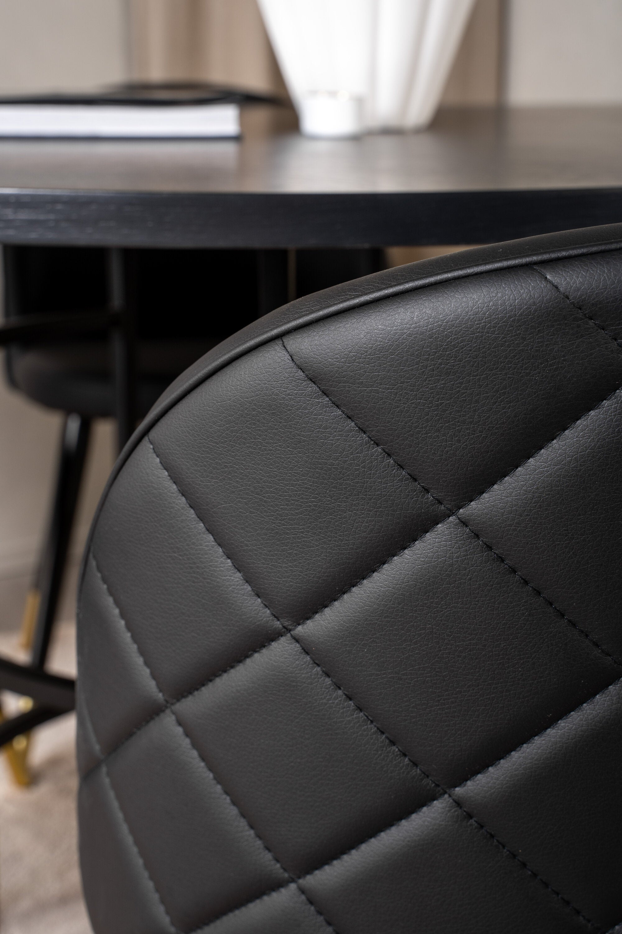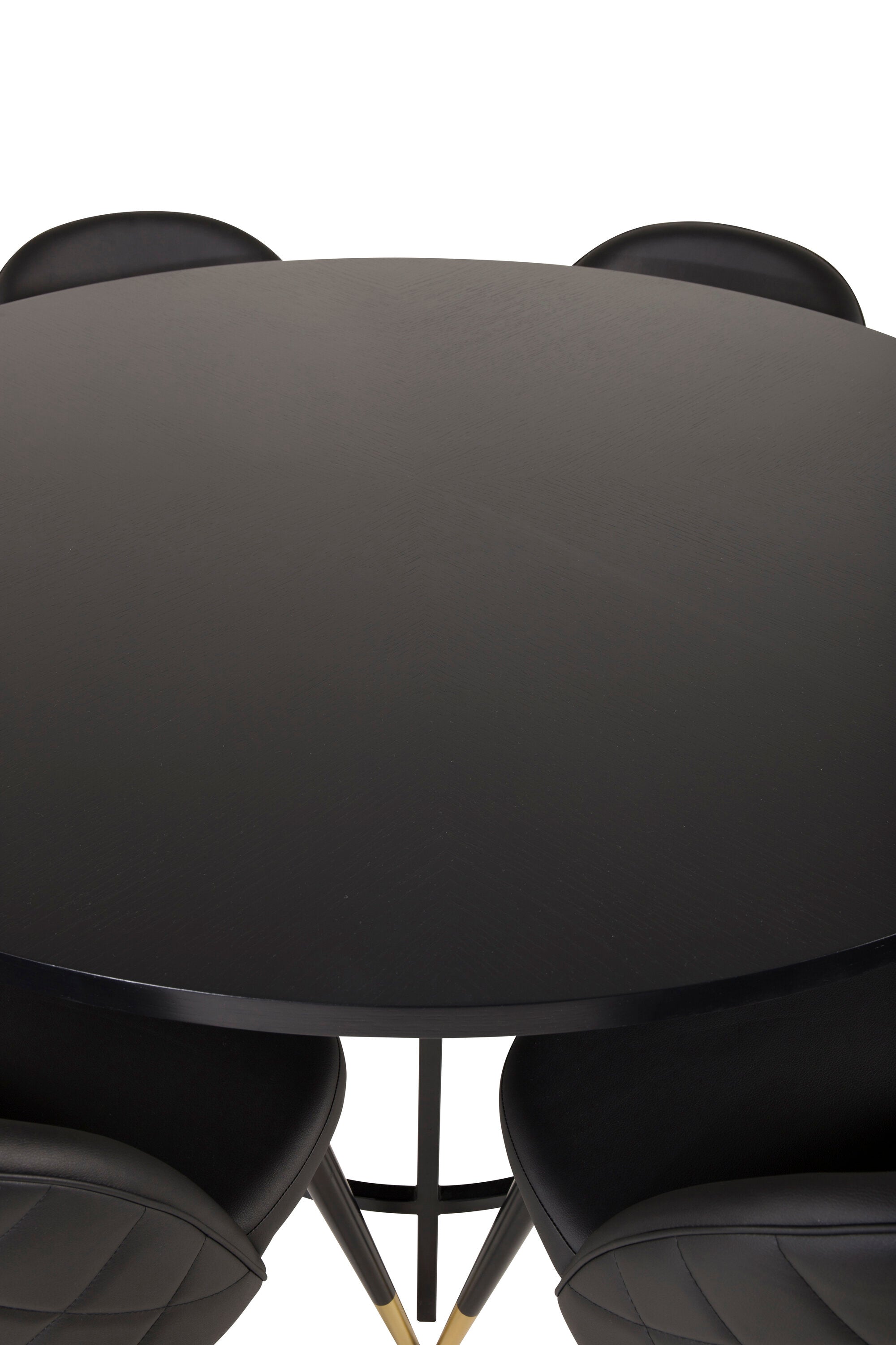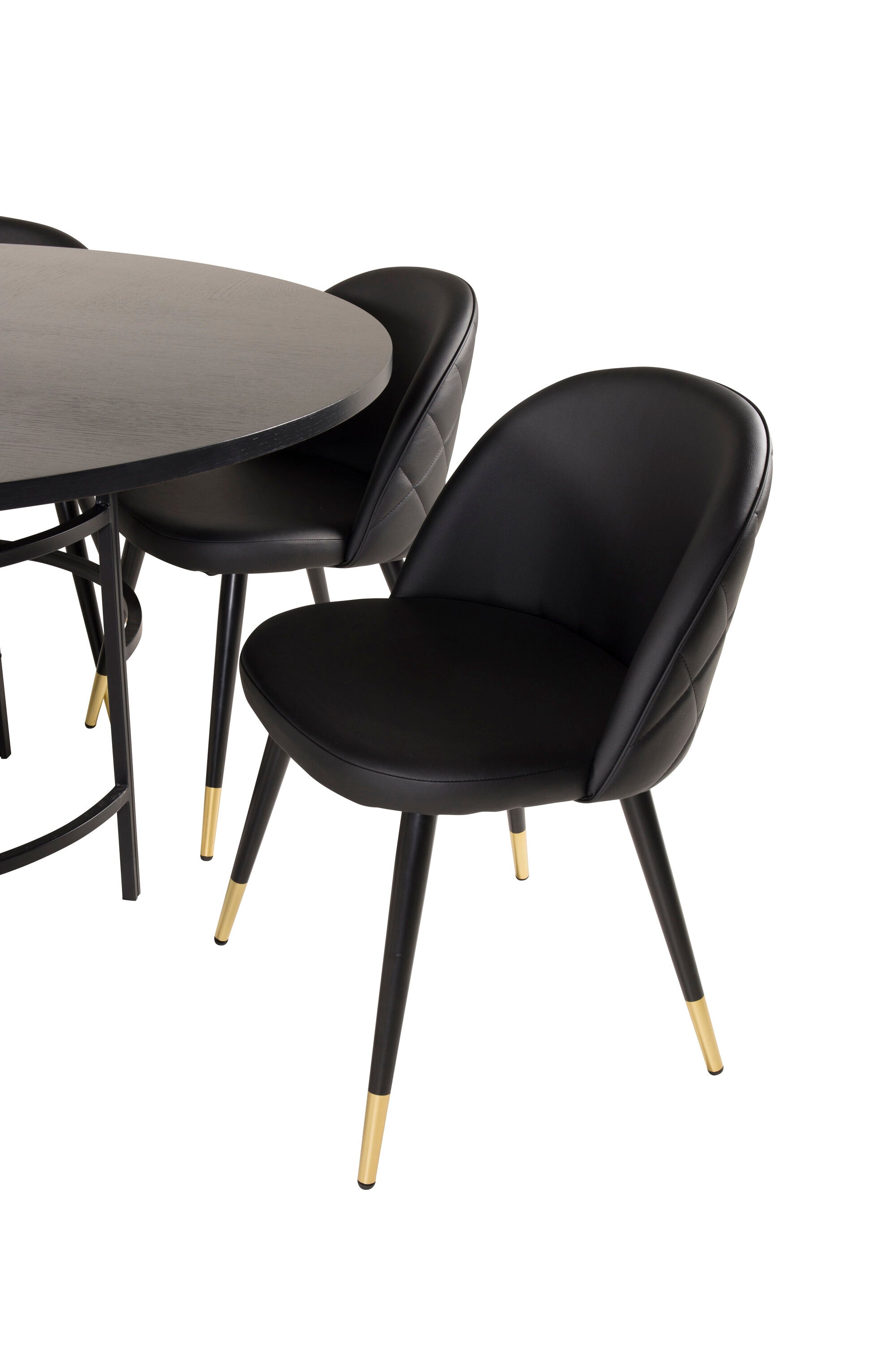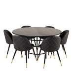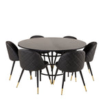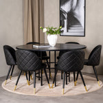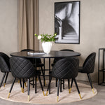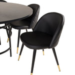 Copenhagen - Jídelní stůl kulatý - Černá / Černá+Velvet jídelní židle mosaz š. stehy vzadu - Černá / PU _6