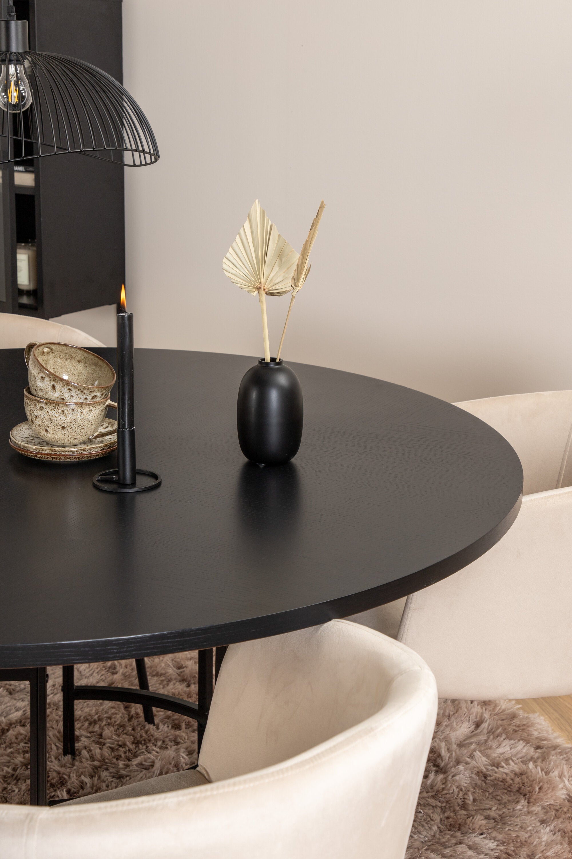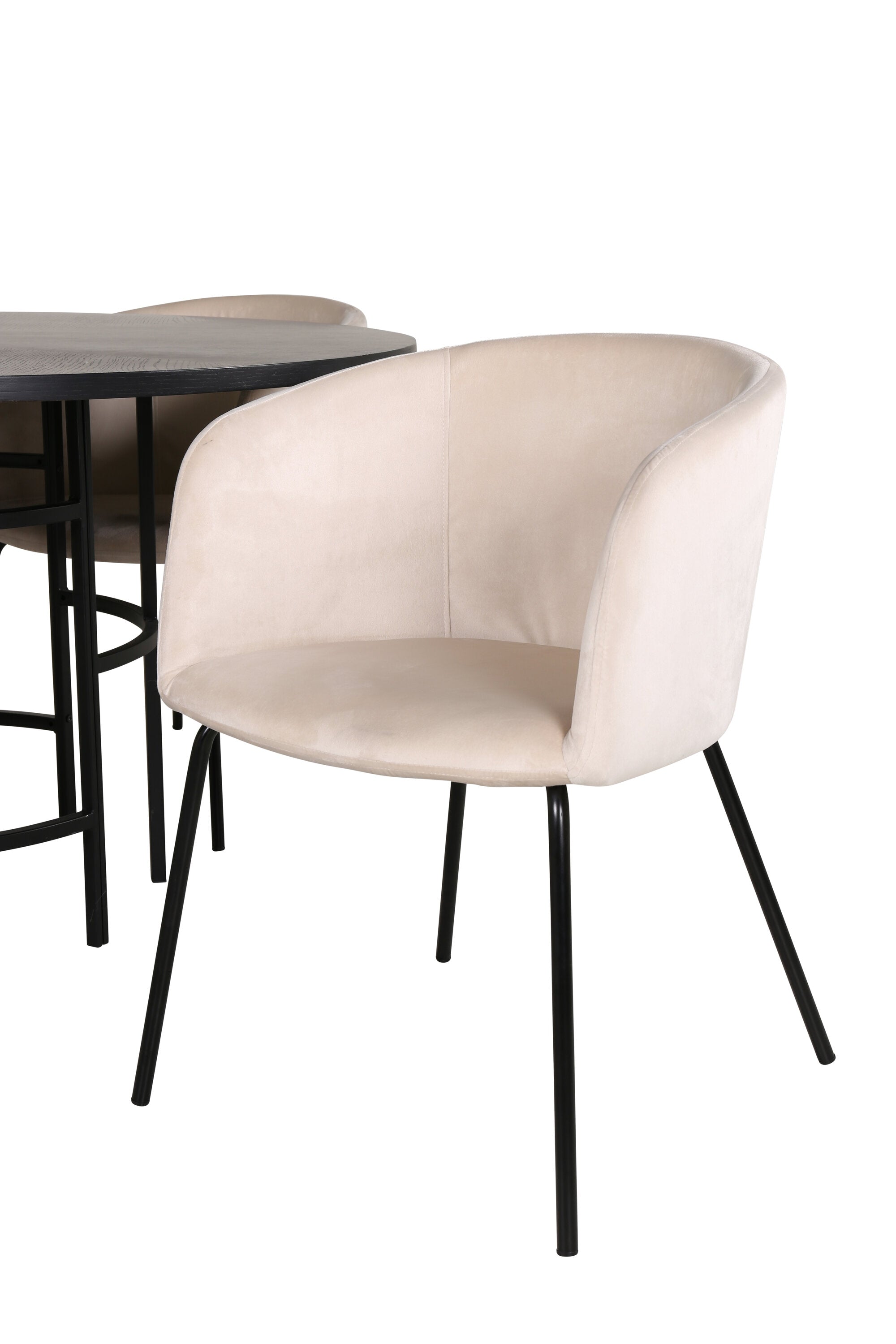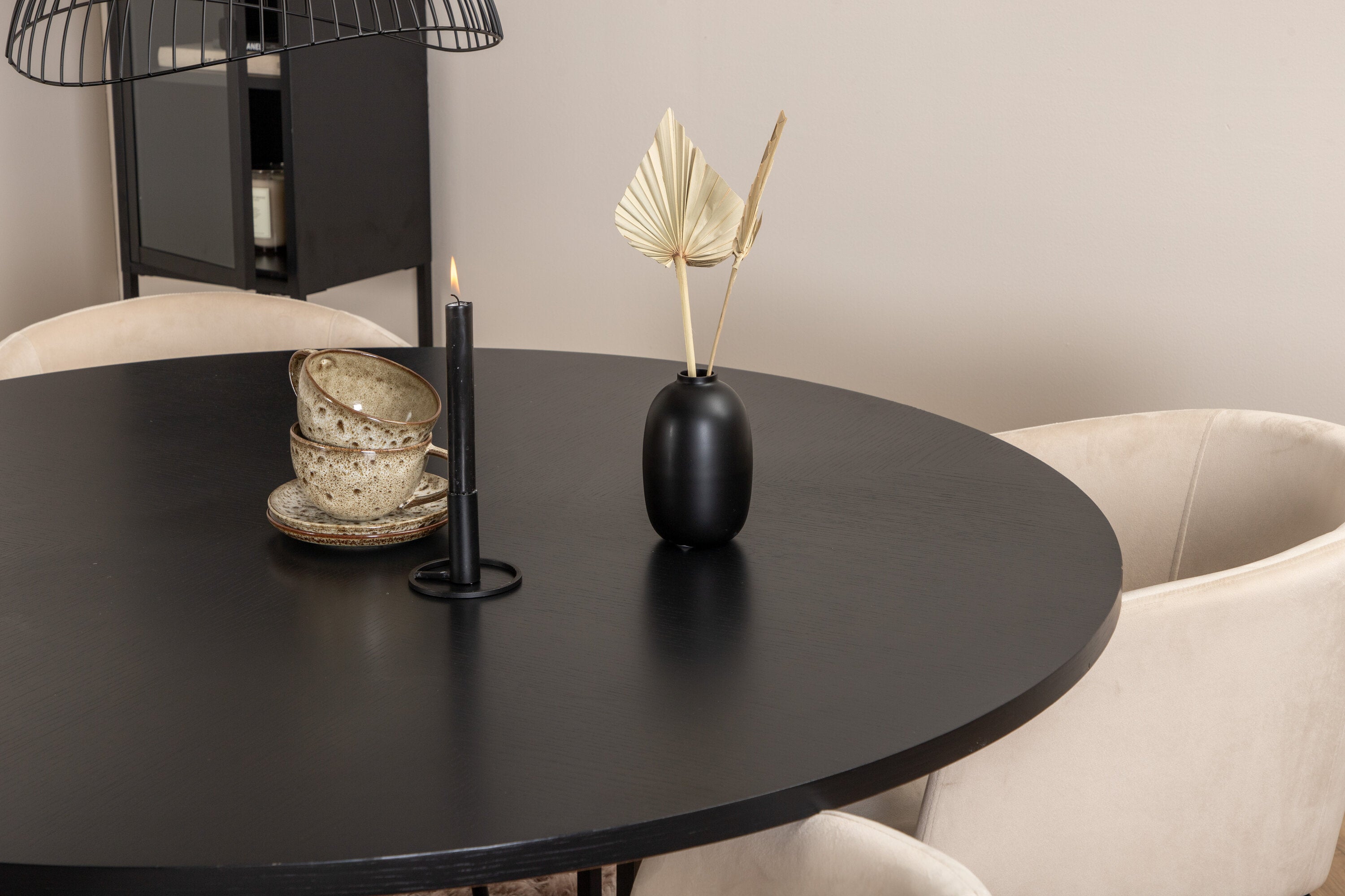 Copenhagen - Jídelní stůl kulatý - Černá / Černá + židle Berit - Černá / Béžová Velvet_4