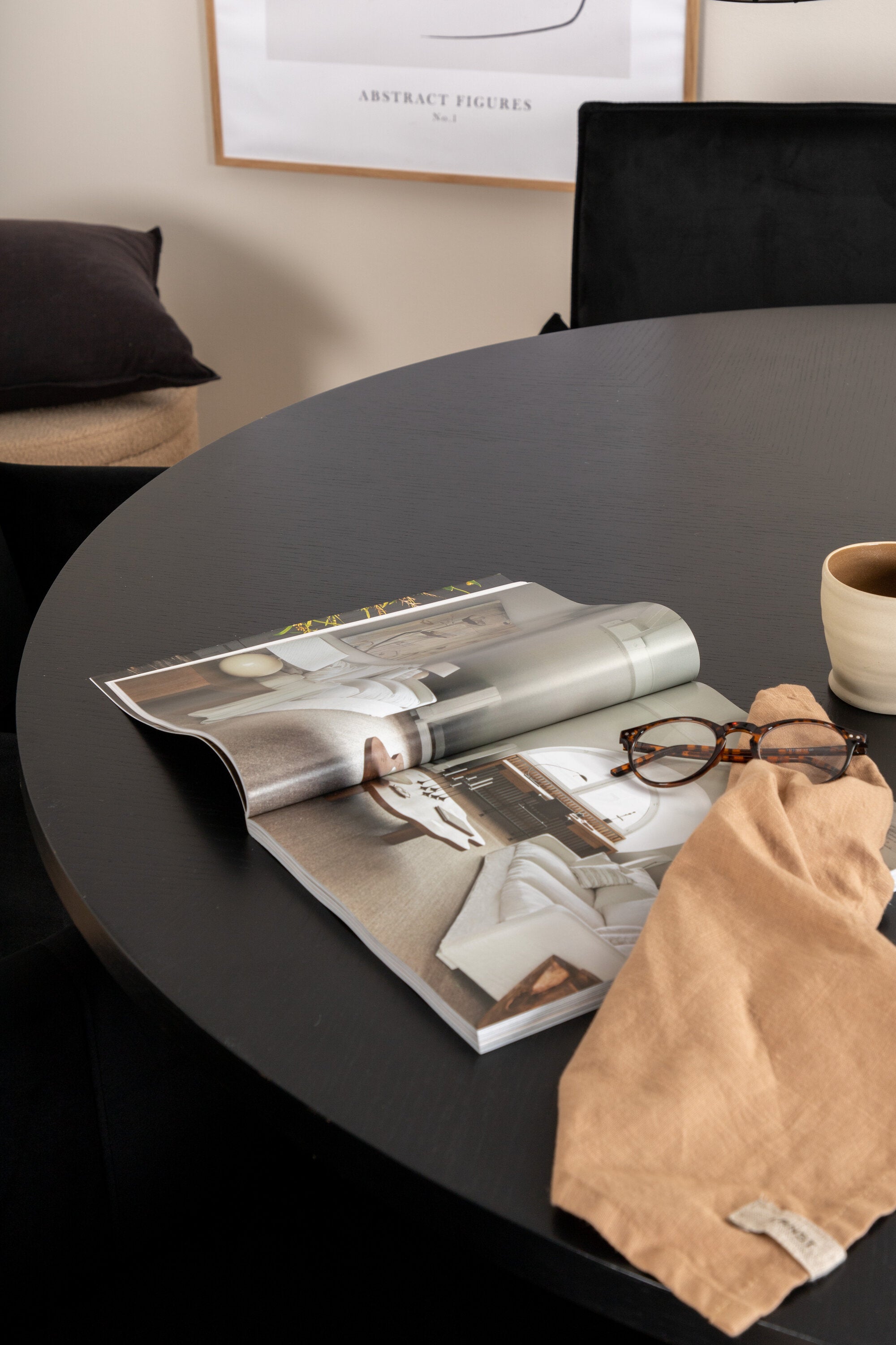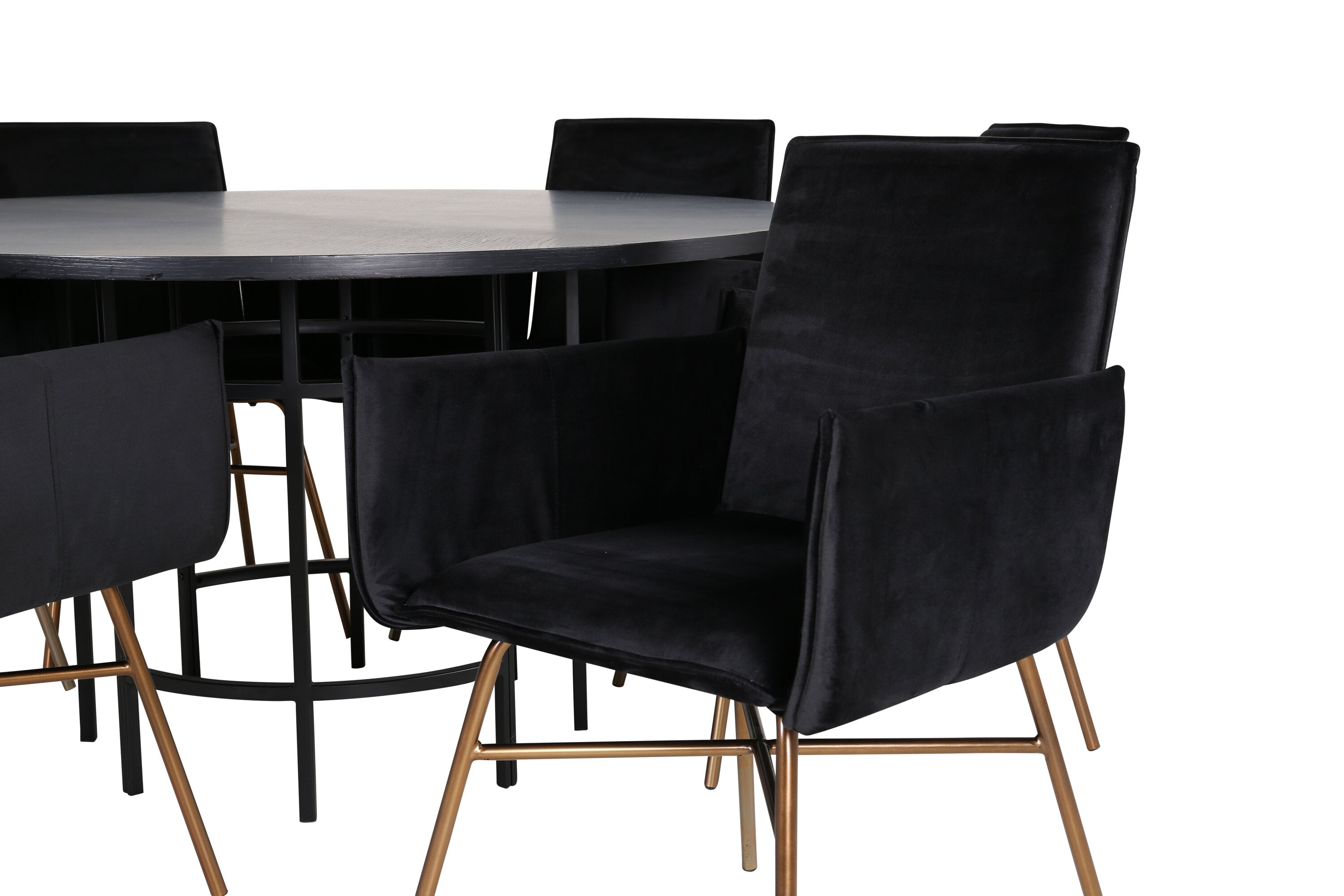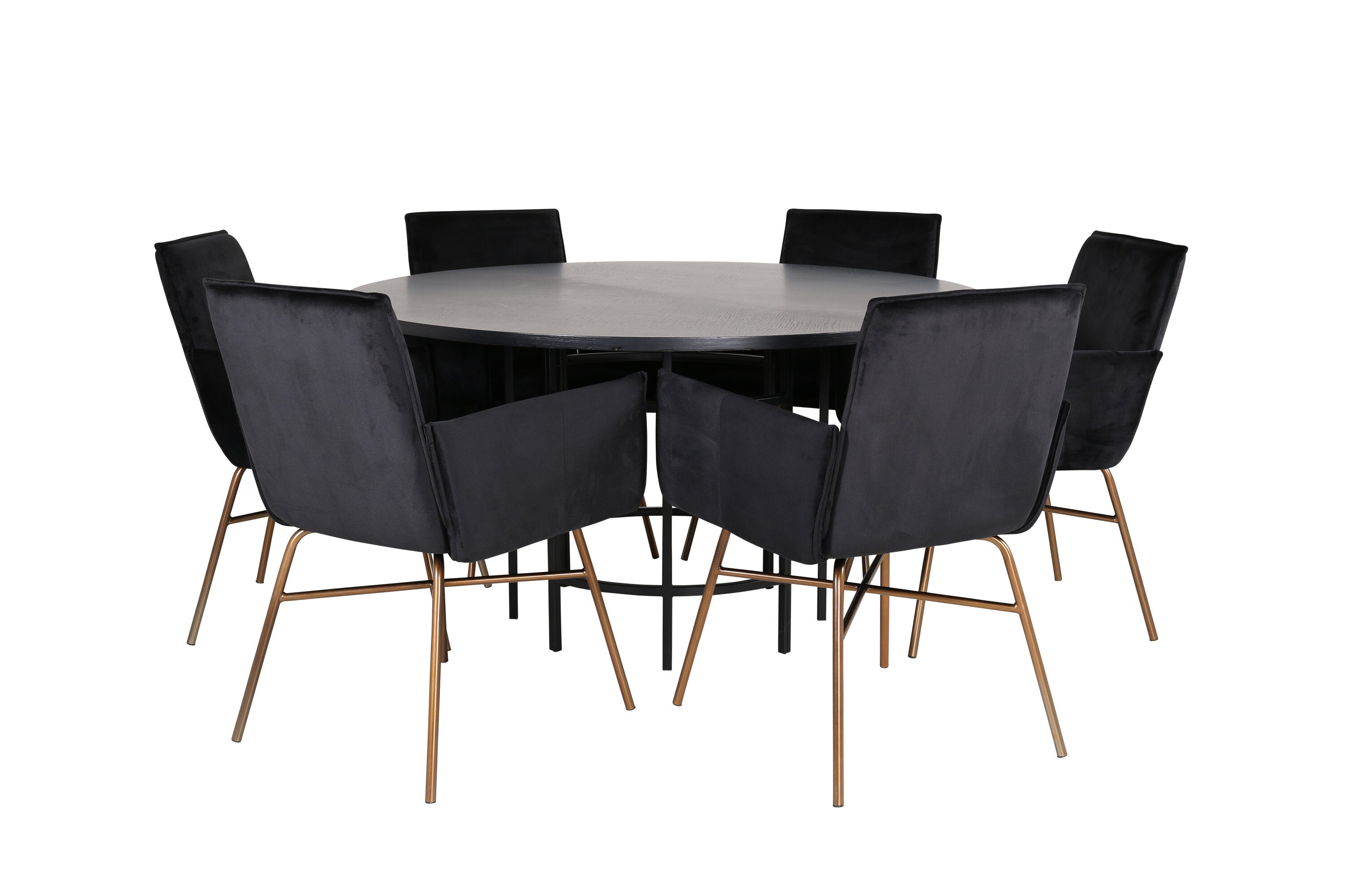 Copenhagen - Jídelní stůl kulatý - Černá / Černá + židle Petra - Distressed Copper / Black Velvet_6