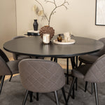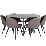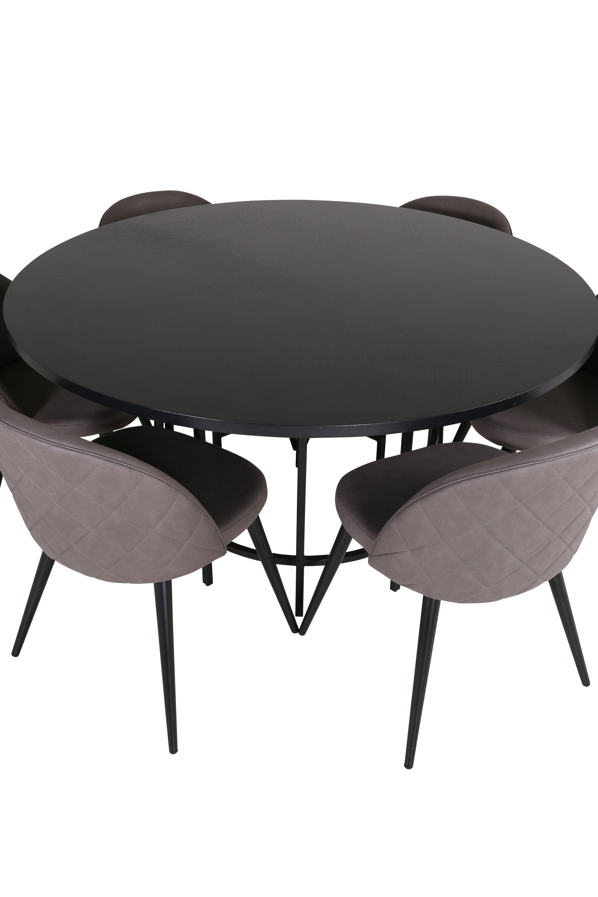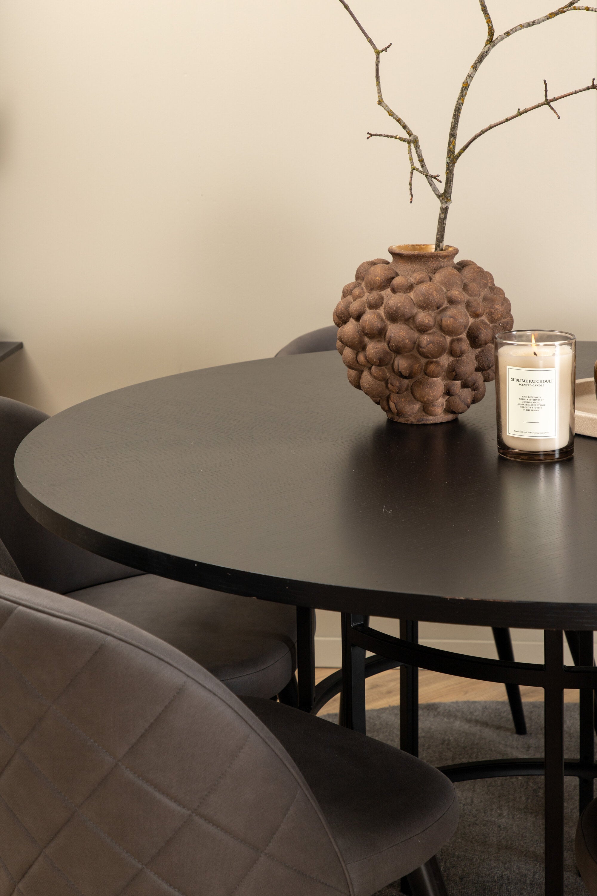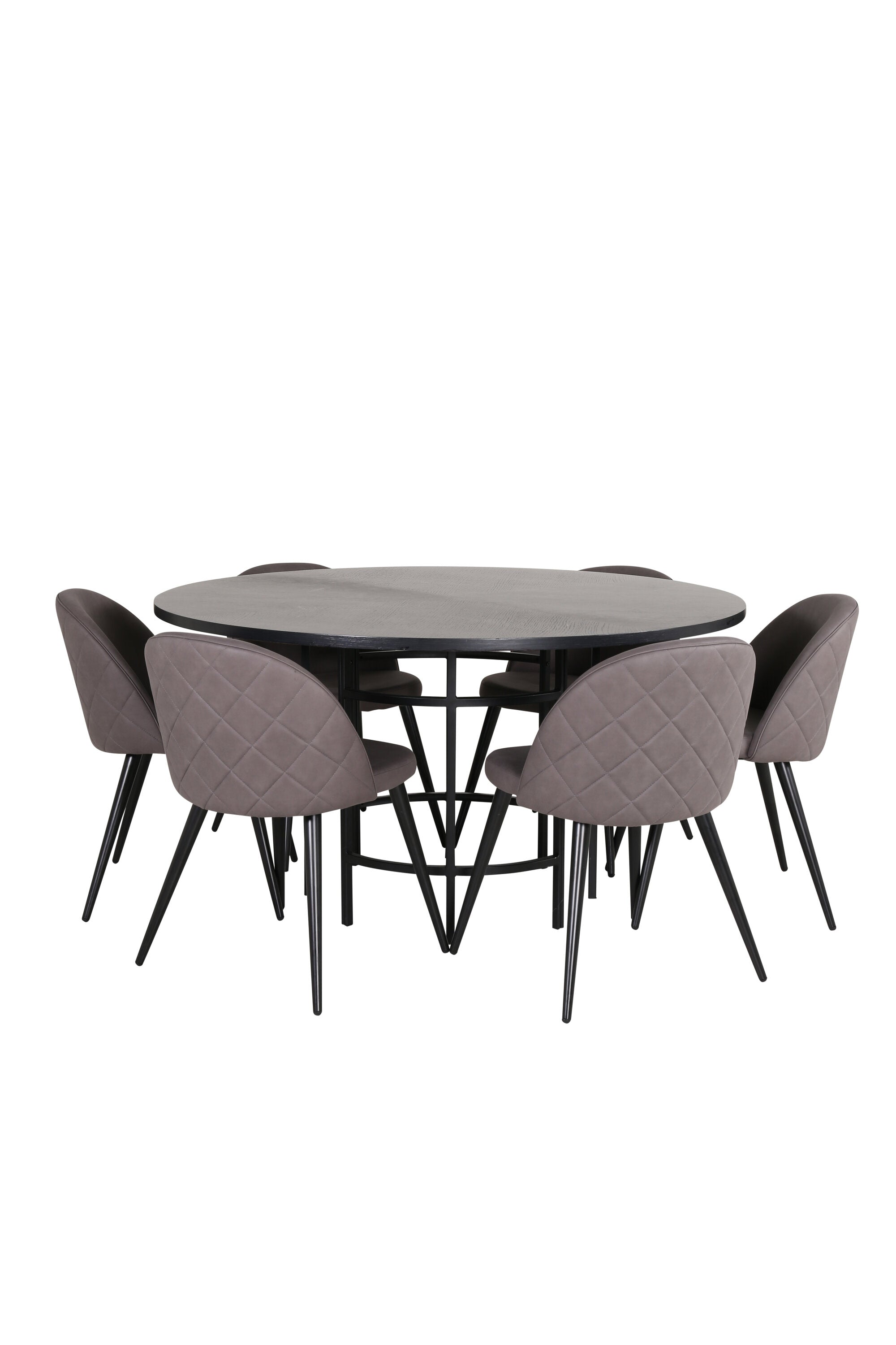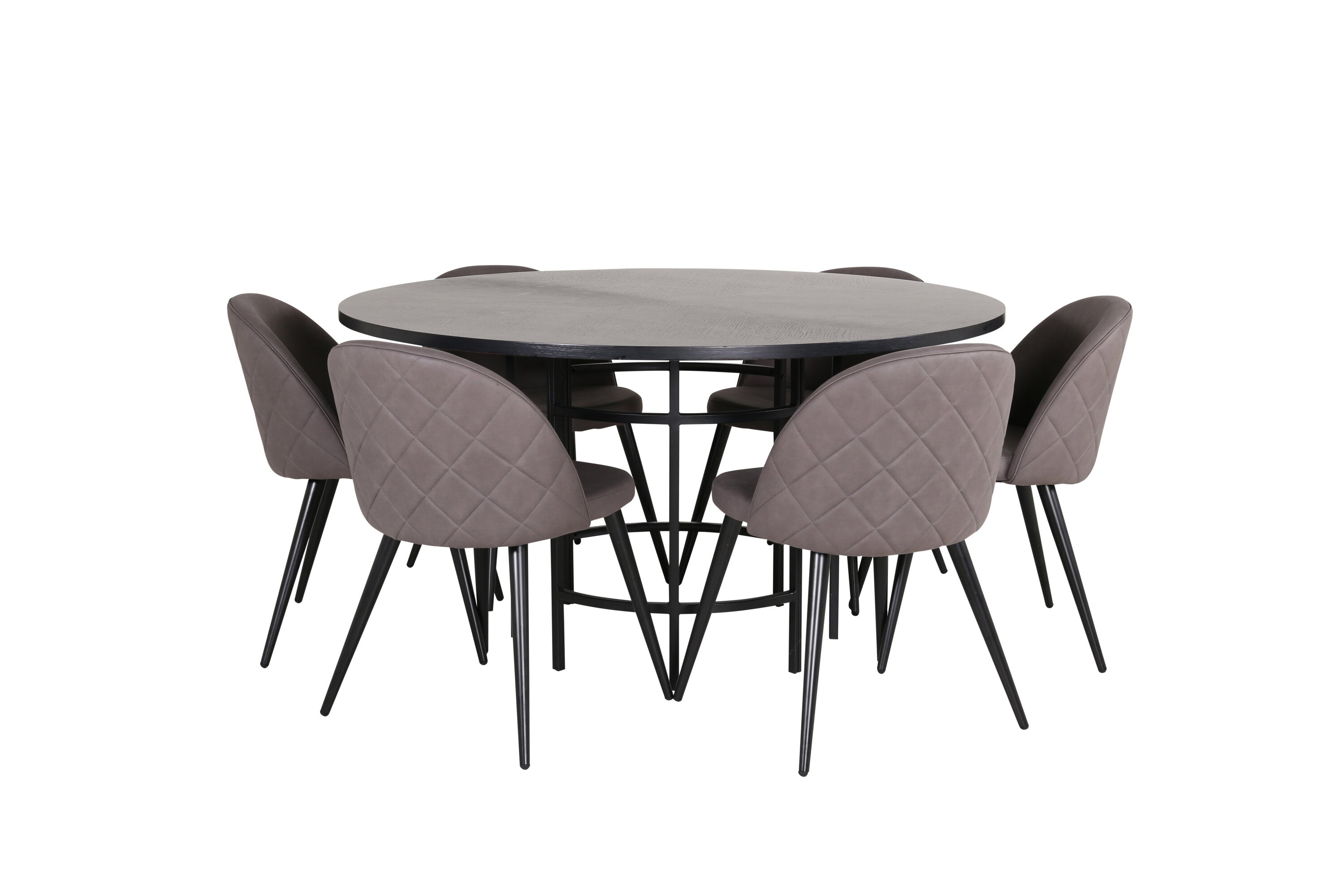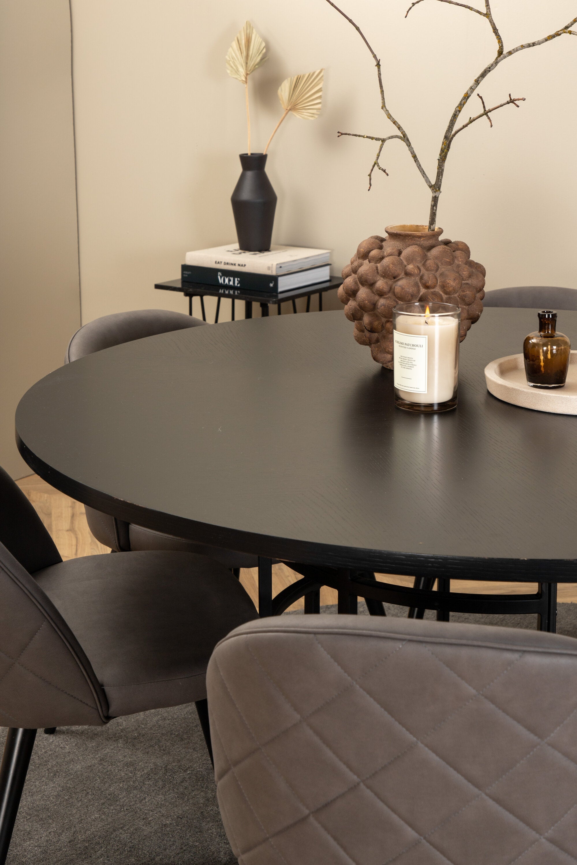 Zařiďte obývací pokoj lákavě a neotřesitelně! Jídelní stůl Copenhagen má trendový design v konzistentně černé barvě se stolovou deskou z MDF s dýhou a dekorativním kovovým podvozkem válcového tvaru. Rozměry stolu: Průměr: 140 cm, Výška: 74 cm. Zde v lahodné kombinaci se 6 jídelními židlemi Velvet Stitches. Nohy židle jsou snadno rozšířeny v železe a sedadla černá z mikrovlákna se stylovým dekoračním stehem. Rozměry židle: Výška: 76,5 cm, výška sedáku: 46,5 cm, šířka: 50 cm, hloubka: 57 cm. Stejně dobře vypadající pro oko, stejně jako pohodlné sezení!