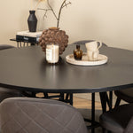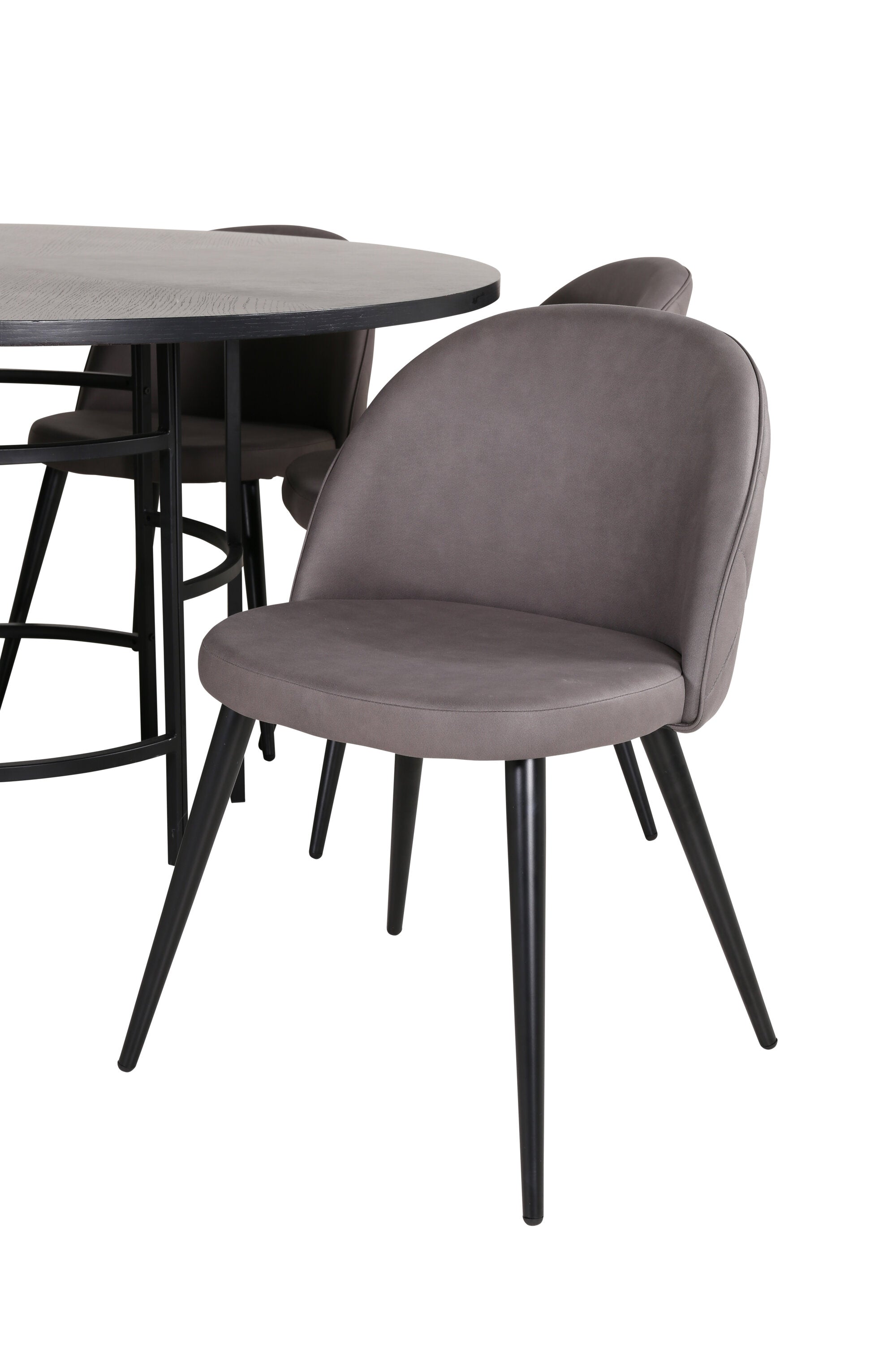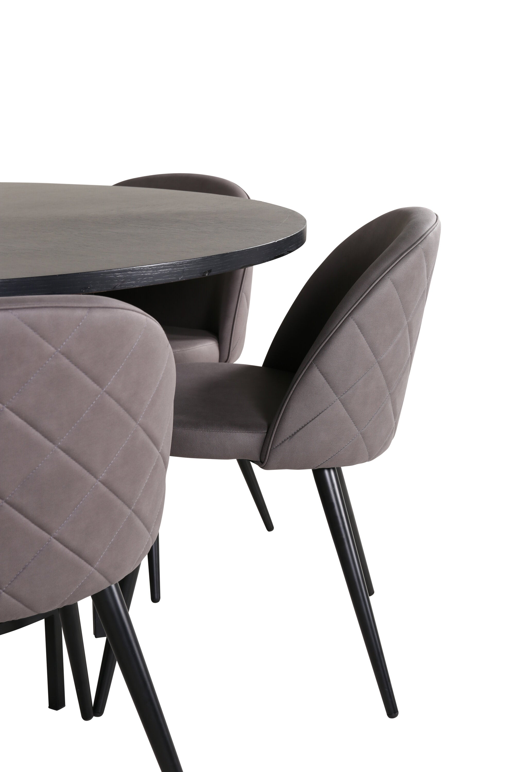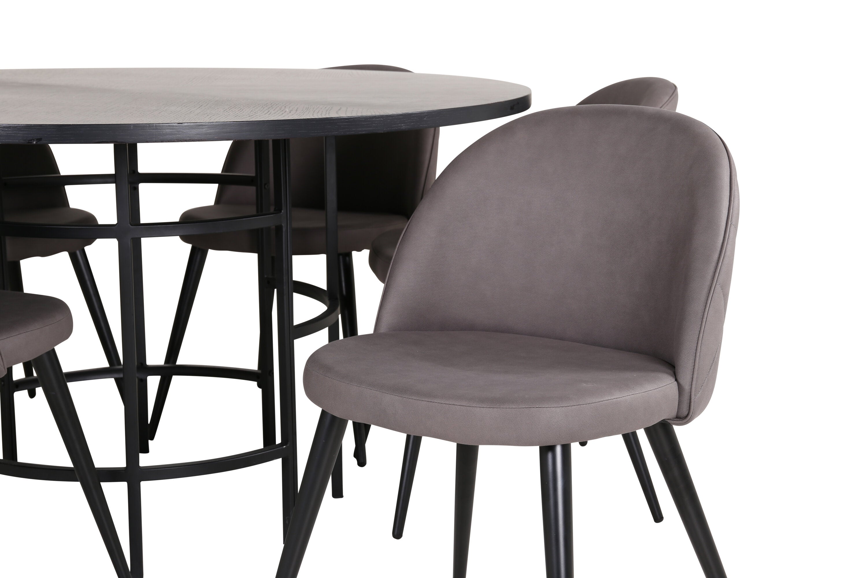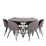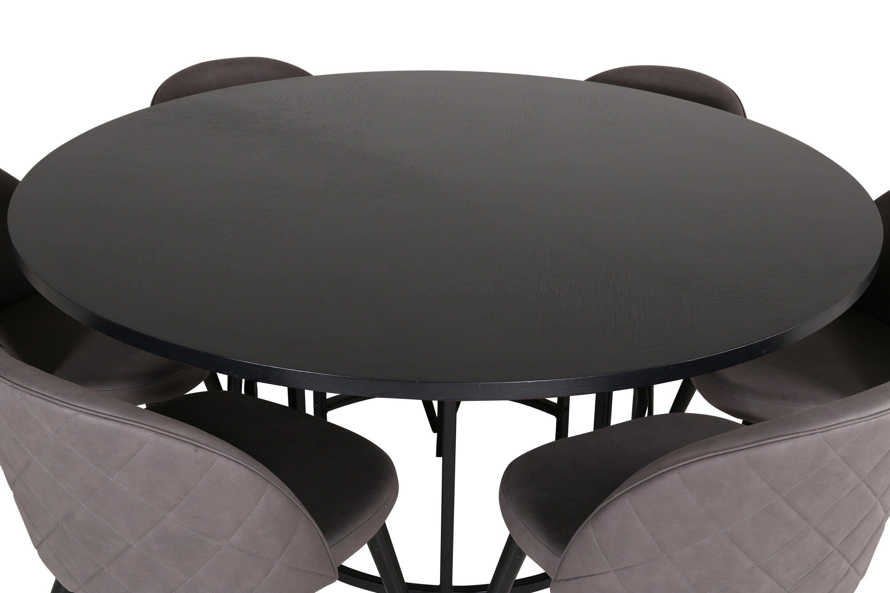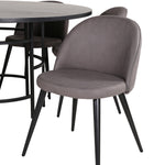 Copenhagen - Jídelní stůl kulatý - Černá / Černá + židle se sametovými stehy - Černá / Šedá Micro Fibre_6