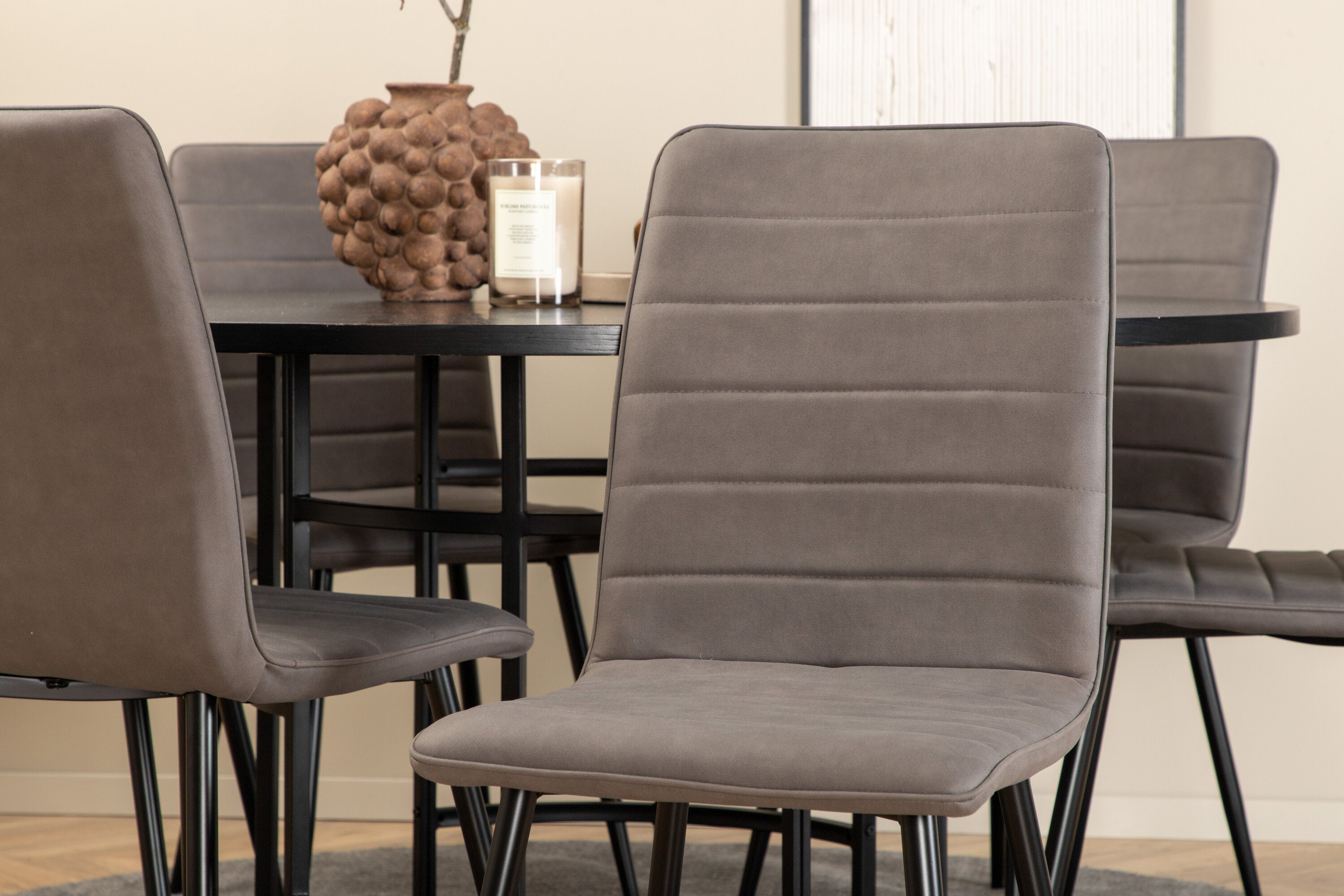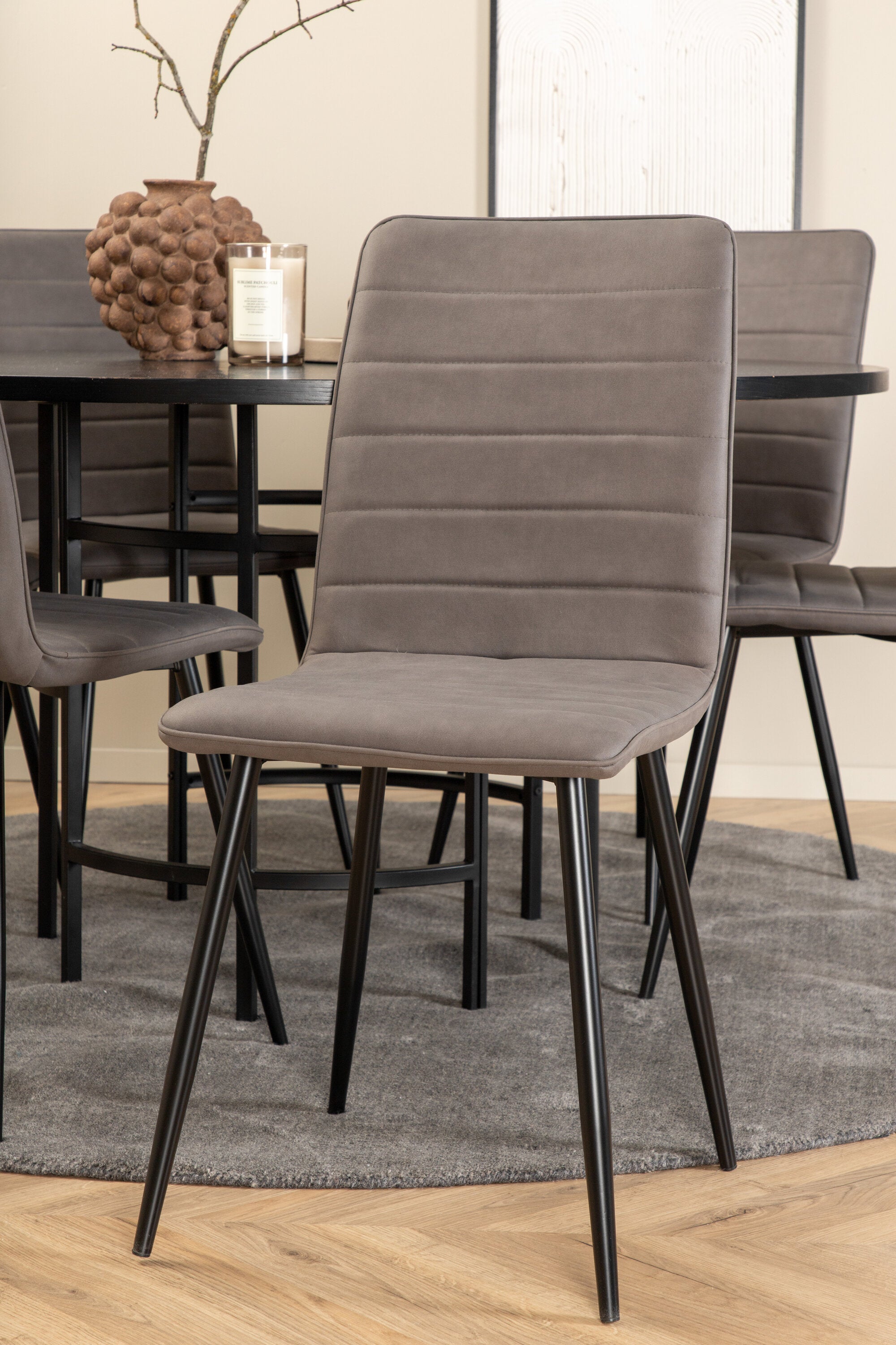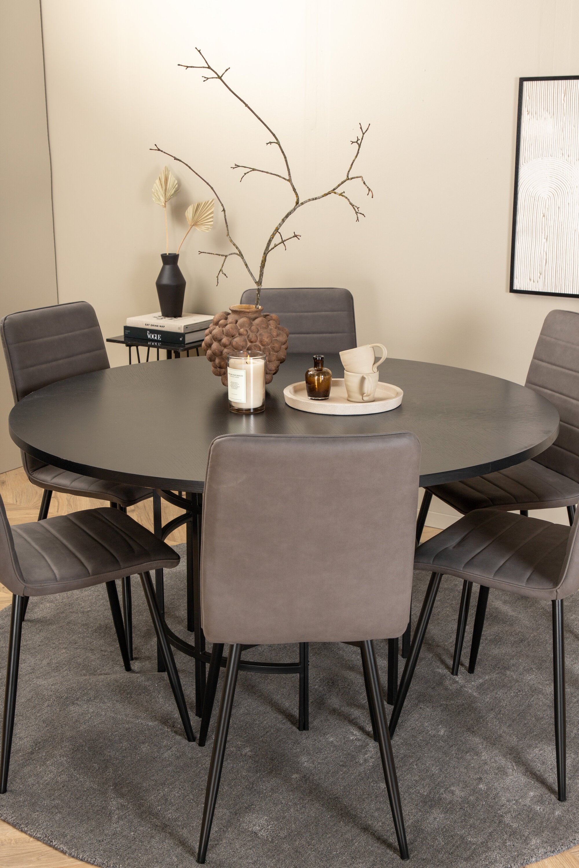 Copenhagen - Jídelní stůl kulatý - Černá / Černá + židle Windu Lyx - Černá / Šedá Micro Fibre_6