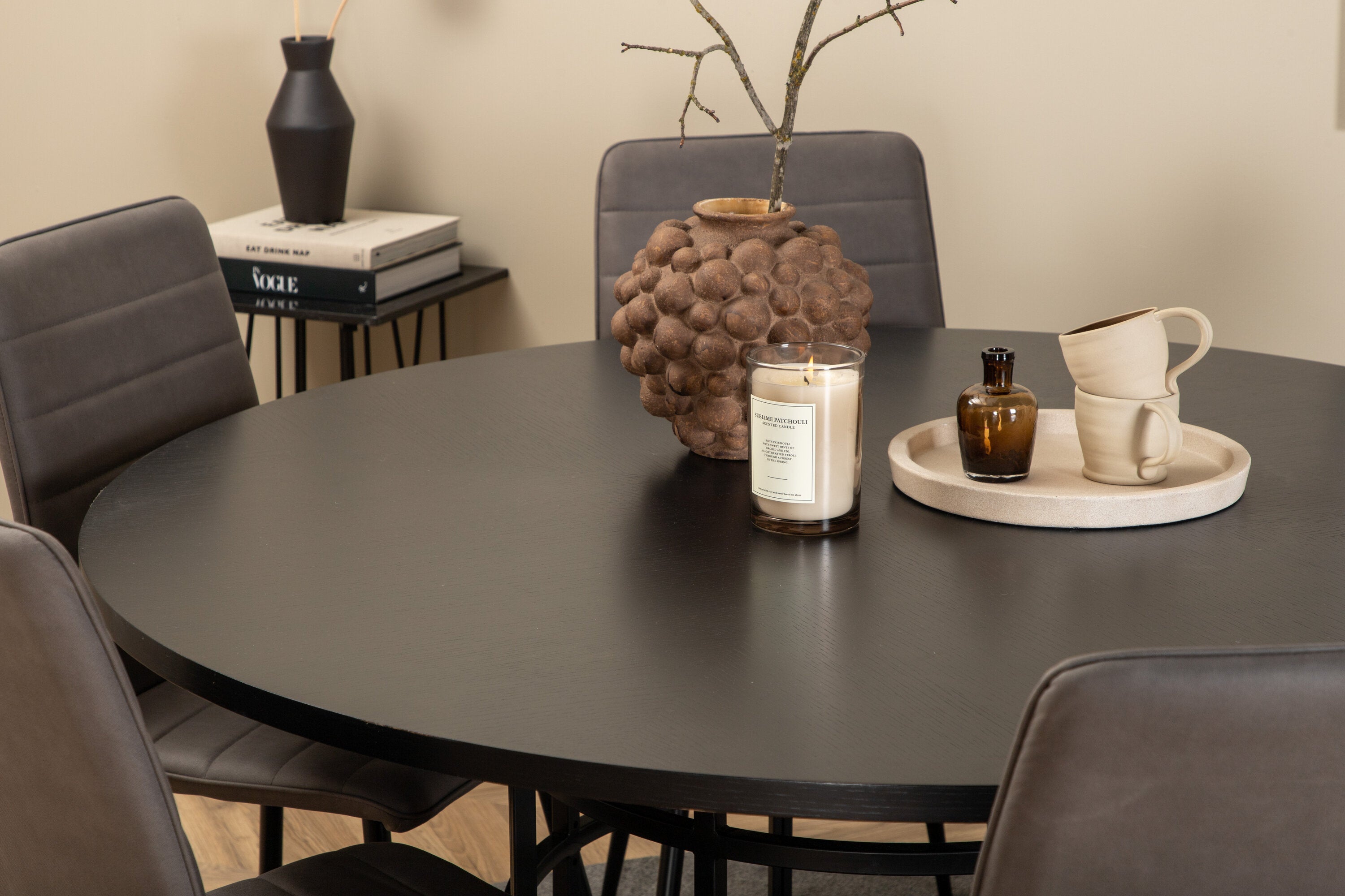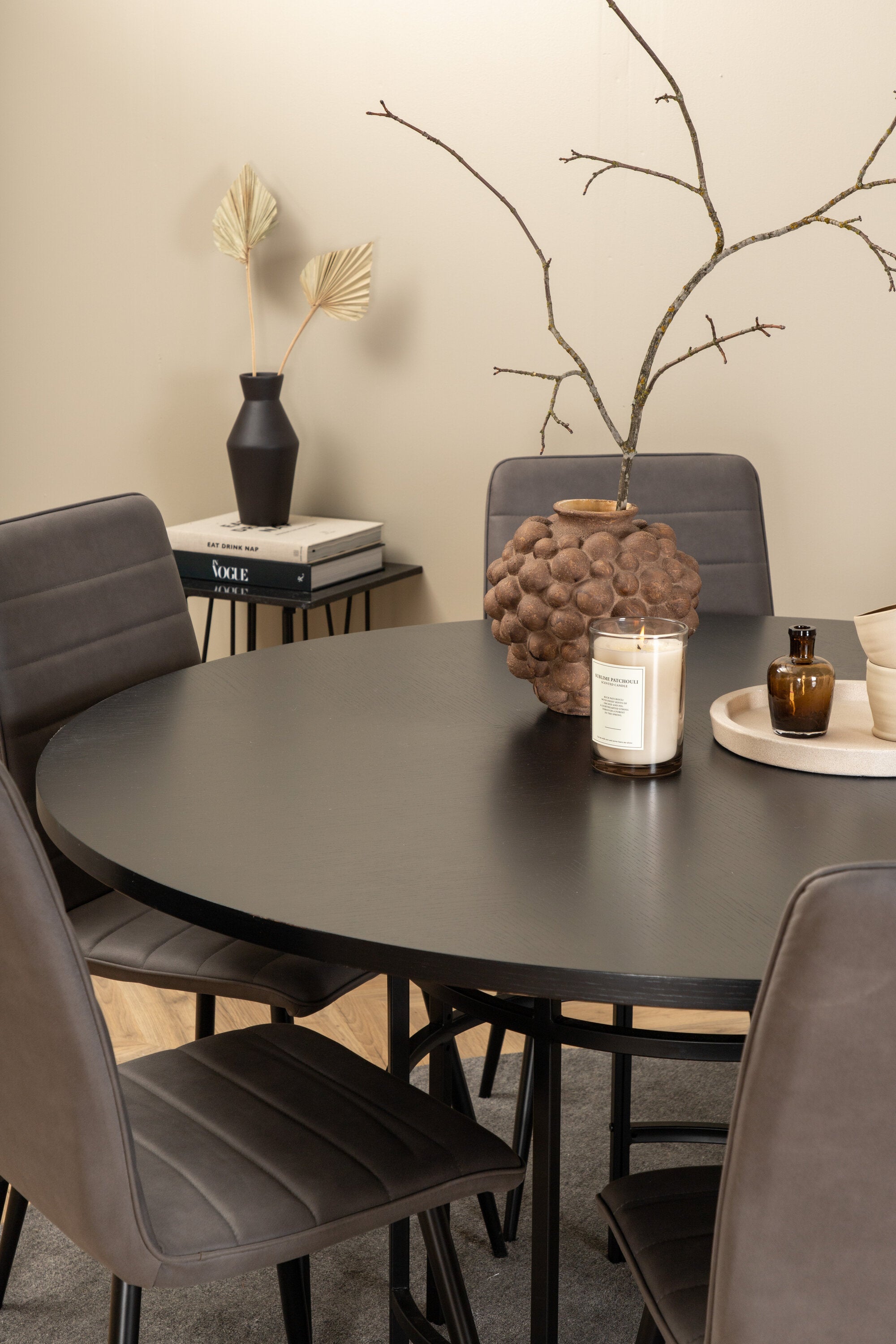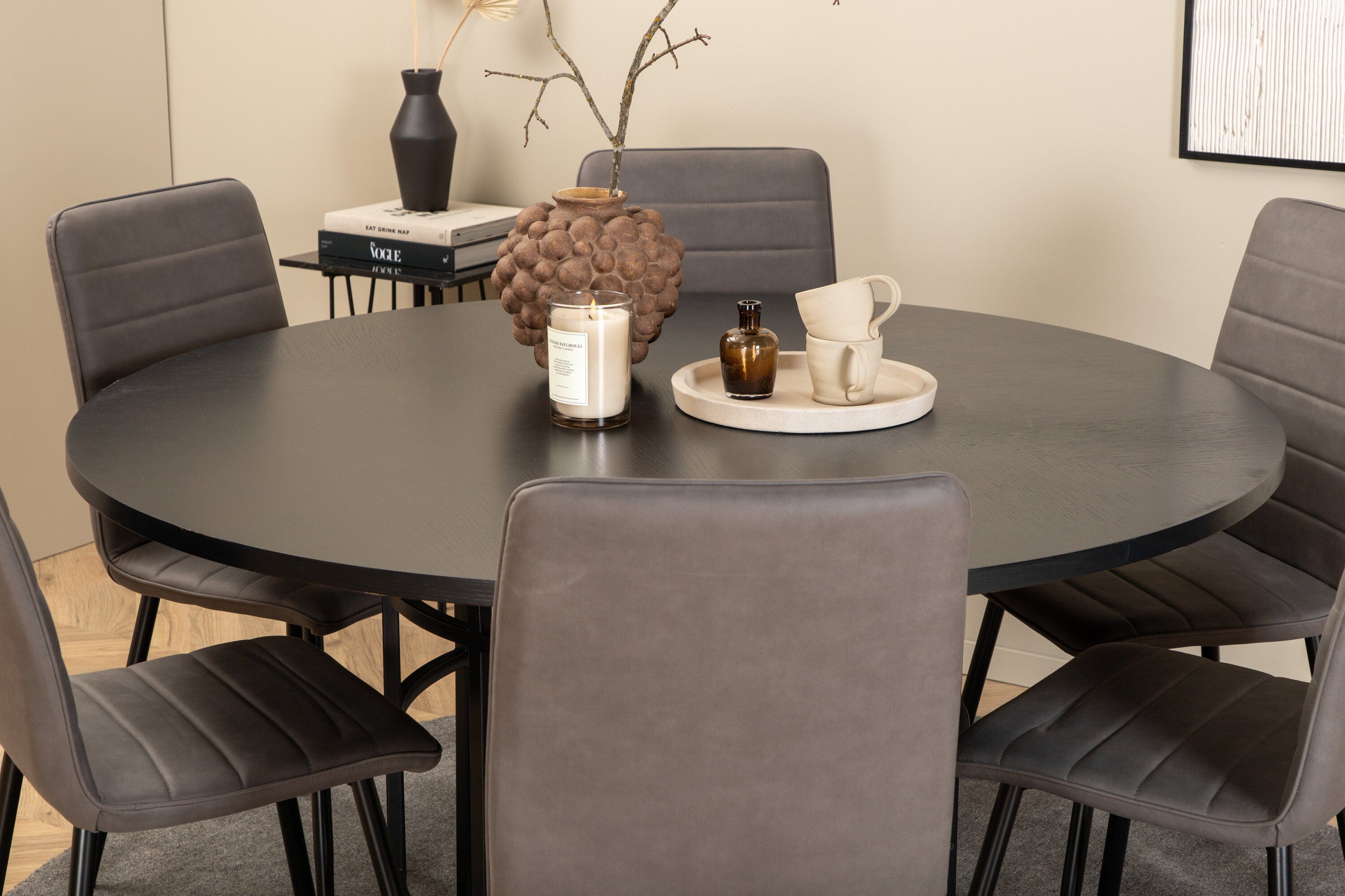 Copenhagen - Jídelní stůl kulatý - Černá / Černá + židle Windu Lyx - Černá / Šedá Micro Fibre_6
