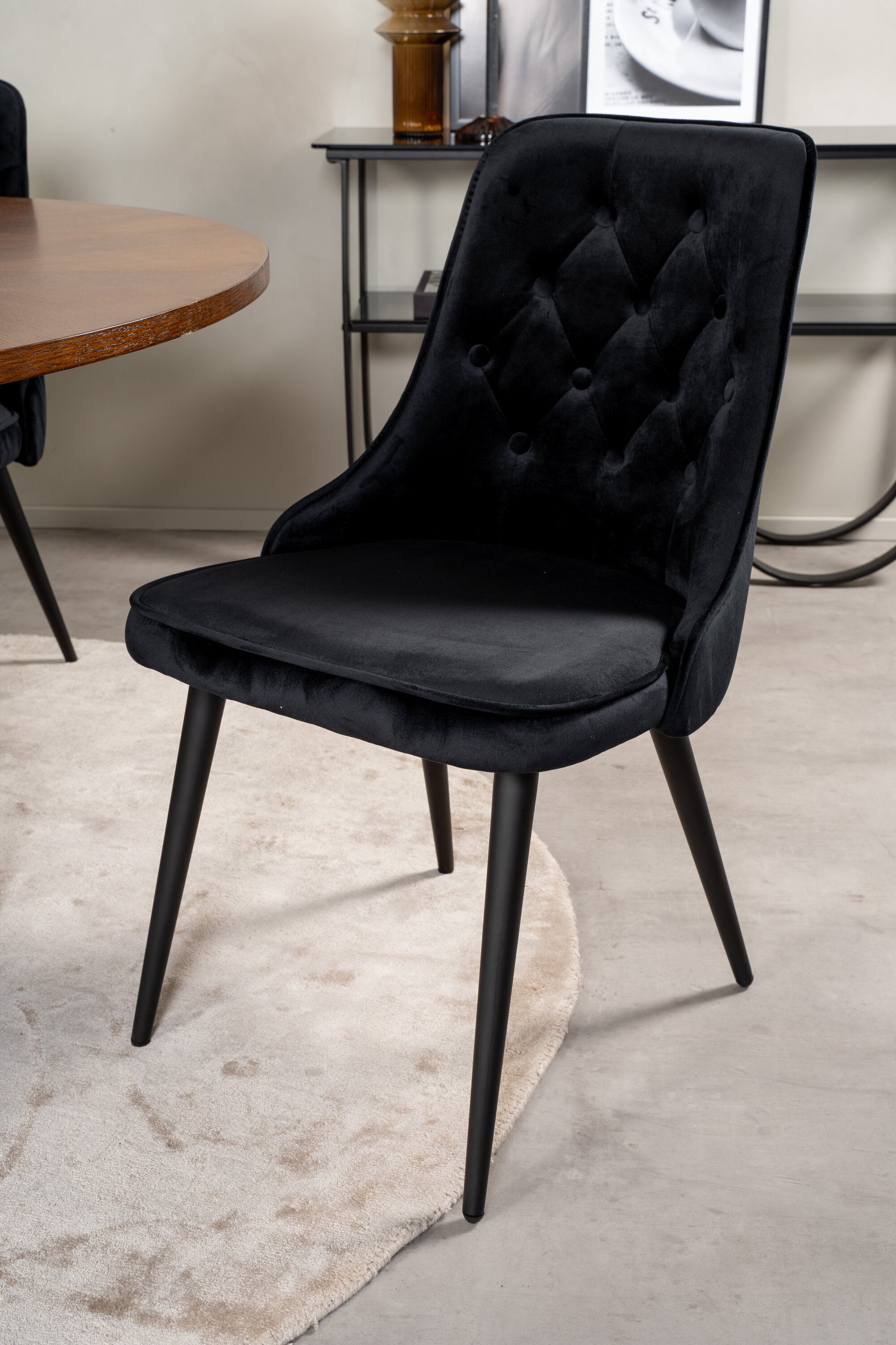 Copenhagen - Jídelní stůl kulatý - Hnědá / Black+Velvet Deluxe Jídelní židle - Černé nohy / Black velvet_4