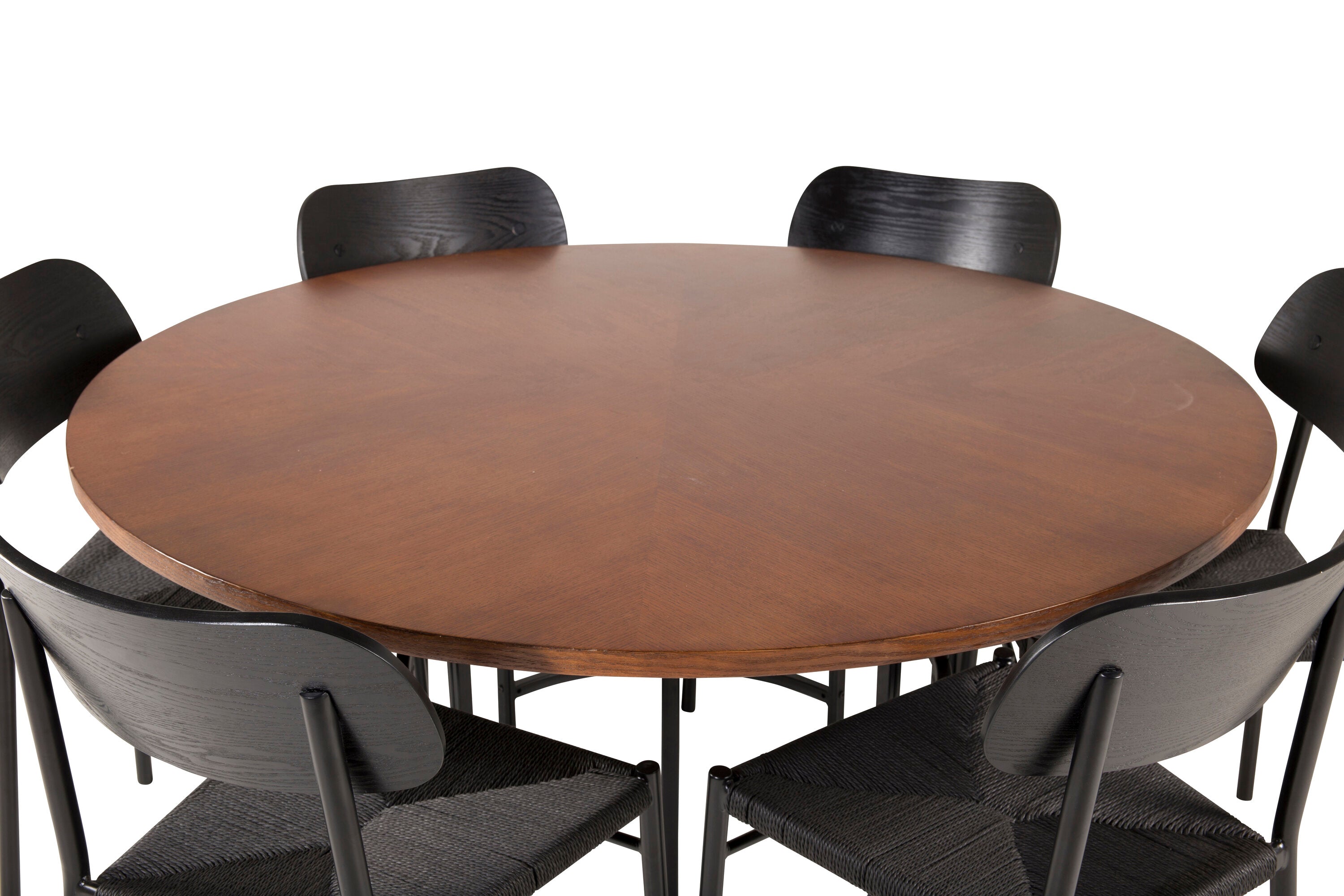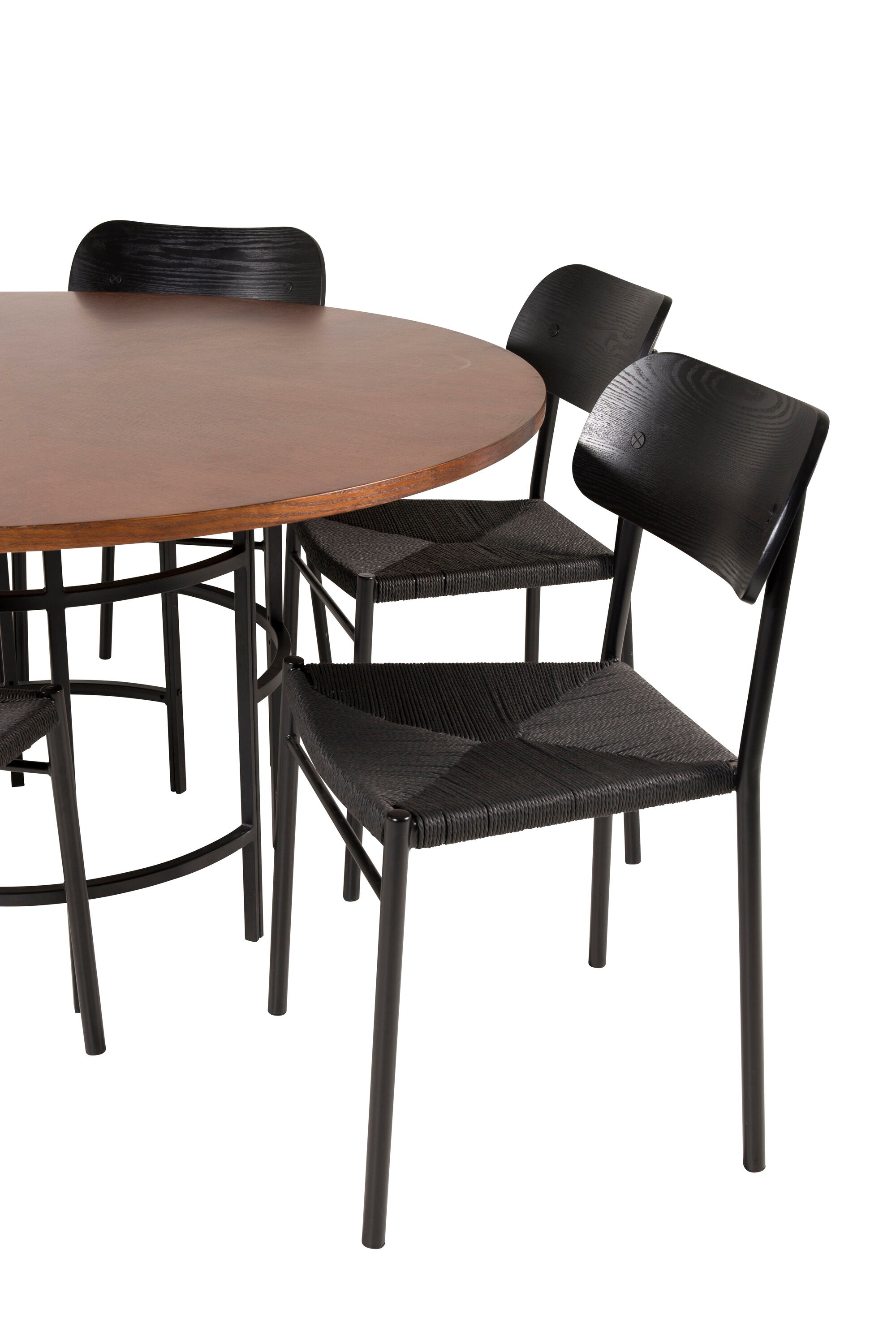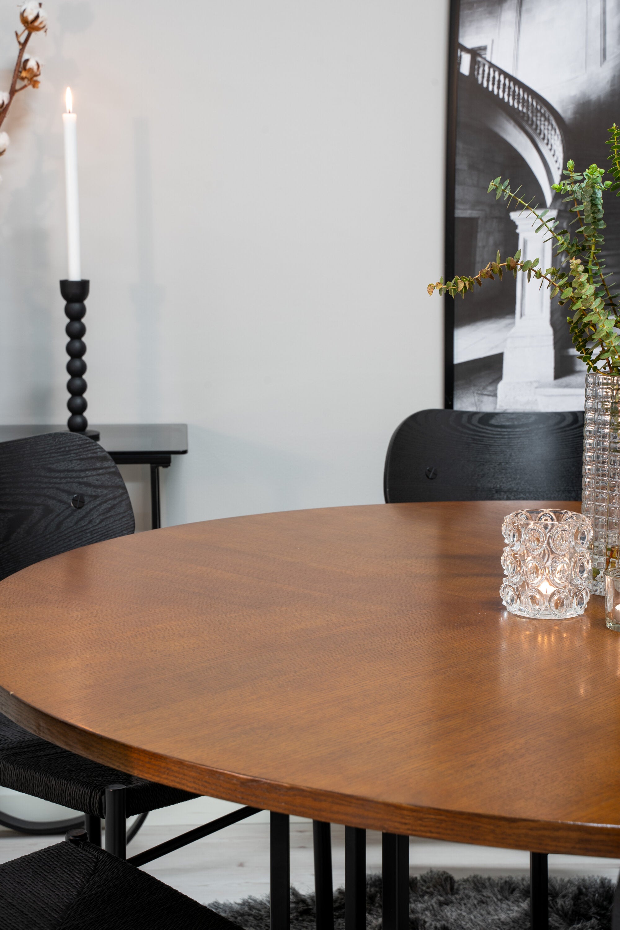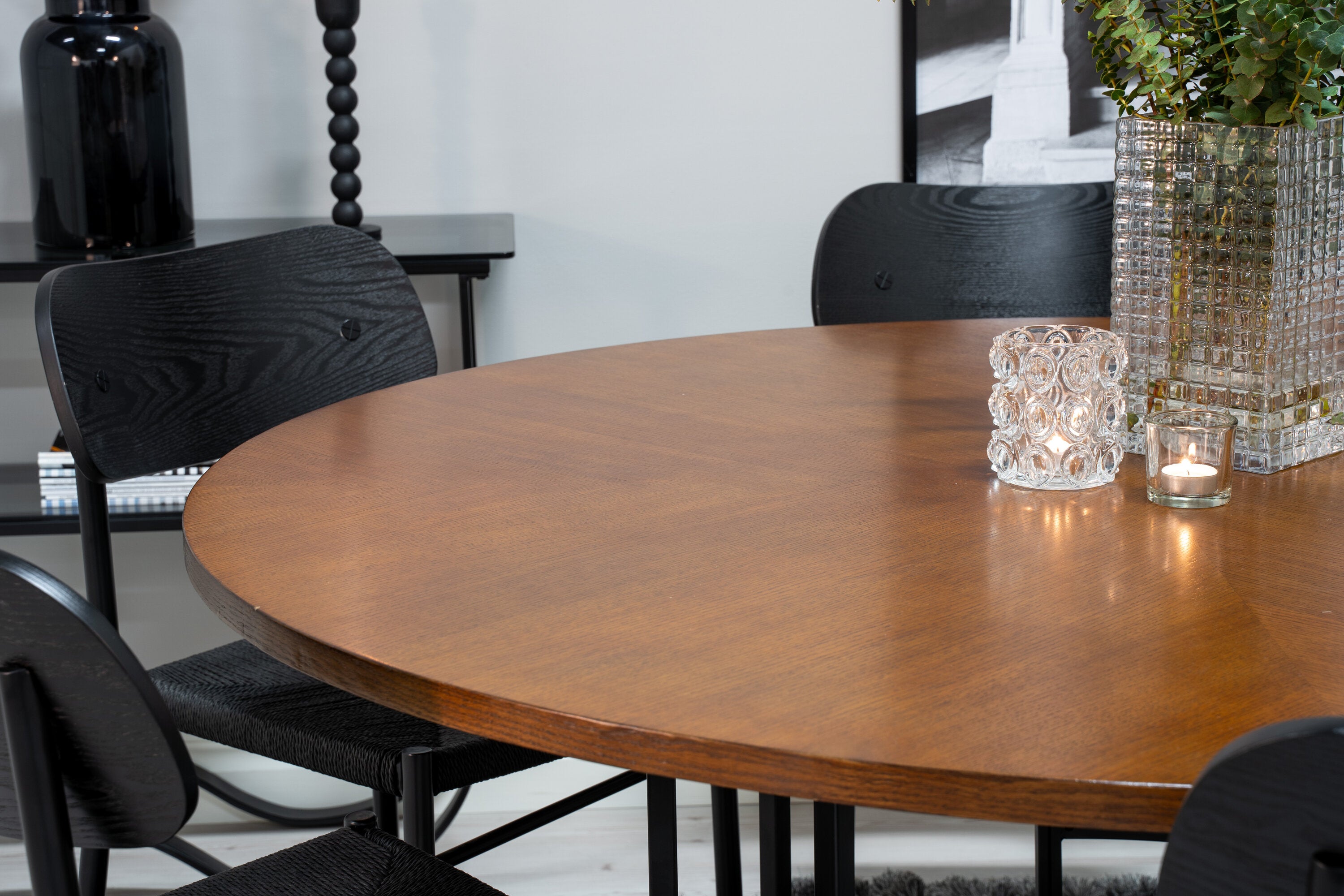 Copenhagen - Jídelní stůl kulatý - Hnědá / Černá + Jídelní židle Polly - Černá / Černá _6