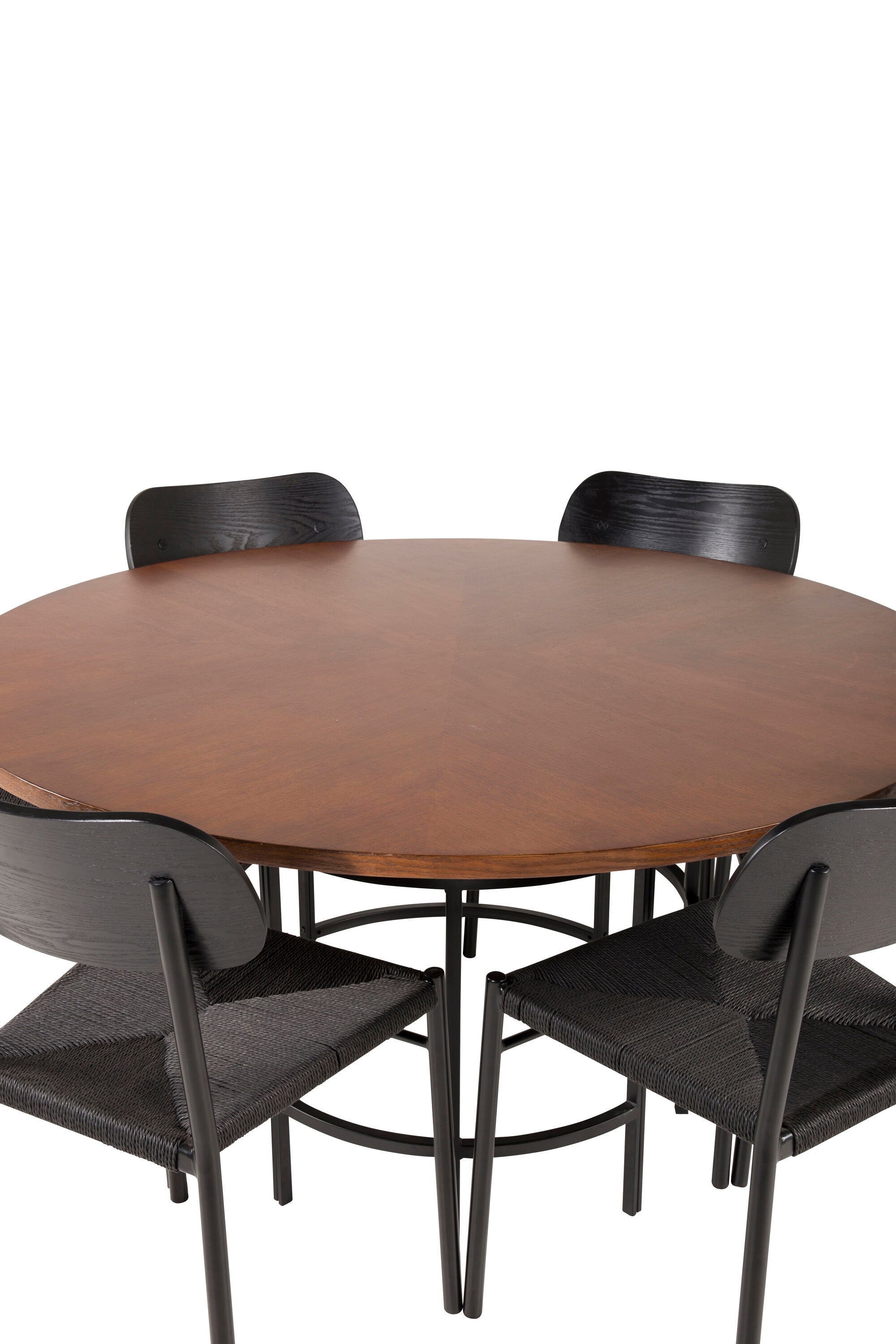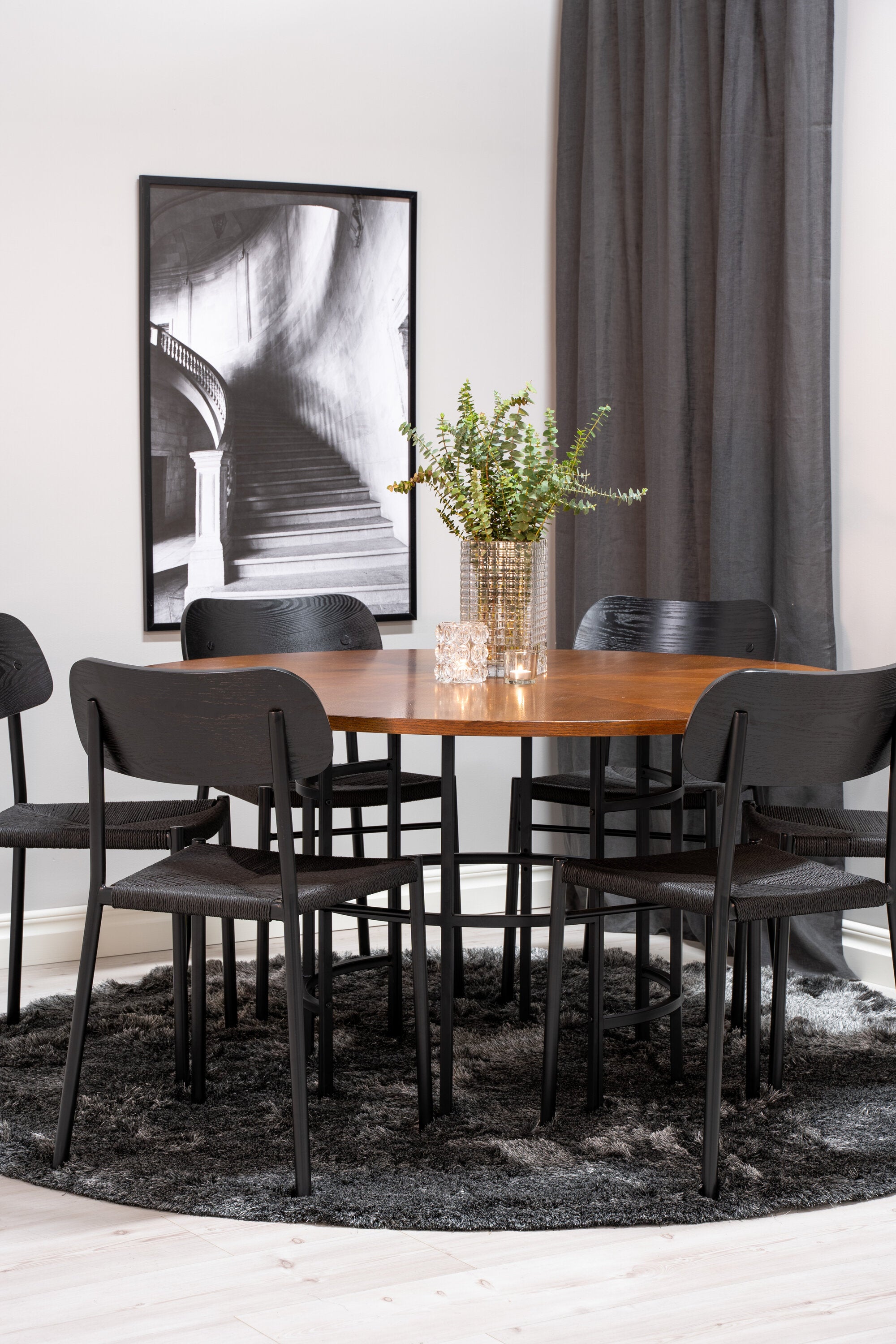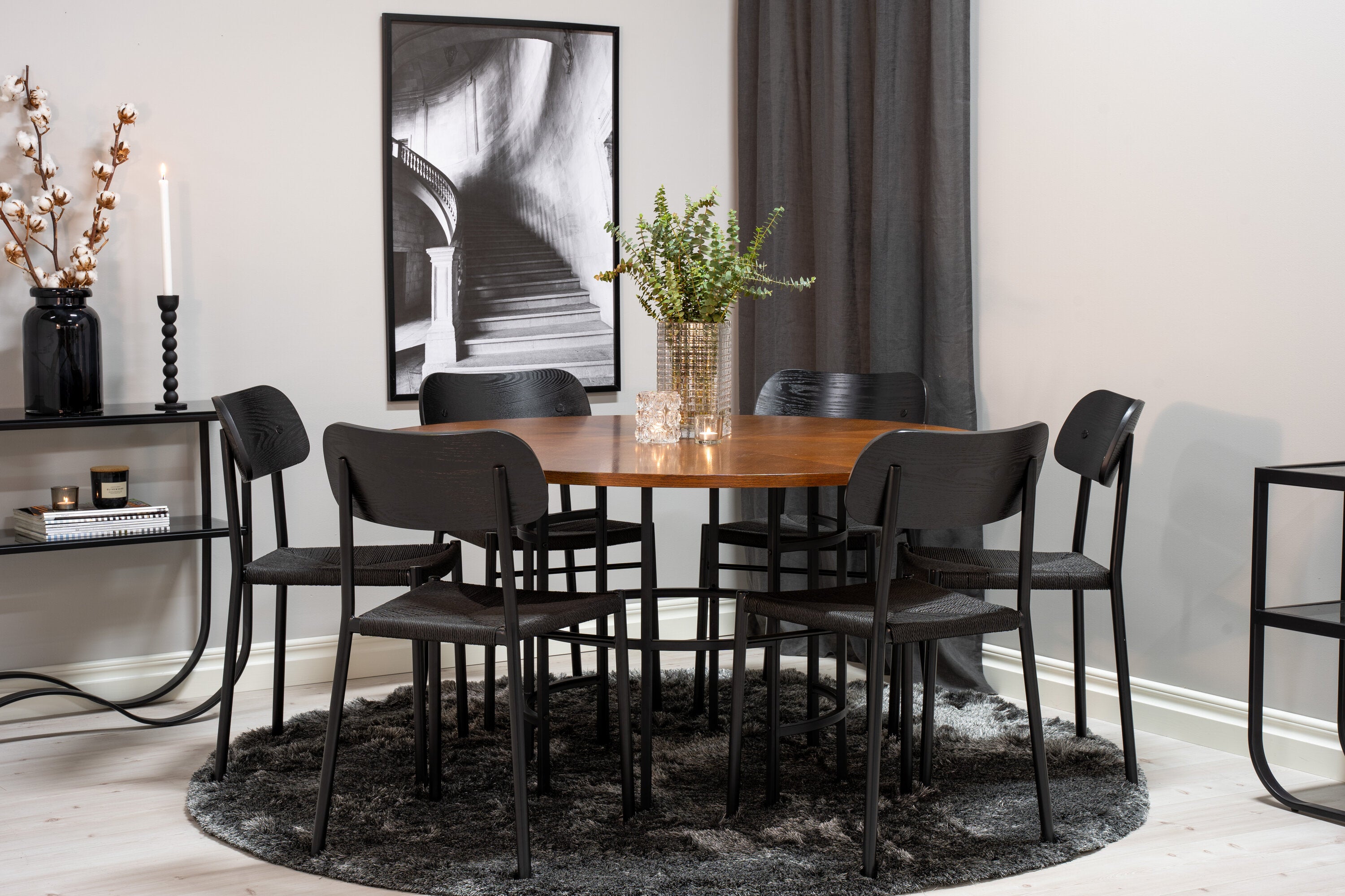 Copenhagen - Jídelní stůl kulatý - Hnědá / Černá + Jídelní židle Polly - Černá / Černá _6