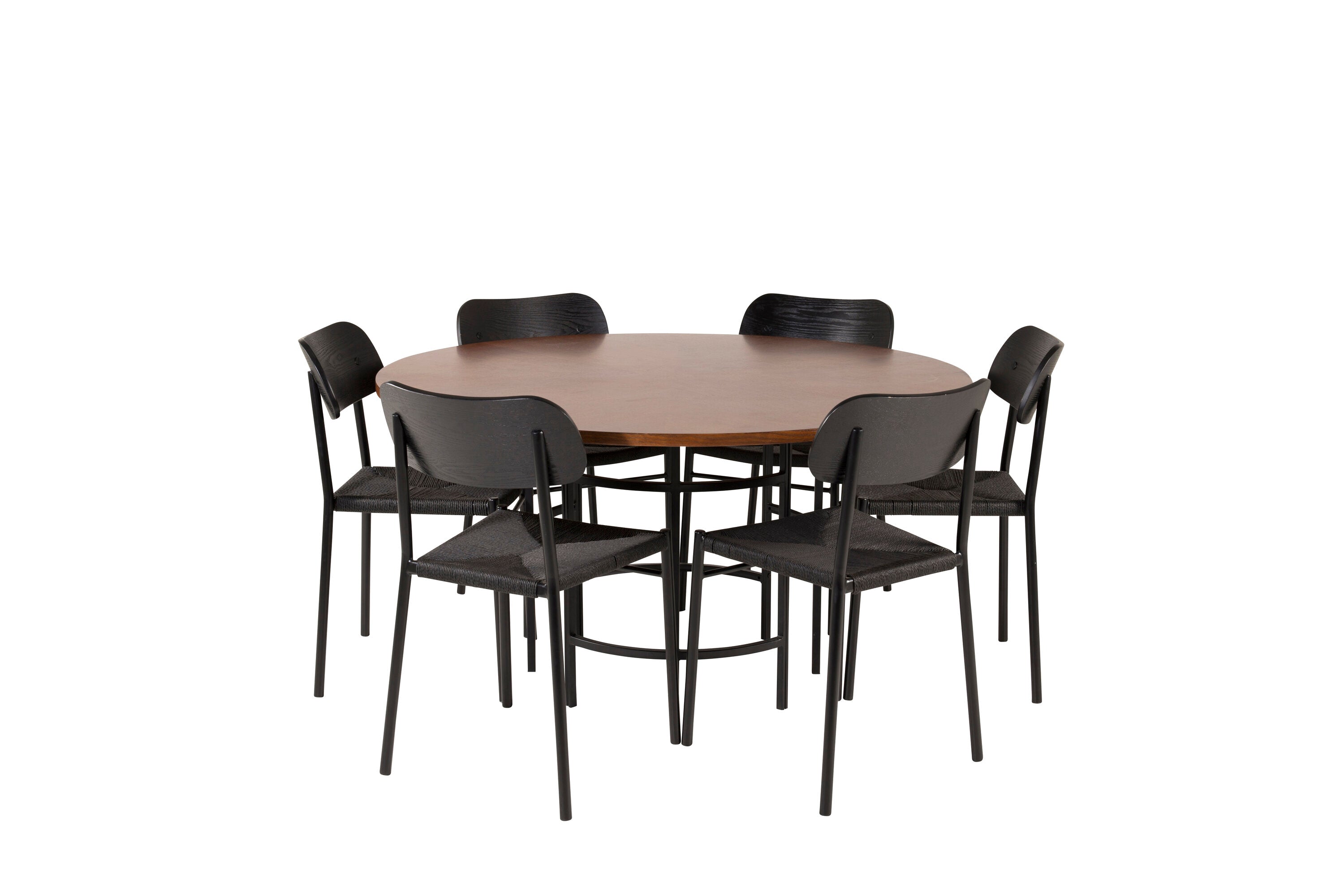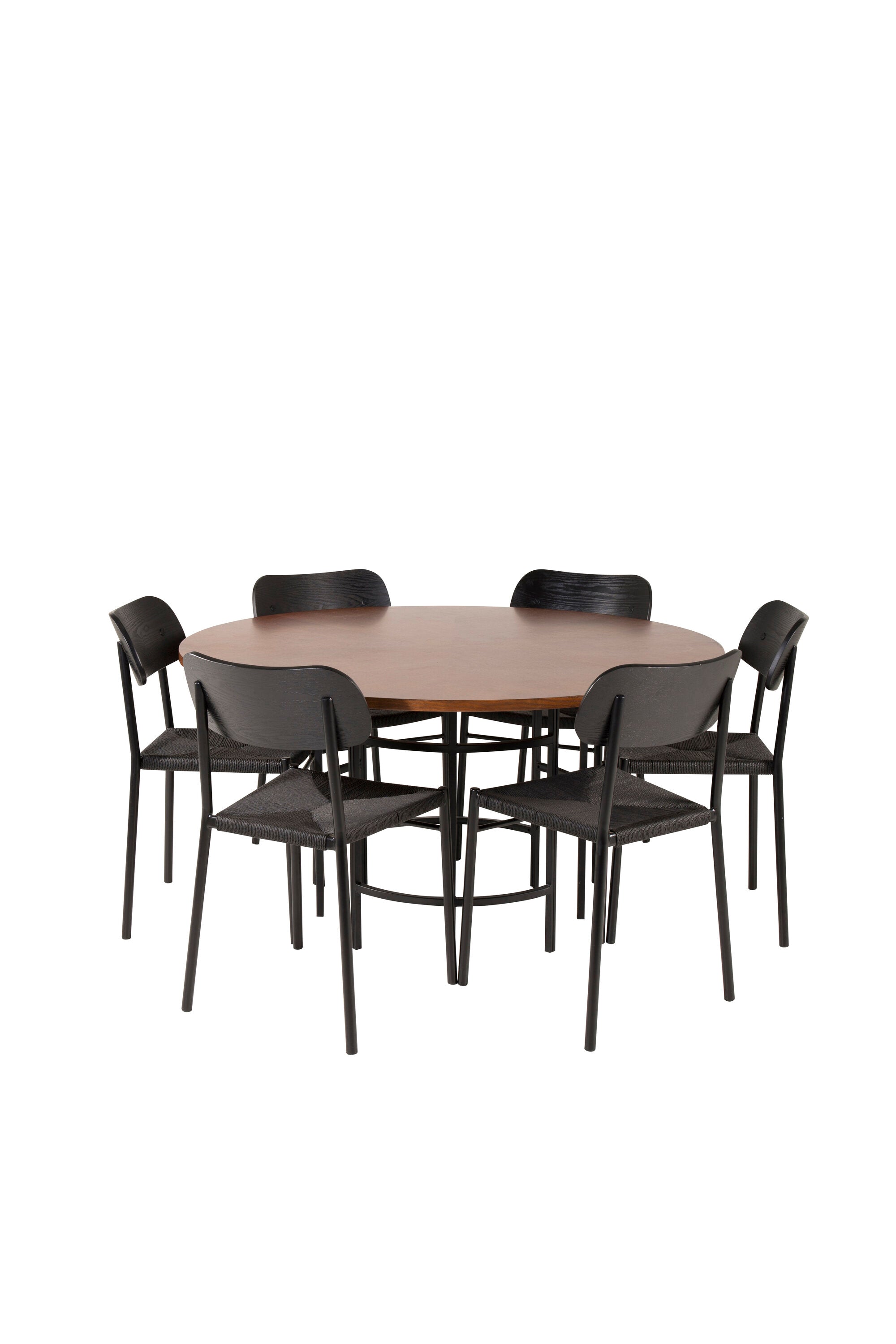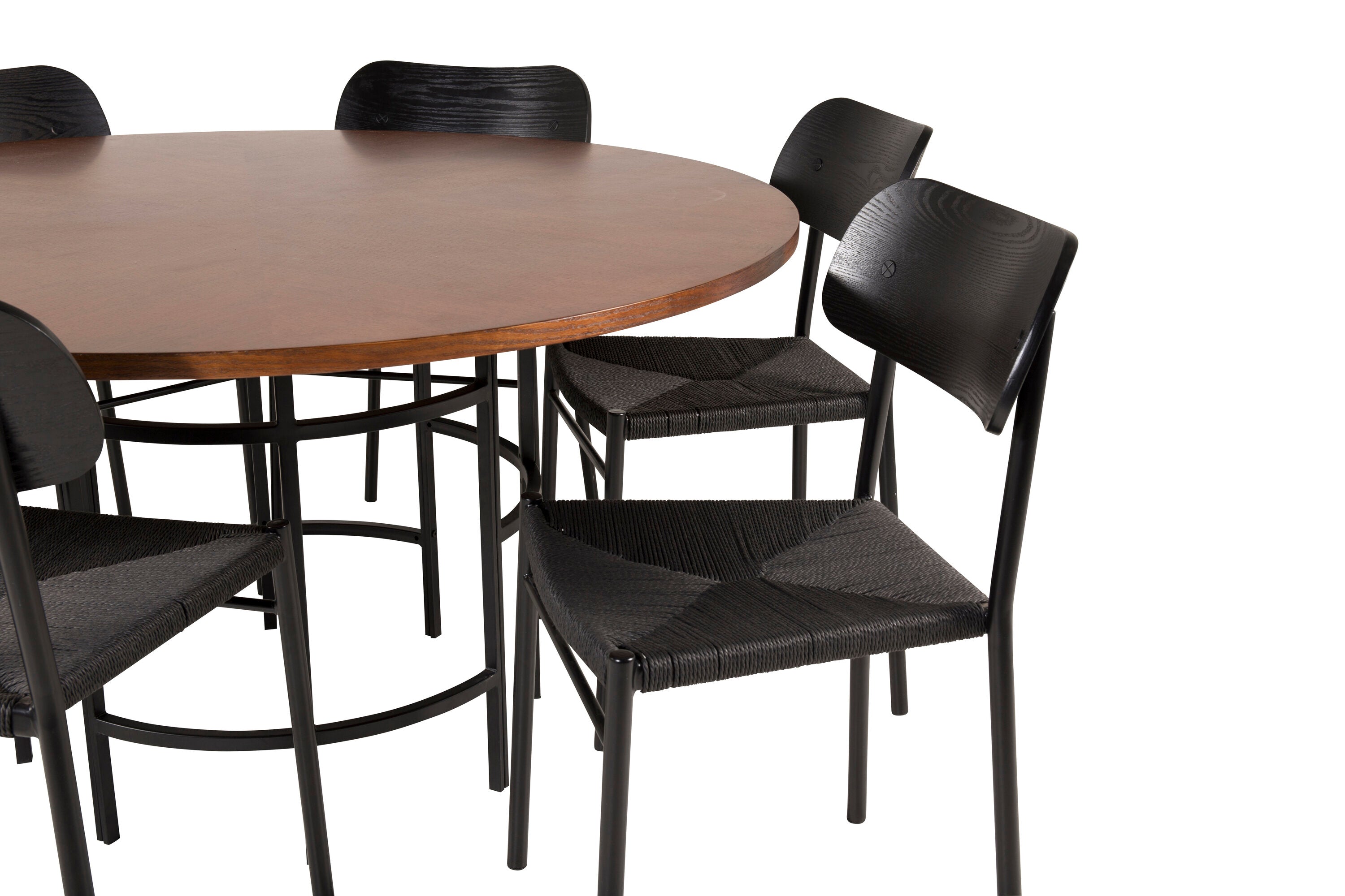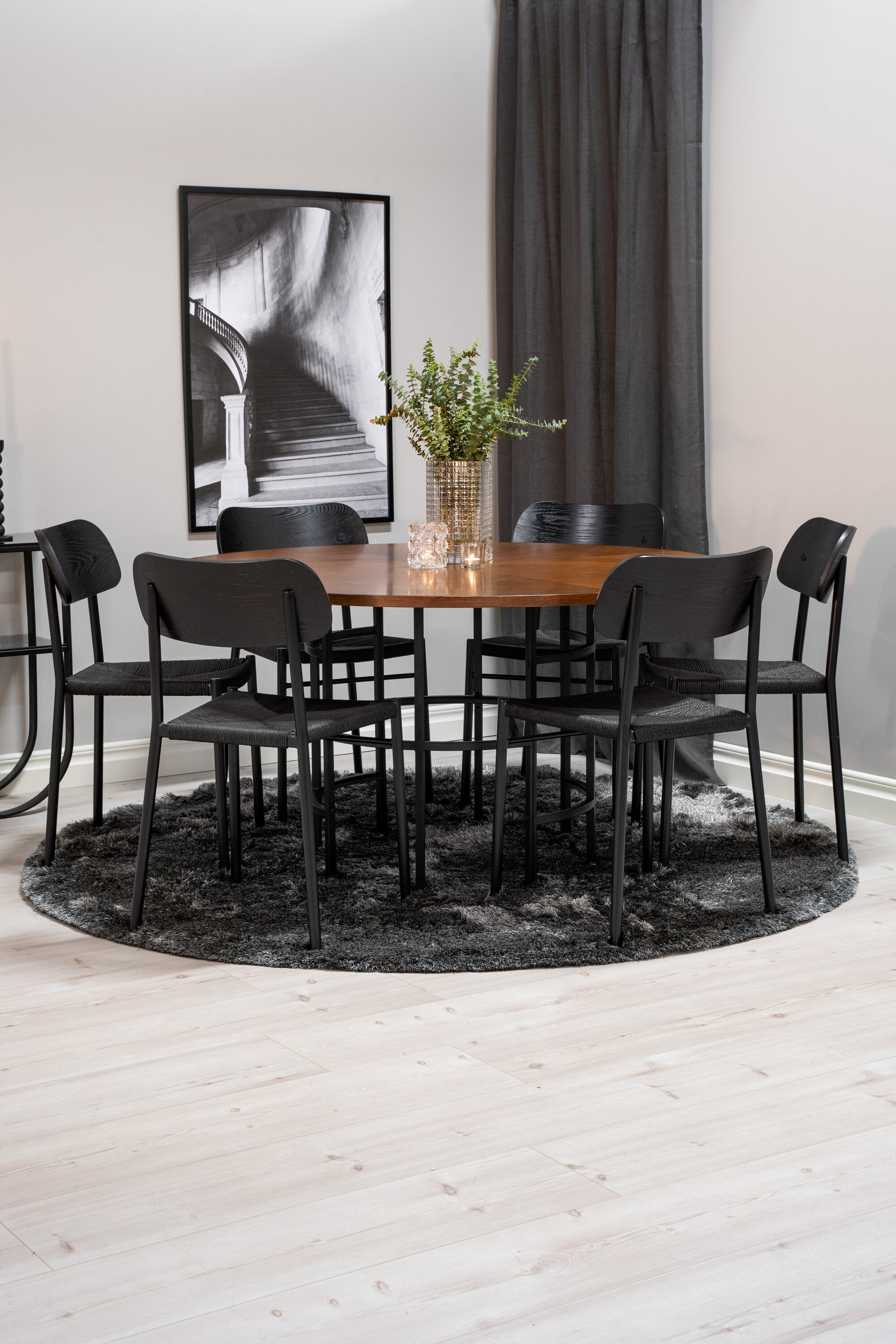 Copenhagen - Jídelní stůl kulatý - Hnědá / Černá + Jídelní židle Polly - Černá / Černá _6