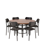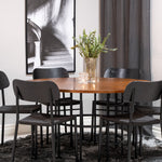 Jídelní stůl Copenhagen s krásnou hnědou deskou stolu a ozdobným podvozkem v černém kovu spolu s našimi stylovými jídelními židlemi ze série Polly získáte kombinaci - moderní, útulnou a nadčasovou!