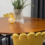 Kulatá skupina jídel s krásnou aurou z kolekce Furniture Fashion. Zde se materiály a barvy mísí do fantastické kombinace. Stůl Copenhagen spolu s jídelními židlemi Limhamn s mírně vyšším opěradlem.