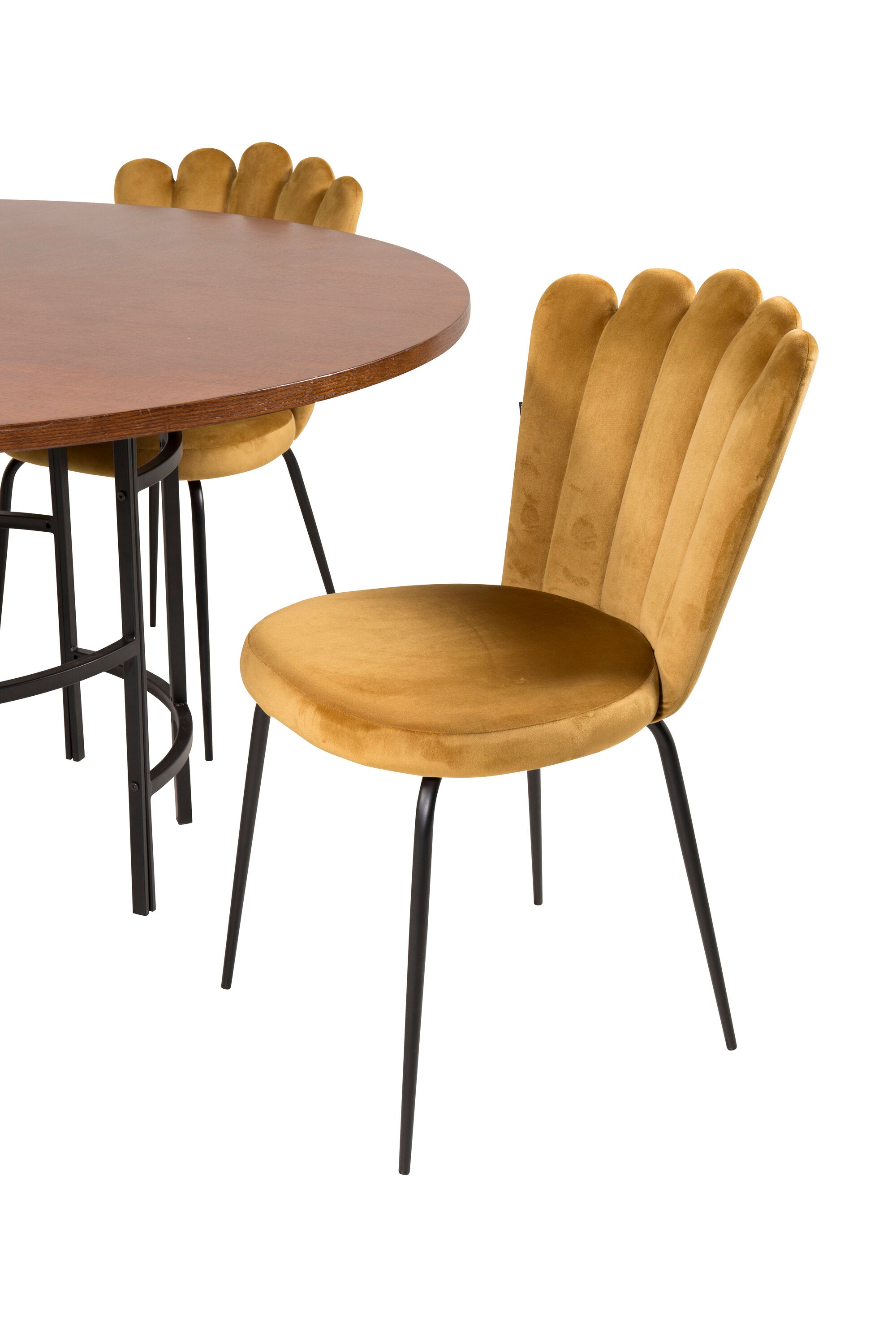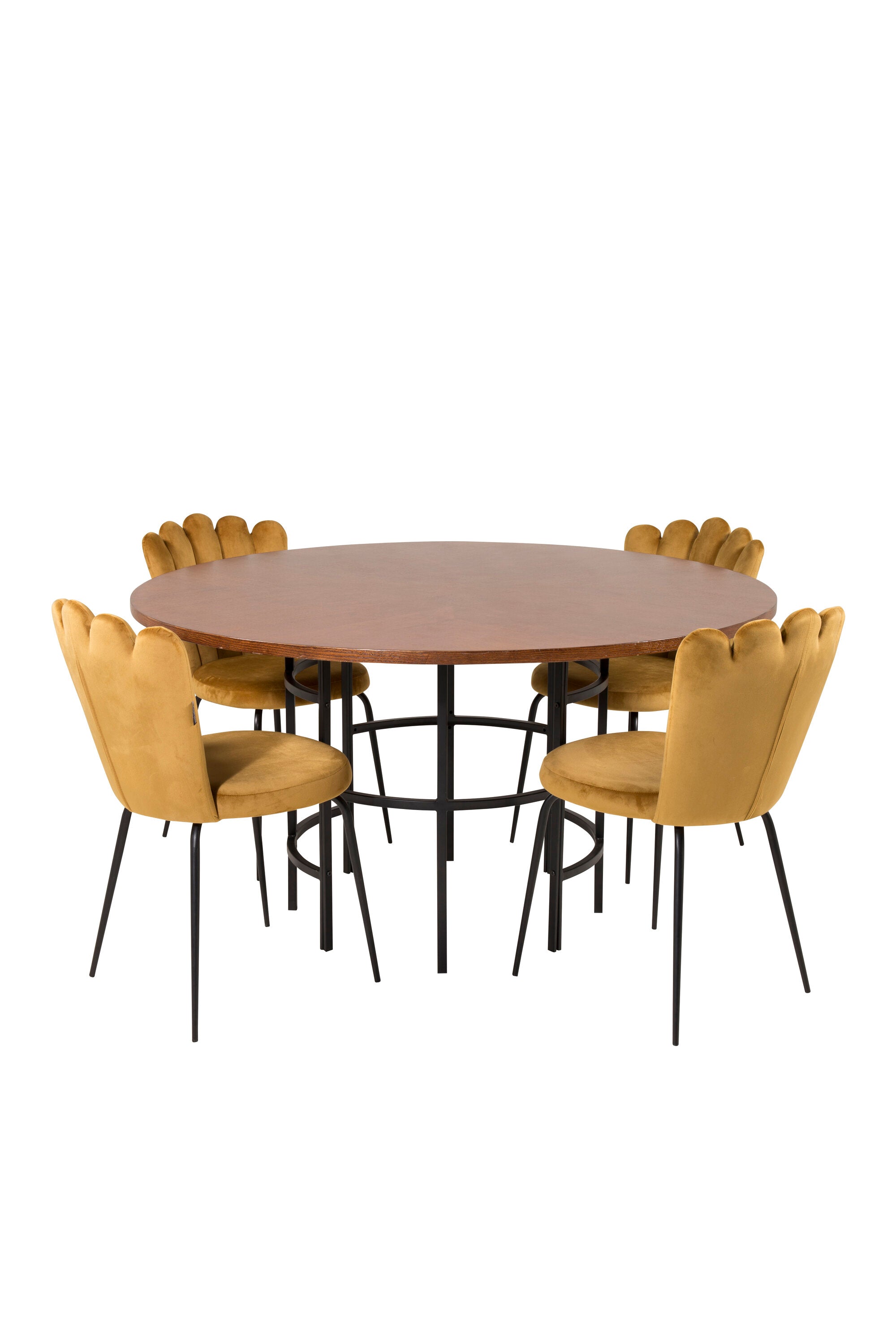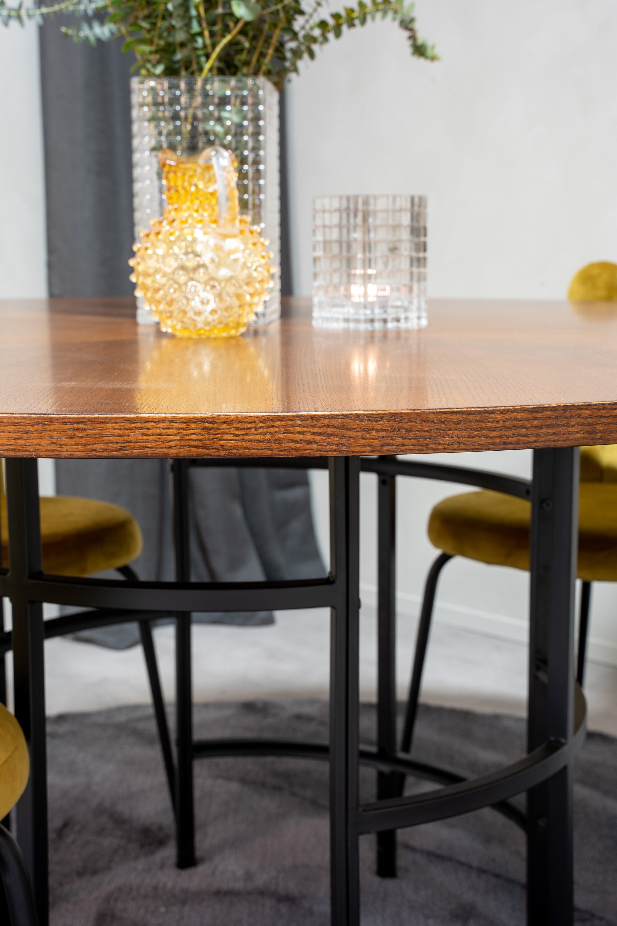 Copenhagen - Jídelní stůl kulatý - Hnědá / Černá+Limhamn Light - Židle - Zlatá Vel