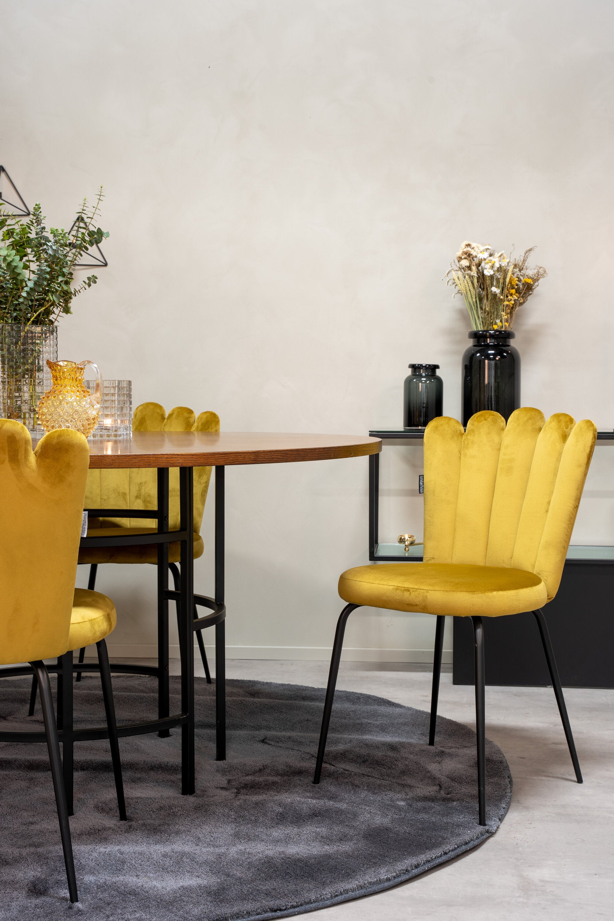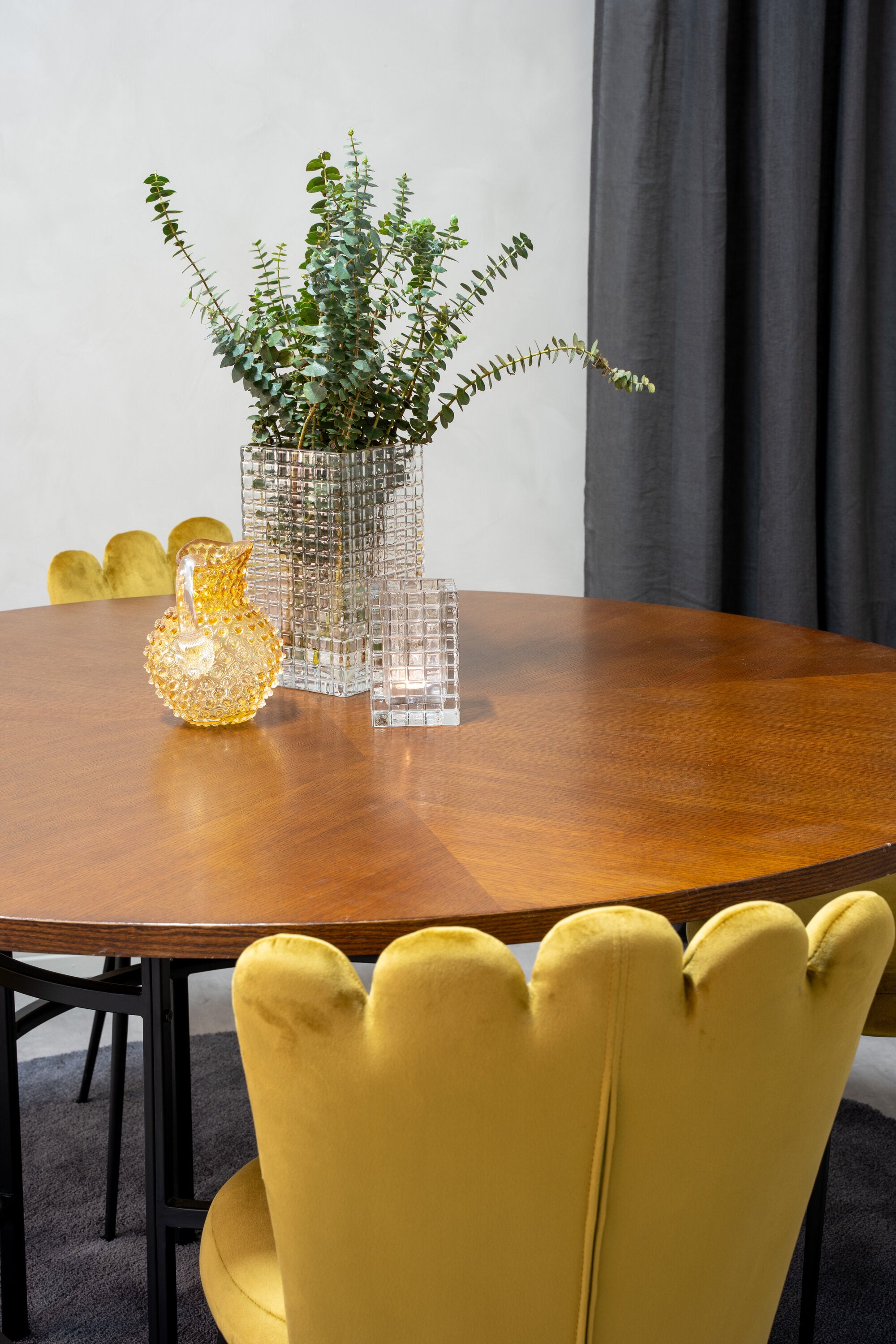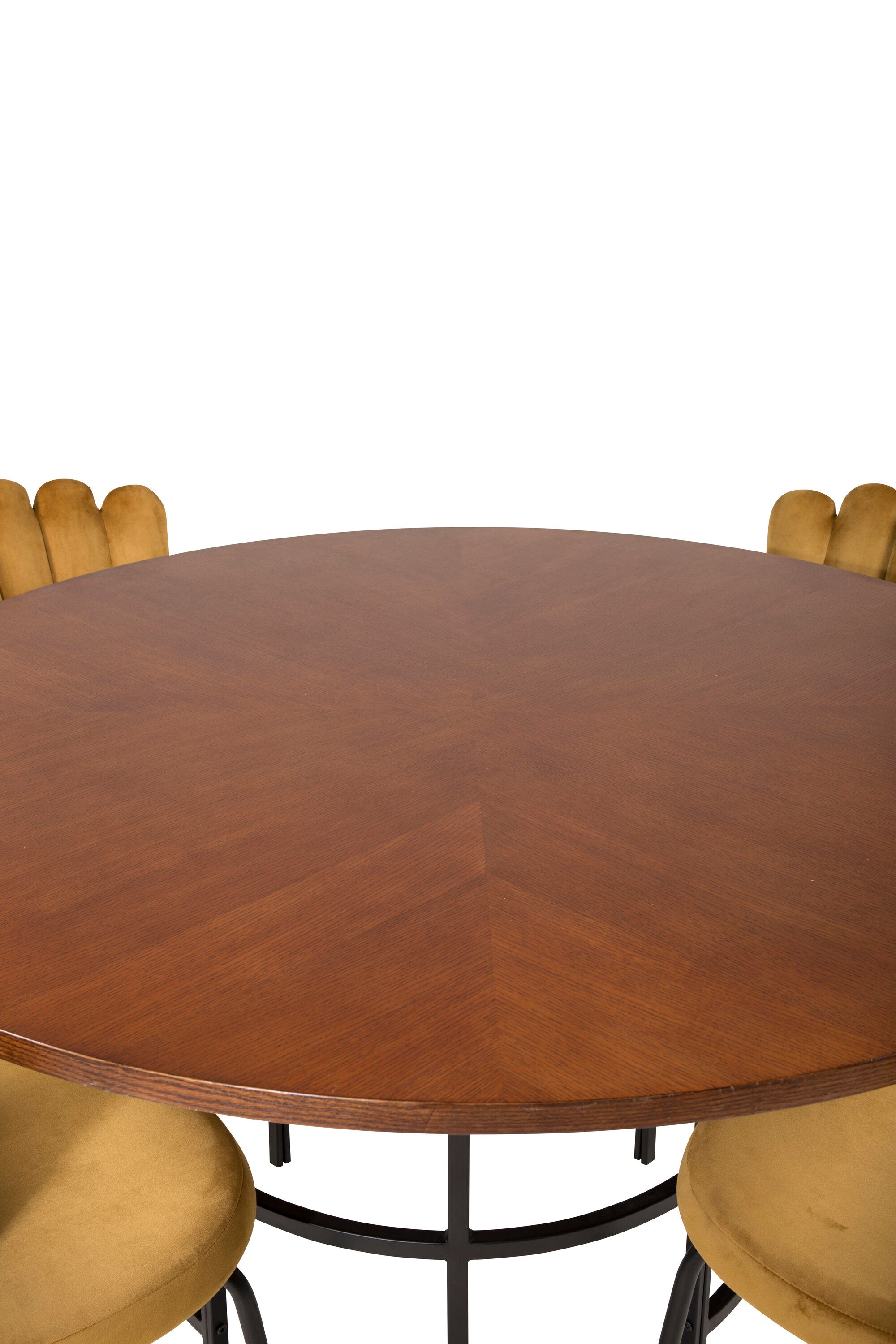 Copenhagen - Jídelní stůl kulatý - Hnědá / Černá+Limhamn Light - Židle - Zlatá Vel