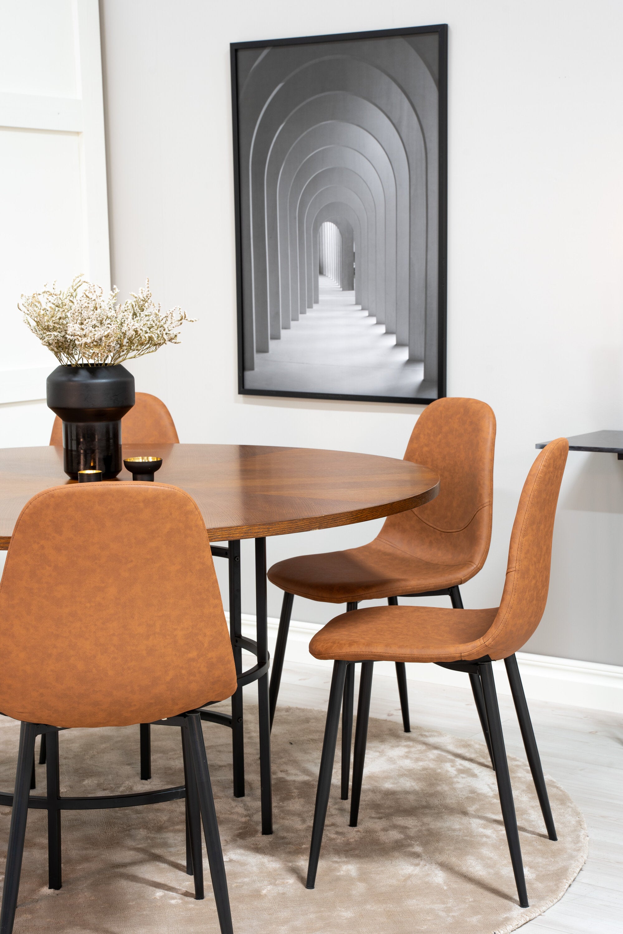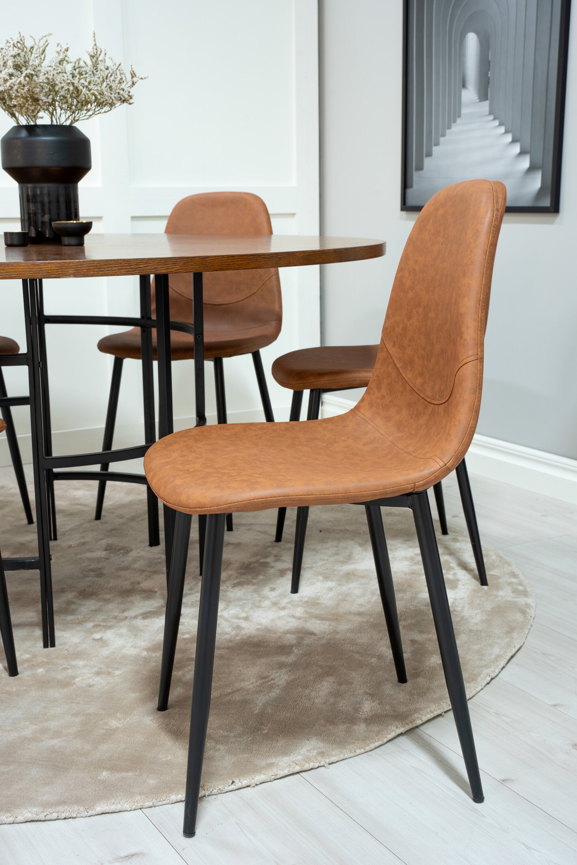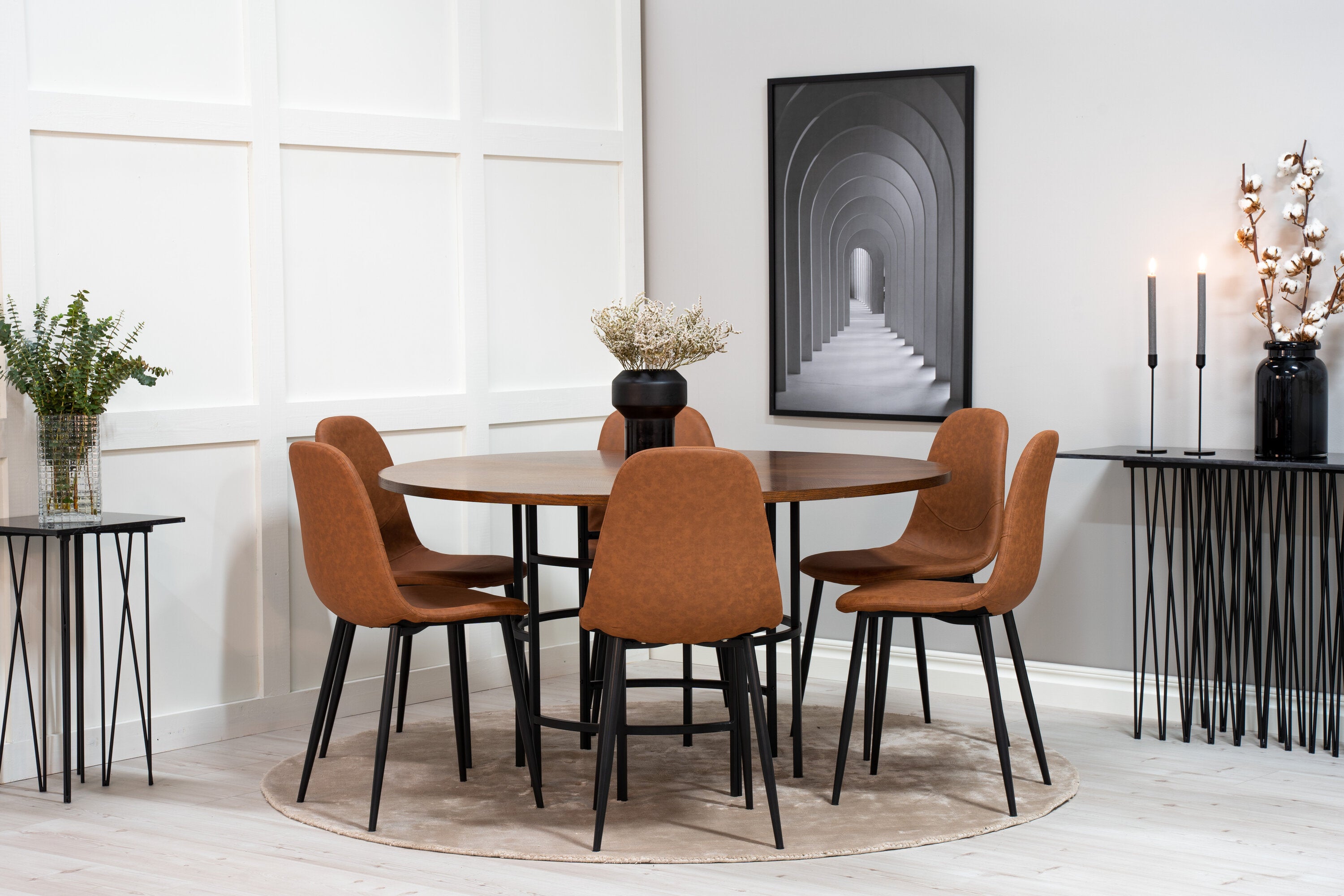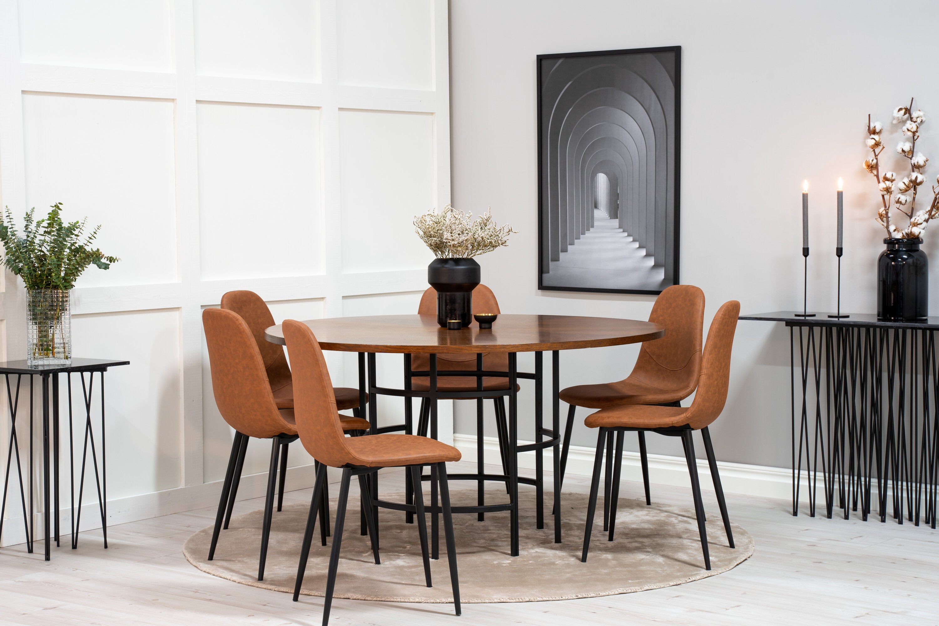 Copenhagen - Jídelní stůl kulatý - Hnědá / Černá+Polar Matstol - Svart / Brun PU _6