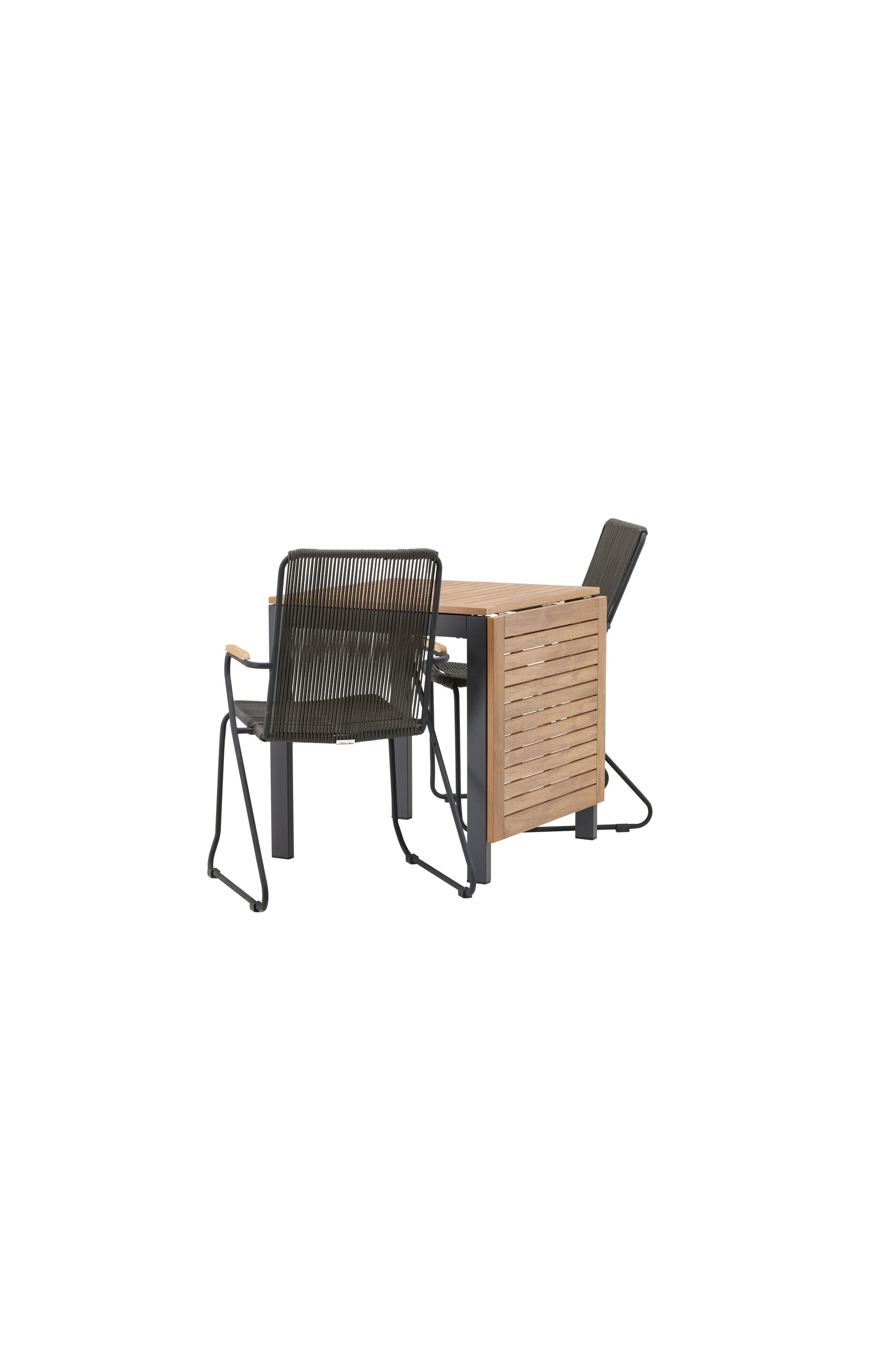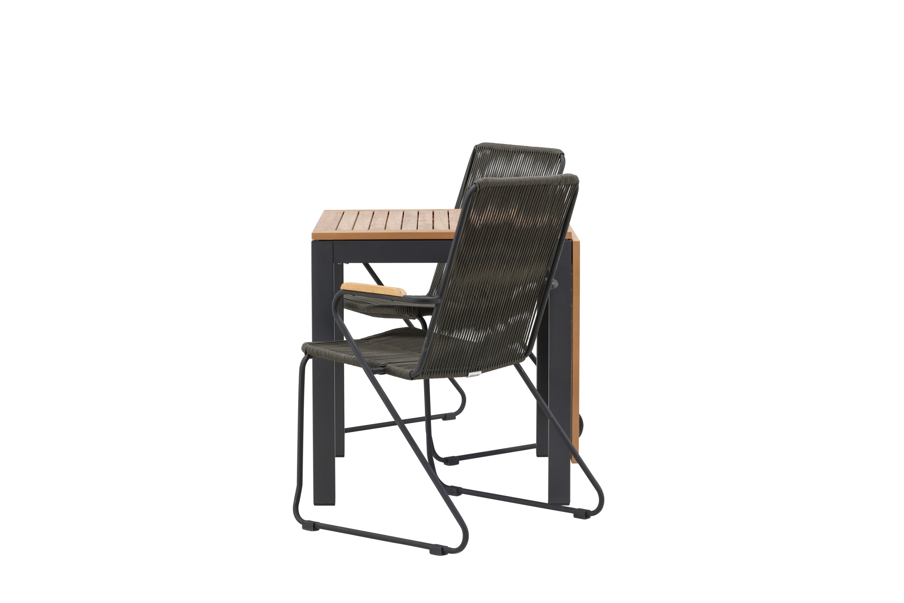 Diego Cafetable Hliník – Černá / Hnědá Aintwood – Obdélníkový 70*70/130* + Bois Jídelní židle Ocel – Černá / Tmavě šedá Lano _2