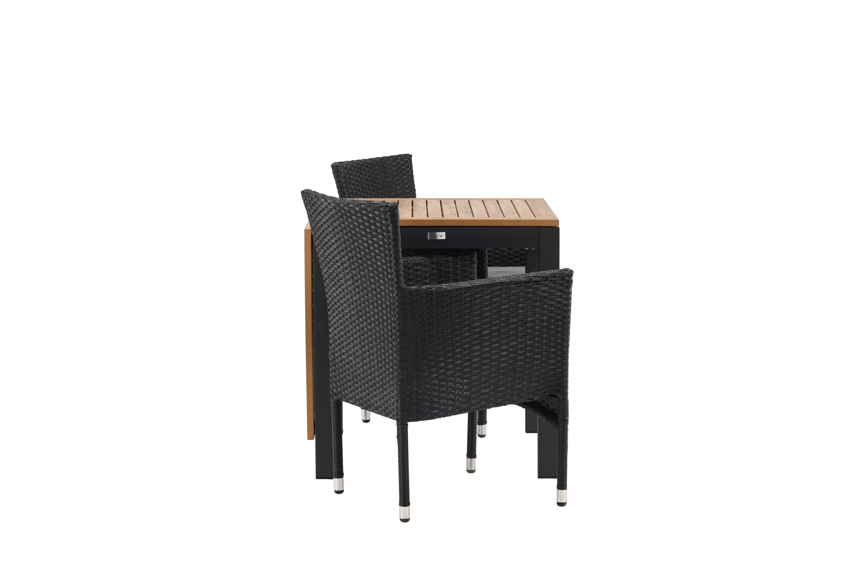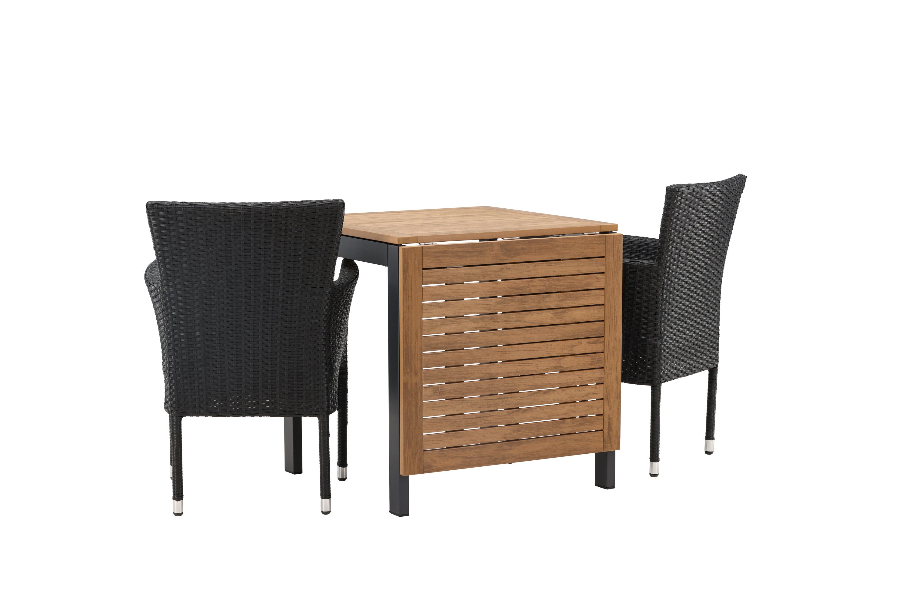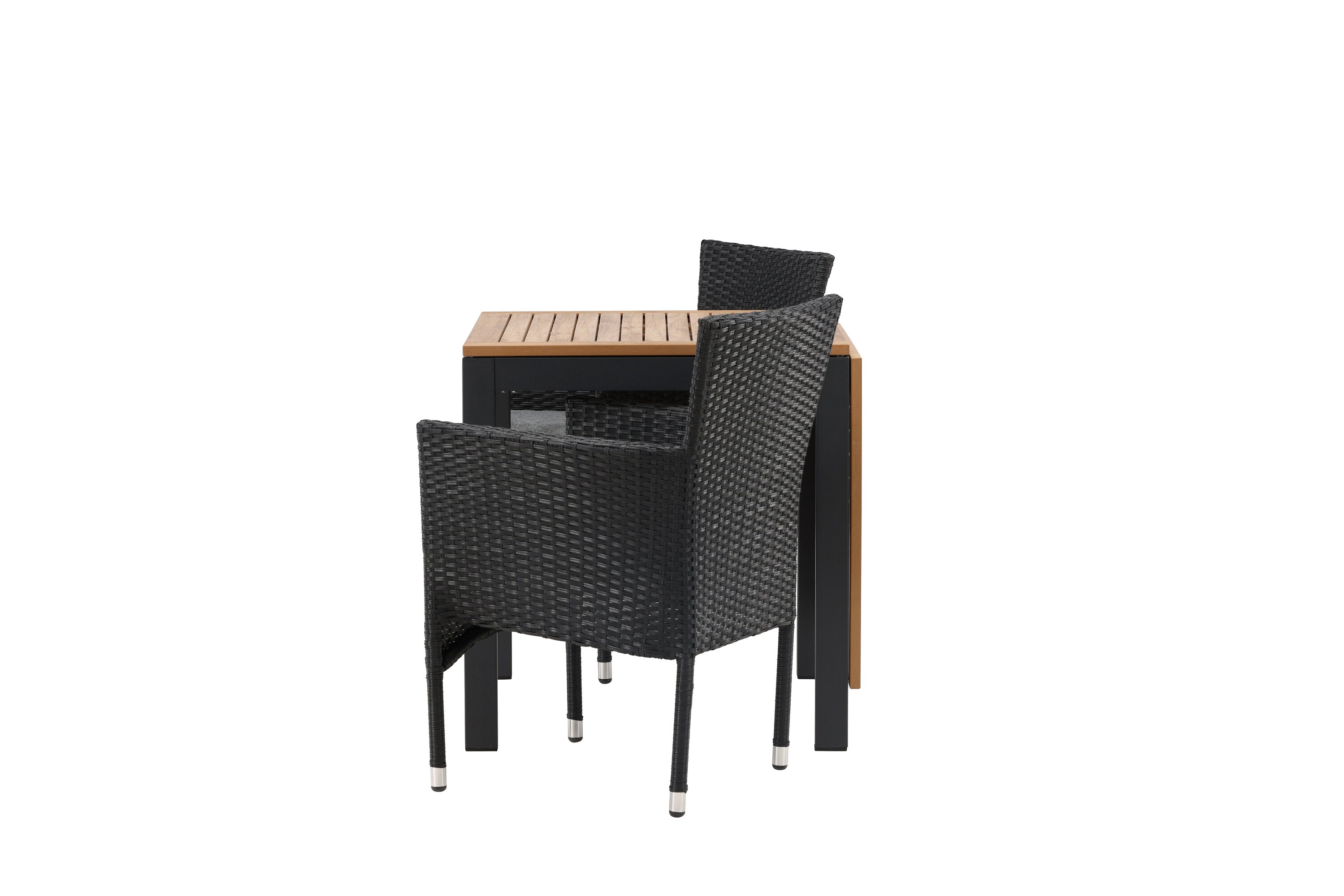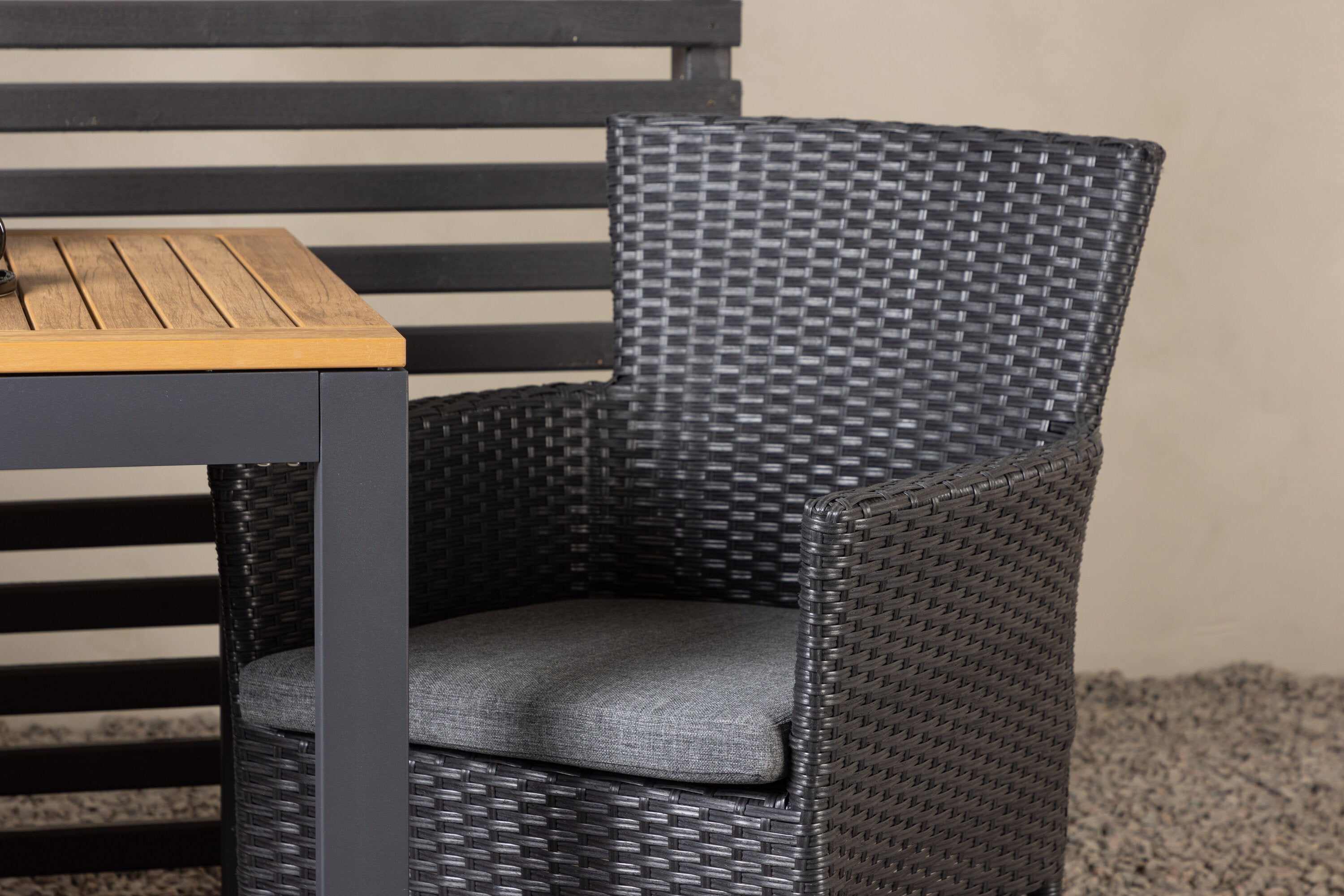 Diego Cafetable hliník – černá / hnědá Aintwood – obdélníkový 70*70/130* + hliníková jídelní židle Malina – černá / proutí _2