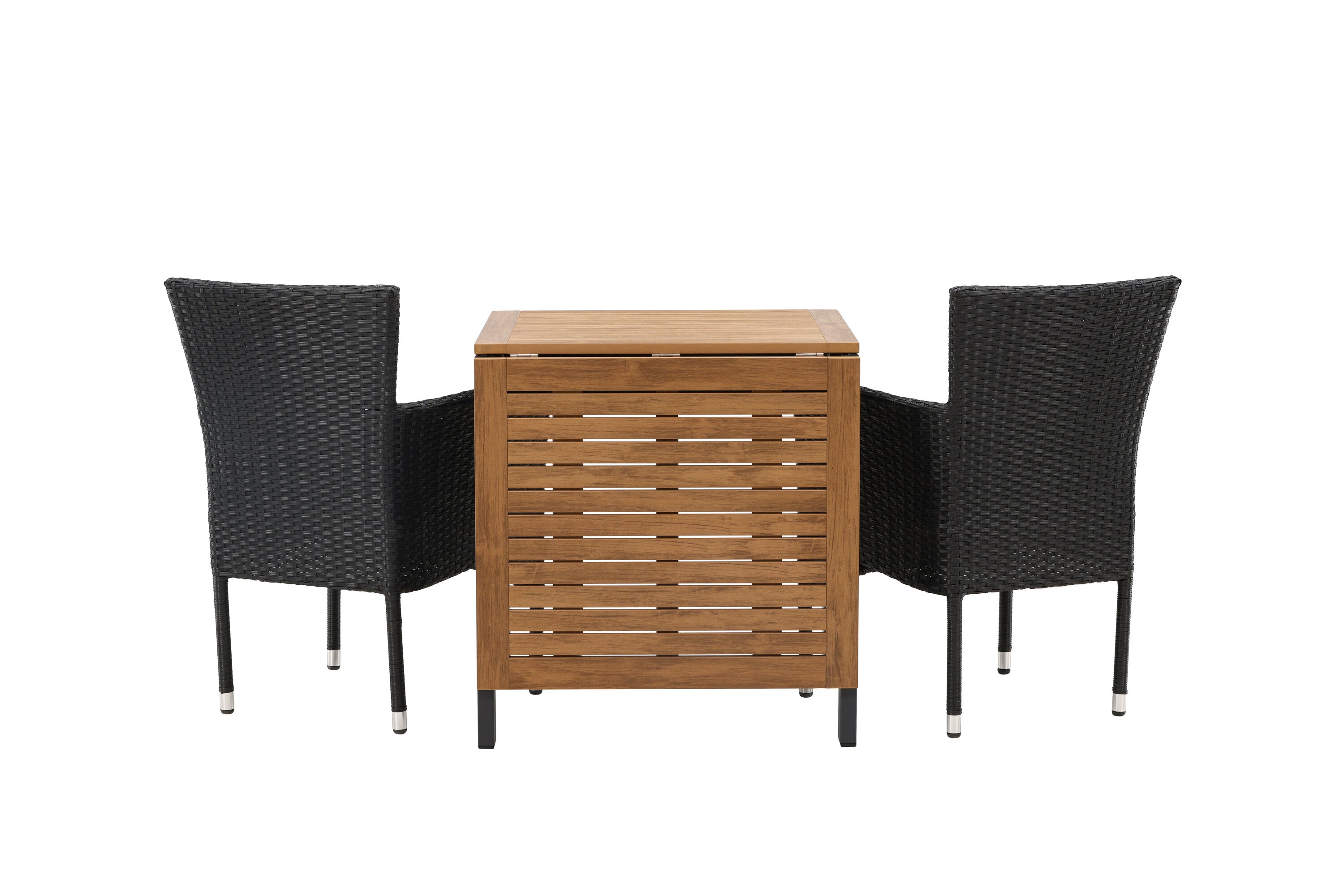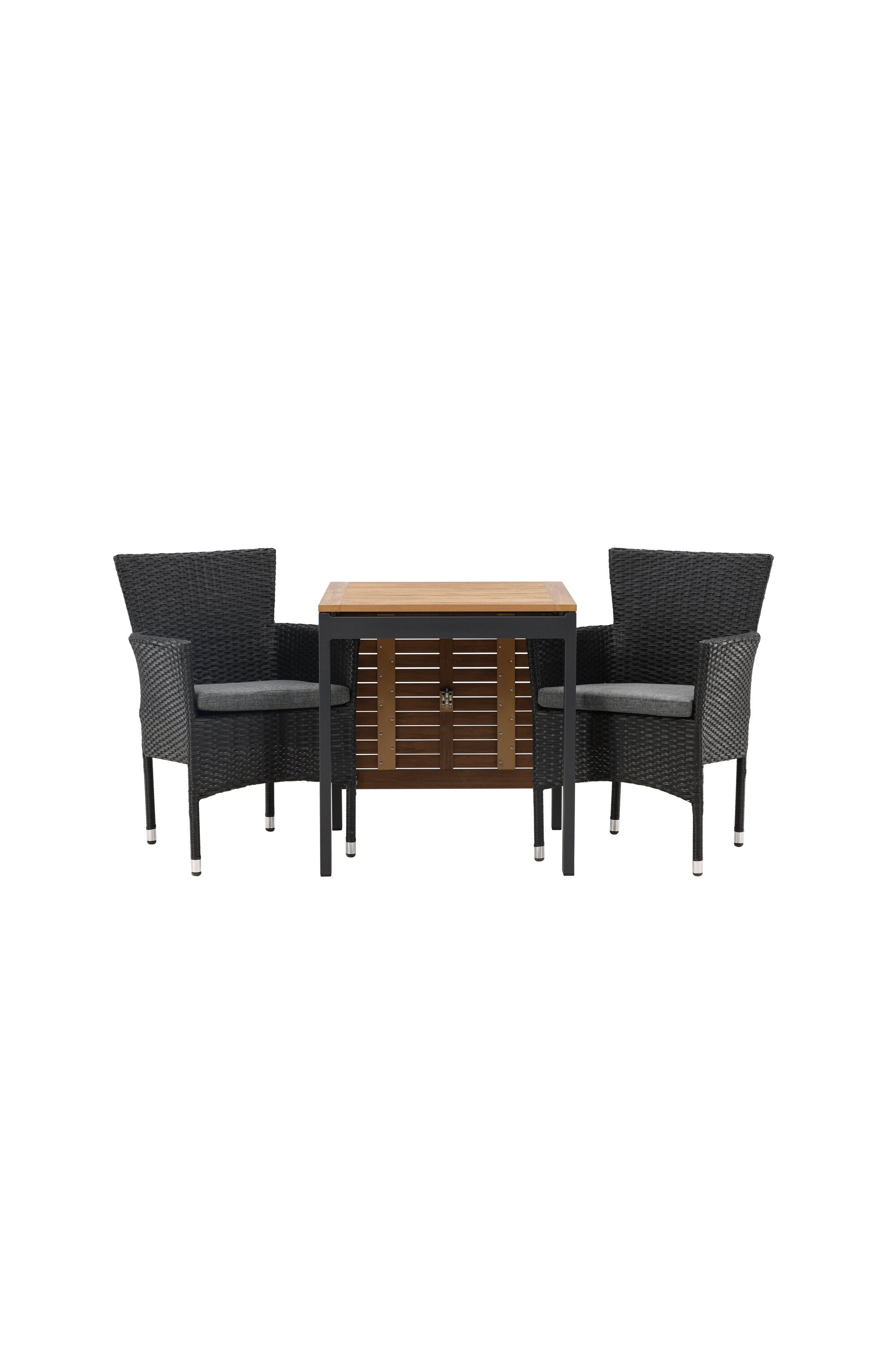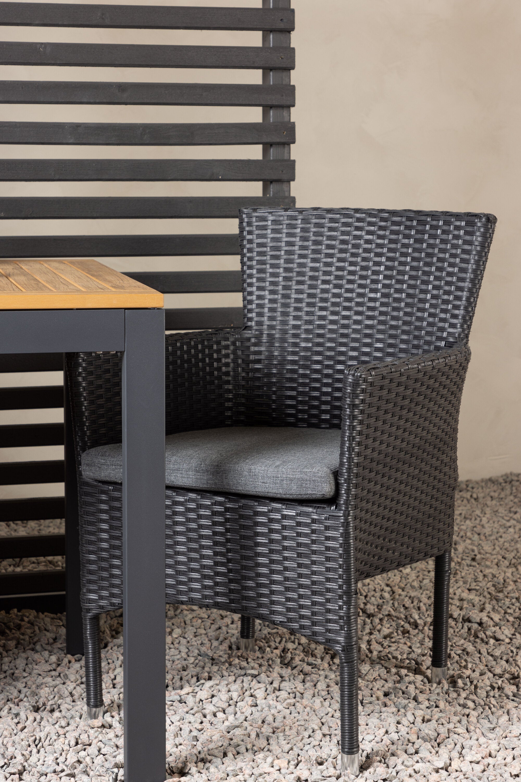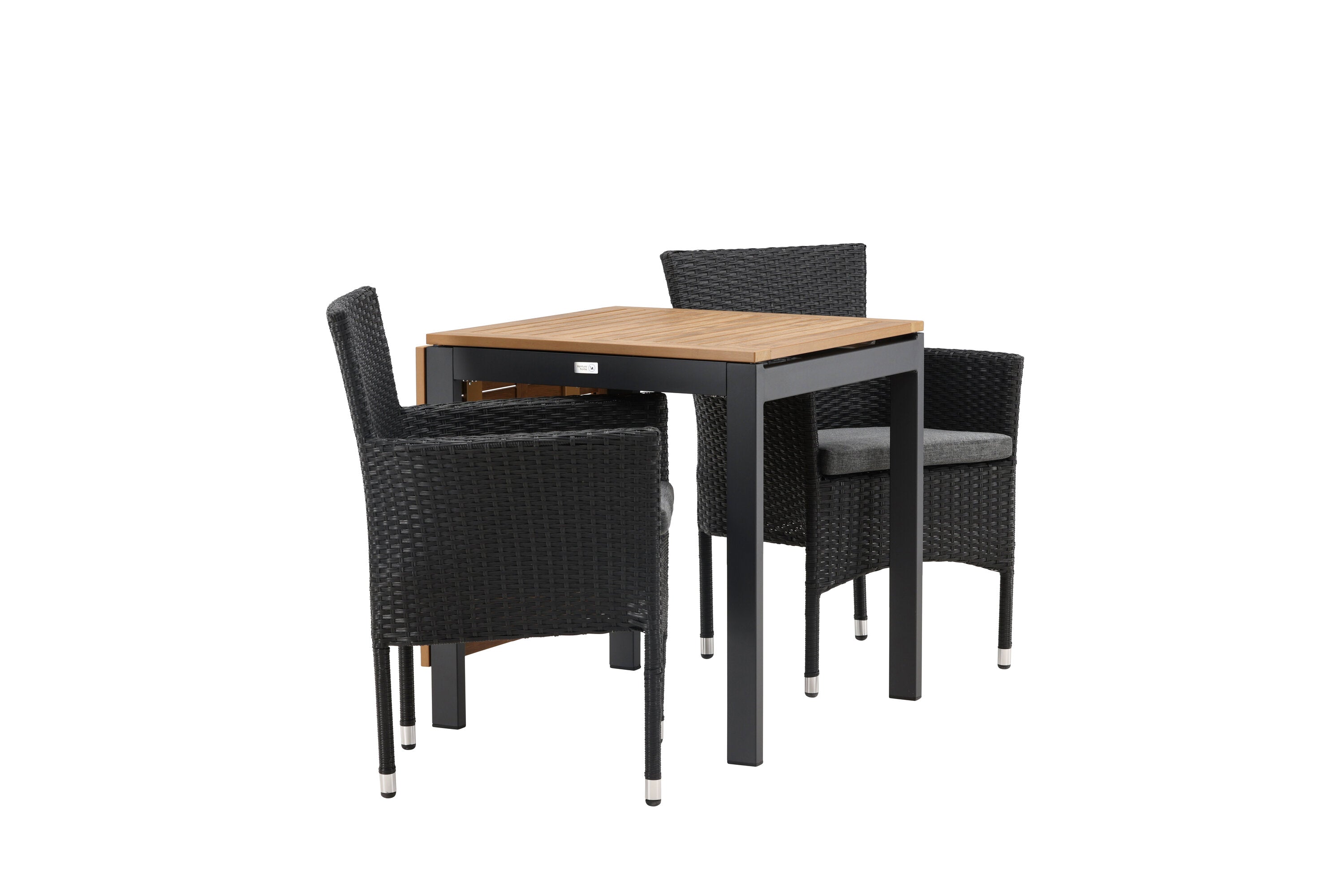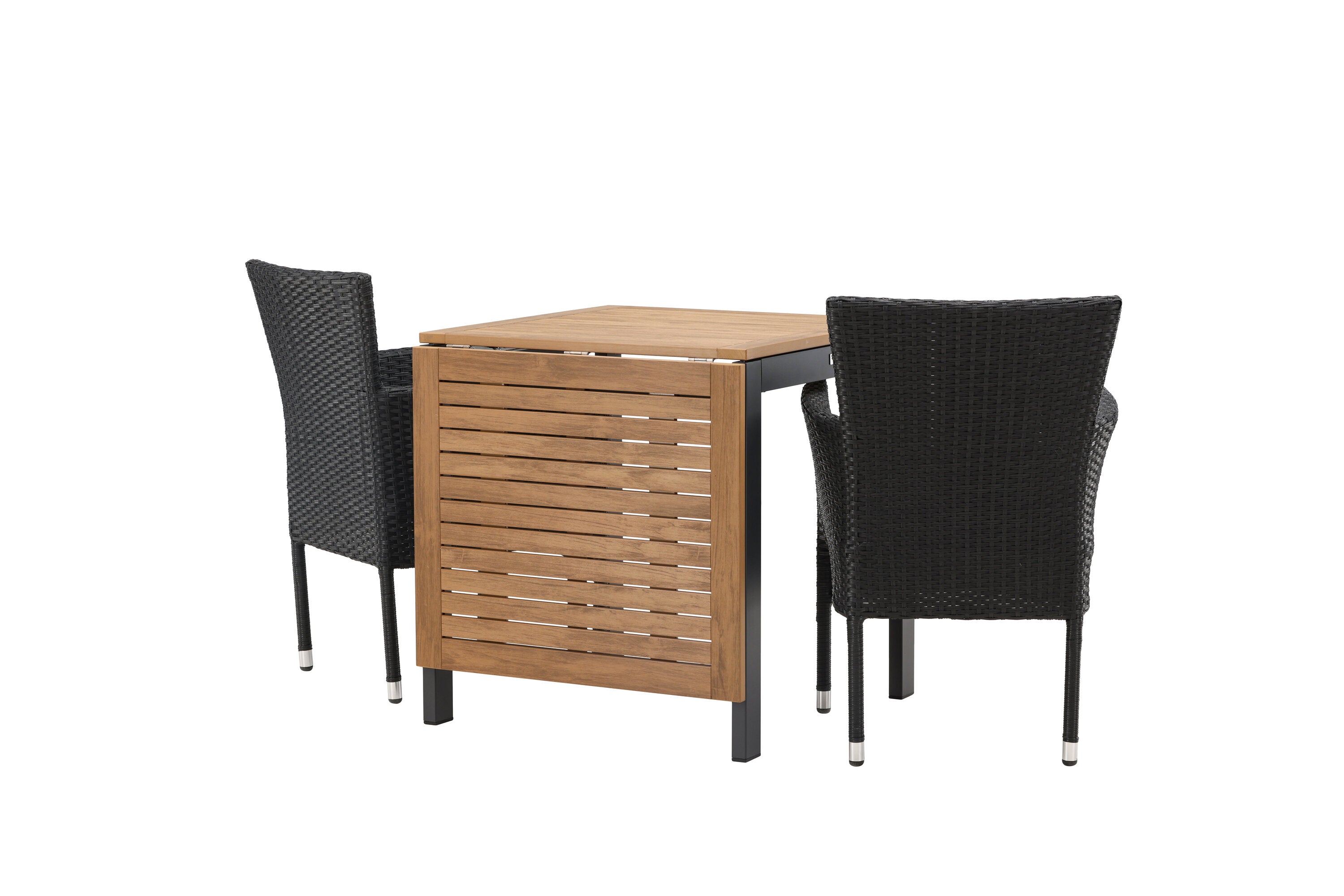 Diego Cafetable hliník – černá / hnědá Aintwood – obdélníkový 70*70/130* + hliníková jídelní židle Malina – černá / proutí _2