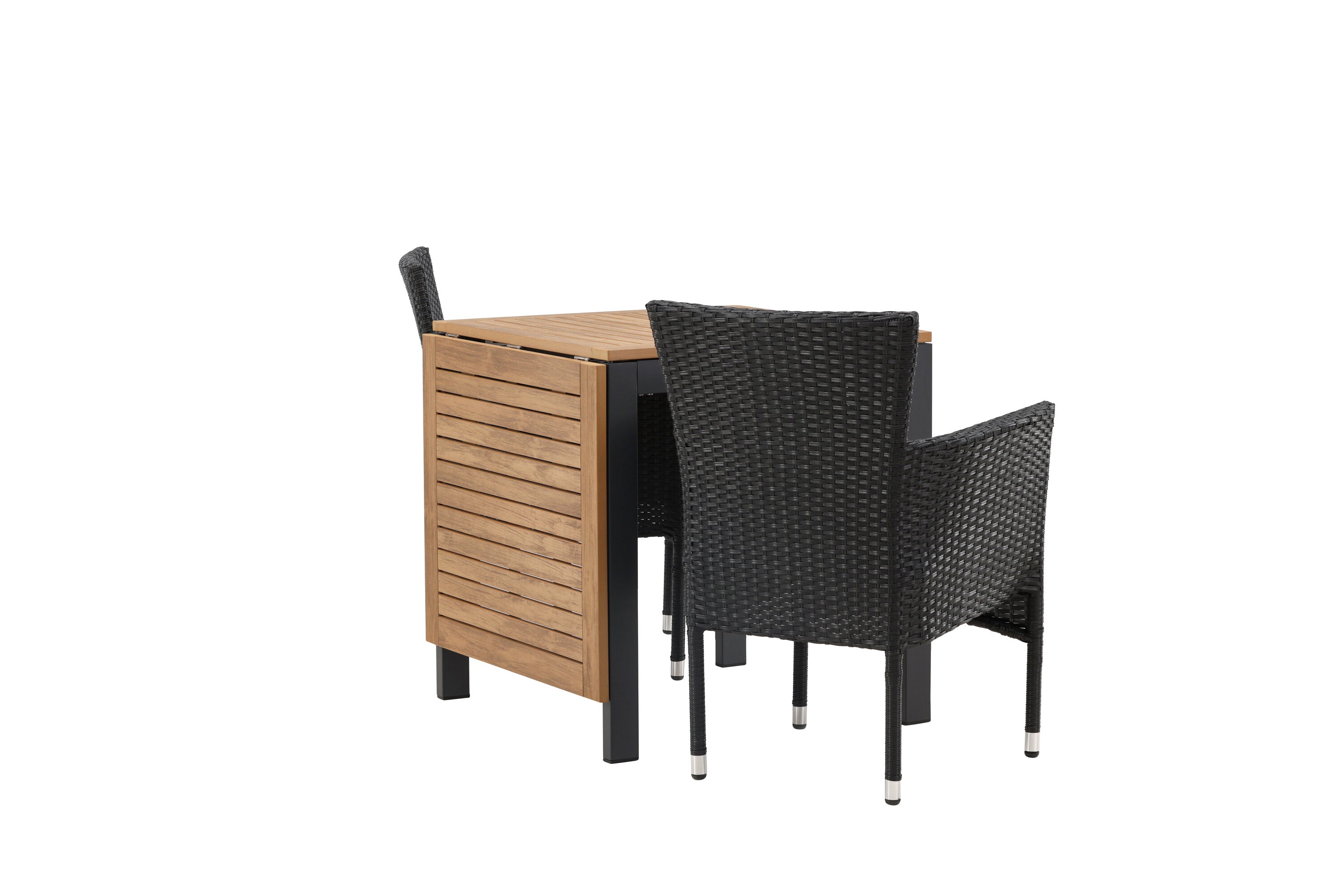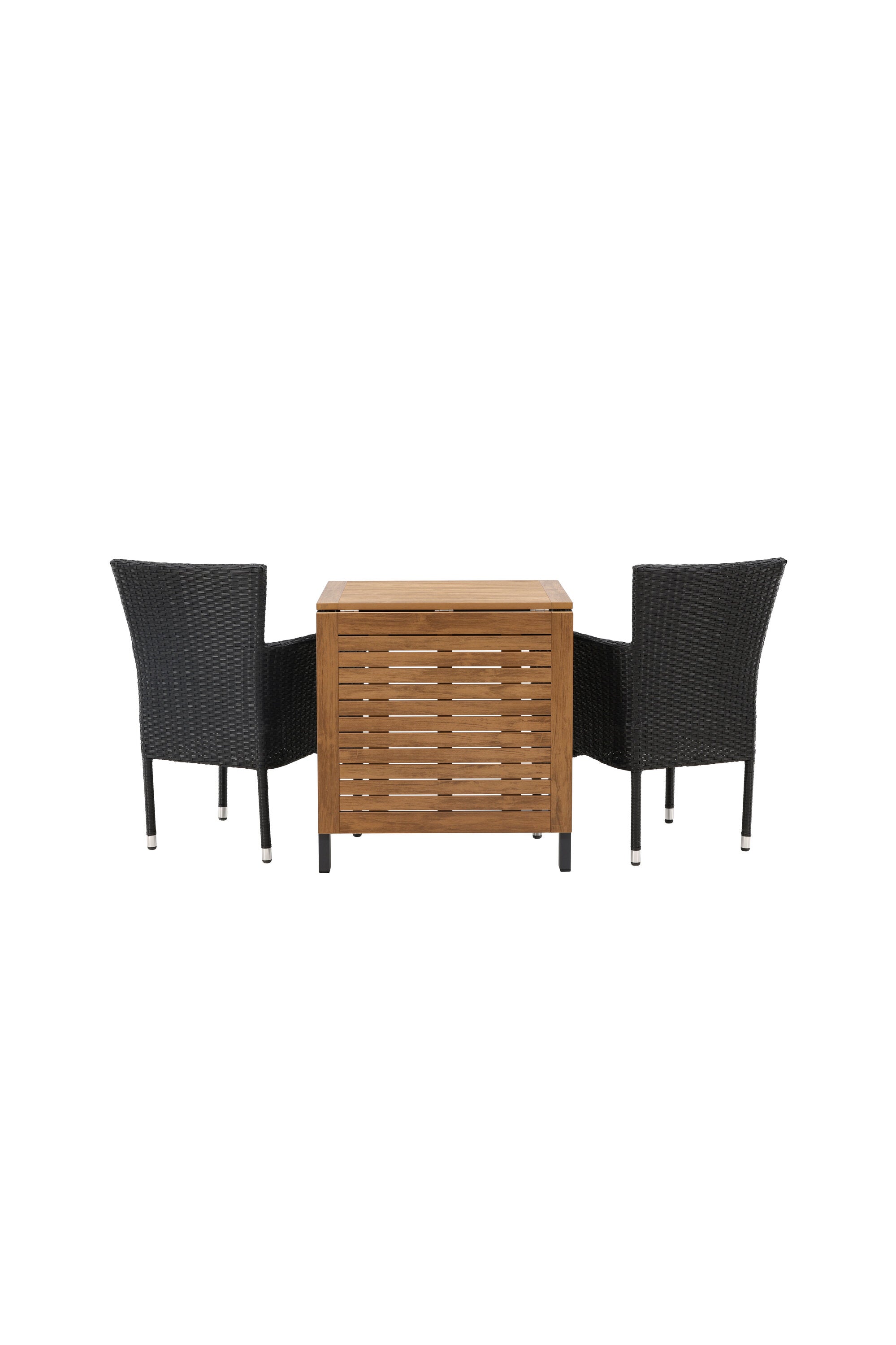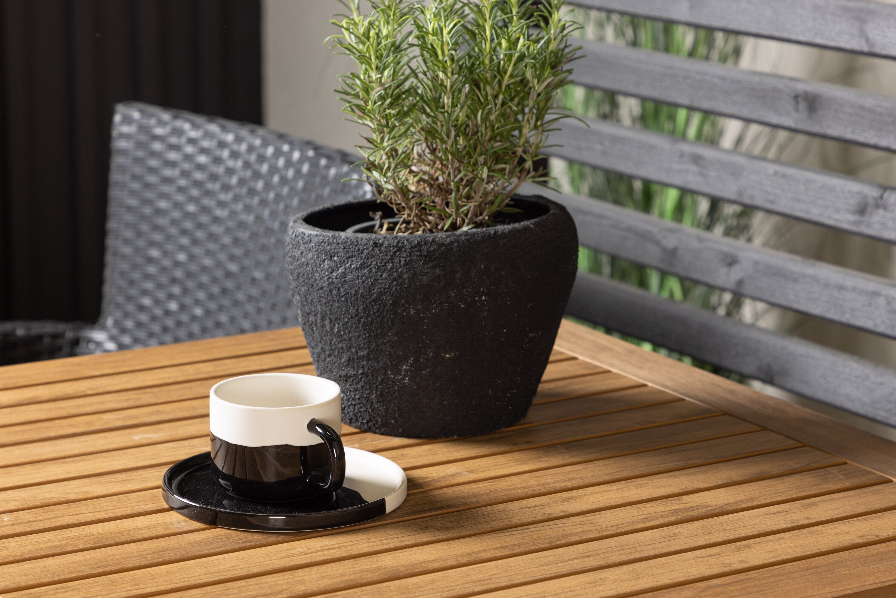 Pohodlně se usaďte u odpolední kávy! Kavárenský stůl Diego je stejně chytrý jako stylový s deskou v hnědém aintwoodu a nohami v černém hliníku. Stůl má také jednoduchou konstrukci, která umožňuje snadné skládání nástavných desek po stranách. Zde v kombinaci s našimi fantastickými jídelními židlemi ze série Malina. Židle má hliníkový rám a je čalouněná pleteným, černým umělým ratanem. Pohodlné a klasické styly se nikdy nezkazí! Rozměry stolu: 130/70x70cm.