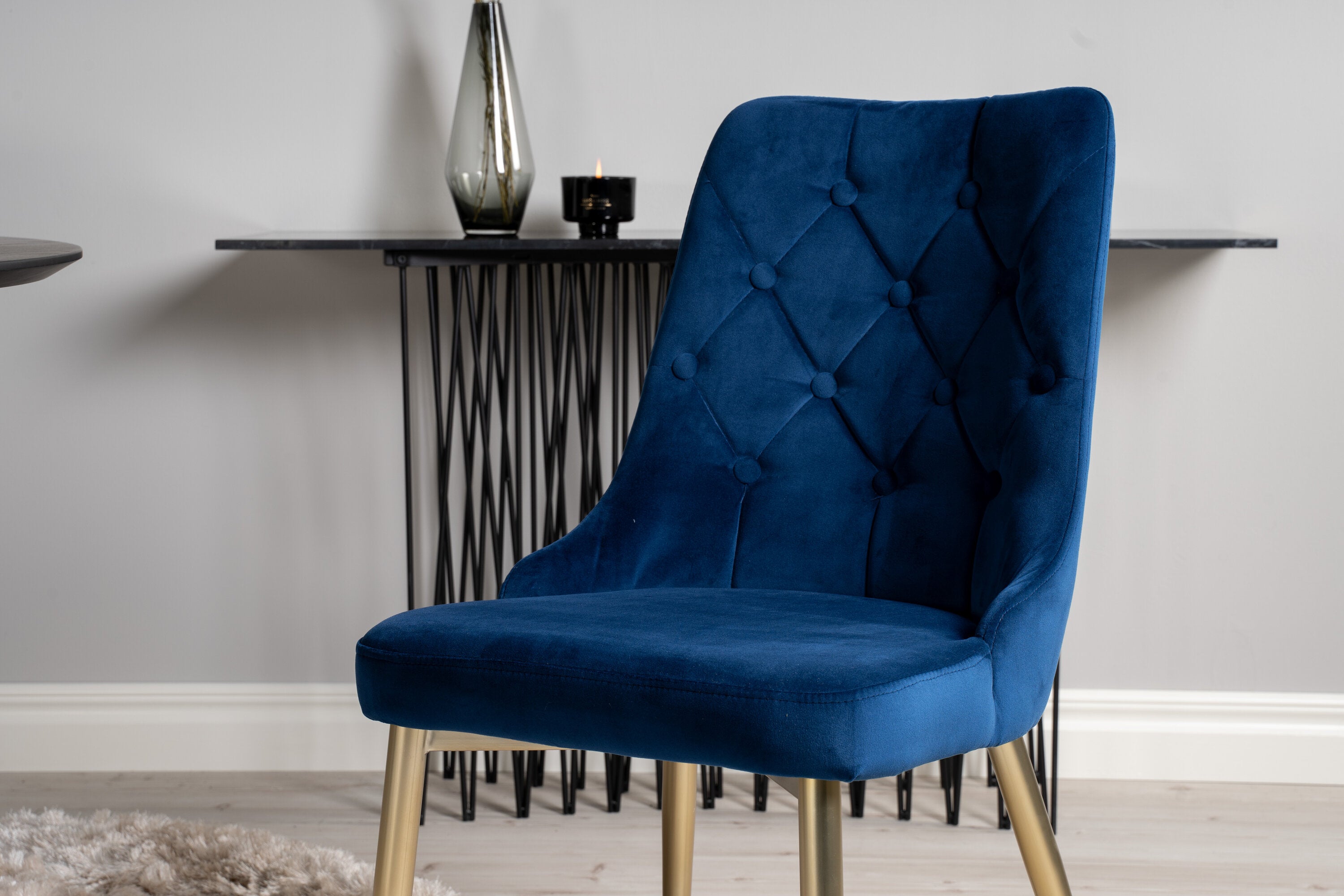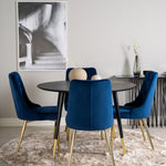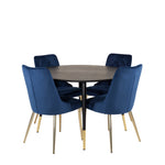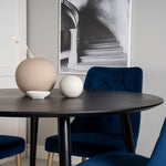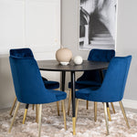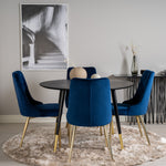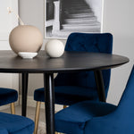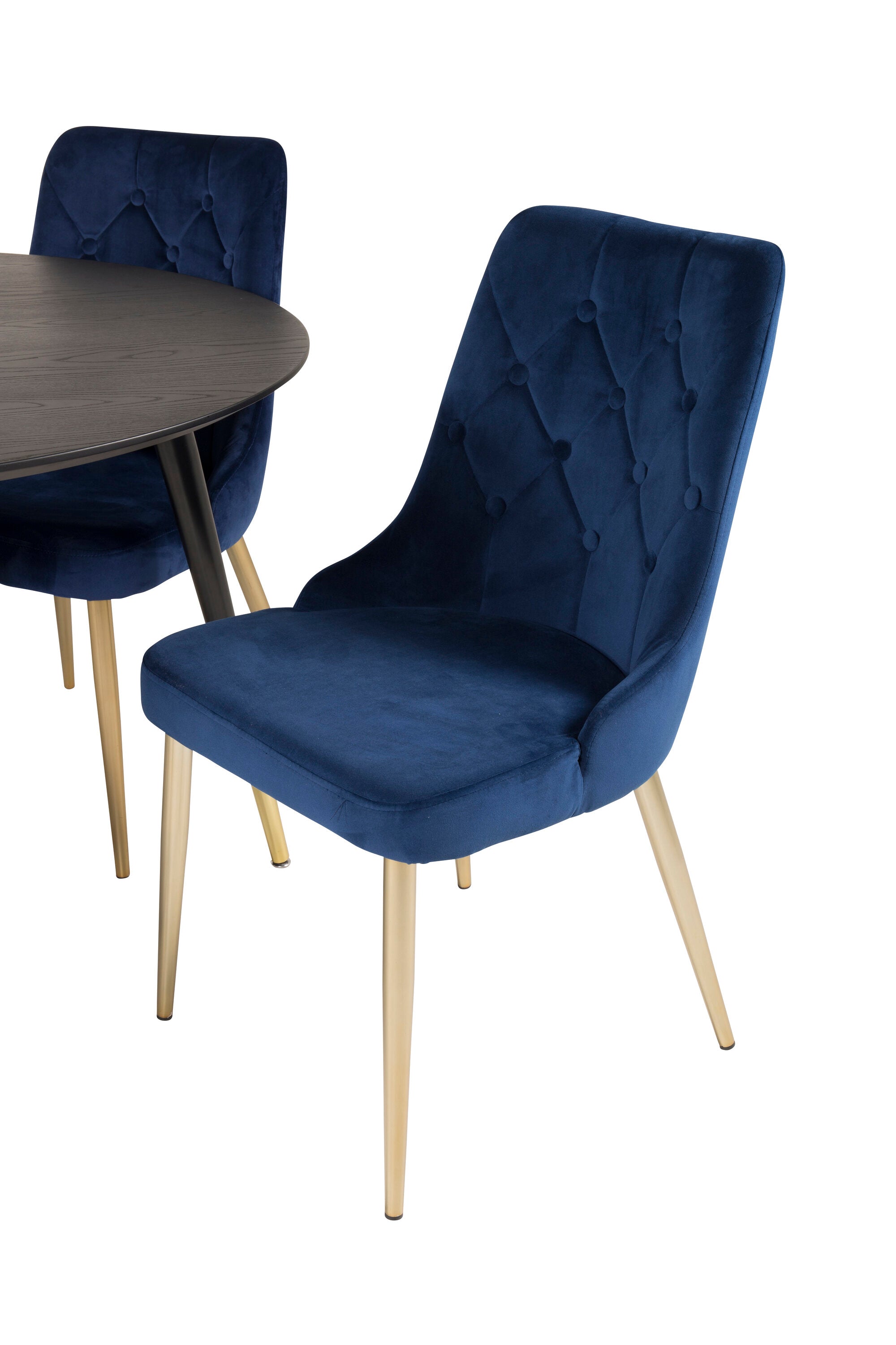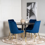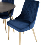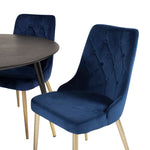 Dipp Jídelní stůl - 115 cm - Černá dýha / černé nohy s mosazným dippem - Velvet Deluxe Židle - Modrá/Matná mosaz noha 4