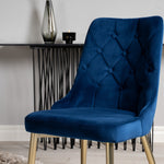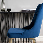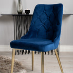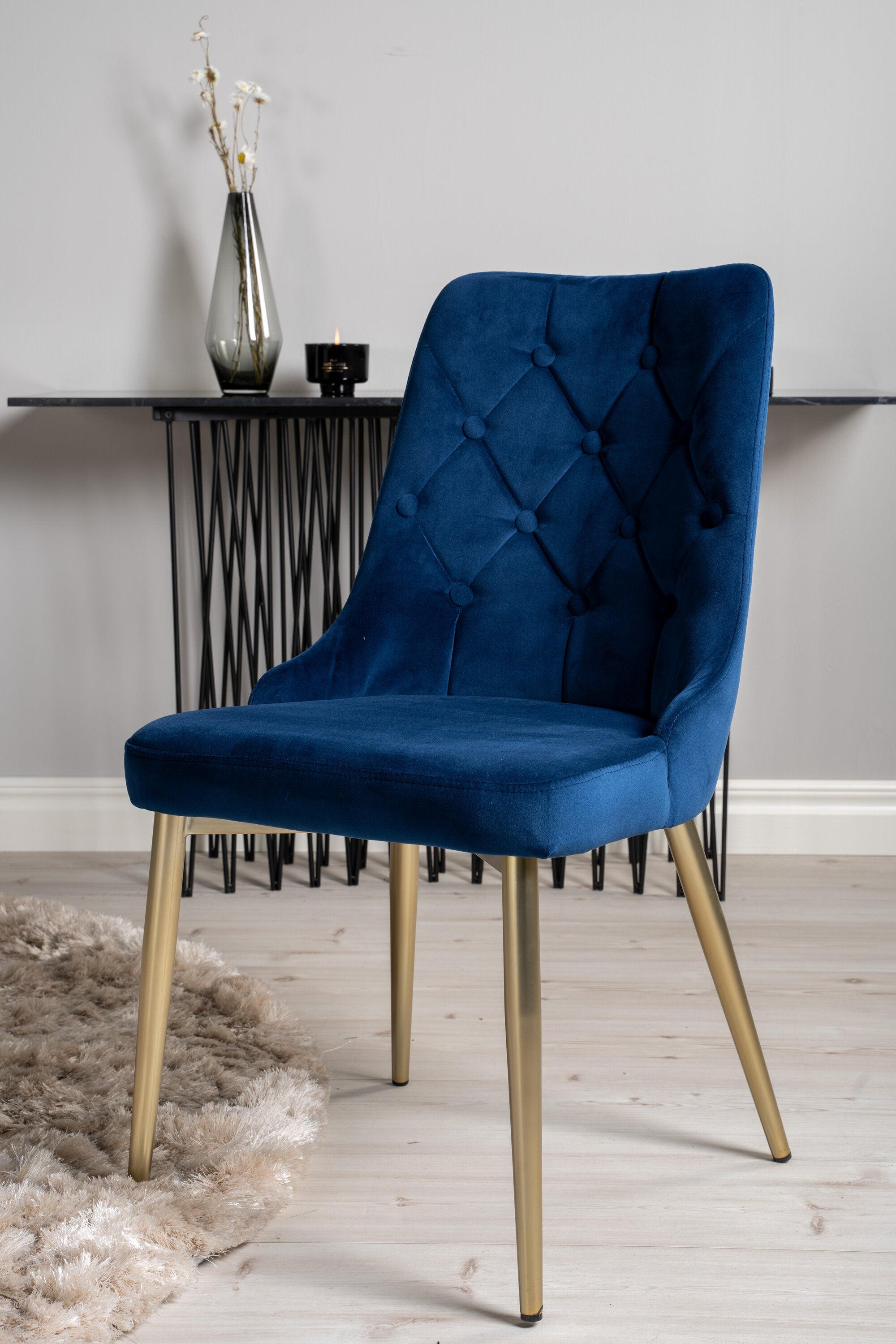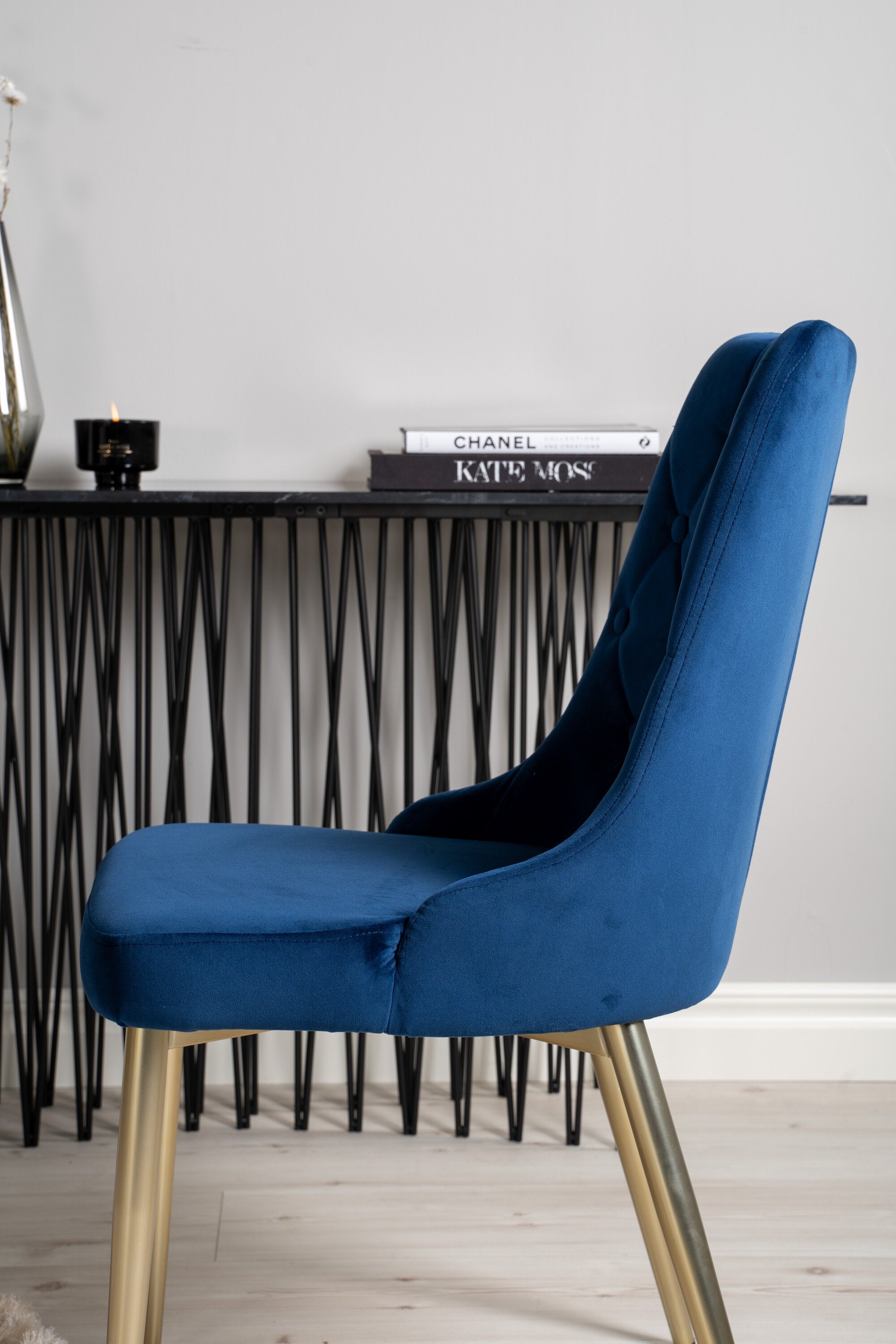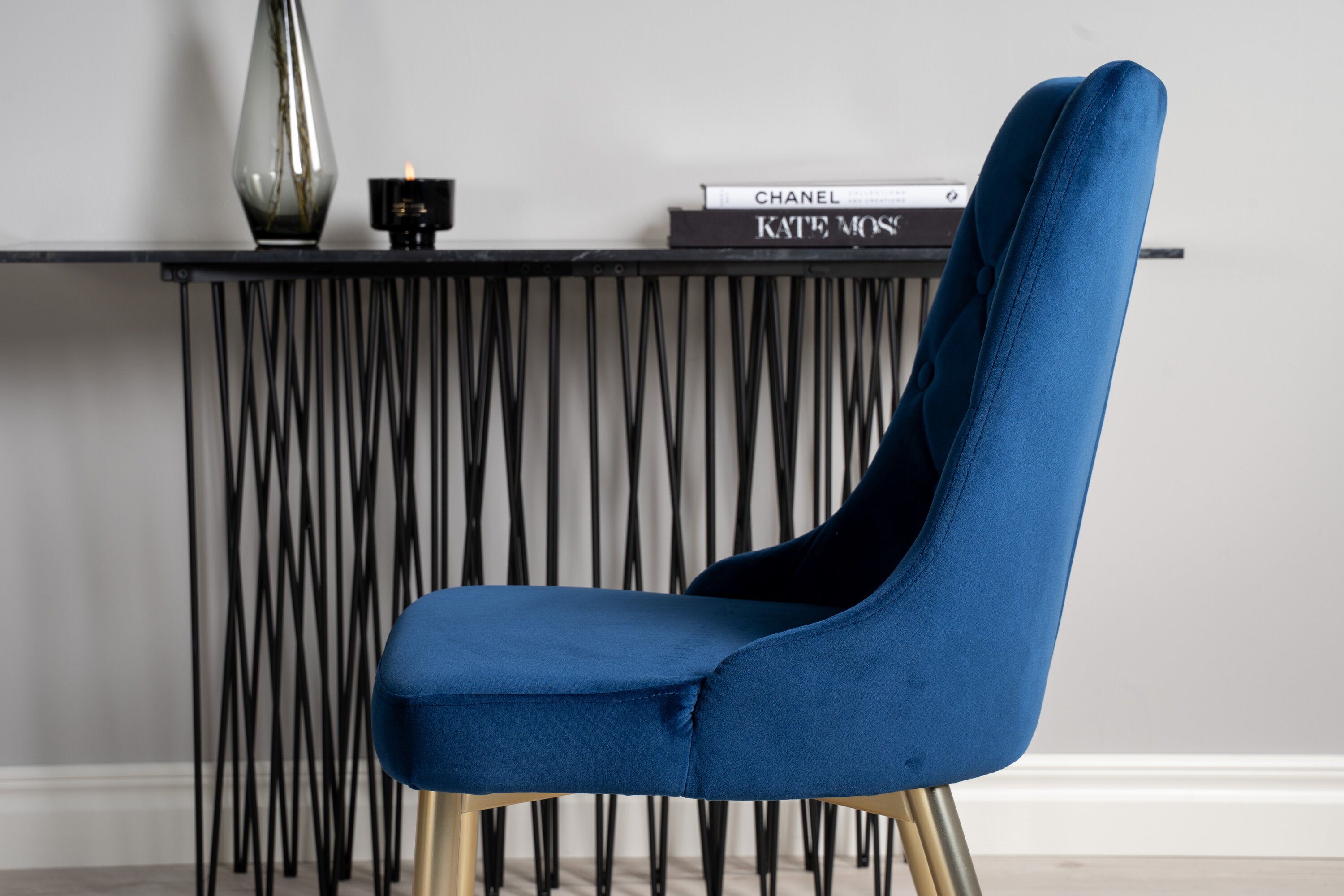 Dipp Jídelní stůl - 115 cm - Černá dýha / černé nohy s mosazným dippem - Velvet Deluxe Židle - Modrá/Matná mosaz noha 4